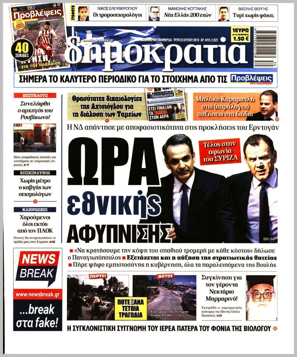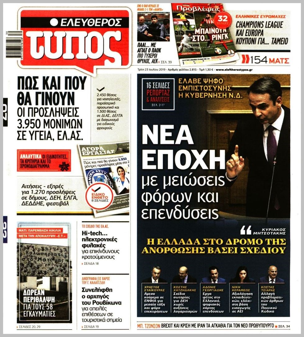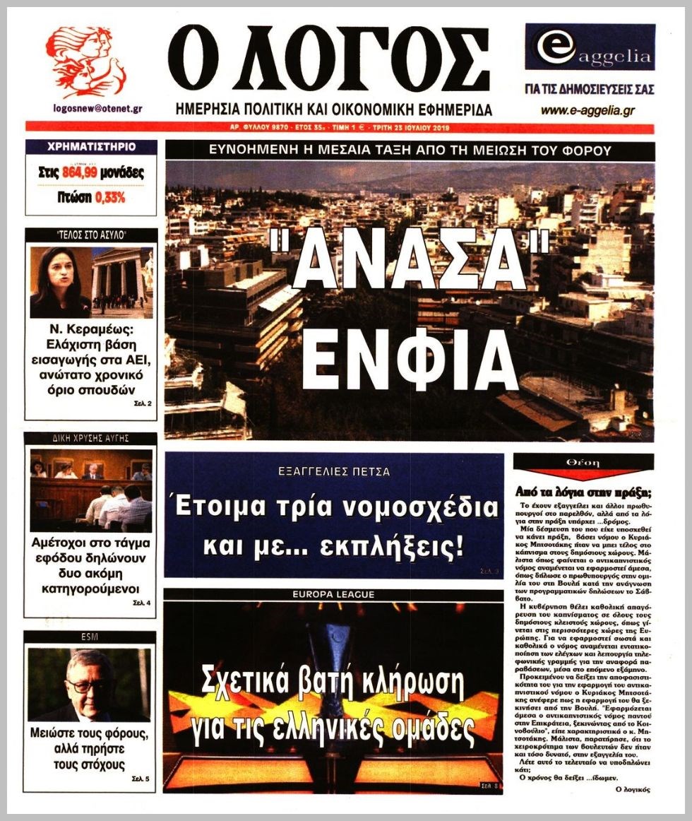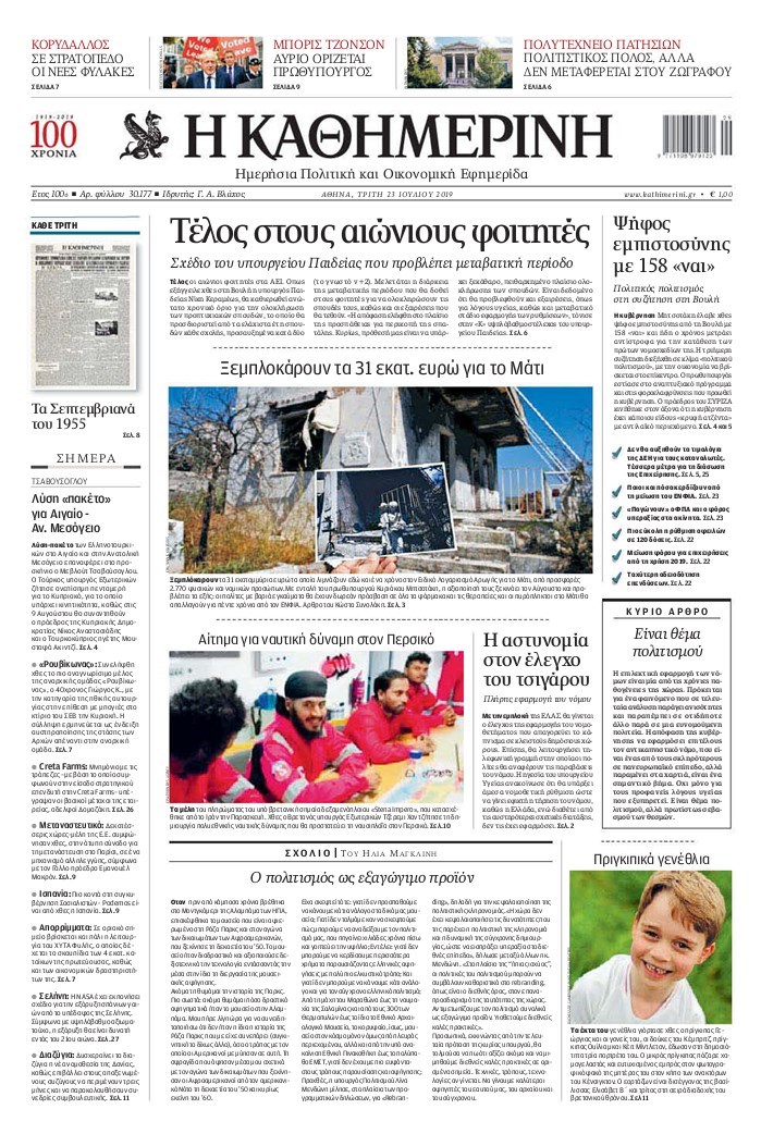 Οι πολιτικές εφημερίδες 23/7/2019 Κώστας Τεό 06:21, Τρίτη 23 Ιουλίου 2019 Media Διαβάστε τα πρωτοσέλιδα των πολιτικών εφημερίδων: ΕΦΗΜΕΡΙΔΕΣ ΠΡΩΤΟΣΕΛΙΔΑ Μοιράσου το: σχολίασε κι εσύ (0 σχόλια) Ακολουθήστε το enikos.gr στο Google News και μάθετε πρώτοι όλες τις ειδήσεις Δείτε όλες τις τελευταίες ειδήσεις από την Ελλάδα και τον Κόσμο στο enikos.gr Ειδήσεις Ροή Ειδήσεων 4 ώρες πριν Χριστούγεννα στα μπλόκα οι αγρότες: Άνοιξαν στα διόδια και μοίρασαν προϊόντα στους πολίτες – Νέα σύσκεψη την Κυριακή στη Νίκαια 4 ώρες πριν Κύκλωμα διακίνησης ναρκωτικών σε σχολεία: Τηλεφωνούσαν στους ανηλίκους την ώρα του μαθήματος – Οι διάλογοι-σοκ, τα «ψευδώνυμα» και τα βασανιστήρια 4 ώρες πριν Αρχεία Επστάιν: Οι 500 σελίδες που λείπουν, τα αναπάντητα ερωτήματα και οι επώνυμοι – Τι έπεται 5 ώρες πριν Ζελένσκι: Μόνο οι ΗΠΑ και ο Τραμπ μπορούν να πιέσουν τη Ρωσία να βάλει τέλος στον πόλεμο 6 ώρες πριν Φοινικούντα: Προφυλακιστέος ο 30χρονος για συνέργεια στη διπλή δολοφονία – Και άλλα πρόσωπα στο «μικροσκόπιο» 4 ώρες πριν Αποκαλύφθηκε το άγνωστο «GPS» της αρχαιότητας – Πώς οι ναοί «φώτιζαν» τον δρόμο των ναυτικών πριν από την εφεύρεση των φάρων 5 ώρες πριν Ύπνος: Η διατροφή που μπορεί να σας βοηθήσει να κοιμάστε καλύτερα και να ζήσετε περισσότερο 6 ώρες πριν Αριθμολογία: Ο αριθμός του φύλακα αγγέλου σας, με βάση τον μήνα γέννησής σας – «Έτσι σας στέλνει σημάδια το σύμπαν» 18 ώρες πριν Enerwave: Το νέο «ρεύμα» στη λιανική ενέργειας που αλλάζει την εμπειρία του καταναλωτή 16 λεπτά πριν Δυτική Όχθη: Δύο Παλαιστίνιοι νεκροί από σφαίρες του Ισραηλινού στρατού 32 λεπτά πριν Ένοχος ο 54χρονος «ερευνητής» που έταζε ότι θα εντοπίσει τον αγνοούμενο γιατρό από την Κρήτη – «Μας γέμισε φρούδες ελπίδες», λέει ο πατέρας του 33χρονου 47 λεπτά πριν Σεισμός 3,8 Ρίχτερ ανοιχτά της Αμοργού 1 ώρα πριν Άννα Βίσση: Τα… Social Media «προσκύνησαν» την «απόλυτη» για την συναυλία της στο Καλλιμάρμαρο που προβλήθηκε από το Mega 1 ώρα πριν Φωτεινή Αθερίδου: «Προσπαθώ να είμαι κάθετη και αυστηρή σαν μαμά πια» ENIKOS NETWORK Οι γυναίκες αποκαλύπτουν το πιο ελκυστικό πράγμα που μπορεί να κάνει ένας άνδρας Ομορφιά και αντιγήρανση: Ειδικοί μιλούν για συσκευές περιποίησης του δέρματος «Πολεμική» προετοιμασία από την ευρωπαϊκή βιομηχανία ενέργειας – Η Eurelectric ζητεί «ομπρέλα» προστασίας για τις υποδομές Ακύρωση ΑΦΜ για απάτες – Ποιους βάζει στο στόχαστρο η ΑΑΔΕ Χαρτογραφώντας το «σημείο χωρίς επιστροφή»: Για πρώτη φορά αποκαλύπτεται με λεπτομέρεια το ακανθώδες όριο της ατμόσφαιρας τ... Η Google καταργεί τη λειτουργία «dark web report» – Πώς θα μπορούν οι χρήστες να διαγράφουν τα δεδομένα τους περισσότερα 01:30 , Κυριακή 21 Δεκεμβρίου 2025 Άννα Βίσση: Τα… Social Media «προσκύνησαν» την «απόλυτη» για την συναυλία της στο Καλλιμάρμαρο που προβλήθηκε από το Mega Την ημέρα των γενεθλίων της Άννας Βίσση, το MEGA τίμησε τη διαχρονική παρουσία της «απόλυτης Ε... 00:00 , Κυριακή 21 Δεκεμβρίου 2025 The Voice: Η επιστροφή της Έλενας Παπαρίζου και η ατάκα του Γιώργου Μαζωνάκη μετά τις καταγγελίες Στη φάση των Cross Battles Live μπήκε το The Voice, με την Έλενα Παπαρίζου να επιστρέφει στο π... 20:30 , Σάββατο 20 Δεκεμβρίου 2025 Αυτή την Κυριακή με τη Realnews: Instyle, μαζί Drive και Realnews Geopolitics Αυτή την Κυριακή με τη Realnews: Instyle, μαζί Drive και Realnews Geopolitics Instyle Η Άννα Ρ... 20:28 , Σάββατο 20 Δεκεμβρίου 2025 Ο ΑΝΤ1 γεμίζει τις γιορτές με μουσική – Ποιους καλλιτέχνες θα απολαύσουμε Φέτος στον ΑΝΤ1 γιορτάζουμε τις νύχτες μας παρέα με αγαπημένους 