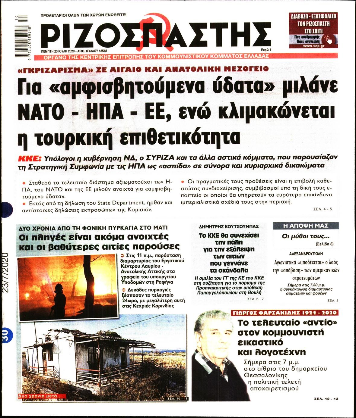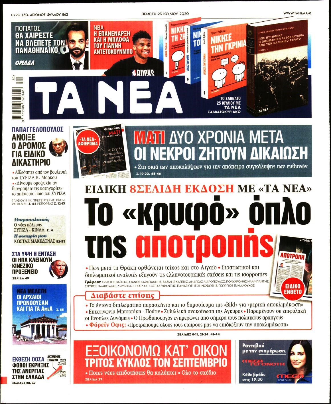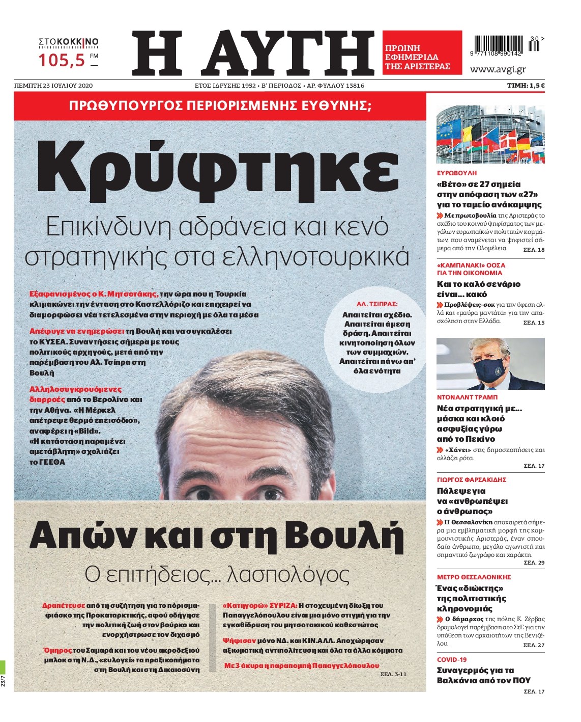 Οι πολιτικές εφημερίδες 23/7/2020 Διονύσης Νίκκας 06:07, Πέμπτη 23 Ιουλίου 2020 Media Διαβάστε τα πρωτοσέλιδα των πολιτικών εφημερίδων… ΠΟΛΙΤΙΚΕΣ ΕΦΗΜΕΡΙΔΕΣ ΠΡΩΤΟΣΕΛΙΔΑ Μοιράσου το: σχολίασε κι εσύ (0 σχόλια) Ακολουθήστε το enikos.gr στο Google News και μάθετε πρώτοι όλες τις ειδήσεις Δείτε όλες τις τελευταίες ειδήσεις από την Ελλάδα και τον Κόσμο στο enikos.gr Ειδήσεις Ροή Ειδήσεων 2 ώρες πριν Μπλόκα: Οι αγρότες σηκώνουν τις μπάρες σε διόδια για τους εκδρομείς των Χριστουγέννων και μοιράζουν προϊόντα – Βίντεο 2 ώρες πριν Τσιάρας προς αγρότες: Τα μπλόκα και τα πείσματα δεν ωφελούν – Οι λύσεις περνούν μέσα από τον διάλογο 3 ώρες πριν Αρχεία Έπσταϊν: Οι συγκλονιστικές φωτογραφίες – Ο Μάικλ Τζάκσον, ο Μικ Τζάγκερ και ο Κέβιν Σπέισι ανάμεσα στους διάσημους που απεικονίζονται 55 λεπτά πριν Μαθητές διακινούσαν κοκαΐνη και χασίς σε σχολείο της Αττικής – 12 συλλήψεις 1 ώρα πριν Βέλγιο: Άγνωστοι έριξαν κόκκινη μπογιά στο προξενείο της Πολωνίας στις Βρυξέλλες 5 ώρες πριν Μία νέα «χρυσή» περίοδος αρχίζει για 3 ζώδια από σήμερα – «Μία αναπάντεχη ευκαιρία οδηγεί στην επιτυχία» 3 ώρες πριν Διαιτολόγος αποκαλύπτει 9 πρωινές συνήθειες που «λιώνουν» το κοιλιακό λίπος – «Υποστηρίζουν την υγιεινή απώλεια βάρους» 4 ώρες πριν Οι 7 φράσεις που δεν λένε ποτέ οι συναισθηματικά έξυπνοι άνθρωποι κατά τη διάρκεια ενός καβγά 7 ώρες πριν Enerwave: Το νέο «ρεύμα» στη λιανική ενέργειας που αλλάζει την εμπειρία του καταναλωτή 4 λεπτά πριν Μαρινάκης στον Realfm 97,8: Η κυβέρνηση σέβεται κάθε λογική διεκδίκηση των αγροτών, αλλά και το αίτημα των πολιτών να μην ταλαιπωρούνται 10 λεπτά πριν O Πάντερ MVP της 17ης αγωνιστικής στην Euroleague 19 λεπτά πριν Πέθανε η τραγουδίστρια Κλαούντια Ντελμέρ 26 λεπτά πριν Μία ανεκμετάλλευτη πηγή θα μπορούσε να προσφέρει ανεξάντλητη ενέργεια – Οι επιστήμονες ίσως γνωρίζουν πώς να την ξεκλειδώσουν 35 λεπτά πριν Θεσσαλονίκη: Ανήλικος που είχε εξαφανιστεί βρέθηκε στο σπίτι Τούρκων μετά από αστυνομική επιχείρηση ENIKOS NETWORK Η αποχή από την αναπαραγωγή παρατείνει τη ζωή στα ζώα, σύμφωνα με μελέτη – Τι ισχύει για τους ανθρώπους; Σημαντικές επαφές στις ΗΠΑ είχε ο υπουργός Υγείας Άδωνις Γεωργιάδης Ευλογιά αιγοπροβάτων: Παρατεταμένη επιζωοτία, αυστηρά μέτρα – Τι ισχύει για τον εμβολιασμό και την ανασύσταση του ζωικού κε... Τσιάρας προς αγρότες: Έχει ικανοποιηθεί το 74% των αιτημάτων – Τα μπλόκα και τα πείσματα δεν ωφελούν Χαρτογραφώντας το «σημείο χωρίς επιστροφή»: Για πρώτη φορά αποκαλύπτεται με λεπτομέρεια το ακανθώδες όριο της ατμόσφαιρας τ... Η Google καταργεί τη λειτουργία «dark web report» – Πώς θα μπορούν οι χρήστες να διαγράφουν τα δεδομένα τους περισσότερα 14:04 , Σάββατο 20 Δεκεμβρίου 2025 Η Realnews αυτής της Κυριακής (21/12/2025) Με τίτλο: «Ασπίδα προστασίας για την Ελλάδα» κυκλοφορεί, αυτήν την Κυριακή, η Realnews. Σημαντ... 12:53 , Σάββατο 20 Δεκεμβρίου 2025 Να μ’ αγαπάς: Το παρελθόν έρχεται στο φως – Καταιγιστικές εξελίξεις στα τελευταία επεισόδια του 2025 Ο Άγγελος αποκαλύπτεται, η Φωτεινή ανησυχεί για τον Λευτέρη και η Ζωή έρχεται αντιμέτωπη με το... 11:41 , Σάββατο 20 Δεκεμβρίου 2025 «Η αγάπη δεν χάνεται ποτέ»: Η μικρού μήκους ταινία κινουμένων σχεδίων που θέτει ερωτήματα για τη ζωή και τον θάνατο Ο θάνατος είναι ένα από τα πιο σκληρά θέματα που καλείται να διαχειριστεί κάποιος στη διάρκεια... 09:30 , Σάββατο 20 Δεκεμβρίου 2025 «Porto Leone: Στη γειτονιά με τα κόκκινα φανάρια» – Ο Χρόνης αποκαλύπτει στην Αλεξάνδρα το μυστικό γι