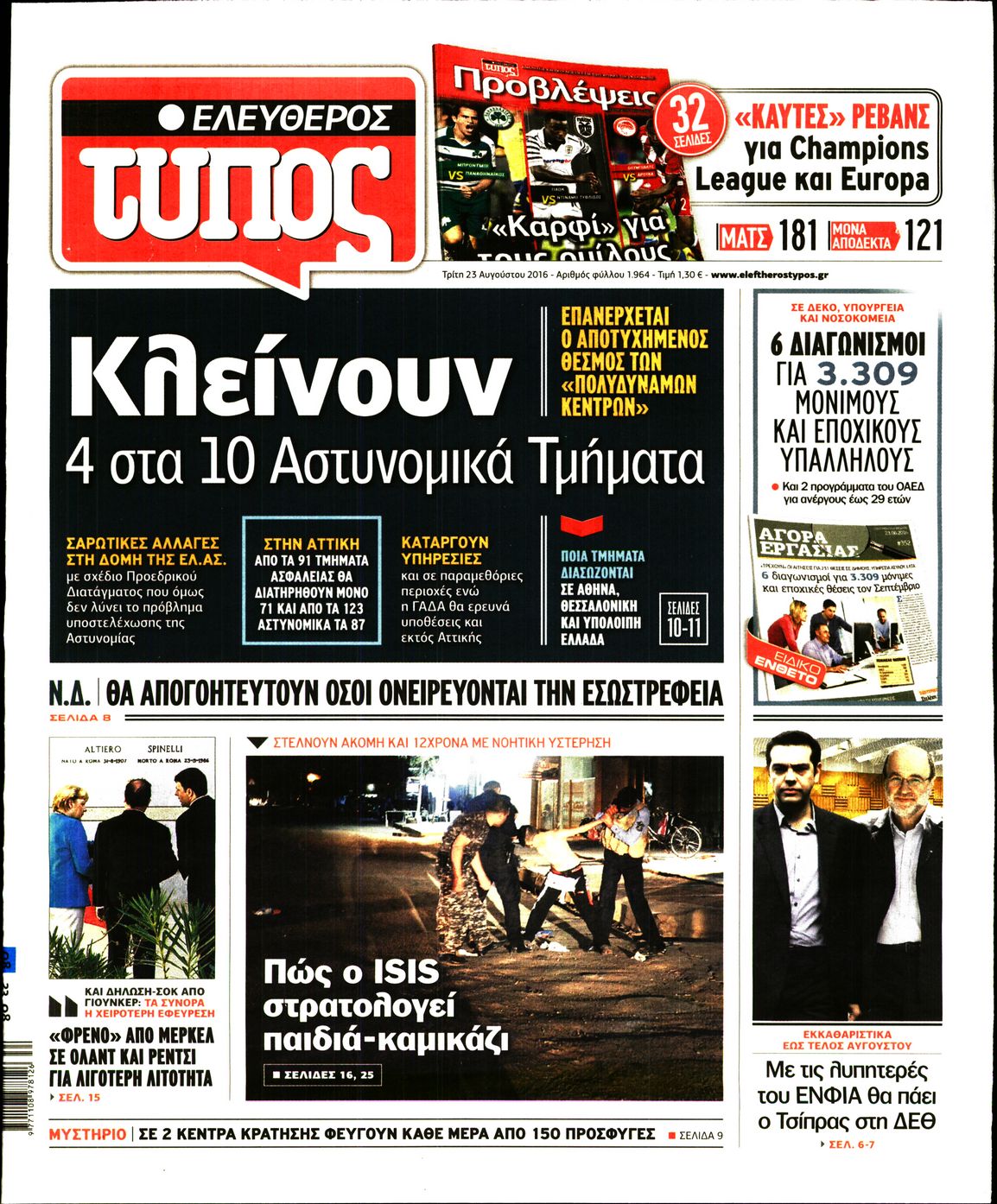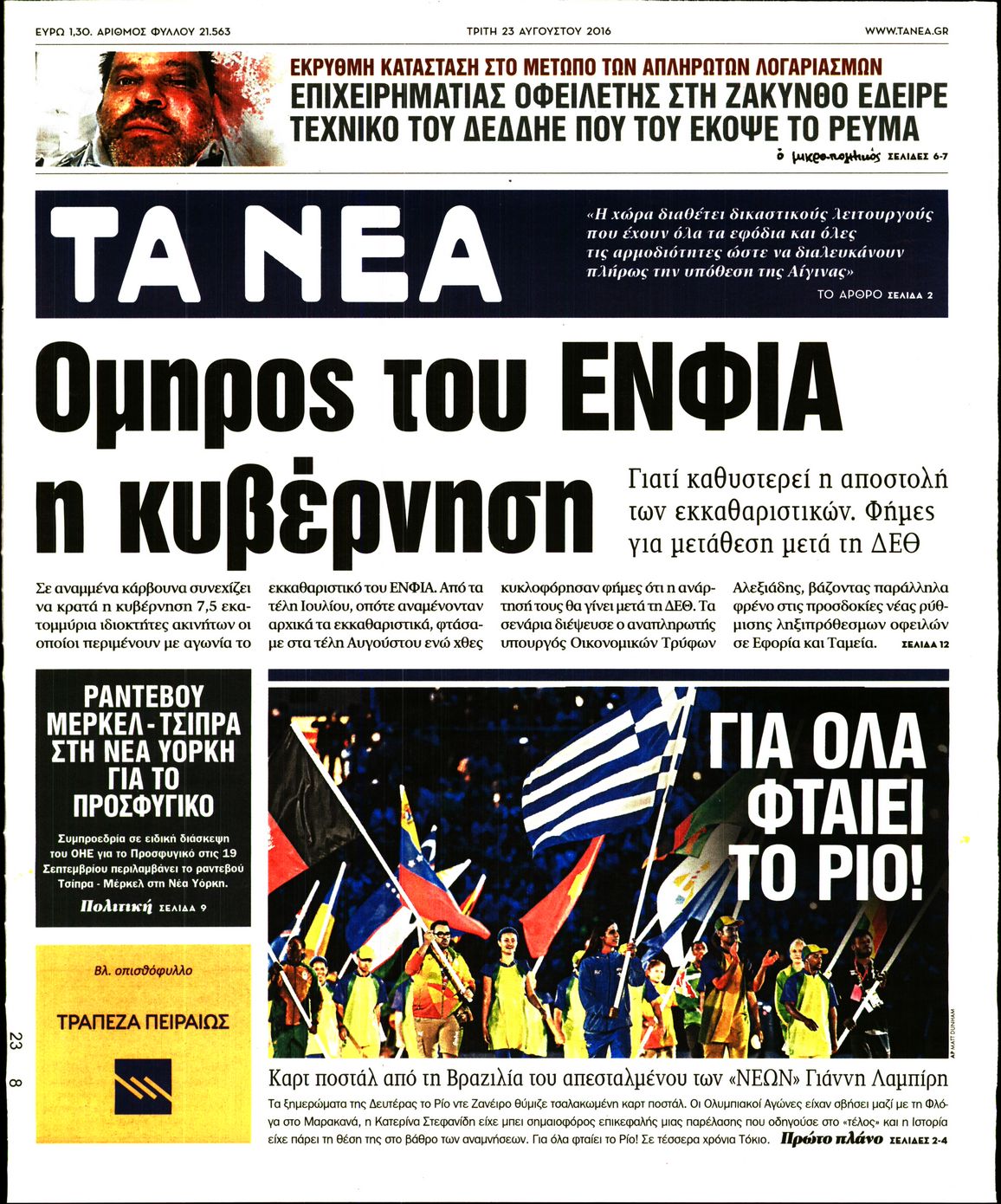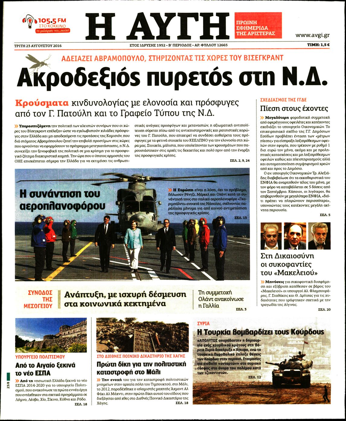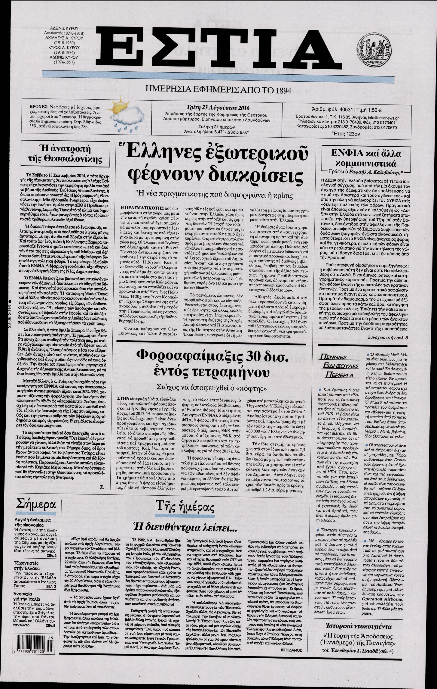 Oι πολιτικές εφημερίδες 23/8/2016 Enikos Newsroom 06:15, Τρίτη 23 Αυγούστου 2016 Media Διαβάστε τα σημερινά πρωτοσέλιδα των πολιτικών εφημερίδων: ΠΟΛΙΤΙΚΕΣ ΕΦΗΜΕΡΙΔΕΣ ΠΡΩΤΟΣΕΛΙΔΑ Μοιράσου το: σχολίασε κι εσύ (0 σχόλια) Ακολουθήστε το enikos.gr στο Google News και μάθετε πρώτοι όλες τις ειδήσεις Δείτε όλες τις τελευταίες ειδήσεις από την Ελλάδα και τον Κόσμο στο enikos.gr Ειδήσεις Ροή Ειδήσεων 26 λεπτά πριν Τραμπ: Δεν αποκλείει την πιθανότητα ενός πολέμου στη Βενεζουέλα – «Ο Μαδούρο ξέρει καλύτερα από τον καθένα τι ακριβώς θέλω» 20 λεπτά πριν Ουκρανία: Η άνευ προηγουμένου επίθεση σε ρωσικό τάνκερ στη Μεσόγειο και το μήνυμα προς στον Πούτιν – Το «μακρύ χέρι» του Κιέβου 3 ώρες πριν Εμπλοκή και αερομαχίες με οπλισμένα τουρκικά F-16 στο Αιγαίο 3 ώρες πριν Πούτιν: «Ναι, είμαι ερωτευμένος» – Βίντεο από τη σπάνια προσωπική παραδοχή του 1 ώρα πριν Ανδρέας Λυκουρέντζος: Υπέβαλε την παραίτησή του ο πρόεδρος του ΕΛΓΑ, αλλά δεν έγινε δεκτή – Όλο το παρασκήνιο 2 ώρες πριν Αριθμολογία: Οι άνθρωποι που έχουν γεννηθεί αυτές τις 4 ημερομηνίες, συχνά παρεξηγούνται – «Η καλοσύνη τους κρύβει τεράστια δύναμη» 4 ώρες πριν Μήπως έχετε χάσει τον εαυτό σας στη σχέση σας; 7 «αθόρυβες» υποχωρήσεις που μάλλον κάνατε, χωρίς να το συνειδητοποιήσετε 3 ώρες πριν Ξεχάστε το καθάρισμα το Σαββατοκύριακο: Ο «κανόνας των 20 λεπτών» που θα σας λύσει τα χέρια 35 λεπτά πριν Ύπνος: Μια κρυφή κατάσταση του εγκεφάλου πριν από τον ύπνο μπορεί να είναι το “κλειδί” για υψηλή ευφυΐα και δημιουργικότητα 9 λεπτά πριν Χάρι και Μέγκαν: Η σπάνια οικογενειακή φωτογραφία με τον Άρτσι και τη Λίλιμπετ – Τι σχεδιάζουν για τα Χριστούγεννα 16 λεπτά πριν Βασίλης Καρράς: «Είναι πάντα δίπλα μου, δεν έφυγε…», λέει ο αδελφός του 20 λεπτά πριν Ουκρανία: Η άνευ προηγουμένου επίθεση σε ρωσικό τάνκερ στη Μεσόγειο και το μήνυμα προς στον Πούτιν – Το «μακρύ χέρι» του Κιέβου 26 λεπτά πριν Τραμπ: Δεν αποκλείει την πιθανότητα ενός πολέμου στη Βενεζουέλα – «Ο Μαδούρο ξέρει καλύτερα από τον καθένα τι ακριβώς θέλω» 27 λεπτά πριν Κηφισιά: Με πολλές απουσίες κόντρα στον Ολυμπιακό – «Last dance» για τον Τεττέη ENIKOS NETWORK Το ΕΚΑΒ τιμήθηκε από την Ακαδημία Αθηνών για τα 40 χρόνια προσφοράς του Έχετε πραγματικά μεγάλη καρδιά; 10 χαρακτηριστικά όσων έχουν καλοσύνη ΑΑΔΕ: Νέες αναβαθμίσεις στο Ψηφιακό Πελατολόγιο και την εφαρμογή myDATAapp – Τι πρέπει να γνωρίζετε Όμιλος ΔΕΗ: Νέα ορόσημα και ενισχυμένη διαφάνεια στην ετήσια Έκθεση Βιώσιμης Ανάπτυξης Χαρτογραφώντας το «σημείο χωρίς επιστροφή»: Για πρώτη φορά αποκαλύπτεται με λεπτομέρεια το ακανθώδες όριο της ατμόσφαιρας τ... Η Google καταργεί τη λειτουργία «dark web report» – Πώς θα μπορούν οι χρήστες να διαγράφουν τα δεδομένα τους περισσότερα 20:37 , Παρασκευή 19 Δεκεμβρίου 2025 Don’t Forget The Lyrics: Η Έλλη Κοκκίνου υποδέχεται 4 παίκτες που θα κάνουν τα πάντα για να μη χάσουν ούτε… μισή λέξη από τους στίχους Το «Don’t Forget The Lyrics» επιστρέφει απόψε, Παρασκευή 19 Δεκεμβρίου, στις 21:00 με νέο επει... 19:31 , Παρασκευή 19 Δεκεμβρίου 2025 GNTM: Απόψε ο μεγάλος τελικός για τους 4 φιναλίστ Έπειτα από μήνες γεμάτους μόδα, δημιουργία και έντονες αναμετρήσεις, το GNTM 2025 κορυφώνεται,... 18:11 , Παρασκευή 19 Δεκεμβρίου 2025 Το σόι σου: Ο Άρης έρχεται στην Ελλάδα για τις γιορτές των Χριστουγέννων – Τι θα δούμε στο αποψινό εορταστικό επεισόδιο Ένα απολαυστικό, εορταστικό επεισόδιο της σειράς “Το σόι σου”, γεμάτο ευτράπελα αλ... 15:15 , Παρασκευή 19 Δεκεμβρίου 2025 Την Κυριακή με τη Realnews: Ό,