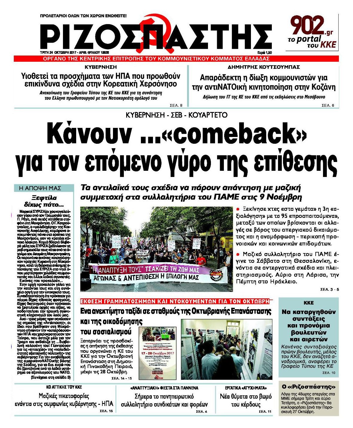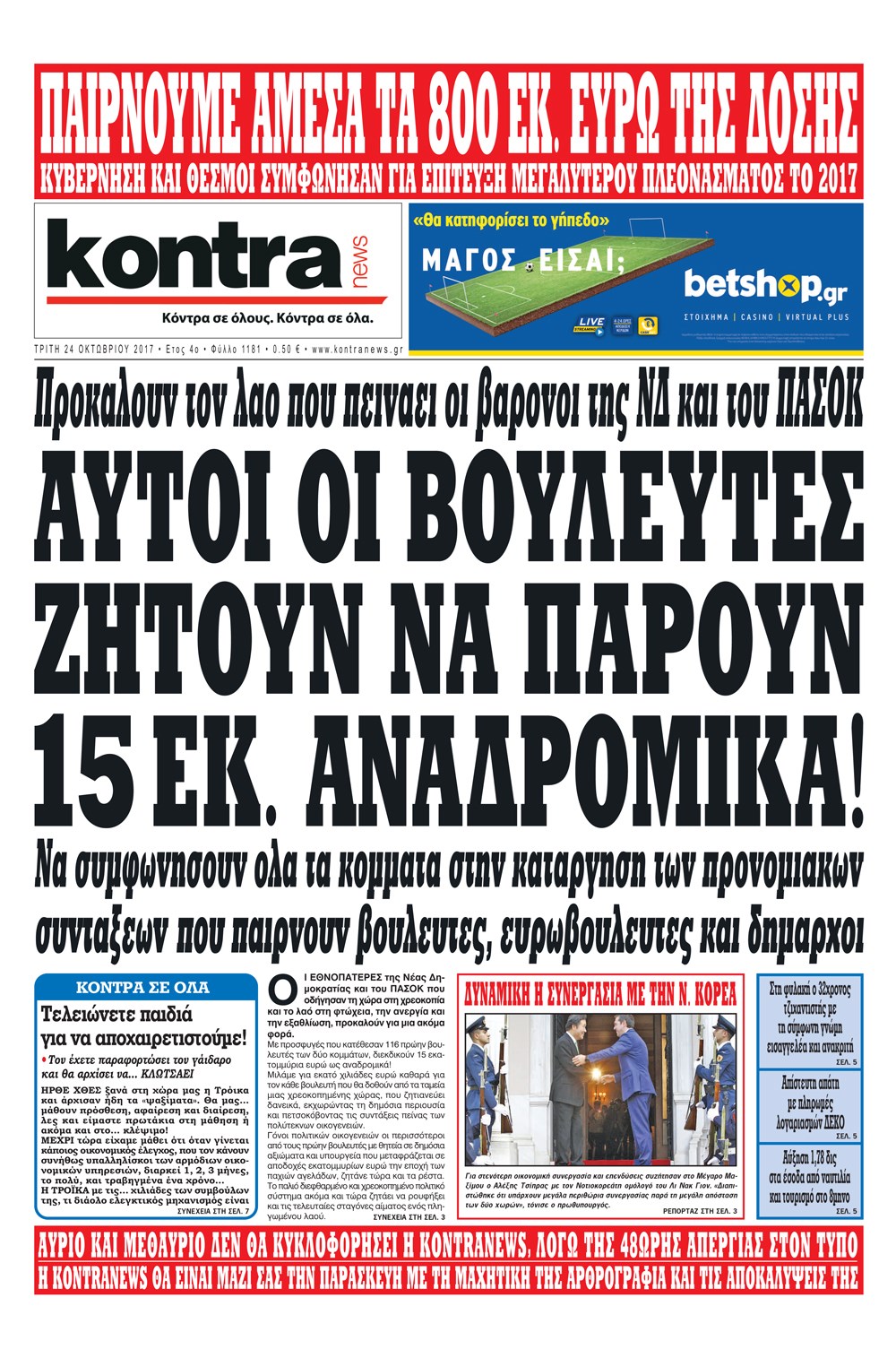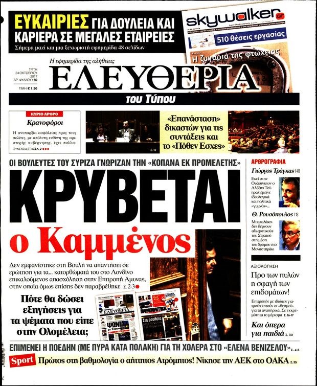 Οι πολιτικές εφημερίδες 24/10/2017 Κώστας Τεό 05:19, Τρίτη 24 Οκτωβρίου 2017 Media Διαβάστε τα σημερινά πρωτοσέλιδα των πολιτικών εφημερίδων: ΠΟΛΙΤΙΚΕΣ ΕΦΗΜΕΡΙΔΕΣ ΠΡΩΤΟΣΕΛΙΔΑ Μοιράσου το: σχολίασε κι εσύ (0 σχόλια) Ακολουθήστε το enikos.gr στο Google News και μάθετε πρώτοι όλες τις ειδήσεις Δείτε όλες τις τελευταίες ειδήσεις από την Ελλάδα και τον Κόσμο στο enikos.gr Ειδήσεις Ροή Ειδήσεων 4 ώρες πριν Υπόθεση Έπσταϊν: Το Υπουργείο Δικαιοσύνης δημοσιοποίησε μια σειρά από εξαιρετικά επεξεργασμένα αρχεία – «Λείπουν τα πιο σημαντικά έγγραφα», λένε οι Δημοκρατικοί 50 λεπτά πριν Γιορτές με μπλόκα για τους αγρότες: Ανοίγουν διόδια και μοιράζουν προϊόντα στους ταξιδιώτες 1 ώρα πριν Εξαφάνιση 33χρονου γιατρού στην Κρήτη: «Άναψα τα φώτα, τρόμαξε και άρχισε να τρέχει στα χωράφια» – Η τελευταία διαδρομή και η μαρτυρία «κλειδί» 3 ώρες πριν Ο «χάρτης» με τις αυξήσεις και τις φοροελαφρύνσεις του 2026 – Ποιοι και πόσα κερδίζουν 1 ώρα πριν Τα αρχεία του Έπσταϊν αποκαλύπτουν φωτογραφία του έκπτωτου πρίγκιπα Άντριου – Είναι ξαπλωμένος στην αγκαλιά 5 γυναικών 1 ώρα πριν Μία νέα «χρυσή» περίοδος αρχίζει για 3 ζώδια από σήμερα – «Μία αναπάντεχη ευκαιρία οδηγεί στην επιτυχία» 5 ώρες πριν Αυγά: Πόσα μπορείτε να τρώτε την ημέρα με ασφάλεια για μέγιστη πρόσληψη πρωτεΐνης 3 ώρες πριν Αρχαιολόγοι ανακάλυψαν σε χωράφι απεικόνιση 600 ετών ενός Αγίου – Τα στοιχεία που δείχνουν ότι μαρτύρησε 2 ώρες πριν Αγχώνεται για το χριστουγεννιάτικο δώρο που πήρε στην πλούσια σύντροφό του – «Φοβάμαι πως θα το βρει φθηνιάρικο, φοράει βραχιόλια Cartier» 7 λεπτά πριν Τα Labubu «μετακομίζουν» στο Χόλιγουντ: Η Sony Pictures ετοιμάζει live-action ταινία με τον σκηνοθέτη του «Wonka» 15 λεπτά πριν Νέες ταυτότητες: Μεγάλη αναμονή για ραντεβού στην Αττική – Τέλος τα ταξίδια εκτός Ελλάδος από τον Αύγουστο για όσους δεν έχουν αλλάξει 23 λεπτά πριν Οι 7 φράσεις που δεν λένε ποτέ οι συναισθηματικά έξυπνοι άνθρωποι κατά τη διάρκεια ενός καβγά 26 λεπτά πριν Τηλεθέαση (19/12): Ανατροπές και πρωτιές στην πρωινή ζώνη 34 λεπτά πριν Πώς η κλιματική αλλαγή επηρεάζει εγκύους και βρέφη – Οι επιπτώσεις των υψηλών θερμοκρασιών ENIKOS NETWORK Είστε μόνιμα απρόσεκτοι; 3 σημάδια που δείχνουν ότι μπορεί να είναι σύμπτωμα πάθησης Πόσα κιλά παίρνουμε πραγματικά τα Χριστούγεννα, σύμφωνα με την επιστήμη – Πώς να το αποτρέψουμε; e-ΕΦΚΑ και ΔΥΠΑ: Έρχονται νέες πληρωμές έως τις 24 Δεκεμβρίου – Ποιοι πάνε ταμείο Επίδομα παιδιού: Τι αλλάζει από το 2026 – Το όφελος από τις φορολογικές ελαφρύνσεις Χαρτογραφώντας το «σημείο χωρίς επιστροφή»: Για πρώτη φορά αποκαλύπτεται με λεπτομέρεια το ακανθώδες όριο της ατμόσφαιρας τ... Η Google καταργεί τη λειτουργία «dark web report» – Πώς θα μπορούν οι χρήστες να διαγράφουν τα δεδομένα τους περισσότερα 09:30 , Σάββατο 20 Δεκεμβρίου 2025 «Porto Leone: Στη γειτονιά με τα κόκκινα φανάρια» – Ο Χρόνης αποκαλύπτει στην Αλεξάνδρα το μυστικό για το παιδί της Λένας Η μεγάλη δραματική σειρά του Apha «Porto Leone: Στη γειτονιά με τα κόκκινα φανάρια» μας μεταφέ... 08:14 , Σάββατο 20 Δεκεμβρίου 2025 Τρομεροί γονείς: Η Μαρία Καβογιάννη εισβάλλει στο σπίτι της οικογένειας Στεφανίδη Όσα θα δούμε στο νέο διπλό επεισόδιο της σειράς «Τρομεροί γονείς», σήμερα Σάββατο 20 Δεκεμβρίο... 05:48 , Σάββατο 20 Δεκεμβρίου 2025 Οι οικονομικές εφημερίδες 20/12/2025 Διαβάστε τα πρωτοσέλιδα από τις οικονομικές εφημερίδες, σήμερα 20/12/2025. 05:43 , Σάββατο 20 Δεκεμβρίου 2025 Οι αθλητικές εφημερίδες 20/12/2025 Διαβάστε τα πρωτοσέλιδα α