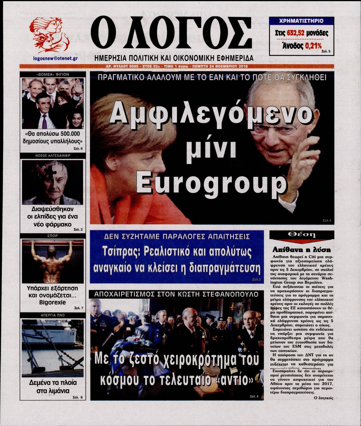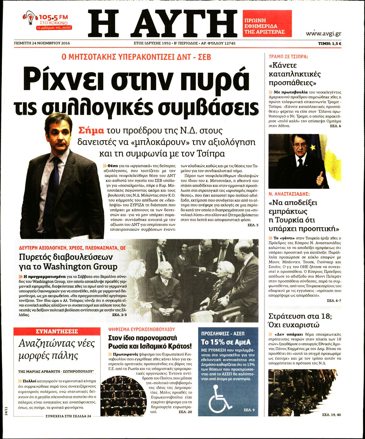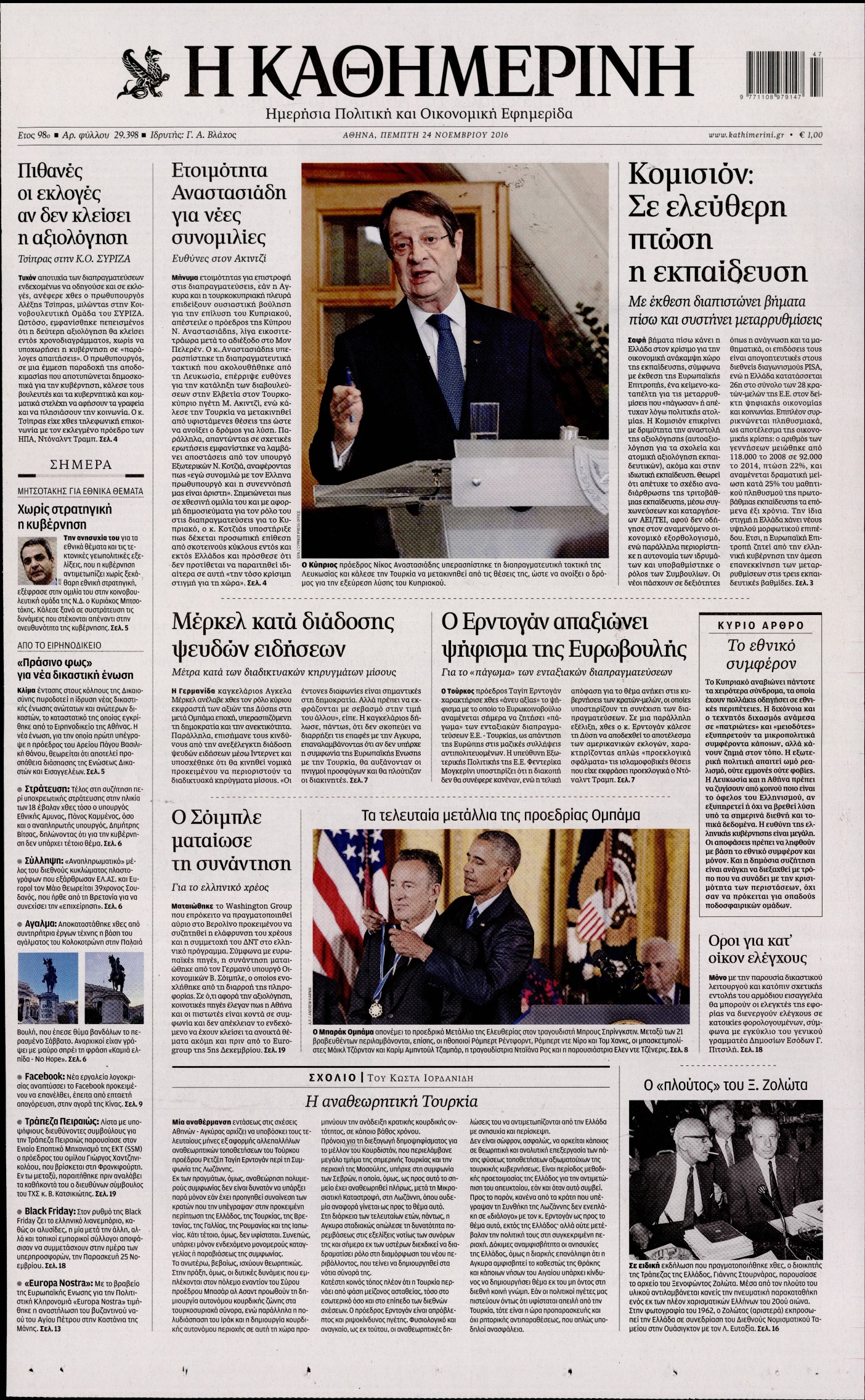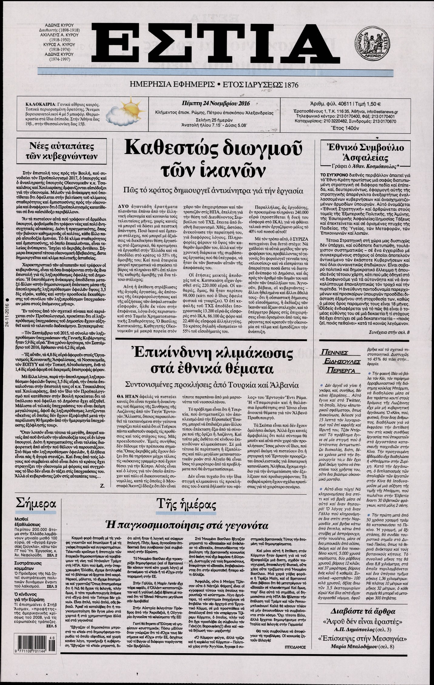 Οι πολιτικές εφημερίδες 24/11/2016 Enikos Newsroom 02:53, Πέμπτη 24 Νοεμβρίου 2016 Media Διαβάστε τα σημερινά πρωτοσέλιδα των πολιτικών εφημερίδων: ΠΟΛΙΤΙΚΕΣ ΕΦΗΜΕΡΙΔΕΣ ΠΡΩΤΟΣΕΛΙΔΑ Μοιράσου το: σχολίασε κι εσύ (0 σχόλια) Ακολουθήστε το enikos.gr στο Google News και μάθετε πρώτοι όλες τις ειδήσεις Δείτε όλες τις τελευταίες ειδήσεις από την Ελλάδα και τον Κόσμο στο enikos.gr Ειδήσεις Ροή Ειδήσεων 14 λεπτά πριν Καιρός: Νέο έκτακτο δελτίο επιδείνωσης από την ΕΜΥ – Ποιες περιοχές θα «χτυπήσει» η κακοκαιρία τα Χριστούγεννα 1 ώρα πριν Live – Έξοδος Χριστουγέννων: Αυξημένη η κίνηση στις Εθνικές Οδούς – Εικόνα αποσυμφόρησης με νέες λωρίδες κυκλοφορίας στα αγροτικά μπλόκα 36 λεπτά πριν Αεροπορικό δυστύχημα στην Τουρκία: Στο μικροσκόπιο ο καταγραφέας ήχου και το μαύρο κουτί – Η αεροσυνοδός Maria Pappa ανάμεσα στα θύματα 2 ώρες πριν Ο Ζελένσκι παρουσίασε νέο ειρηνευτικό σχέδιο 20 σημείων για τον τερματισμό του πολέμου στην Ουκρανία 3 ώρες πριν Φρίκη στη Θεσσαλονίκη: 13χρονη κατήγγειλε ότι έπεσε θύμα ομαδικού βιασμού από 6 αγόρια 2 ώρες πριν Η ζωή για 3 ζώδια γίνεται πολύ πιο εύκολη από εδώ και πέρα – «Εμπιστευτείτε τη διαίσθηση σας για να πάρετε αποφάσεις» 3 ώρες πριν Χαμός στο διαδίκτυο με ανάρτηση μητέρας για όσους δεν έχουν παιδιά – «Κάνουν διακοπές κάθε μέρα» 1 ημέρα πριν Η Coca-Cola και ο Ελληνικός Ερυθρός Σταυρός μαζί αυτά τα Χριστούγεννα: Μια μεγάλη αγκαλιά για τους συνανθρώπους μας που έχουν ανάγκη 1 ώρα πριν Γυναίκα που έχασε 30 κιλά αποκαλύπτει τα μυστικά της επιτυχίας της – «Οι υδατάνθρακες είναι καύσιμο του οργανισμού, όχι εχθρός» 10 λεπτά πριν Σεισμός 6 Ρίχτερ στην Ταϊβάν 14 λεπτά πριν Καιρός: Νέο έκτακτο δελτίο επιδείνωσης από την ΕΜΥ – Ποιες περιοχές θα «χτυπήσει» η κακοκαιρία τα Χριστούγεννα 17 λεπτά πριν Την Κυριακή με τη Realnews: Δωροεπιταγή 10€ 20 λεπτά πριν Έξοδος εκδρομέων για τα Χριστούγεννα: Στείλε βίντεο ή φωτογραφίες στο enikos.gr – Αποθήκευσε τον αριθμό 6944 05 05 05 21 λεπτά πριν Οι άνθρωποι που αποφεύγουν να γιορτάσουν τα Χριστούγεννα με την οικογένειά τους, συνήθως είχαν αυτές τις 8 εμπειρίες στην παιδική ηλικία ENIKOS NETWORK Στο επίκεντρο οι ανάγκες των ατόμων με διαβήτη-Τρεις προτάσεις προς τον ΕΟΦ Πόνος στην κοιλιά στους άνδρες: Με ποιες παθήσεις μπορεί να σχετίζεται Δήμος προσλαμβάνει απόφοιτους Γυμνασίου: Έως και τις 29 Δεκεμβρίου 2025 οι αιτήσεις-Ποιους αφορά Δημόσιο: Αυξημένες οι καθαρές αποδοχές των υπαλλήλων – Δείτε αναλυτικά παραδείγματα Ο Google Assistant θα παραμείνει λίγο περισσότερο για ορισμένους χρήστες Android Τεστ προσωπικότητας: Το βάζο που θα επιλέξετε αποκαλύπτει πώς λύνετε προβλήματα στη ζωή σας περισσότερα 12:05 , Τετάρτη 24 Δεκεμβρίου 2025 Έξοδος εκδρομέων για τα Χριστούγεννα: Στείλε βίντεο ή φωτογραφίες στο enikos.gr – Αποθήκευσε τον αριθμό 6944 05 05 05 Πολλοί έχουν επιλέξει να περάσουν τις γιορτές εκτός πόλης, ωστόσο και φέτος η μαζική έξοδος απ... 10:36 , Τετάρτη 24 Δεκεμβρίου 2025 Τηλεθέαση (23/12): Ποιες πρωινές εκπομπές της ψυχαγωγικής ζώνης πήραν προβάδισμα; Με αμείωτη ένταση συνεχίστηκε η «μάχη» στην πρωινή ζώνη την Τρίτη 23 Δεκεμβρίου, όπως φαίνεται... 10:09 , Τετάρτη 24 Δεκεμβρίου 2025 Την Κυριακή με τη Realnews: Ό,τι και αν αγοράσεις, σκανάρεις και κερδίζεις! Την Κυριακή με τη Realnews: Ό,τι και αν αγοράσεις, σκανάρεις και κερδίζεις! Με το PADU app, το... 10:05 , Τετάρτη 24 Δεκεμβρίου 2025 Τηλεθέαση (23/12): Σάρωσε το reunion του «Παρά Πέντε» το βράδυ της Τρίτης Το βράδυ της Τρίτης (23/12) οι τηλεθεατές παρακολούθησαν το reunion το