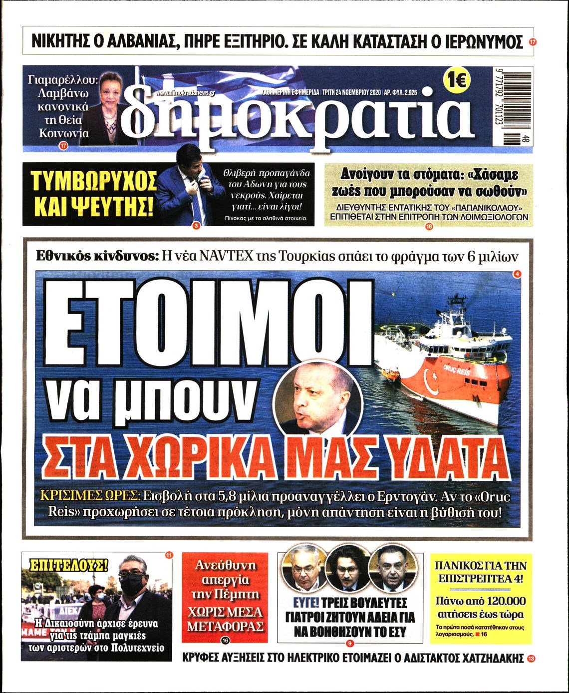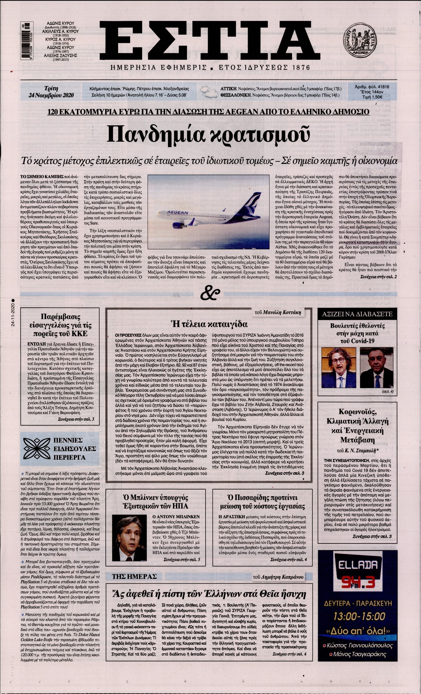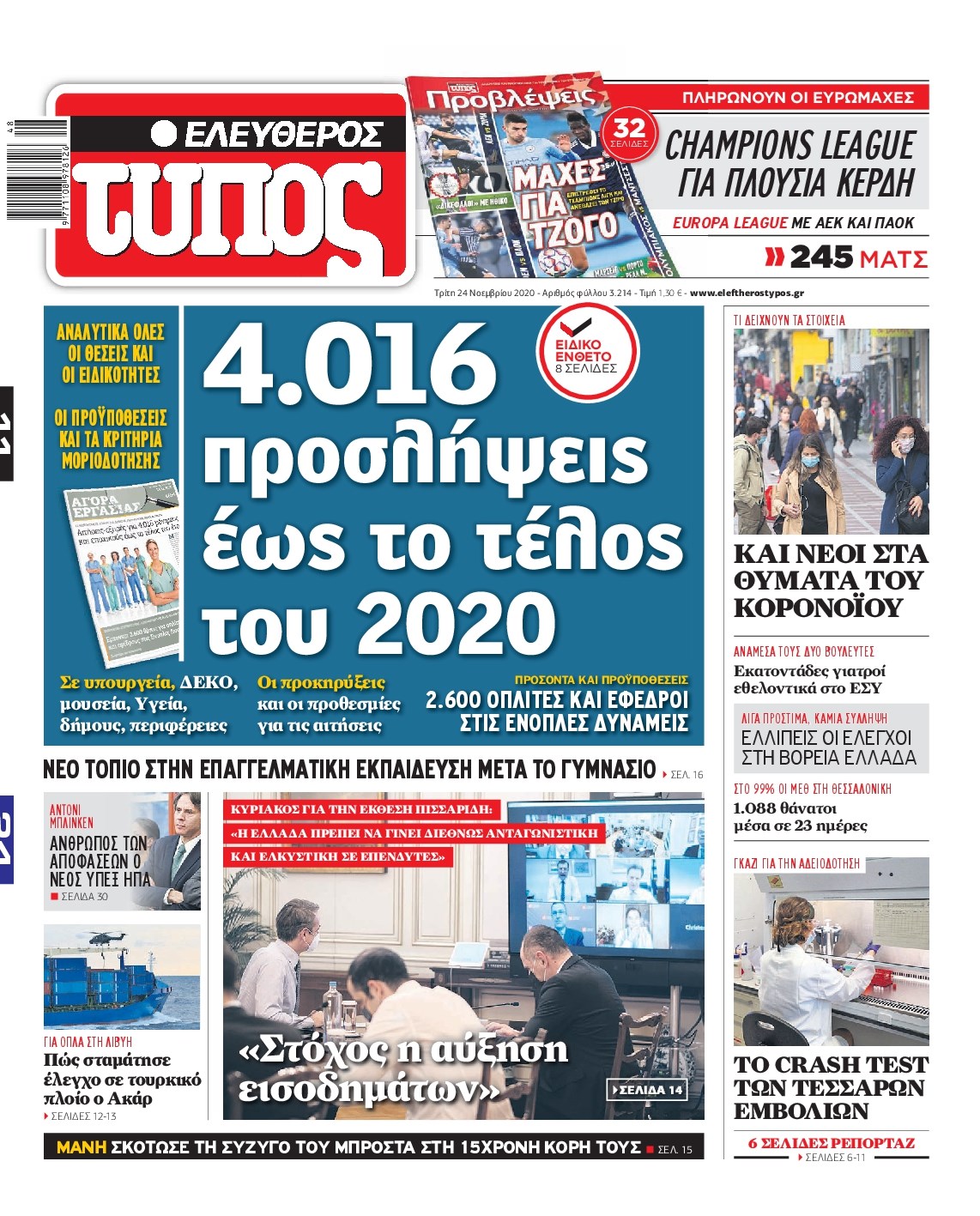 Οι πολιτικές εφημερίδες 24/11/2020 Διονύσης Νίκκας 06:10, Τρίτη 24 Νοεμβρίου 2020 Media Διαβάστε τα πρωτοσέλιδα των πολιτικών εφημερίδων… ΕΦΗΜΕΡΙΔΕΣ ΠΟΛΙΤΙΚΕΣ ΕΦΗΜΕΡΙΔΕΣ ΠΡΩΤΟΣΕΛΙΔΑ Μοιράσου το: σχολίασε κι εσύ (0 σχόλια) Ακολουθήστε το enikos.gr στο Google News και μάθετε πρώτοι όλες τις ειδήσεις Δείτε όλες τις τελευταίες ειδήσεις από την Ελλάδα και τον Κόσμο στο enikos.gr Ειδήσεις Ροή Ειδήσεων 4 ώρες πριν Χριστούγεννα στα μπλόκα: Επιμένουν στις κινητοποιήσεις τους οι αγρότες – Ανοίγουν τα διόδια το Σαββατοκύριακο 4 ώρες πριν Ουκρανία: Η άνευ προηγουμένου επίθεση σε ρωσικό τάνκερ στη Μεσόγειο και το μήνυμα προς στον Πούτιν – Το «μακρύ χέρι» του Κιέβου 3 ώρες πριν Πούτιν: Τα μηνύματα σε Ευρώπη και ΝΑΤΟ από το μαραθώνιο «σόου» του – Η απαίτηση για «σεβασμό» και η ειρήνη «με τους όρους» της Μόσχας 4 ώρες πριν Τραμπ: Δεν αποκλείει την πιθανότητα ενός πολέμου στη Βενεζουέλα – «Ο Μαδούρο ξέρει καλύτερα από τον καθένα τι ακριβώς θέλω» 5 ώρες πριν Συνεχίζει να προκαλεί ο Μίτσκοσκι: «Για μένα το όνομα Μακεδονία είναι ιερό» 3 ώρες πριν Ανακαλύφθηκαν αρχαία χρυσά νομίσματα 2.200 ετών που απεικονίζουν τον θεό Απόλλωνα – Η άγνωστη σύνδεση με τον Φίλιππο Β΄ της Μακεδονίας 4 ώρες πριν Ύπνος: Μια κρυφή κατάσταση του εγκεφάλου πριν από τον ύπνο μπορεί να είναι το “κλειδί” για υψηλή ευφυΐα και δημιουργικότητα 5 ώρες πριν Αριθμολογία: Οι άνθρωποι που έχουν γεννηθεί αυτές τις 4 ημερομηνίες, συχνά παρεξηγούνται – «Η καλοσύνη τους κρύβει τεράστια δύναμη» 6 ώρες πριν Ξεχάστε το καθάρισμα το Σαββατοκύριακο: Ο «κανόνας των 20 λεπτών» που θα σας λύσει τα χέρια 14 λεπτά πριν ΗΠΑ: Τραγωδία στην Αλαμπάμα – Σκότωσε την δημοσιογράφο σύζυγό του και αυτοκτόνησε μπροστά στον 3χρονο γιο τους 29 λεπτά πριν Πρόταση γάμου στο ΣΕΦ κατά την διάρκεια του αγώνα Ολυμπιακός-Βιλερμπάν – Δείτε βίντεο 44 λεπτά πριν Euroleague: Επέστρεψε στις νίκες ο Ολυμπιακός, πήρε την ματσάρα της χρονιάς η Μπάρτσα – Τα αποτελέσματα και η βαθμολογία 59 λεπτά πριν Συρία: Μαζικά πλήγματα των ΗΠΑ σε θέσεις του Ισλαμικού Κράτους – Χέγκσεθ: «Δεν είναι αρχή πολέμου, είναι μια δήλωση εκδίκησης» για το θάνατο των στρατιωτών μας 1 ώρα πριν Ουκρανία: Ολοκληρώθηκαν οι συνομιλίες με τους Αμερικανούς κι Ευρωπαίους διαπραγματευτές ENIKOS NETWORK Το ΕΚΑΒ τιμήθηκε από την Ακαδημία Αθηνών για τα 40 χρόνια προσφοράς του Έχετε πραγματικά μεγάλη καρδιά; 10 χαρακτηριστικά όσων έχουν καλοσύνη Αναστολή μέτρων αναγκαστικής εκτέλεσης για κτηνοτρόφους που πλήττονται από την ευλογιά των αιγοπροβάτων Πλήρης επάρκεια προϊόντων στις λαϊκές της Αττικής, παρά τις αγροτικές κινητοποιήσεις – Τι απαντούν οι πωλητές Χαρτογραφώντας το «σημείο χωρίς επιστροφή»: Για πρώτη φορά αποκαλύπτεται με λεπτομέρεια το ακανθώδες όριο της ατμόσφαιρας τ... Η Google καταργεί τη λειτουργία «dark web report» – Πώς θα μπορούν οι χρήστες να διαγράφουν τα δεδομένα τους περισσότερα 22:42 , Παρασκευή 19 Δεκεμβρίου 2025 Γιώργος Γιαννόπουλος για “Το σόι σου”: “Είναι ευτυχία και ευλογία αυτή η σειρά” «Είναι ευτυχία και ευλογία η συγκυρία αυτής της σειράς», θα πει ο Γιώργος Γιαννόπουλος -ο αγαπ... 20:37 , Παρασκευή 19 Δεκεμβρίου 2025 Don’t Forget The Lyrics: Η Έλλη Κοκκίνου υποδέχεται 4 παίκτες που θα κάνουν τα πάντα για να μη χάσουν ούτε… μισή λέξη από τους στίχους Το «Don’t Forget The Lyrics» επιστρέφει απόψε, Παρασκευή 19 Δεκεμβρίου, στις 21:00 με νέο επει... 19:31 , Παρασκευή 19 Δεκεμβρίου 2025 GNTM: Απόψε ο μεγάλος τελικός για τους 4 φιναλίστ 