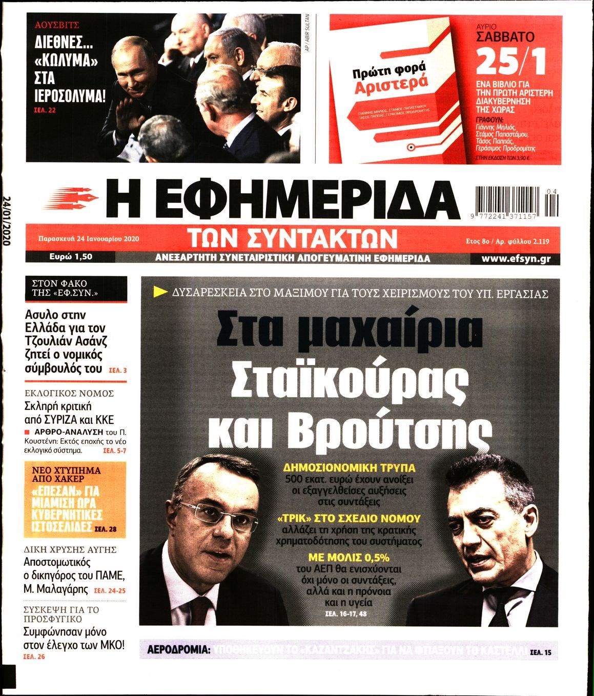 Οι πολιτικές εφημερίδες 24/1/20 Διονύσης Νίκκας 06:20, Παρασκευή 24 Ιανουαρίου 2020 Media Διαβάστε τα πρωτοσέλιδα των πολιτικών εφημερίδων… ΠΟΛΙΤΙΚΕΣ ΕΦΗΜΕΡΙΔΕΣ Μοιράσου το: σχολίασε κι εσύ (0 σχόλια) Ακολουθήστε το enikos.gr στο Google News και μάθετε πρώτοι όλες τις ειδήσεις Δείτε όλες τις τελευταίες ειδήσεις από την Ελλάδα και τον Κόσμο στο enikos.gr Ειδήσεις Ροή Ειδήσεων 4 ώρες πριν Χριστούγεννα στα μπλόκα: Επιμένουν στις κινητοποιήσεις τους οι αγρότες – Ανοίγουν τα διόδια το Σαββατοκύριακο 4 ώρες πριν Ουκρανία: Η άνευ προηγουμένου επίθεση σε ρωσικό τάνκερ στη Μεσόγειο και το μήνυμα προς στον Πούτιν – Το «μακρύ χέρι» του Κιέβου 3 ώρες πριν Πούτιν: Τα μηνύματα σε Ευρώπη και ΝΑΤΟ από το μαραθώνιο «σόου» του – Η απαίτηση για «σεβασμό» και η ειρήνη «με τους όρους» της Μόσχας 4 ώρες πριν Τραμπ: Δεν αποκλείει την πιθανότητα ενός πολέμου στη Βενεζουέλα – «Ο Μαδούρο ξέρει καλύτερα από τον καθένα τι ακριβώς θέλω» 5 ώρες πριν Συνεχίζει να προκαλεί ο Μίτσκοσκι: «Για μένα το όνομα Μακεδονία είναι ιερό» 3 ώρες πριν Ανακαλύφθηκαν αρχαία χρυσά νομίσματα 2.200 ετών που απεικονίζουν τον θεό Απόλλωνα – Η άγνωστη σύνδεση με τον Φίλιππο Β΄ της Μακεδονίας 4 ώρες πριν Ύπνος: Μια κρυφή κατάσταση του εγκεφάλου πριν από τον ύπνο μπορεί να είναι το “κλειδί” για υψηλή ευφυΐα και δημιουργικότητα 5 ώρες πριν Αριθμολογία: Οι άνθρωποι που έχουν γεννηθεί αυτές τις 4 ημερομηνίες, συχνά παρεξηγούνται – «Η καλοσύνη τους κρύβει τεράστια δύναμη» 6 ώρες πριν Ξεχάστε το καθάρισμα το Σαββατοκύριακο: Ο «κανόνας των 20 λεπτών» που θα σας λύσει τα χέρια 13 λεπτά πριν ΗΠΑ: Τραγωδία στην Αλαμπάμα – Σκότωσε την δημοσιογράφο σύζυγό του και αυτοκτόνησε μπροστά στον 3χρονο γιο τους 28 λεπτά πριν Πρόταση γάμου στο ΣΕΦ κατά την διάρκεια του αγώνα Ολυμπιακός-Βιλερμπάν – Δείτε βίντεο 43 λεπτά πριν Euroleague: Επέστρεψε στις νίκες ο Ολυμπιακός, πήρε την ματσάρα της χρονιάς η Μπάρτσα – Τα αποτελέσματα και η βαθμολογία 58 λεπτά πριν Συρία: Μαζικά πλήγματα των ΗΠΑ σε θέσεις του Ισλαμικού Κράτους – Χέγκσεθ: «Δεν είναι αρχή πολέμου, είναι μια δήλωση εκδίκησης» για το θάνατο των στρατιωτών μας 1 ώρα πριν Ουκρανία: Ολοκληρώθηκαν οι συνομιλίες με τους Αμερικανούς κι Ευρωπαίους διαπραγματευτές ENIKOS NETWORK Το ΕΚΑΒ τιμήθηκε από την Ακαδημία Αθηνών για τα 40 χρόνια προσφοράς του Έχετε πραγματικά μεγάλη καρδιά; 10 χαρακτηριστικά όσων έχουν καλοσύνη Αναστολή μέτρων αναγκαστικής εκτέλεσης για κτηνοτρόφους που πλήττονται από την ευλογιά των αιγοπροβάτων Πλήρης επάρκεια προϊόντων στις λαϊκές της Αττικής, παρά τις αγροτικές κινητοποιήσεις – Τι απαντούν οι πωλητές Χαρτογραφώντας το «σημείο χωρίς επιστροφή»: Για πρώτη φορά αποκαλύπτεται με λεπτομέρεια το ακανθώδες όριο της ατμόσφαιρας τ... Η Google καταργεί τη λειτουργία «dark web report» – Πώς θα μπορούν οι χρήστες να διαγράφουν τα δεδομένα τους περισσότερα 22:42 , Παρασκευή 19 Δεκεμβρίου 2025 Γιώργος Γιαννόπουλος για “Το σόι σου”: “Είναι ευτυχία και ευλογία αυτή η σειρά” «Είναι ευτυχία και ευλογία η συγκυρία αυτής της σειράς», θα πει ο Γιώργος Γιαννόπουλος -ο αγαπ... 20:37 , Παρασκευή 19 Δεκεμβρίου 2025 Don’t Forget The Lyrics: Η Έλλη Κοκκίνου υποδέχεται 4 παίκτες που θα κάνουν τα πάντα για να μη χάσουν ούτε… μισή λέξη από τους στίχους Το «Don’t Forget The Lyrics» επιστρέφει απόψε, Παρασκευή 19 Δεκεμβρίου, στις 21:00 με νέο επει... 19:31 , Παρασκευή 19 Δεκεμβρίου 2025 GNTM: Απόψε ο μεγάλος τελικός για τους 4 φιναλίστ Έπειτα από μήνες γεμ