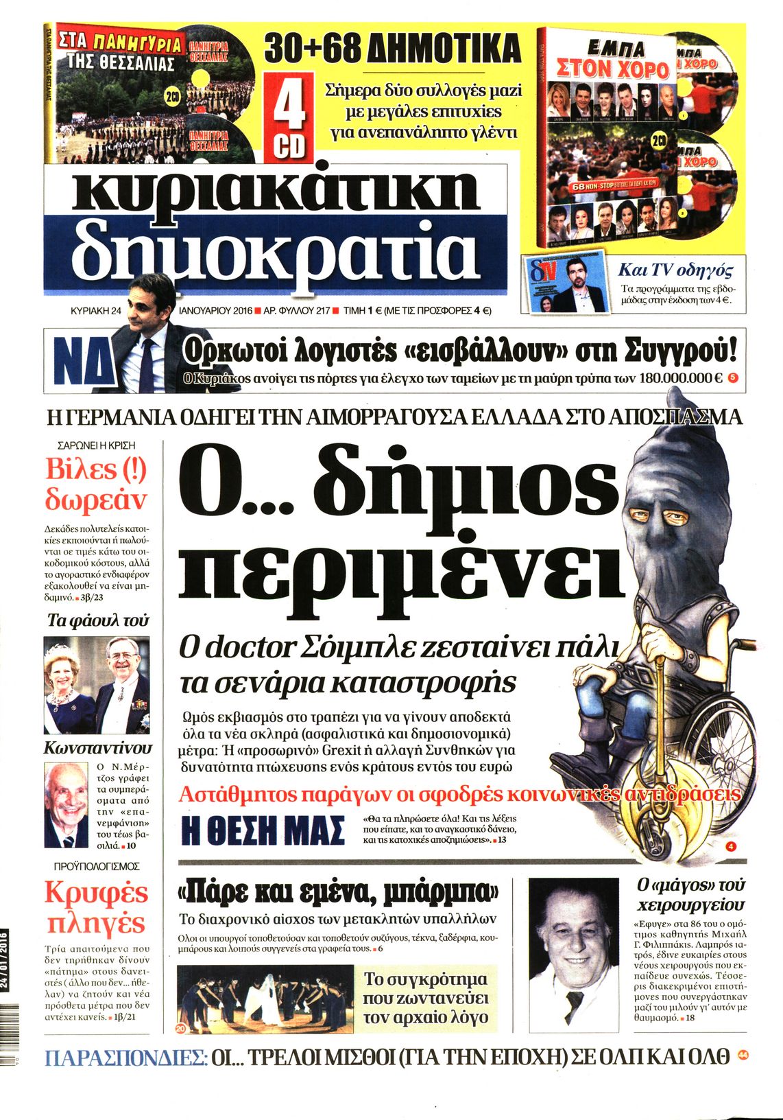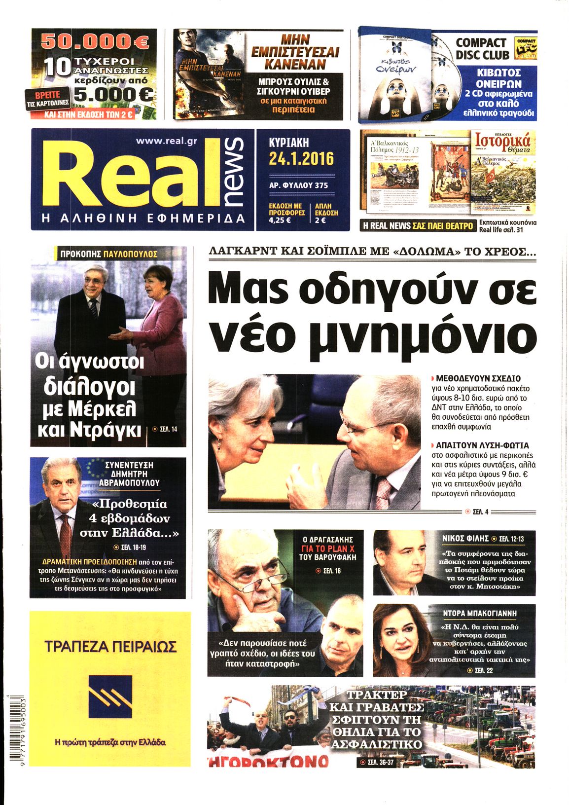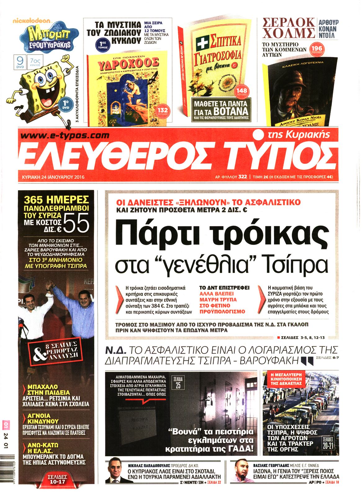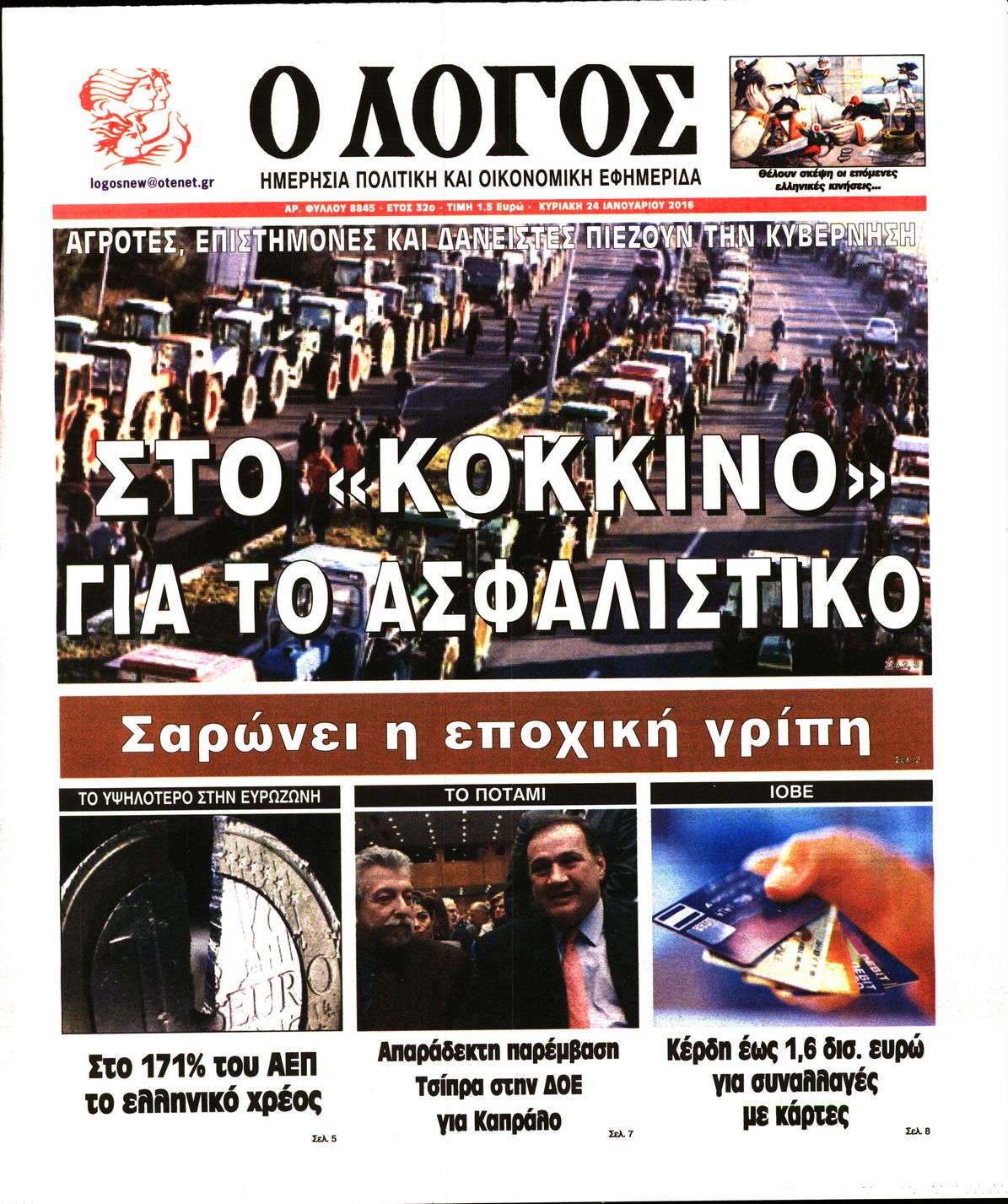 Oι πολιτικές εφημερίδες 24/1/2015 Enikos Newsroom 02:12, Κυριακή 24 Ιανουαρίου 2016 Media Διαβάστε τα σημερινά πρωτοσέλιδα των πολιτικών εφημερίδων: ΠΟΛΙΤΙΚΕΣ ΕΦΗΜΕΡΙΔΕΣ ΠΡΩΤΟΣΕΛΙΔΑ Μοιράσου το: σχολίασε κι εσύ (0 σχόλια) Ακολουθήστε το enikos.gr στο Google News και μάθετε πρώτοι όλες τις ειδήσεις Δείτε όλες τις τελευταίες ειδήσεις από την Ελλάδα και τον Κόσμο στο enikos.gr Ειδήσεις Ροή Ειδήσεων 2 ώρες πριν Μπλόκα: Οι αγρότες σηκώνουν τις μπάρες σε διόδια για τους εκδρομείς των Χριστουγέννων και μοιράζουν προϊόντα – Βίντεο 2 ώρες πριν Τσιάρας προς αγρότες: Τα μπλόκα και τα πείσματα δεν ωφελούν – Οι λύσεις περνούν μέσα από τον διάλογο 3 ώρες πριν Αρχεία Έπσταϊν: Οι συγκλονιστικές φωτογραφίες – Ο Μάικλ Τζάκσον, ο Μικ Τζάγκερ και ο Κέβιν Σπέισι ανάμεσα στους διάσημους που απεικονίζονται 1 ώρα πριν Μαθητές διακινούσαν κοκαΐνη και χασίς σε σχολείο της Αττικής – 12 συλλήψεις 1 ώρα πριν Βέλγιο: Άγνωστοι έριξαν κόκκινη μπογιά στο προξενείο της Πολωνίας στις Βρυξέλλες 5 ώρες πριν Μία νέα «χρυσή» περίοδος αρχίζει για 3 ζώδια από σήμερα – «Μία αναπάντεχη ευκαιρία οδηγεί στην επιτυχία» 4 ώρες πριν Διαιτολόγος αποκαλύπτει 9 πρωινές συνήθειες που «λιώνουν» το κοιλιακό λίπος – «Υποστηρίζουν την υγιεινή απώλεια βάρους» 5 ώρες πριν Οι 7 φράσεις που δεν λένε ποτέ οι συναισθηματικά έξυπνοι άνθρωποι κατά τη διάρκεια ενός καβγά 7 ώρες πριν Enerwave: Το νέο «ρεύμα» στη λιανική ενέργειας που αλλάζει την εμπειρία του καταναλωτή 6 λεπτά πριν Πακιστάν: Σε κάθειρξη 17 ετών καταδικάστηκαν ο πρώην πρωθυπουργός Ίμραν Χαν και η σύζυγός του 14 λεπτά πριν Μαρινάκης στον Realfm 97,8: Η κυβέρνηση σέβεται κάθε λογική διεκδίκηση των αγροτών, αλλά και το αίτημα των πολιτών να μην ταλαιπωρούνται 20 λεπτά πριν O Πάντερ MVP της 17ης αγωνιστικής στην Euroleague 29 λεπτά πριν Πέθανε η τραγουδίστρια Κλαούντια Ντελμέρ 37 λεπτά πριν Μία ανεκμετάλλευτη πηγή θα μπορούσε να προσφέρει ανεξάντλητη ενέργεια – Οι επιστήμονες ίσως γνωρίζουν πώς να την ξεκλειδώσουν ENIKOS NETWORK Η αποχή από την αναπαραγωγή παρατείνει τη ζωή στα ζώα, σύμφωνα με μελέτη – Τι ισχύει για τους ανθρώπους; Σημαντικές επαφές στις ΗΠΑ είχε ο υπουργός Υγείας Άδωνις Γεωργιάδης Ευλογιά αιγοπροβάτων: Παρατεταμένη επιζωοτία, αυστηρά μέτρα – Τι ισχύει για τον εμβολιασμό και την ανασύσταση του ζωικού κε... Τσιάρας προς αγρότες: Έχει ικανοποιηθεί το 74% των αιτημάτων – Τα μπλόκα και τα πείσματα δεν ωφελούν Χαρτογραφώντας το «σημείο χωρίς επιστροφή»: Για πρώτη φορά αποκαλύπτεται με λεπτομέρεια το ακανθώδες όριο της ατμόσφαιρας τ... Η Google καταργεί τη λειτουργία «dark web report» – Πώς θα μπορούν οι χρήστες να διαγράφουν τα δεδομένα τους περισσότερα 14:04 , Σάββατο 20 Δεκεμβρίου 2025 Η Realnews αυτής της Κυριακής (21/12/2025) Με τίτλο: «Ασπίδα προστασίας για την Ελλάδα» κυκλοφορεί, αυτήν την Κυριακή, η Realnews. Σημαντ... 12:53 , Σάββατο 20 Δεκεμβρίου 2025 Να μ’ αγαπάς: Το παρελθόν έρχεται στο φως – Καταιγιστικές εξελίξεις στα τελευταία επεισόδια του 2025 Ο Άγγελος αποκαλύπτεται, η Φωτεινή ανησυχεί για τον Λευτέρη και η Ζωή έρχεται αντιμέτωπη με το... 11:41 , Σάββατο 20 Δεκεμβρίου 2025 «Η αγάπη δεν χάνεται ποτέ»: Η μικρού μήκους ταινία κινουμένων σχεδίων που θέτει ερωτήματα για τη ζωή και τον θάνατο Ο θάνατος είναι ένα από τα πιο σκληρά θέματα που καλείται να διαχειριστεί κάποιος στη διάρκεια... 09:30 , Σάββατο 20 Δεκεμβρίου 2025 «Porto Leone: Στη γειτονιά με τα κόκκινα φανάρια» – Ο Χρόνης αποκαλύπτει στην Αλεξάνδρα το μυστικό για το πα