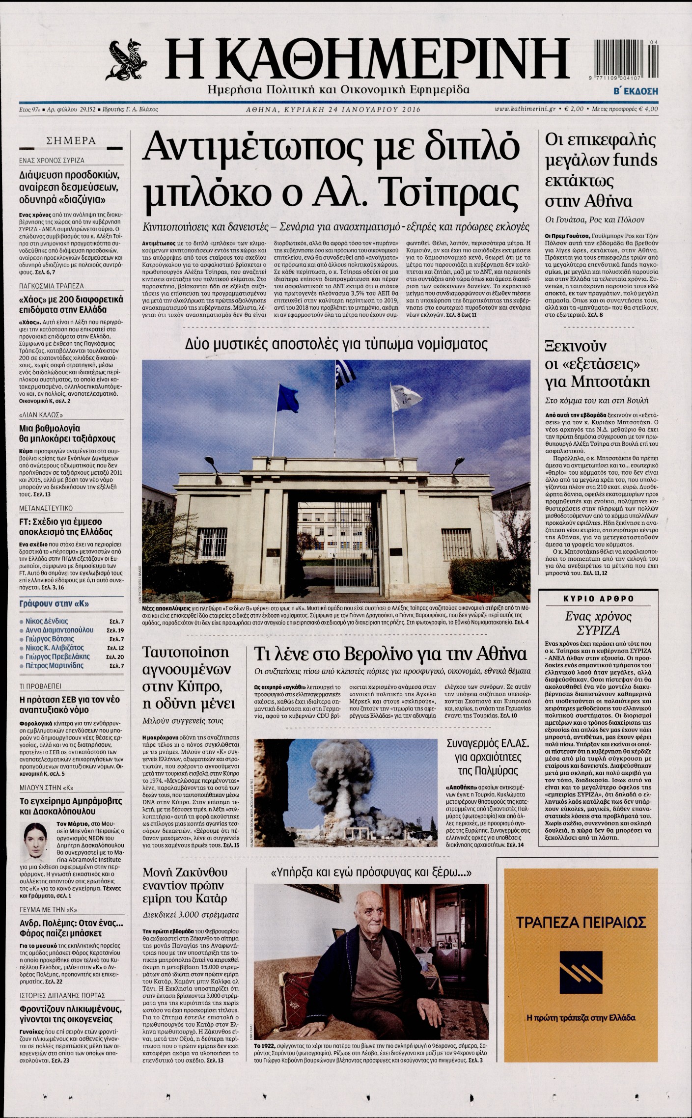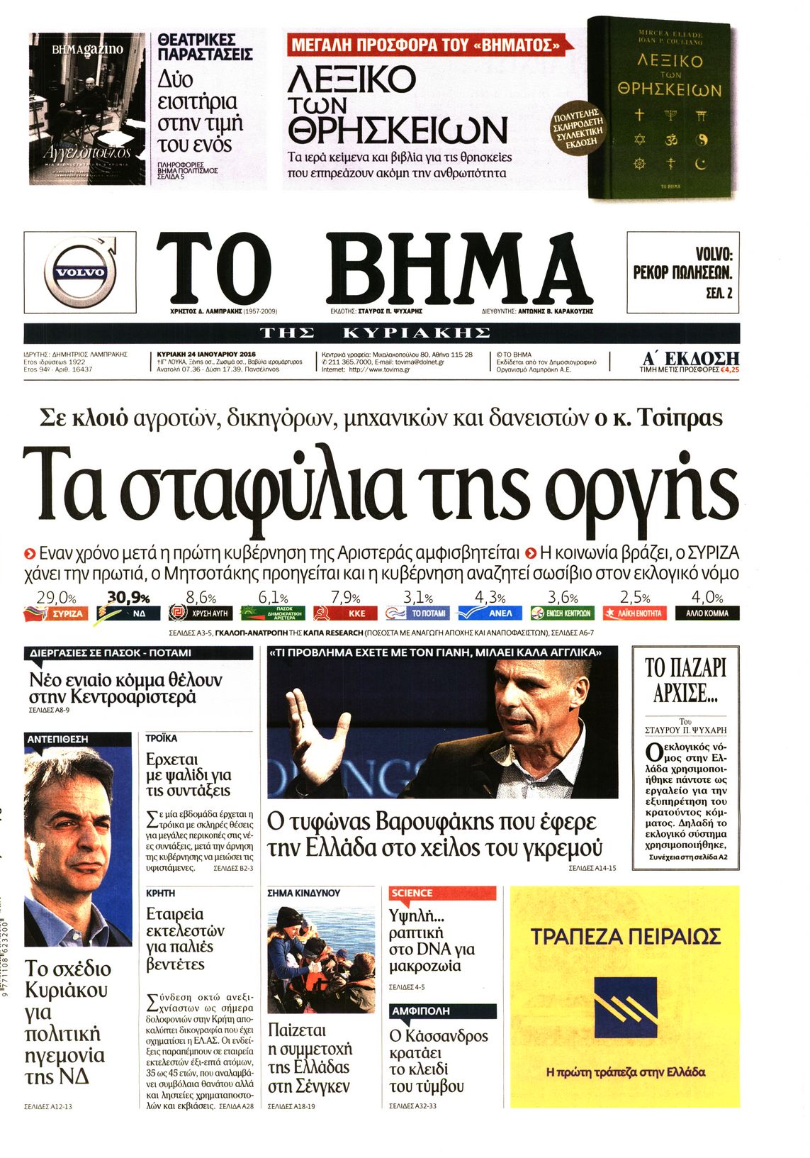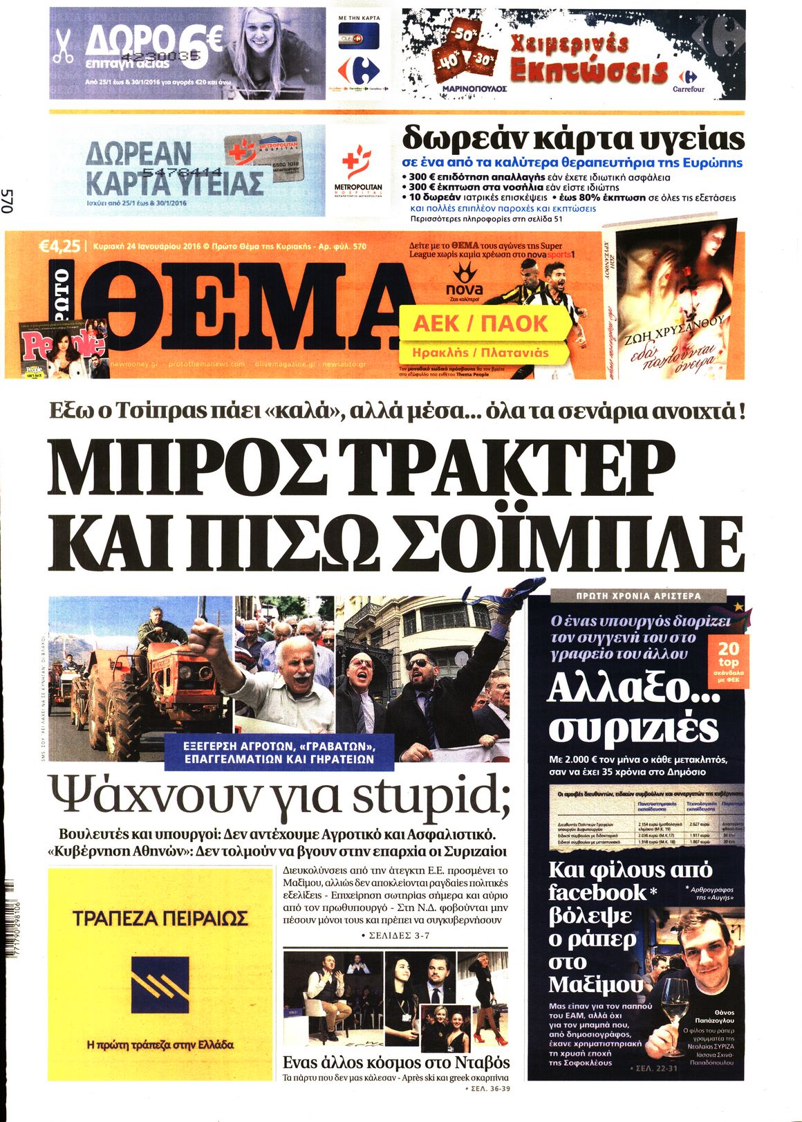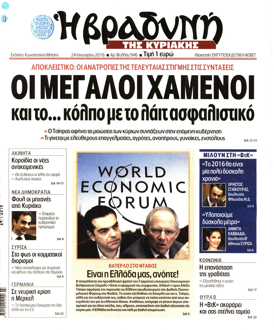 Oι πολιτικές εφημερίδες 24/1/2015 Enikos Newsroom 02:12, Κυριακή 24 Ιανουαρίου 2016 Media Διαβάστε τα σημερινά πρωτοσέλιδα των πολιτικών εφημερίδων: ΠΟΛΙΤΙΚΕΣ ΕΦΗΜΕΡΙΔΕΣ ΠΡΩΤΟΣΕΛΙΔΑ Μοιράσου το: σχολίασε κι εσύ (0 σχόλια) Ακολουθήστε το enikos.gr στο Google News και μάθετε πρώτοι όλες τις ειδήσεις Δείτε όλες τις τελευταίες ειδήσεις από την Ελλάδα και τον Κόσμο στο enikos.gr Ειδήσεις Ροή Ειδήσεων 2 ώρες πριν Μπλόκα: Οι αγρότες σηκώνουν τις μπάρες σε διόδια για τους εκδρομείς των Χριστουγέννων και μοιράζουν προϊόντα – Βίντεο 2 ώρες πριν Τσιάρας προς αγρότες: Τα μπλόκα και τα πείσματα δεν ωφελούν – Οι λύσεις περνούν μέσα από τον διάλογο 3 ώρες πριν Αρχεία Έπσταϊν: Οι συγκλονιστικές φωτογραφίες – Ο Μάικλ Τζάκσον, ο Μικ Τζάγκερ και ο Κέβιν Σπέισι ανάμεσα στους διάσημους που απεικονίζονται 1 ώρα πριν Μαθητές διακινούσαν κοκαΐνη και χασίς σε σχολείο της Αττικής – 12 συλλήψεις 1 ώρα πριν Βέλγιο: Άγνωστοι έριξαν κόκκινη μπογιά στο προξενείο της Πολωνίας στις Βρυξέλλες 5 ώρες πριν Μία νέα «χρυσή» περίοδος αρχίζει για 3 ζώδια από σήμερα – «Μία αναπάντεχη ευκαιρία οδηγεί στην επιτυχία» 4 ώρες πριν Διαιτολόγος αποκαλύπτει 9 πρωινές συνήθειες που «λιώνουν» το κοιλιακό λίπος – «Υποστηρίζουν την υγιεινή απώλεια βάρους» 5 ώρες πριν Οι 7 φράσεις που δεν λένε ποτέ οι συναισθηματικά έξυπνοι άνθρωποι κατά τη διάρκεια ενός καβγά 7 ώρες πριν Enerwave: Το νέο «ρεύμα» στη λιανική ενέργειας που αλλάζει την εμπειρία του καταναλωτή 6 λεπτά πριν Πακιστάν: Σε κάθειρξη 17 ετών καταδικάστηκαν ο πρώην πρωθυπουργός Ίμραν Χαν και η σύζυγός του 14 λεπτά πριν Μαρινάκης στον Realfm 97,8: Η κυβέρνηση σέβεται κάθε λογική διεκδίκηση των αγροτών, αλλά και το αίτημα των πολιτών να μην ταλαιπωρούνται 20 λεπτά πριν O Πάντερ MVP της 17ης αγωνιστικής στην Euroleague 29 λεπτά πριν Πέθανε η τραγουδίστρια Κλαούντια Ντελμέρ 37 λεπτά πριν Μία ανεκμετάλλευτη πηγή θα μπορούσε να προσφέρει ανεξάντλητη ενέργεια – Οι επιστήμονες ίσως γνωρίζουν πώς να την ξεκλειδώσουν ENIKOS NETWORK Η αποχή από την αναπαραγωγή παρατείνει τη ζωή στα ζώα, σύμφωνα με μελέτη – Τι ισχύει για τους ανθρώπους; Σημαντικές επαφές στις ΗΠΑ είχε ο υπουργός Υγείας Άδωνις Γεωργιάδης Ευλογιά αιγοπροβάτων: Παρατεταμένη επιζωοτία, αυστηρά μέτρα – Τι ισχύει για τον εμβολιασμό και την ανασύσταση του ζωικού κε... Τσιάρας προς αγρότες: Έχει ικανοποιηθεί το 74% των αιτημάτων – Τα μπλόκα και τα πείσματα δεν ωφελούν Χαρτογραφώντας το «σημείο χωρίς επιστροφή»: Για πρώτη φορά αποκαλύπτεται με λεπτομέρεια το ακανθώδες όριο της ατμόσφαιρας τ... Η Google καταργεί τη λειτουργία «dark web report» – Πώς θα μπορούν οι χρήστες να διαγράφουν τα δεδομένα τους περισσότερα 14:04 , Σάββατο 20 Δεκεμβρίου 2025 Η Realnews αυτής της Κυριακής (21/12/2025) Με τίτλο: «Ασπίδα προστασίας για την Ελλάδα» κυκλοφορεί, αυτήν την Κυριακή, η Realnews. Σημαντ... 12:53 , Σάββατο 20 Δεκεμβρίου 2025 Να μ’ αγαπάς: Το παρελθόν έρχεται στο φως – Καταιγιστικές εξελίξεις στα τελευταία επεισόδια του 2025 Ο Άγγελος αποκαλύπτεται, η Φωτεινή ανησυχεί για τον Λευτέρη και η Ζωή έρχεται αντιμέτωπη με το... 11:41 , Σάββατο 20 Δεκεμβρίου 2025 «Η αγάπη δεν χάνεται ποτέ»: Η μικρού μήκους ταινία κινουμένων σχεδίων που θέτει ερωτήματα για τη ζωή και τον θάνατο Ο θάνατος είναι ένα από τα πιο σκληρά θέματα που καλείται να διαχειριστεί κάποιος στη διάρκεια... 09:30 , Σάββατο 20 Δεκεμβρίου 2025 «Porto Leone: Στη γειτονιά με τα κόκκινα φανάρια» – Ο Χρόνης αποκαλύπτει στην Αλεξάνδρα το μυστικό για το πα