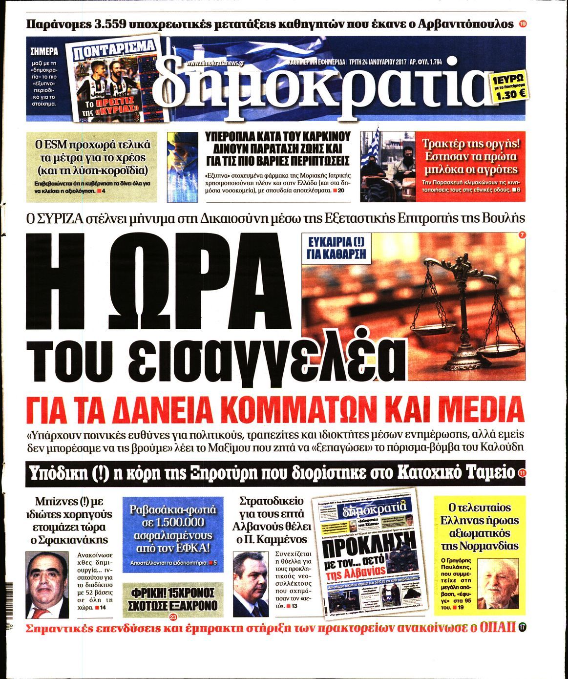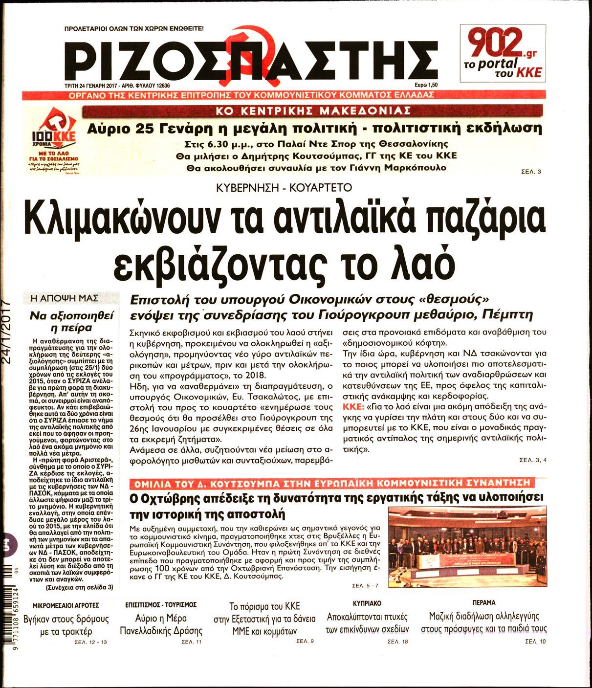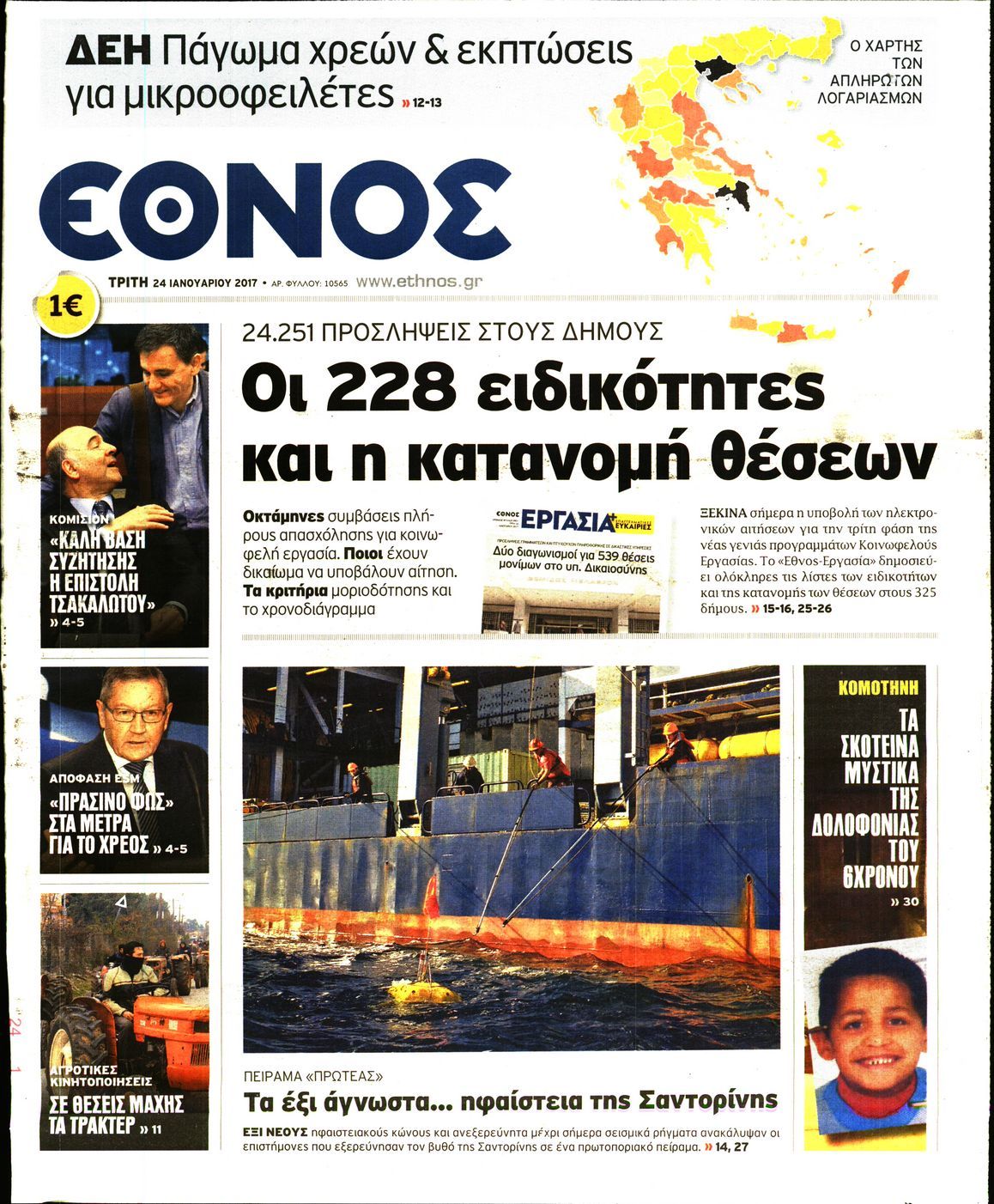 Οι πολιτικές εφημερίδες 24/1/2017 Enikos Newsroom 06:09, Τρίτη 24 Ιανουαρίου 2017 Media Διαβάστε τα σημερινά πρωτοσέλιδα των πολιτικών εφημερίδων: ΠΟΛΙΤΙΚΕΣ ΕΦΗΜΕΡΙΔΕΣ ΠΡΩΤΟΣΕΛΙΔΑ Μοιράσου το: σχολίασε κι εσύ (0 σχόλια) Ακολουθήστε το enikos.gr στο Google News και μάθετε πρώτοι όλες τις ειδήσεις Δείτε όλες τις τελευταίες ειδήσεις από την Ελλάδα και τον Κόσμο στο enikos.gr Ειδήσεις Ροή Ειδήσεων 2 ώρες πριν Κύκλωμα διακίνησης ναρκωτικών σε σχολεία: Βίντεο ντοκουμέντο από τα βασανιστήρια στους ανήλικους – Συζητούσαν για το πώς θα κάνουν «ξέπλυμα χρήματος» 47 λεπτά πριν Κλιμακώνουν τις κινητοποιήσεις τους οι αγρότες: Κλείνουν τη Δευτέρα τις σήραγγες των Τεμπών για τα φορτηγά – Ανοίγουν την Τρίτη τους δρόμους για τους εκδρομείς 2 ώρες πριν Αιματηρό επεισόδιο στον Άγιο Παντελεήμονα – Δύο τραυματίες, αναζητείται ο δράστης 55 λεπτά πριν ΗΠΑ: Αυξάνουν την πίεση στην Βενεζουέλα – Το νέο ρεσάλτο σε τάνκερ και ο στόχος του Τραμπ 1 ώρα πριν Κασσελάκης για παραίτηση Μάλαμα: «Η πορεία μας δεν θα καθοριστεί από μεμονωμένα πρόσωπα, μηχανισμούς και προσωπικές ατζέντες» 2 ώρες πριν Ύπνος: Τι είναι ο «κανόνας 3-3-3» που χρησιμοποιεί ένας γιατρός για να ξεχωρίσει την κόπωση από την αϋπνία 3 ώρες πριν Αριθμολογία: Οι άνθρωποι που έχουν γεννηθεί αυτές τις 4 ημερομηνίες, είναι οι πιο πιστοί και αφοσιωμένοι σύντροφοι 42 λεπτά πριν Αρχαιολογικό θρίλερ στην καρδιά της Ευρώπης: Παράξενο θραύσμα με ανάγλυφα και σφηνοειδή γραφή ανακαλύφθηκε σε μέρος που δεν περίμενε κανείς 2 ημέρες πριν Enerwave: Το νέο «ρεύμα» στη λιανική ενέργειας που αλλάζει την εμπειρία του καταναλωτή 23 λεπτά πριν Super League: Καλά… ΑΕΚούγεννα με «κιτρινόμαυρη» κορυφή, σε απόσταση αναπνοής ο Ολυμπιακός, στο -2 ο ΠΑΟΚ – Τα αποτελέσματα και η βαθμολογία 39 λεπτά πριν ΑΕΚ – ΟΦΗ 2-1: Γιορτές στην κορυφή με… ανατροπή 42 λεπτά πριν Αρχαιολογικό θρίλερ στην καρδιά της Ευρώπης: Παράξενο θραύσμα με ανάγλυφα και σφηνοειδή γραφή ανακαλύφθηκε σε μέρος που δεν περίμενε κανείς 47 λεπτά πριν Κλιμακώνουν τις κινητοποιήσεις τους οι αγρότες: Κλείνουν τη Δευτέρα τις σήραγγες των Τεμπών για τα φορτηγά – Ανοίγουν την Τρίτη τους δρόμους για τους εκδρομείς 48 λεπτά πριν Γουίτκοφ: «Εποικοδομητικές και παραγωγικές» οι συνομιλίες στο Μαϊάμι ENIKOS NETWORK Οι γυναίκες έχουν βρει μια νέα απόλαυση στην κρεβατοκάμαρα που οι περισσότεροι άνδρες αγνοούν Christmas glow: 5 χρυσές συμβουλές για επιδερμίδα που λάμπει από ομορφιά τα Χριστούγεννα Νέο έτος ρεκόρ για τον ελληνικό τουρισμό το 2025: «Είμαστε μέσα στους 10 πλέον επισκέψιμους προορισμούς παγκοσμίως» λέει η ... Τιμές καυσίμων: Πόσο θα πληρώσουν οι εκδρομείς των Χριστουγέννων – Το κόστος μετακινήσεων σε δημοφιλείς προορισμούς Χαρτογραφώντας το «σημείο χωρίς επιστροφή»: Για πρώτη φορά αποκαλύπτεται με λεπτομέρεια το ακανθώδες όριο της ατμόσφαιρας τ... Η Google καταργεί τη λειτουργία «dark web report» – Πώς θα μπορούν οι χρήστες να διαγράφουν τα δεδομένα τους περισσότερα 21:30 , Κυριακή 21 Δεκεμβρίου 2025 Ο Δικαστής: Στα χέρια της Αστυνομίας βίντεο, που ανατρέπει όλα τα δεδομένα – Στενεύει ο κλοιός γύρω από τον Δικαστή Καταιγιστικές εξελίξεις στο τελευταίο επεισόδιο της χρονιάς της σειράς “Ο Δικαστής”... 17:18 , Κυριακή 21 Δεκεμβρίου 2025 «Η Μεγάλη Χίμαιρα»: Μάγεψε το κοινό κατά την avant-première της προβολής της Την Πρωτοχρονιά (Πέμπτη 1η Ιανουαρίου 2026) στο ERTFLIX θα γίνει η πρεμιέρα της πολυαναμενόμεν... 15:08 , Κυριακή 21 Δεκεμβρίου 2025 Μια νύχτα μόνο: Η Αρετή κ