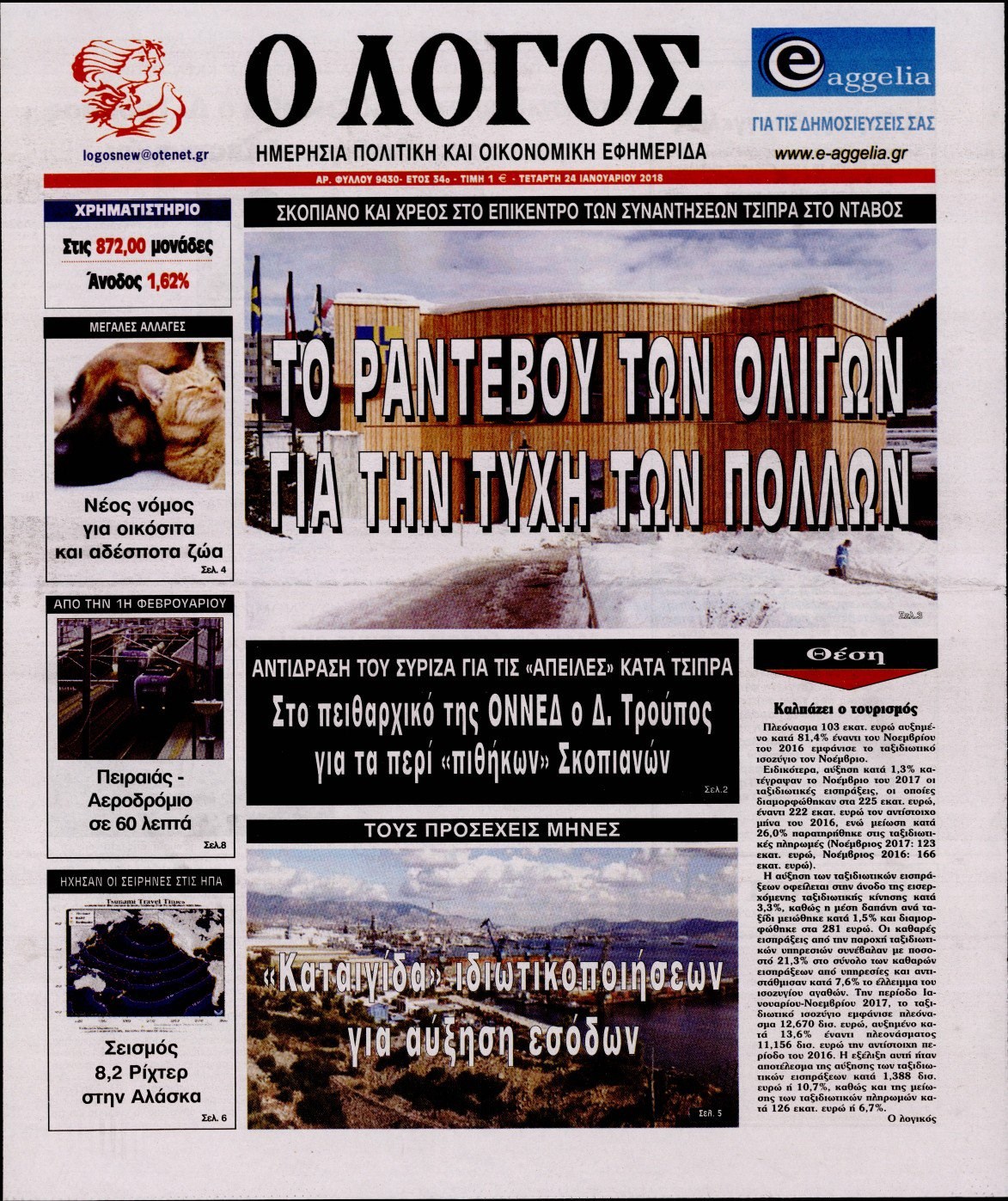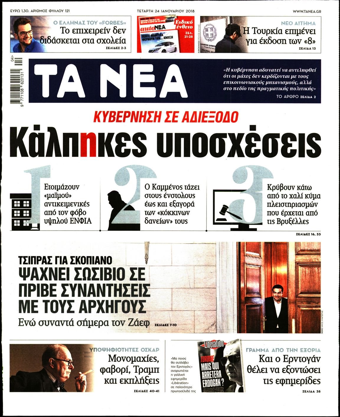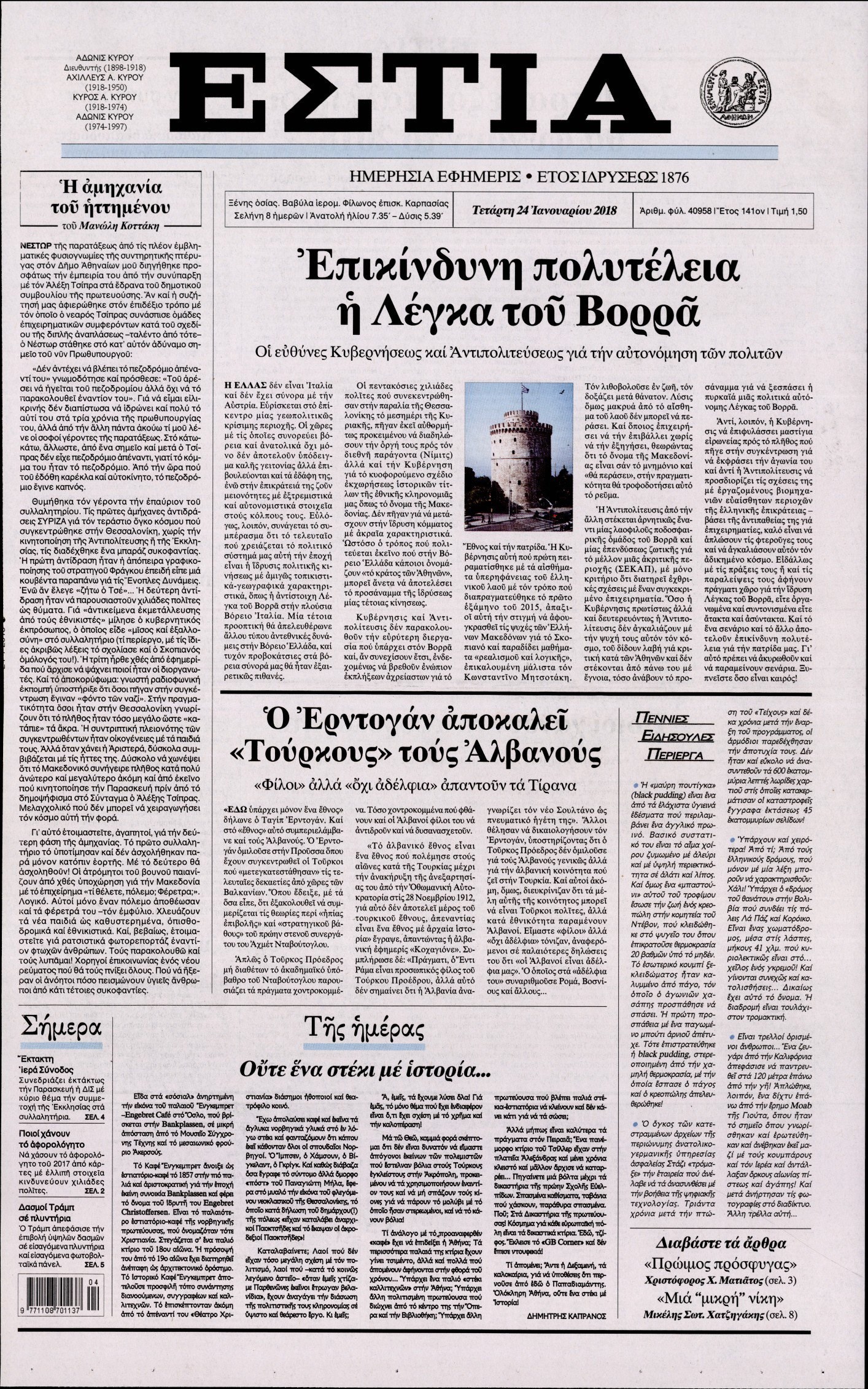 Οι πολιτικές εφημερίδες 24/1/2018 Enikos Newsroom 07:27, Τετάρτη 24 Ιανουαρίου 2018 Media Διαβάστε τα σημερινά πρωτοσέλιδα των πολιτικών εφημερίδων: ΠΟΛΙΤΙΚΕΣ ΕΦΗΜΕΡΙΔΕΣ ΠΡΩΤΟΣΕΛΙΔΑ Μοιράσου το: σχολίασε κι εσύ (0 σχόλια) Ακολουθήστε το enikos.gr στο Google News και μάθετε πρώτοι όλες τις ειδήσεις Δείτε όλες τις τελευταίες ειδήσεις από την Ελλάδα και τον Κόσμο στο enikos.gr Ειδήσεις Ροή Ειδήσεων 2 ώρες πριν Κύκλωμα διακίνησης ναρκωτικών σε σχολεία: Βίντεο ντοκουμέντο από τα βασανιστήρια στους ανήλικους – Συζητούσαν για το πώς θα κάνουν «ξέπλυμα χρήματος» 25 λεπτά πριν Κλιμακώνουν τις κινητοποιήσεις τους οι αγρότες: Κλείνουν τη Δευτέρα τις σήραγγες των Τεμπών για τα φορτηγά – Ανοίγουν την Τρίτη τους δρόμους για τους εκδρομείς 1 ώρα πριν Αιματηρό επεισόδιο στον Άγιο Παντελεήμονα – Δύο τραυματίες, αναζητείται ο δράστης 33 λεπτά πριν ΗΠΑ: Αυξάνουν την πίεση στην Βενεζουέλα – Το νέο ρεσάλτο σε τάνκερ και ο στόχος του Τραμπ 1 ώρα πριν Κασσελάκης για παραίτηση Μάλαμα: «Η πορεία μας δεν θα καθοριστεί από μεμονωμένα πρόσωπα, μηχανισμούς και προσωπικές ατζέντες» 1 ώρα πριν Ύπνος: Τι είναι ο «κανόνας 3-3-3» που χρησιμοποιεί ένας γιατρός για να ξεχωρίσει την κόπωση από την αϋπνία 2 ώρες πριν Αριθμολογία: Οι άνθρωποι που έχουν γεννηθεί αυτές τις 4 ημερομηνίες, είναι οι πιο πιστοί και αφοσιωμένοι σύντροφοι 20 λεπτά πριν Αρχαιολογικό θρίλερ στην καρδιά της Ευρώπης: Παράξενο θραύσμα με ανάγλυφα και σφηνοειδή γραφή ανακαλύφθηκε σε μέρος που δεν περίμενε κανείς 2 ημέρες πριν Enerwave: Το νέο «ρεύμα» στη λιανική ενέργειας που αλλάζει την εμπειρία του καταναλωτή 17 λεπτά πριν ΑΕΚ – ΟΦΗ 2-1: Γιορτές στην κορυφή με… ανατροπή 20 λεπτά πριν Αρχαιολογικό θρίλερ στην καρδιά της Ευρώπης: Παράξενο θραύσμα με ανάγλυφα και σφηνοειδή γραφή ανακαλύφθηκε σε μέρος που δεν περίμενε κανείς 25 λεπτά πριν Κλιμακώνουν τις κινητοποιήσεις τους οι αγρότες: Κλείνουν τη Δευτέρα τις σήραγγες των Τεμπών για τα φορτηγά – Ανοίγουν την Τρίτη τους δρόμους για τους εκδρομείς 26 λεπτά πριν Γουίτκοφ: «Εποικοδομητικές και παραγωγικές» οι συνομιλίες στο Μαϊάμι 33 λεπτά πριν ΗΠΑ: Αυξάνουν την πίεση στην Βενεζουέλα – Το νέο ρεσάλτο σε τάνκερ και ο στόχος του Τραμπ ENIKOS NETWORK Οι γυναίκες έχουν βρει μια νέα απόλαυση στην κρεβατοκάμαρα που οι περισσότεροι άνδρες αγνοούν Christmas glow: 5 χρυσές συμβουλές για επιδερμίδα που λάμπει από ομορφιά τα Χριστούγεννα Νέο έτος ρεκόρ για τον ελληνικό τουρισμό το 2025: «Είμαστε μέσα στους 10 πλέον επισκέψιμους προορισμούς παγκοσμίως» λέει η ... Τιμές καυσίμων: Πόσο θα πληρώσουν οι εκδρομείς των Χριστουγέννων – Το κόστος μετακινήσεων σε δημοφιλείς προορισμούς Χαρτογραφώντας το «σημείο χωρίς επιστροφή»: Για πρώτη φορά αποκαλύπτεται με λεπτομέρεια το ακανθώδες όριο της ατμόσφαιρας τ... Η Google καταργεί τη λειτουργία «dark web report» – Πώς θα μπορούν οι χρήστες να διαγράφουν τα δεδομένα τους περισσότερα 21:30 , Κυριακή 21 Δεκεμβρίου 2025 Ο Δικαστής: Στα χέρια της Αστυνομίας βίντεο, που ανατρέπει όλα τα δεδομένα – Στενεύει ο κλοιός γύρω από τον Δικαστή Καταιγιστικές εξελίξεις στο τελευταίο επεισόδιο της χρονιάς της σειράς “Ο Δικαστής”... 17:18 , Κυριακή 21 Δεκεμβρίου 2025 «Η Μεγάλη Χίμαιρα»: Μάγεψε το κοινό κατά την avant-première της προβολής της Την Πρωτοχρονιά (Πέμπτη 1η Ιανουαρίου 2026) στο ERTFLIX θα γίνει η πρεμιέρα της πολυαναμενόμεν... 15:08 , Κυριακή 21 Δεκεμβρίου 2025 Μια νύχτα μόνο: Η Αρετή και ο Οδυσσέας έρχονται και πάλι κοντά Το νέο ε