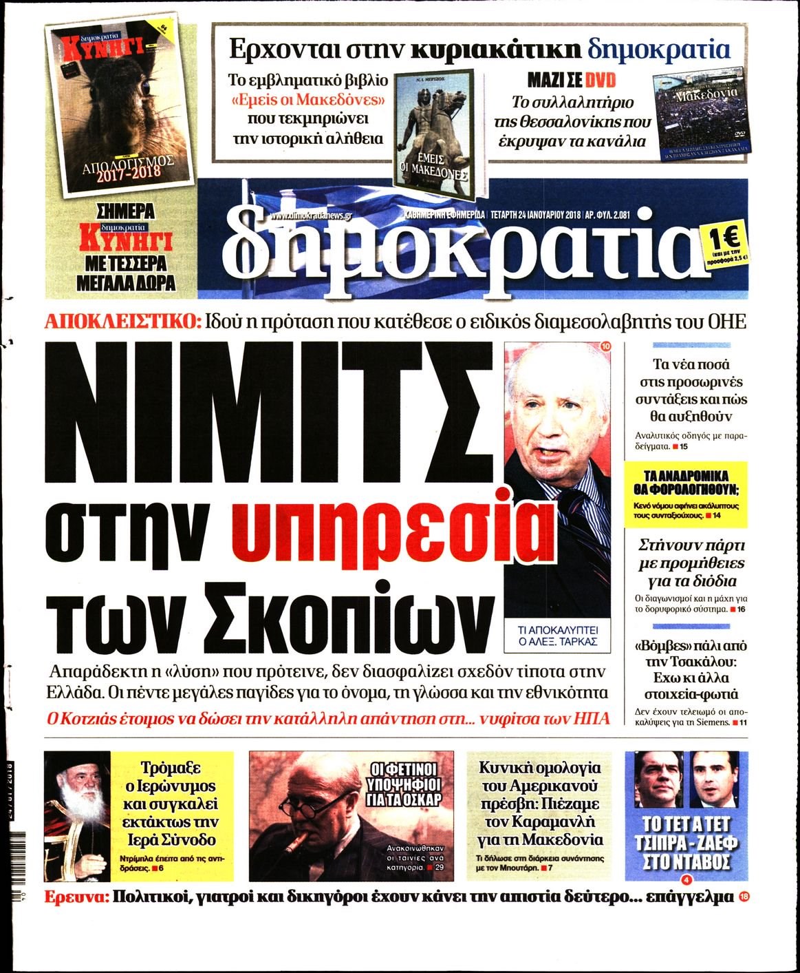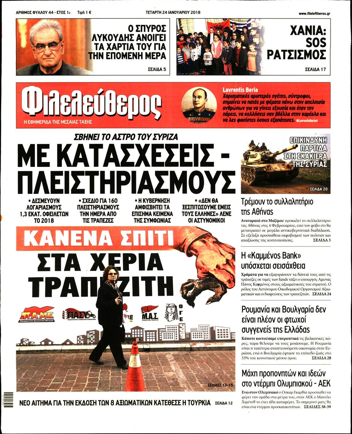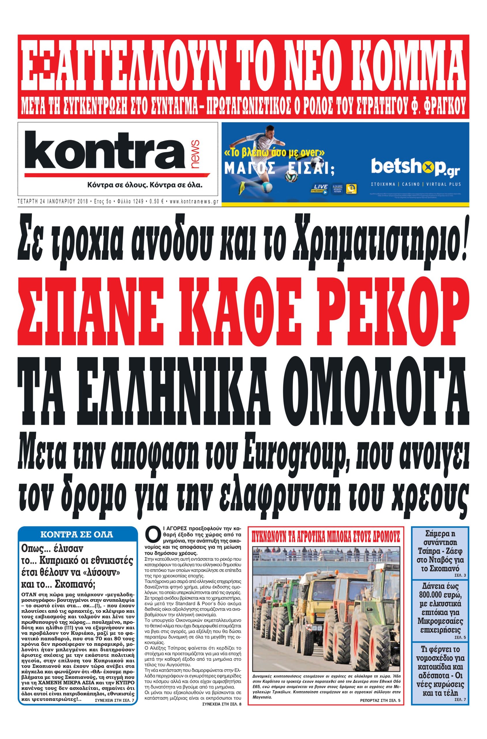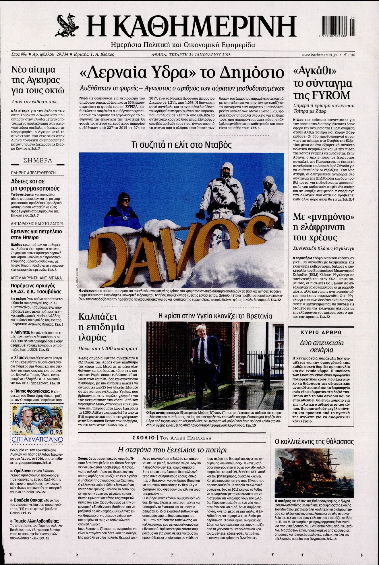 Οι πολιτικές εφημερίδες 24/1/2018 Enikos Newsroom 07:27, Τετάρτη 24 Ιανουαρίου 2018 Media Διαβάστε τα σημερινά πρωτοσέλιδα των πολιτικών εφημερίδων: ΠΟΛΙΤΙΚΕΣ ΕΦΗΜΕΡΙΔΕΣ ΠΡΩΤΟΣΕΛΙΔΑ Μοιράσου το: σχολίασε κι εσύ (0 σχόλια) Ακολουθήστε το enikos.gr στο Google News και μάθετε πρώτοι όλες τις ειδήσεις Δείτε όλες τις τελευταίες ειδήσεις από την Ελλάδα και τον Κόσμο στο enikos.gr Ειδήσεις Ροή Ειδήσεων 2 ώρες πριν Κύκλωμα διακίνησης ναρκωτικών σε σχολεία: Βίντεο ντοκουμέντο από τα βασανιστήρια στους ανήλικους – Συζητούσαν για το πώς θα κάνουν «ξέπλυμα χρήματος» 25 λεπτά πριν Κλιμακώνουν τις κινητοποιήσεις τους οι αγρότες: Κλείνουν τη Δευτέρα τις σήραγγες των Τεμπών για τα φορτηγά – Ανοίγουν την Τρίτη τους δρόμους για τους εκδρομείς 1 ώρα πριν Αιματηρό επεισόδιο στον Άγιο Παντελεήμονα – Δύο τραυματίες, αναζητείται ο δράστης 33 λεπτά πριν ΗΠΑ: Αυξάνουν την πίεση στην Βενεζουέλα – Το νέο ρεσάλτο σε τάνκερ και ο στόχος του Τραμπ 1 ώρα πριν Κασσελάκης για παραίτηση Μάλαμα: «Η πορεία μας δεν θα καθοριστεί από μεμονωμένα πρόσωπα, μηχανισμούς και προσωπικές ατζέντες» 1 ώρα πριν Ύπνος: Τι είναι ο «κανόνας 3-3-3» που χρησιμοποιεί ένας γιατρός για να ξεχωρίσει την κόπωση από την αϋπνία 2 ώρες πριν Αριθμολογία: Οι άνθρωποι που έχουν γεννηθεί αυτές τις 4 ημερομηνίες, είναι οι πιο πιστοί και αφοσιωμένοι σύντροφοι 20 λεπτά πριν Αρχαιολογικό θρίλερ στην καρδιά της Ευρώπης: Παράξενο θραύσμα με ανάγλυφα και σφηνοειδή γραφή ανακαλύφθηκε σε μέρος που δεν περίμενε κανείς 2 ημέρες πριν Enerwave: Το νέο «ρεύμα» στη λιανική ενέργειας που αλλάζει την εμπειρία του καταναλωτή 17 λεπτά πριν ΑΕΚ – ΟΦΗ 2-1: Γιορτές στην κορυφή με… ανατροπή 20 λεπτά πριν Αρχαιολογικό θρίλερ στην καρδιά της Ευρώπης: Παράξενο θραύσμα με ανάγλυφα και σφηνοειδή γραφή ανακαλύφθηκε σε μέρος που δεν περίμενε κανείς 25 λεπτά πριν Κλιμακώνουν τις κινητοποιήσεις τους οι αγρότες: Κλείνουν τη Δευτέρα τις σήραγγες των Τεμπών για τα φορτηγά – Ανοίγουν την Τρίτη τους δρόμους για τους εκδρομείς 26 λεπτά πριν Γουίτκοφ: «Εποικοδομητικές και παραγωγικές» οι συνομιλίες στο Μαϊάμι 33 λεπτά πριν ΗΠΑ: Αυξάνουν την πίεση στην Βενεζουέλα – Το νέο ρεσάλτο σε τάνκερ και ο στόχος του Τραμπ ENIKOS NETWORK Οι γυναίκες έχουν βρει μια νέα απόλαυση στην κρεβατοκάμαρα που οι περισσότεροι άνδρες αγνοούν Christmas glow: 5 χρυσές συμβουλές για επιδερμίδα που λάμπει από ομορφιά τα Χριστούγεννα Νέο έτος ρεκόρ για τον ελληνικό τουρισμό το 2025: «Είμαστε μέσα στους 10 πλέον επισκέψιμους προορισμούς παγκοσμίως» λέει η ... Τιμές καυσίμων: Πόσο θα πληρώσουν οι εκδρομείς των Χριστουγέννων – Το κόστος μετακινήσεων σε δημοφιλείς προορισμούς Χαρτογραφώντας το «σημείο χωρίς επιστροφή»: Για πρώτη φορά αποκαλύπτεται με λεπτομέρεια το ακανθώδες όριο της ατμόσφαιρας τ... Η Google καταργεί τη λειτουργία «dark web report» – Πώς θα μπορούν οι χρήστες να διαγράφουν τα δεδομένα τους περισσότερα 21:30 , Κυριακή 21 Δεκεμβρίου 2025 Ο Δικαστής: Στα χέρια της Αστυνομίας βίντεο, που ανατρέπει όλα τα δεδομένα – Στενεύει ο κλοιός γύρω από τον Δικαστή Καταιγιστικές εξελίξεις στο τελευταίο επεισόδιο της χρονιάς της σειράς “Ο Δικαστής”... 17:18 , Κυριακή 21 Δεκεμβρίου 2025 «Η Μεγάλη Χίμαιρα»: Μάγεψε το κοινό κατά την avant-première της προβολής της Την Πρωτοχρονιά (Πέμπτη 1η Ιανουαρίου 2026) στο ERTFLIX θα γίνει η πρεμιέρα της πολυαναμενόμεν... 15:08 , Κυριακή 21 Δεκεμβρίου 2025 Μια νύχτα μόνο: Η Αρετή και ο Οδυσσέας έρχονται και πάλι κοντά Το νέο ε