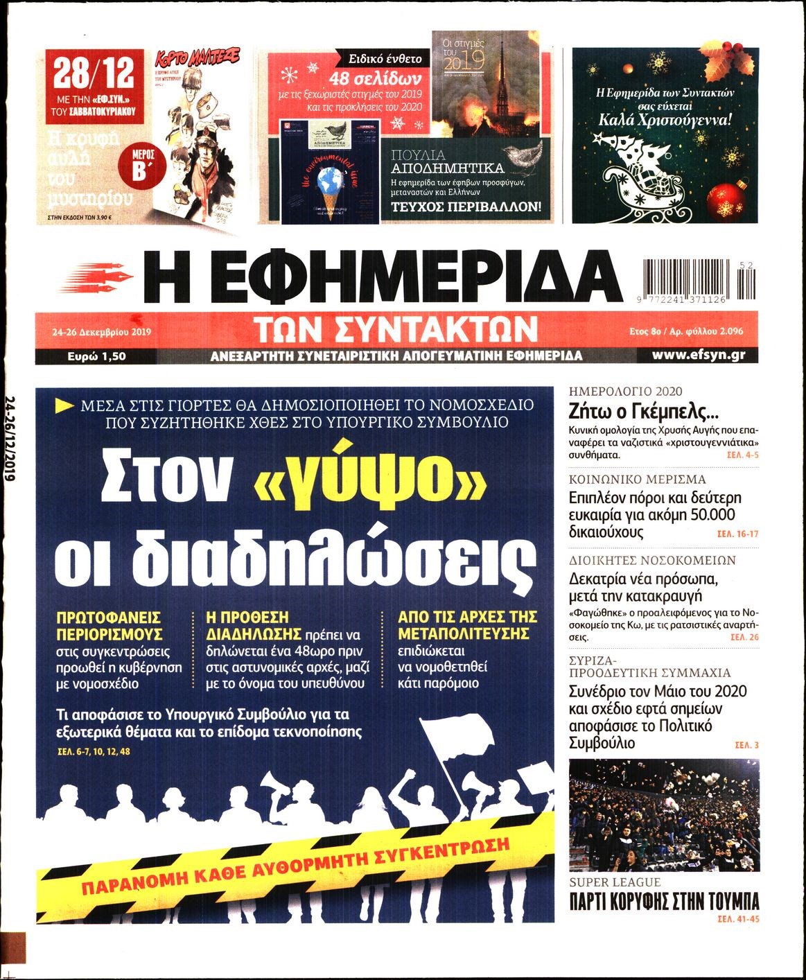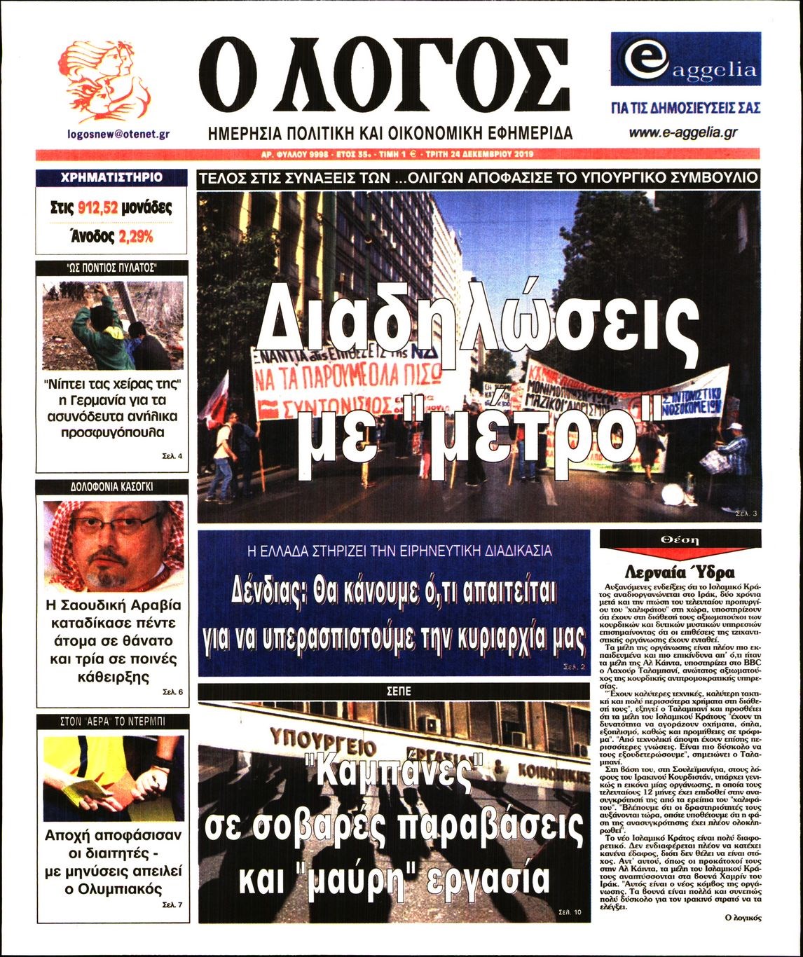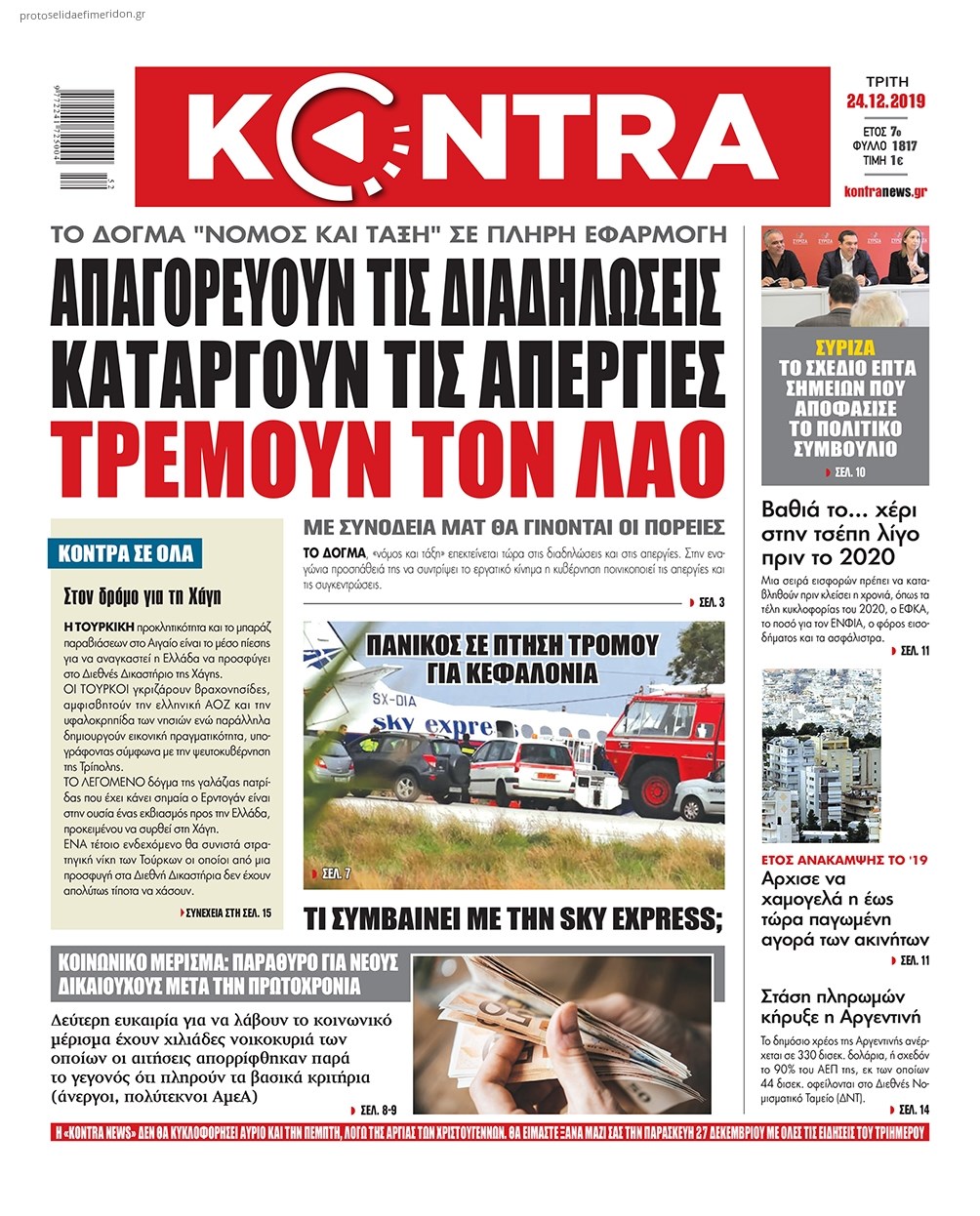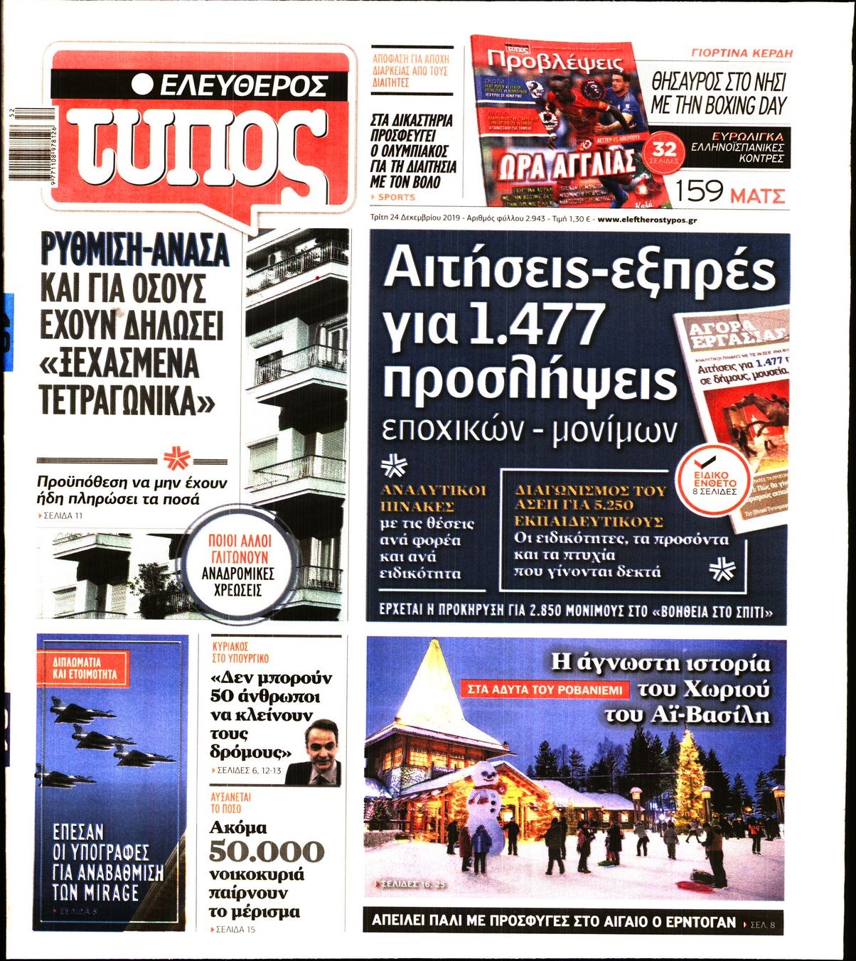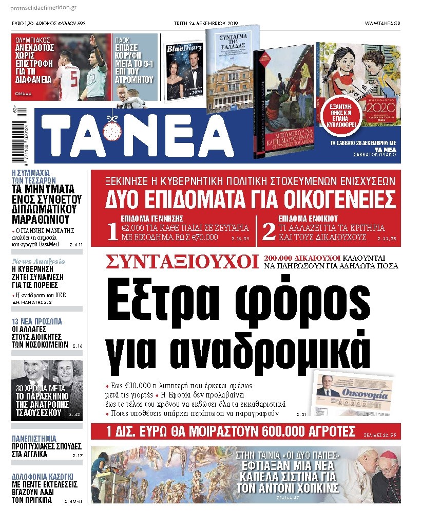 Οι πολιτικές εφημερίδες 24/12/2019 Κώστας Τεό 07:05, Τρίτη 24 Δεκεμβρίου 2019 Media Διαβάστε τα πρωτοσέλιδα των πολιτικών εφημερίδων: ΕΦΗΜΕΡΙΔΕΣ ΠΟΛΙΤΙΚΕΣ ΕΦΗΜΕΡΙΔΕΣ ΠΡΩΤΟΣΕΛΙΔΑ Μοιράσου το: σχολίασε κι εσύ (0 σχόλια) Ακολουθήστε το enikos.gr στο Google News και μάθετε πρώτοι όλες τις ειδήσεις Δείτε όλες τις τελευταίες ειδήσεις από την Ελλάδα και τον Κόσμο στο enikos.gr Ειδήσεις Ροή Ειδήσεων 3 ώρες πριν Κύκλωμα διακίνησης ναρκωτικών σε σχολεία: Βίντεο ντοκουμέντο από τα βασανιστήρια στους ανήλικους – Συζητούσαν για το πώς θα κάνουν «ξέπλυμα χρήματος» 1 ώρα πριν Κλιμακώνουν τις κινητοποιήσεις τους οι αγρότες: Κλείνουν τη Δευτέρα τις σήραγγες των Τεμπών για τα φορτηγά – Ανοίγουν την Τρίτη τους δρόμους για τους εκδρομείς 3 ώρες πριν Αιματηρό επεισόδιο στον Άγιο Παντελεήμονα – Δύο τραυματίες, αναζητείται ο δράστης 2 ώρες πριν ΗΠΑ: Αυξάνουν την πίεση στην Βενεζουέλα – Το νέο ρεσάλτο σε τάνκερ και ο στόχος του Τραμπ 2 ώρες πριν Κασσελάκης για παραίτηση Μάλαμα: «Η πορεία μας δεν θα καθοριστεί από μεμονωμένα πρόσωπα, μηχανισμούς και προσωπικές ατζέντες» 2 ώρες πριν Ύπνος: Τι είναι ο «κανόνας 3-3-3» που χρησιμοποιεί ένας γιατρός για να ξεχωρίσει την κόπωση από την αϋπνία 3 ώρες πριν Αριθμολογία: Οι άνθρωποι που έχουν γεννηθεί αυτές τις 4 ημερομηνίες, είναι οι πιο πιστοί και αφοσιωμένοι σύντροφοι 1 ώρα πριν Αρχαιολογικό θρίλερ στην καρδιά της Ευρώπης: Παράξενο θραύσμα με ανάγλυφα και σφηνοειδή γραφή ανακαλύφθηκε σε μέρος που δεν περίμενε κανείς 2 ημέρες πριν Enerwave: Το νέο «ρεύμα» στη λιανική ενέργειας που αλλάζει την εμπειρία του καταναλωτή 13 λεπτά πριν MasterChef: Στον… αέρα το τρέιλερ του 10ου κύκλου – ΒΙΝΤΕΟ 27 λεπτά πριν Περιστέρι: Έφοδος της Αστυνομίας σε νυχτερινό κέντρο που σέρβιρε αλκοόλ σε ανήλικους – Μία σύλληψη 36 λεπτά πριν Γουατεμάλα: 12 νεκροί κοντά στην πρωτεύουσα – Για ξεκαθάρισμα λογαριασμών κάνουν λόγο οι Αρχές 49 λεπτά πριν Μαρόκο – Κομόρες 2-0: Ιδανική πρεμιέρα στο Copa Africa με… αριστούργημα του Ελ Κααμπί – Δείτε Βίντεο 1 ώρα πριν Super League: Καλά… ΑΕΚούγεννα με «κιτρινόμαυρη» κορυφή, σε απόσταση αναπνοής ο Ολυμπιακός, στο -2 ο ΠΑΟΚ – Τα αποτελέσματα και η βαθμολογία ENIKOS NETWORK Οι γυναίκες έχουν βρει μια νέα απόλαυση στην κρεβατοκάμαρα που οι περισσότεροι άνδρες αγνοούν Christmas glow: 5 χρυσές συμβουλές για επιδερμίδα που λάμπει από ομορφιά τα Χριστούγεννα Νέο έτος ρεκόρ για τον ελληνικό τουρισμό το 2025: «Είμαστε μέσα στους 10 πλέον επισκέψιμους προορισμούς παγκοσμίως» λέει η ... Τιμές καυσίμων: Πόσο θα πληρώσουν οι εκδρομείς των Χριστουγέννων – Το κόστος μετακινήσεων σε δημοφιλείς προορισμούς Χαρτογραφώντας το «σημείο χωρίς επιστροφή»: Για πρώτη φορά αποκαλύπτεται με λεπτομέρεια το ακανθώδες όριο της ατμόσφαιρας τ... Η Google καταργεί τη λειτουργία «dark web report» – Πώς θα μπορούν οι χρήστες να διαγράφουν τα δεδομένα τους περισσότερα 00:13 , Δευτέρα 22 Δεκεμβρίου 2025 MasterChef: Στον… αέρα το τρέιλερ του 10ου κύκλου – ΒΙΝΤΕΟ Κυκλοφόρησε το τρέιλερ για τον 10ο κύκλο του MasterChef, σηματοδοτώντας την επιστροφή του δημο... 21:30 , Κυριακή 21 Δεκεμβρίου 2025 Ο Δικαστής: Στα χέρια της Αστυνομίας βίντεο, που ανατρέπει όλα τα δεδομένα – Στενεύει ο κλοιός γύρω από τον Δικαστή Καταιγιστικές εξελίξεις στο τελευταίο επεισόδιο της χρονιάς της σειράς “Ο Δικαστής”... 17:18 , Κυριακή 21 Δεκεμβρίου 2025 «Η Μεγάλη Χίμαιρα»: Μάγεψε το κοινό κατά την avant-première της προβολής της Την Πρωτοχρονιά (Πέμπτη 1η Ιανουαρίου 2026) στο ERTFLIX θ