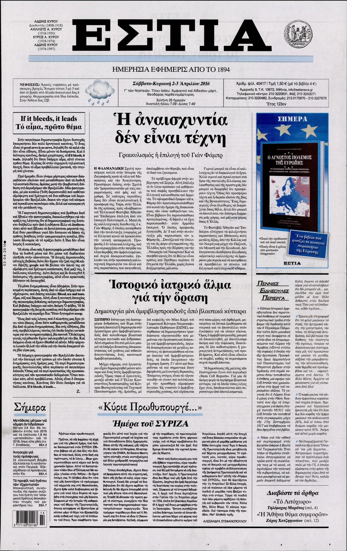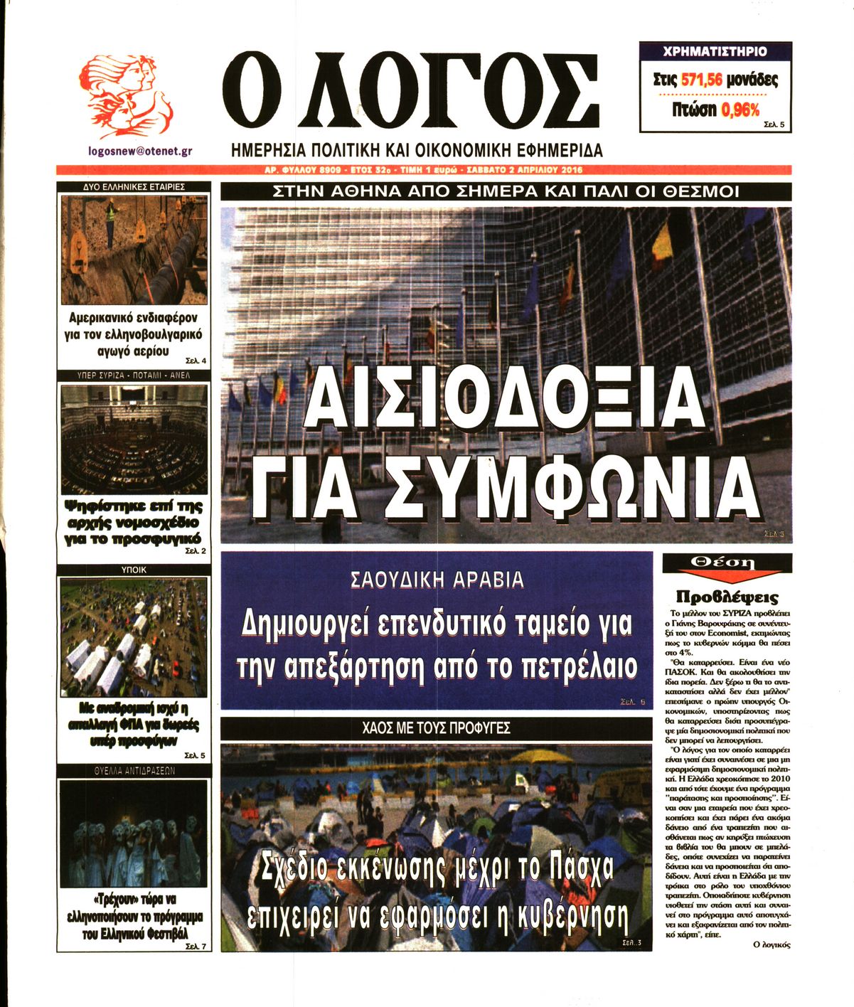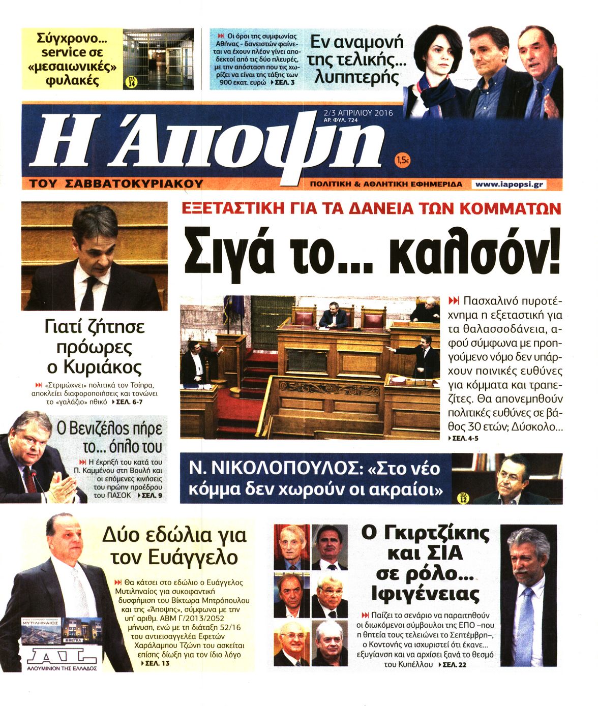 Οι πολιτικές εφημερίδες 2/4/2016 Enikos Newsroom 05:56, Σάββατο 02 Απριλίου 2016 Media Διαβάστε τα σημερινά πρωτοσέλιδα των πολιτικών εφημερίδων: ΠΟΛΙΤΙΚΕΣ ΕΦΗΜΕΡΙΔΕΣ ΠΡΩΤΟΣΕΛΙΔΑ Μοιράσου το: σχολίασε κι εσύ (0 σχόλια) Ακολουθήστε το enikos.gr στο Google News και μάθετε πρώτοι όλες τις ειδήσεις Δείτε όλες τις τελευταίες ειδήσεις από την Ελλάδα και τον Κόσμο στο enikos.gr Ειδήσεις Ροή Ειδήσεων 6 λεπτά πριν «Έλληνας Εσκομπάρ»: Φωτογραφίες με τους 4 τόνους κοκαΐνης που κατασχέθηκαν από το σκάφος «Ουρανία» 3 ώρες πριν Η Ουκρανία χτύπησε τάνκερ του σκιώδους στόλου της Ρωσίας στη Μεσόγειο – Έπλεε νότια της Κρήτης 1 ώρα πριν Πούτιν: Σαρκαστικά μηνύματα, παράπονα και απρόοπτα στη συνέντευξη Τύπου – Η πρόταση γάμου on air και οι ερωτήσεις για τα αγγούρια και τους… εξωγήινους 2 ώρες πριν Η απάντηση της κυβέρνησης στα αιτήματα των αγροτών: 16+4 υλοποιούνται ή βρίσκονται υπό επεξεργασία για να βρεθεί λύση – 7 δεν μπορούν να επιλυθούν 2 ώρες πριν Εξώδικο επιχειρηματία στον Γιώργο Μαζωνάκη – Τι απαντά στις καταγγελίες του τραγουδιστή 1 ώρα πριν Τα 5 ζώδια που ευνοούνται στην ερωτική ζωή τους την επόμενη εβδομάδα – «Η ενέργεια του Αιγόκερου φέρνει αγάπη και σταθερότητα» 6 ώρες πριν Γεμάτος νεροχύτης; 5 σοβαρές ευθύνες που «φοβίζουν» όσους αφήνουν άπλυτα πιάτα 5 ώρες πριν Ειδικός μοιράζεται 6 κόλπα για να διατηρείστε σε φόρμα με πάνω από 40 ώρες εργασίας την εβδομάδα: «Προπονηθείτε πριν από τη δουλειά, όχι μετά» 2 ημέρες πριν 20 χρόνια τα Χριστούγεννα ξεκινούν στα Public με μεγάλη ποικιλία σε δώρα! 2 λεπτά πριν Πούτιν: «Δεν είμαι υπεύθυνος» για τους θανάτους στην Ουκρανία – Σχέδιο για κατάπαυση του πυρός αν ο Ζελένσκι κάνει εκλογές 4 λεπτά πριν Κουίζ για την παλιά Αθήνα: Αναγνωρίζετε την περιοχή; Έχετε περάσει 100% από εκεί 6 λεπτά πριν «Έλληνας Εσκομπάρ»: Φωτογραφίες με τους 4 τόνους κοκαΐνης που κατασχέθηκαν από το σκάφος «Ουρανία» 11 λεπτά πριν Μακρόν: Η Ευρώπη πρέπει να συνεργαστεί με τον Πούτιν αν αποτύχουν οι προσπάθειες των ΗΠΑ για ειρηνευτική συμφωνία 16 λεπτά πριν ΟΠΑΠ: Φρέσκια και δυναμική καμπάνια για το Υπεύθυνο Παιχνίδι με Χριστουγεννιάτικη διάθεση ENIKOS NETWORK ΕΛΣΤΑΤ: Αύξηση κατά 1,7% των επαγγελματιών υγείας το 2024 Τάξη στις ιατρικές διαφημίσεις για την προστασία των πολιτών βάζει ο ΙΣΑ Παπαθανάσης για νέο Εθνικό Πρόγραμμα Ανάπτυξης 2026-2030: Είναι υπερδιπλάσιο από αυτό της προηγούμενης προγραμματικής περιό... Βουλή: Υπερψηφίστηκε το νομοσχέδιο για τη μετάβαση του ΟΠΕΚΕΠΕ στην ΑΑΔΕ Χαρτογραφώντας το «σημείο χωρίς επιστροφή»: Για πρώτη φορά αποκαλύπτεται με λεπτομέρεια το ακανθώδες όριο της ατμόσφαιρας τ... Η Google καταργεί τη λειτουργία «dark web report» – Πώς θα μπορούν οι χρήστες να διαγράφουν τα δεδομένα τους περισσότερα 15:15 , Παρασκευή 19 Δεκεμβρίου 2025 Την Κυριακή με τη Realnews: Ό,τι και αν αγοράσεις, σκανάρεις και κερδίζεις! Την Κυριακή με τη Realnews: Ό,τι και αν αγοράσεις, σκανάρεις και κερδίζεις! Με το PADU app, το... 08:00 , Παρασκευή 19 Δεκεμβρίου 2025 Την Κυριακή με τη Realnews: Δωροεπιταγή 10€ Δωροεπιταγή αξίας 10€ για αγορές άνω των 60€ από τα πολυκαταστήματα FactoryOutlet H προσφορά ι... 05:48 , Παρασκευή 19 Δεκεμβρίου 2025 Οι οικονομικές εφημερίδες 19/12/2025 Διαβάστε τα πρωτοσέλιδα από τις οικονομικές εφημερίδες, σήμερα 19/12/2025. 05:43 , Παρασκευή 19 Δεκεμβρίου 2025 Οι αθλητικές εφημερίδες 19/12/2025 Διαβάστε τα πρωτοσέλιδα από τις αθλητικές εφημερίδες, σήμερα 19/12/2025. ΤΕΛΕΥΤΑΙΕΣ ΕΙΔΗΣΕΙΣ 4 λεπτά πριν Κουίζ για την παλιά Αθήνα: Αναγνωρίζετε την