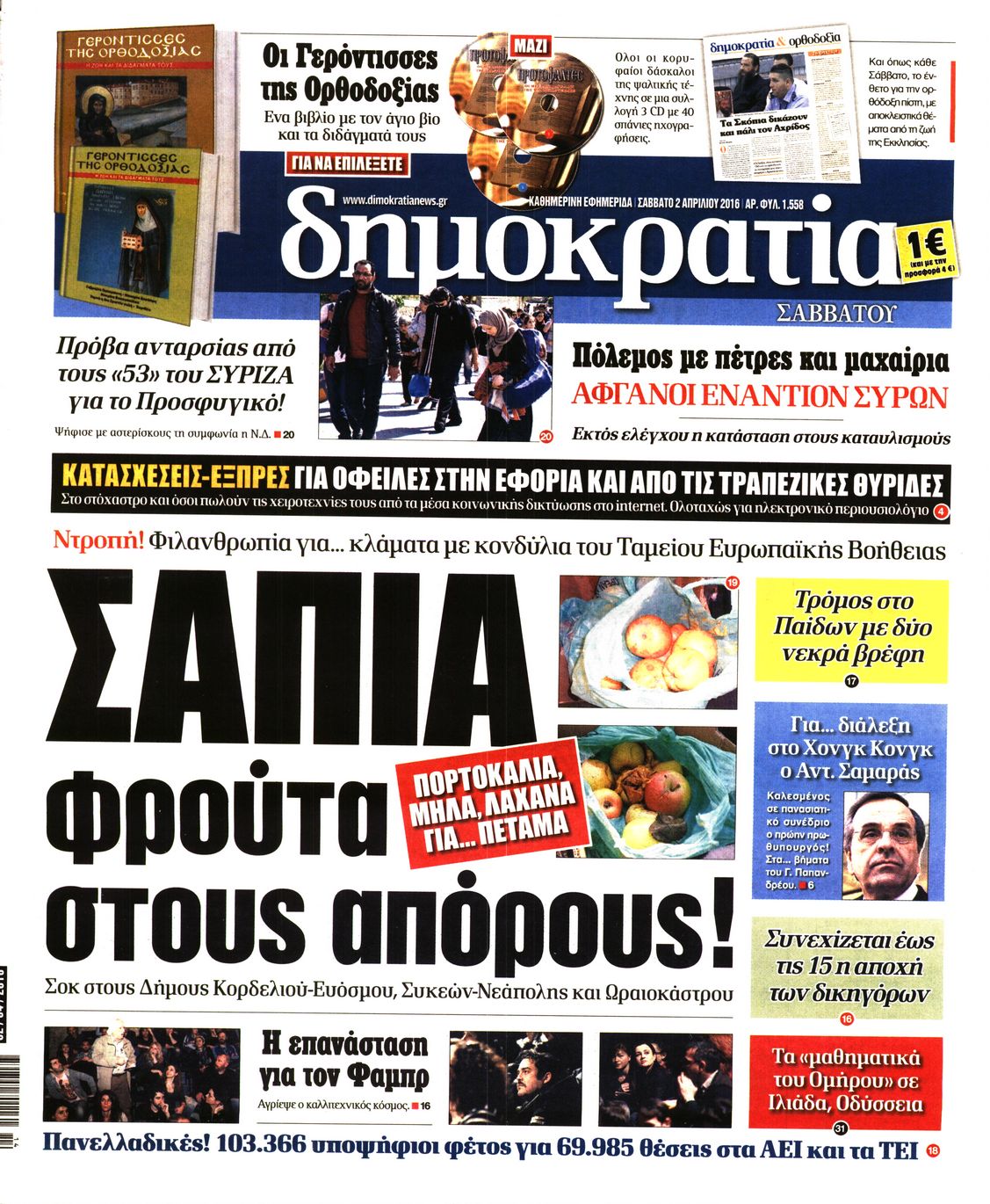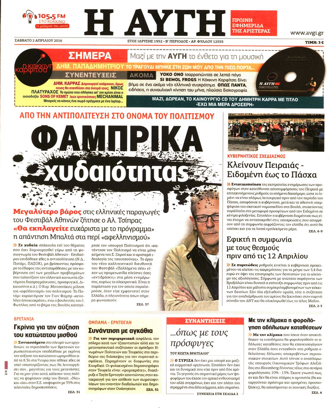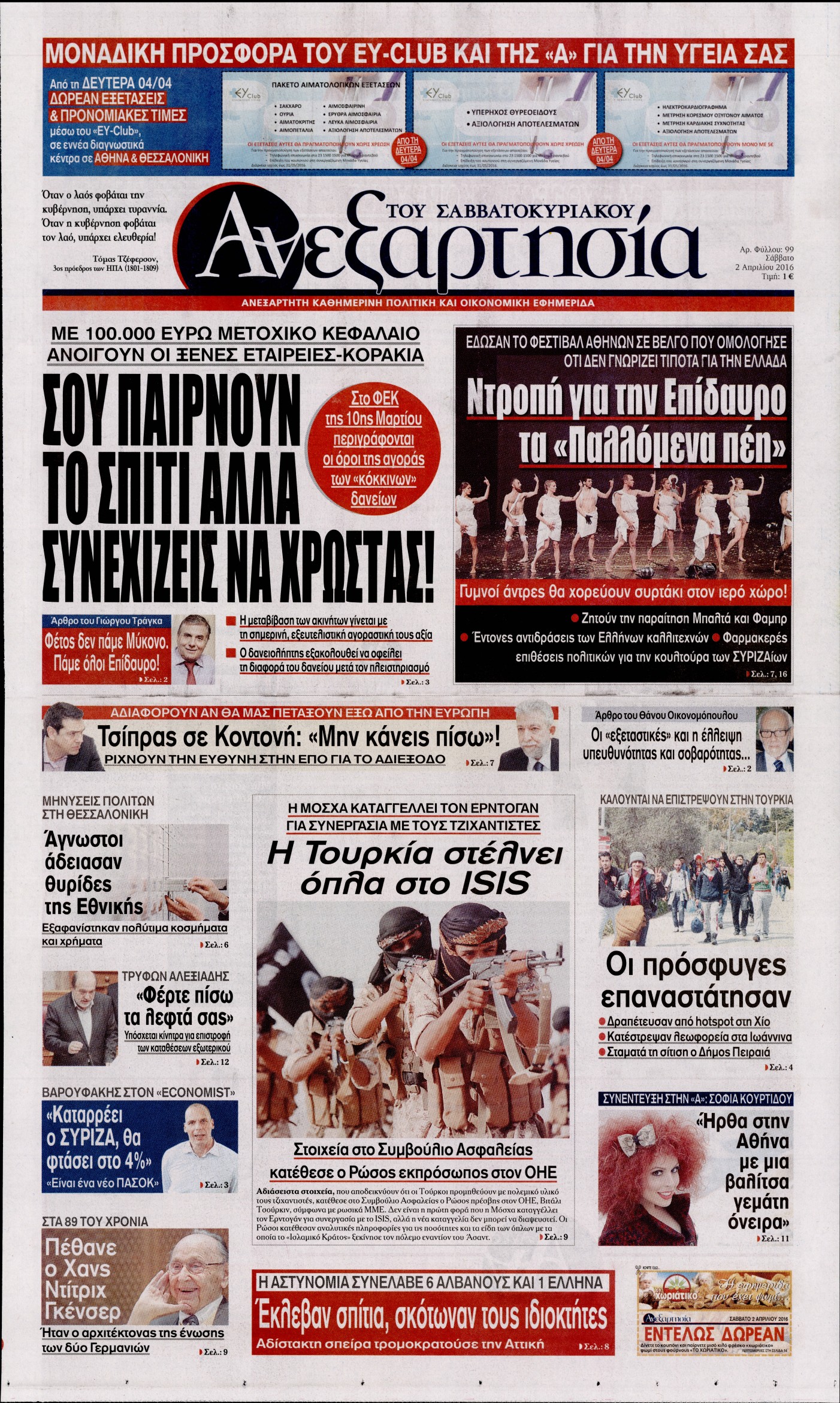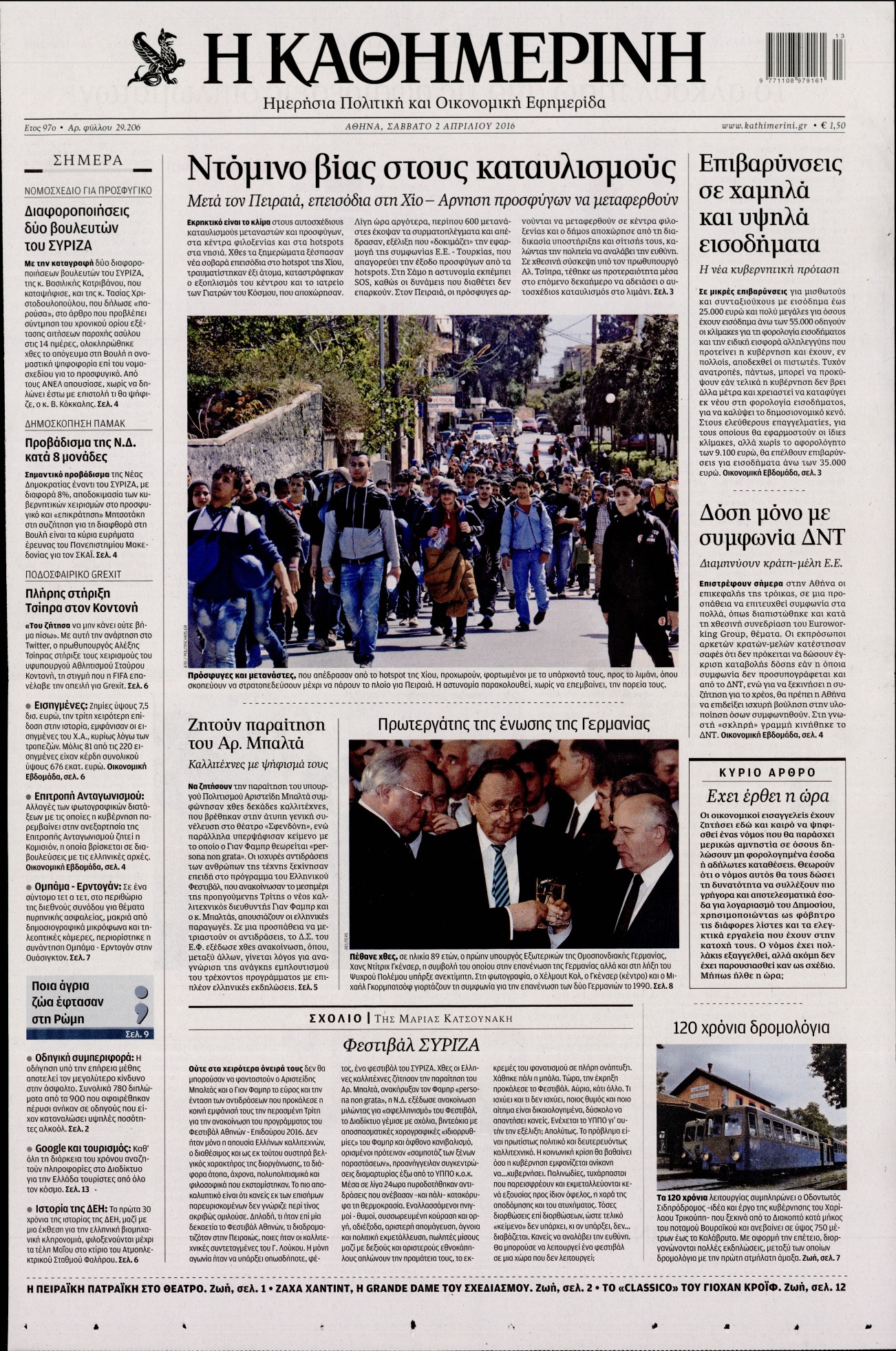 Οι πολιτικές εφημερίδες 2/4/2016 Enikos Newsroom 05:56, Σάββατο 02 Απριλίου 2016 Media Διαβάστε τα σημερινά πρωτοσέλιδα των πολιτικών εφημερίδων: ΠΟΛΙΤΙΚΕΣ ΕΦΗΜΕΡΙΔΕΣ ΠΡΩΤΟΣΕΛΙΔΑ Μοιράσου το: σχολίασε κι εσύ (0 σχόλια) Ακολουθήστε το enikos.gr στο Google News και μάθετε πρώτοι όλες τις ειδήσεις Δείτε όλες τις τελευταίες ειδήσεις από την Ελλάδα και τον Κόσμο στο enikos.gr Ειδήσεις Ροή Ειδήσεων 6 λεπτά πριν «Έλληνας Εσκομπάρ»: Φωτογραφίες με τους 4 τόνους κοκαΐνης που κατασχέθηκαν από το σκάφος «Ουρανία» 3 ώρες πριν Η Ουκρανία χτύπησε τάνκερ του σκιώδους στόλου της Ρωσίας στη Μεσόγειο – Έπλεε νότια της Κρήτης 1 ώρα πριν Πούτιν: Σαρκαστικά μηνύματα, παράπονα και απρόοπτα στη συνέντευξη Τύπου – Η πρόταση γάμου on air και οι ερωτήσεις για τα αγγούρια και τους… εξωγήινους 2 ώρες πριν Η απάντηση της κυβέρνησης στα αιτήματα των αγροτών: 16+4 υλοποιούνται ή βρίσκονται υπό επεξεργασία για να βρεθεί λύση – 7 δεν μπορούν να επιλυθούν 2 ώρες πριν Εξώδικο επιχειρηματία στον Γιώργο Μαζωνάκη – Τι απαντά στις καταγγελίες του τραγουδιστή 1 ώρα πριν Τα 5 ζώδια που ευνοούνται στην ερωτική ζωή τους την επόμενη εβδομάδα – «Η ενέργεια του Αιγόκερου φέρνει αγάπη και σταθερότητα» 6 ώρες πριν Γεμάτος νεροχύτης; 5 σοβαρές ευθύνες που «φοβίζουν» όσους αφήνουν άπλυτα πιάτα 5 ώρες πριν Ειδικός μοιράζεται 6 κόλπα για να διατηρείστε σε φόρμα με πάνω από 40 ώρες εργασίας την εβδομάδα: «Προπονηθείτε πριν από τη δουλειά, όχι μετά» 2 ημέρες πριν 20 χρόνια τα Χριστούγεννα ξεκινούν στα Public με μεγάλη ποικιλία σε δώρα! 2 λεπτά πριν Πούτιν: «Δεν είμαι υπεύθυνος» για τους θανάτους στην Ουκρανία – Σχέδιο για κατάπαυση του πυρός αν ο Ζελένσκι κάνει εκλογές 4 λεπτά πριν Κουίζ για την παλιά Αθήνα: Αναγνωρίζετε την περιοχή; Έχετε περάσει 100% από εκεί 6 λεπτά πριν «Έλληνας Εσκομπάρ»: Φωτογραφίες με τους 4 τόνους κοκαΐνης που κατασχέθηκαν από το σκάφος «Ουρανία» 11 λεπτά πριν Μακρόν: Η Ευρώπη πρέπει να συνεργαστεί με τον Πούτιν αν αποτύχουν οι προσπάθειες των ΗΠΑ για ειρηνευτική συμφωνία 16 λεπτά πριν ΟΠΑΠ: Φρέσκια και δυναμική καμπάνια για το Υπεύθυνο Παιχνίδι με Χριστουγεννιάτικη διάθεση ENIKOS NETWORK ΕΛΣΤΑΤ: Αύξηση κατά 1,7% των επαγγελματιών υγείας το 2024 Τάξη στις ιατρικές διαφημίσεις για την προστασία των πολιτών βάζει ο ΙΣΑ Παπαθανάσης για νέο Εθνικό Πρόγραμμα Ανάπτυξης 2026-2030: Είναι υπερδιπλάσιο από αυτό της προηγούμενης προγραμματικής περιό... Βουλή: Υπερψηφίστηκε το νομοσχέδιο για τη μετάβαση του ΟΠΕΚΕΠΕ στην ΑΑΔΕ Χαρτογραφώντας το «σημείο χωρίς επιστροφή»: Για πρώτη φορά αποκαλύπτεται με λεπτομέρεια το ακανθώδες όριο της ατμόσφαιρας τ... Η Google καταργεί τη λειτουργία «dark web report» – Πώς θα μπορούν οι χρήστες να διαγράφουν τα δεδομένα τους περισσότερα 15:15 , Παρασκευή 19 Δεκεμβρίου 2025 Την Κυριακή με τη Realnews: Ό,τι και αν αγοράσεις, σκανάρεις και κερδίζεις! Την Κυριακή με τη Realnews: Ό,τι και αν αγοράσεις, σκανάρεις και κερδίζεις! Με το PADU app, το... 08:00 , Παρασκευή 19 Δεκεμβρίου 2025 Την Κυριακή με τη Realnews: Δωροεπιταγή 10€ Δωροεπιταγή αξίας 10€ για αγορές άνω των 60€ από τα πολυκαταστήματα FactoryOutlet H προσφορά ι... 05:48 , Παρασκευή 19 Δεκεμβρίου 2025 Οι οικονομικές εφημερίδες 19/12/2025 Διαβάστε τα πρωτοσέλιδα από τις οικονομικές εφημερίδες, σήμερα 19/12/2025. 05:43 , Παρασκευή 19 Δεκεμβρίου 2025 Οι αθλητικές εφημερίδες 19/12/2025 Διαβάστε τα πρωτοσέλιδα από τις αθλητικές εφημερίδες, σήμερα 19/12/2025. ΤΕΛΕΥΤΑΙΕΣ ΕΙΔΗΣΕΙΣ 4 λεπτά πριν Κουίζ για την παλιά Αθήνα: Αναγνωρίζετε την