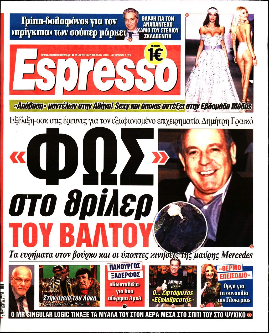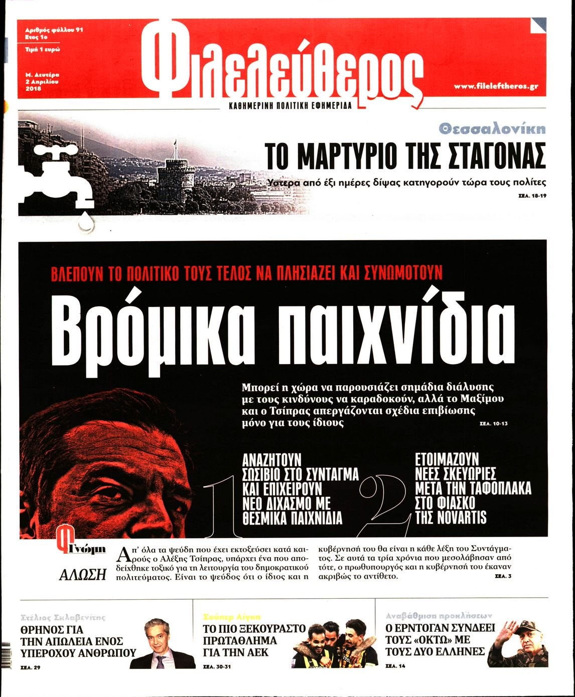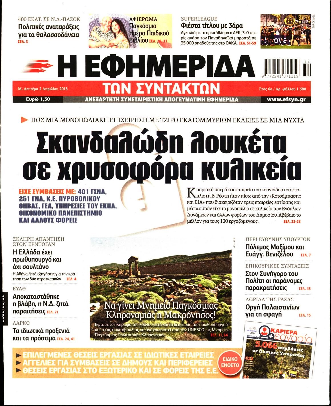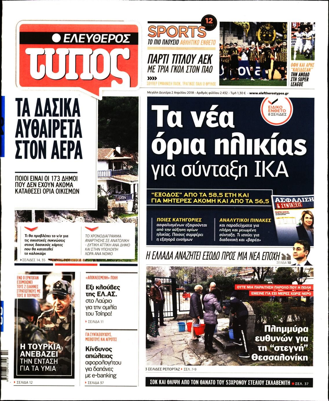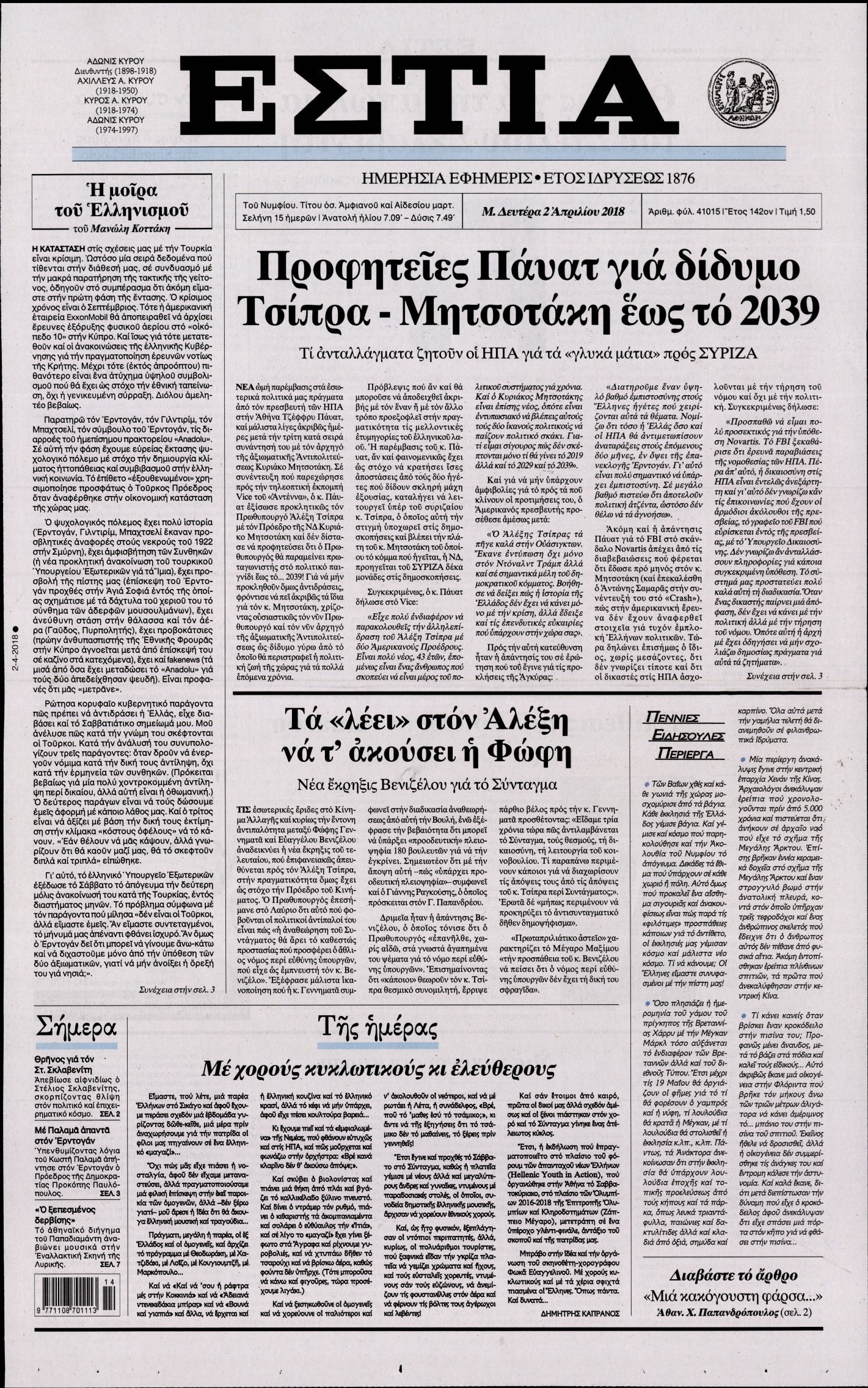 Οι πολιτικές εφημερίδες 2/4/2018 Enikos Newsroom 07:34, Δευτέρα 02 Απριλίου 2018 Media Διαβάστε τα σημερινά πρωτοσέλιδα των πολιτικών εφημερίδων: ΠΟΛΙΤΙΚΕΣ ΕΦΗΜΕΡΙΔΕΣ ΠΡΩΤΟΣΕΛΙΔΑ Μοιράσου το: σχολίασε κι εσύ (0 σχόλια) Ακολουθήστε το enikos.gr στο Google News και μάθετε πρώτοι όλες τις ειδήσεις Δείτε όλες τις τελευταίες ειδήσεις από την Ελλάδα και τον Κόσμο στο enikos.gr Ειδήσεις Ροή Ειδήσεων 1 ώρα πριν Πώς δρούσε το κύκλωμα που διακινούσε ναρκωτικά σε σχολεία – Υπέβαλαν σε βασανιστήρια όσους δεν τηρούσαν τους «κανόνες πειθαρχίας» 2 ώρες πριν Αγρότες: Γιορτές στα μπλόκα με ανοιχτά διόδια – Δικογραφία στα Ιωάννινα για το σήκωμα των μπαρών 6 ώρες πριν Αρχεία Έπσταϊν: Οι συγκλονιστικές φωτογραφίες – Ο Μάικλ Τζάκσον, ο Μικ Τζάγκερ και ο Κέβιν Σπέισι ανάμεσα στους διάσημους που απεικονίζονται 40 λεπτά πριν NBC: Ο Νετανιάχου σχεδιάζει να ενημερώσει τον Τραμπ για πιθανά νέα πλήγματα εναντίον του Ιράν 49 λεπτά πριν Αττική: Εξαρθρώθηκε εγκληματική οργάνωση που έκλεβε οχήματα, τα παραποιούσε και τα μεταπωλούσε σε πολίτες – Πώς δρούσε το κύκλωμα 2 ώρες πριν Η τύχη χαμογελά σε 3 ζώδια έως τις 28 Δεκεμβρίου – «Προσέξτε τις επιλογές σας και η επιμονή σας θα ανταμειφθεί» 6 ώρες πριν Διαιτολόγος αποκαλύπτει 9 πρωινές συνήθειες που «λιώνουν» το κοιλιακό λίπος – «Υποστηρίζουν την υγιεινή απώλεια βάρους» 3 ώρες πριν Μία ανεκμετάλλευτη πηγή θα μπορούσε να προσφέρει ανεξάντλητη ενέργεια – Οι επιστήμονες ίσως γνωρίζουν πώς να την ξεκλειδώσουν 9 ώρες πριν Enerwave: Το νέο «ρεύμα» στη λιανική ενέργειας που αλλάζει την εμπειρία του καταναλωτή 4 λεπτά πριν Ερντογάν: «Δεν έχουμε βλέψεις στα εδάφη κανενός, αλλά δεν θα επιτρέψουμε να παραβιαστούν τα δικαιώματά μας» 14 λεπτά πριν Η Realnews στο www.pressreader.com 21 λεπτά πριν Νιούκαστλ – Τσέλσι 2-2: Αλύγιστοι οι Λονδρέζοι 31 λεπτά πριν Μικαέλα Μπέντχαους: Ο πρώτος άνθρωπος σε αναπηρικό αμαξίδιο που ταξίδεψε στο διάστημα – ΒΙΝΤΕΟ 40 λεπτά πριν NBC: Ο Νετανιάχου σχεδιάζει να ενημερώσει τον Τραμπ για πιθανά νέα πλήγματα εναντίον του Ιράν ENIKOS NETWORK Γιατί πρέπει να ζητάμε χάρες; Ποιο είναι το φαινόμενο Ben Franklin που κάνει τους άλλους να μας συμπαθούν Η αποχή από την αναπαραγωγή παρατείνει τη ζωή στα ζώα, σύμφωνα με μελέτη – Τι ισχύει για τους ανθρώπους; Τράπεζες: Πόσες ημέρες θα είναι κλειστές μέσα στις γιορτές Στα ύψη ο χρυσός – Νέο ρεκόρ στην τιμή της λίρας, πόσο πωλείται Χαρτογραφώντας το «σημείο χωρίς επιστροφή»: Για πρώτη φορά αποκαλύπτεται με λεπτομέρεια το ακανθώδες όριο της ατμόσφαιρας τ... Η Google καταργεί τη λειτουργία «dark web report» – Πώς θα μπορούν οι χρήστες να διαγράφουν τα δεδομένα τους περισσότερα 14:04 , Σάββατο 20 Δεκεμβρίου 2025 Η Realnews αυτής της Κυριακής (21/12/2025) Με τίτλο: «Ασπίδα προστασίας για την Ελλάδα» κυκλοφορεί, αυτήν την Κυριακή, η Realnews. Σημαντ... 12:53 , Σάββατο 20 Δεκεμβρίου 2025 Να μ’ αγαπάς: Το παρελθόν έρχεται στο φως – Καταιγιστικές εξελίξεις στα τελευταία επεισόδια του 2025 Ο Άγγελος αποκαλύπτεται, η Φωτεινή ανησυχεί για τον Λευτέρη και η Ζωή έρχεται αντιμέτωπη με το... 11:41 , Σάββατο 20 Δεκεμβρίου 2025 «Η αγάπη δεν χάνεται ποτέ»: Η μικρού μήκους ταινία κινουμένων σχεδίων που θέτει ερωτήματα για τη ζωή και τον θάνατο Ο θάνατος είναι ένα από τα πιο σκληρά θέματα που καλείται να διαχειριστεί κάποιος στη διάρκεια... 09:30 , Σάββατο 20 Δεκεμβρίου 2025 «Porto Leone: Στη γειτονιά με τα κόκκινα φανάρια» – Ο Χρόνης αποκαλύπτει στην Αλεξάνδρα το μυστικό για το παιδί της Λένας Η μεγάλη δραματι