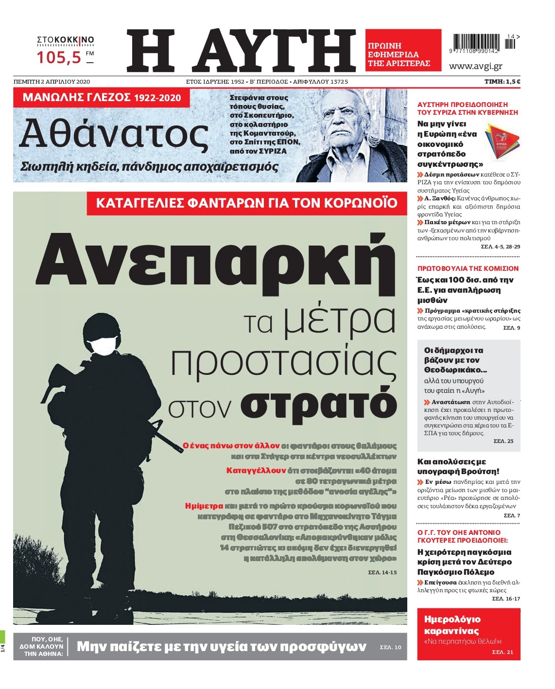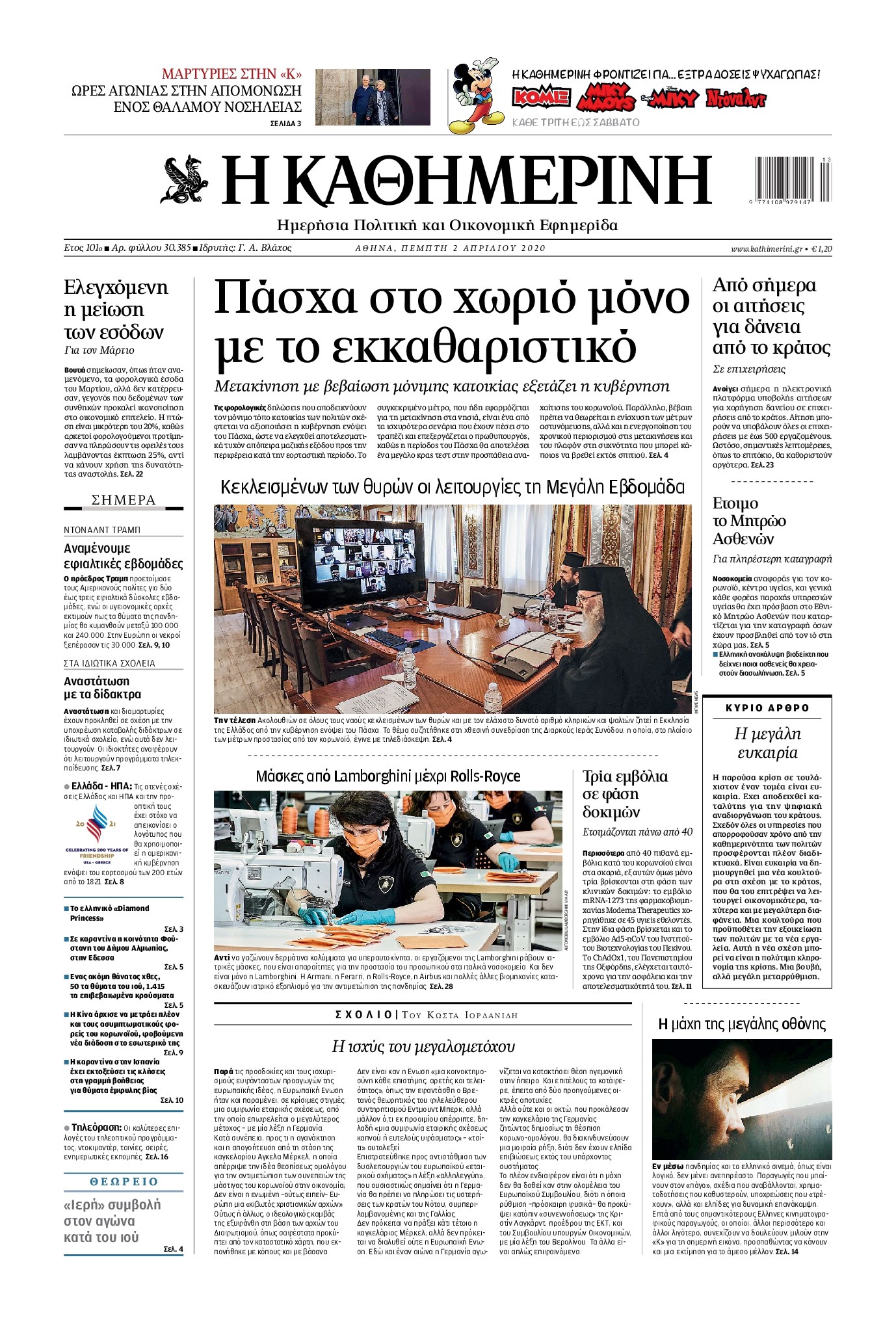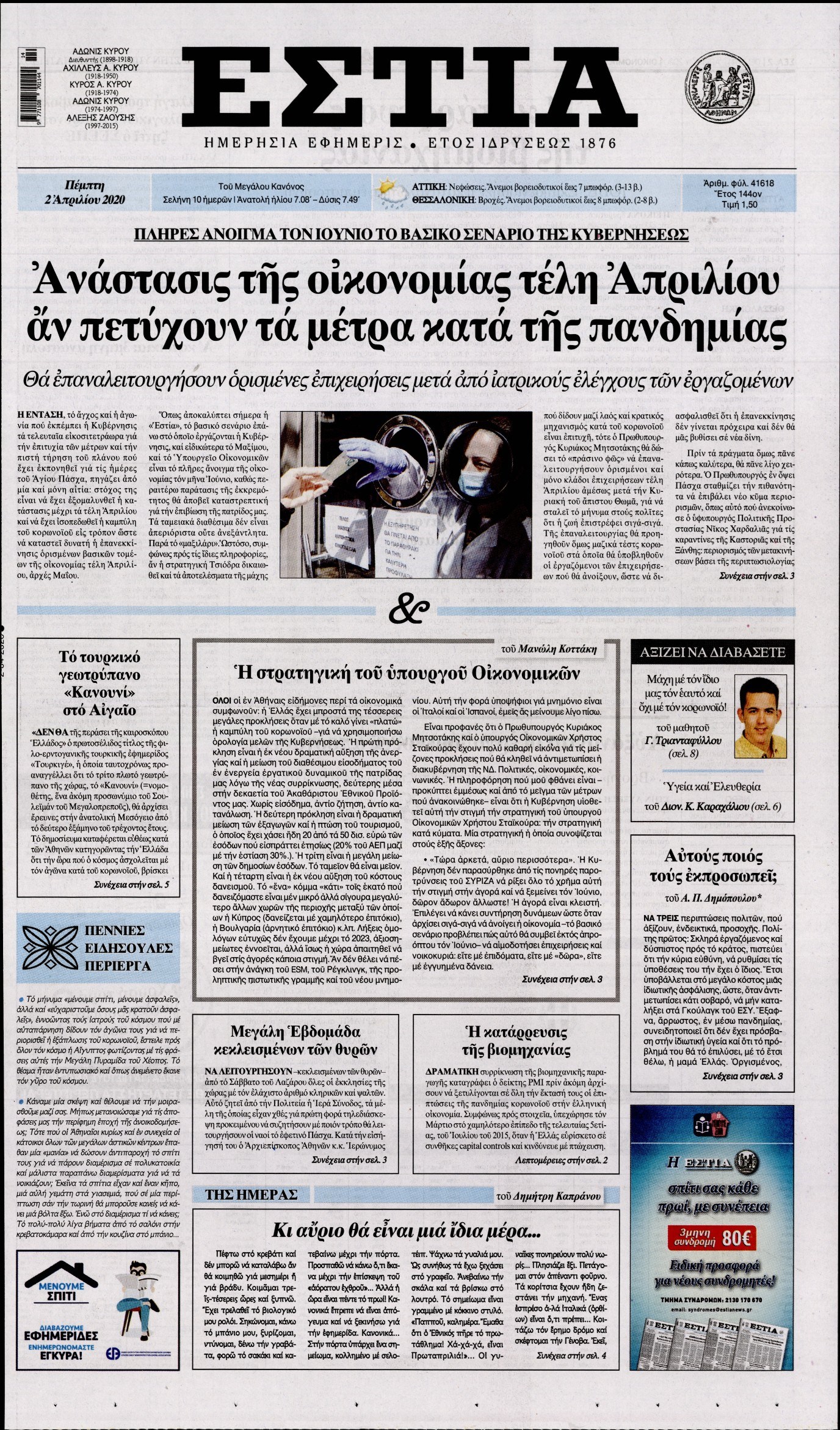 Οι πολιτικές εφημερίδες 2/4/2020 Διονύσης Νίκκας 06:15, Πέμπτη 02 Απριλίου 2020 Media Διαβάστε τα πρωτοσέλιδα των πολιτικών εφημερίδων… ΠΟΛΙΤΙΚΕΣ ΕΦΗΜΕΡΙΔΕΣ ΠΡΩΤΟΣΕΛΙΔΑ Μοιράσου το: σχολίασε κι εσύ (0 σχόλια) Ακολουθήστε το enikos.gr στο Google News και μάθετε πρώτοι όλες τις ειδήσεις Δείτε όλες τις τελευταίες ειδήσεις από την Ελλάδα και τον Κόσμο στο enikos.gr Ειδήσεις Ροή Ειδήσεων 3 ώρες πριν Πώς δρούσε το κύκλωμα που διακινούσε ναρκωτικά σε σχολεία – Υπέβαλαν σε βασανιστήρια όσους δεν τηρούσαν τους «κανόνες πειθαρχίας» 4 ώρες πριν Αγρότες: Γιορτές στα μπλόκα με ανοιχτά διόδια – Δικογραφία στα Ιωάννινα για το σήκωμα των μπαρών 3 ώρες πριν Ζελένσκι: Οι Αμερικανοί πρότειναν συνάντηση Ουκρανίας, ΗΠΑ, Ρωσίας στο Μαϊάμι 2 ώρες πριν Τραμπ: Πώς περνάει τις γιορτές των Χριστουγέννων – Τα δώρα που κάνει στα εγγόνια του 2 ώρες πριν Μικαέλα Μπέντχαους: Ο πρώτος άνθρωπος σε αναπηρικό αμαξίδιο που ταξίδεψε στο διάστημα – ΒΙΝΤΕΟ 4 ώρες πριν Η τύχη χαμογελά σε 3 ζώδια έως τις 28 Δεκεμβρίου – «Προσέξτε τις επιλογές σας και η επιμονή σας θα ανταμειφθεί» 5 ώρες πριν Μία ανεκμετάλλευτη πηγή θα μπορούσε να προσφέρει ανεξάντλητη ενέργεια – Οι επιστήμονες ίσως γνωρίζουν πώς να την ξεκλειδώσουν 1 ώρα πριν Μήπως οι γιορτές σας δεν είναι τόσο τέλειες; 7 χριστουγεννιάτικες συνήθειες που μαρτυρούν ότι μια οικογένεια είναι δυσλειτουργική 11 ώρες πριν Enerwave: Το νέο «ρεύμα» στη λιανική ενέργειας που αλλάζει την εμπειρία του καταναλωτή 5 λεπτά πριν Πώς να απαλλαγείτε από τη μυρωδιά του τηγανητού φαγητού: Το μυστικό βρίσκεται στην κουζίνα σας 10 λεπτά πριν Βλαχοδήμος: «Νιώθω καλά που είμαι σημαντικός για τη Σεβίλλη» – Τι είπε για τη Ρεάλ Μαδρίτης και τον Μπαπέ 19 λεπτά πριν Πρίγκιπας Ουίλιαμ: Μαγείρεψε παρέα με τον πρίγκιπα Τζορτζ για τους αστέγους – ΦΩΤΟ και ΒΙΝΤΕΟ 28 λεπτά πριν Επιχείρηση της Τροχαίας κατά της παράνομης στάθμευσης στο Νέο Ψυχικό – Τέσσερις συλλήψεις 37 λεπτά πριν Κυριάκος Μητσοτάκης: Στην Ιερουσαλήμ την Τρίτη ο Πρωθυπουργός για την τριμερή Ελλάδας, Κύπρου, Ισραήλ – Θα συναντηθεί και με τον Αμπάς ENIKOS NETWORK Οι γυναίκες αποκαλύπτουν το πιο ελκυστικό πράγμα που μπορεί να κάνει ένας άνδρας Ομορφιά και αντιγήρανση: Ειδικοί μιλούν για συσκευές περιποίησης του δέρματος Θεοδωρικάκος: Εθνική στρατηγική για τους ημιαγωγούς – Πρώτο βήμα η χρηματοδότηση του πρώτου Κέντρου Ικανοτήτων, με 3,63 εκα... Επίδομα θέρμανσης: Μπαίνει η πρώτη δόση την Τρίτη – Οι επόμενες πληρωμές Χαρτογραφώντας το «σημείο χωρίς επιστροφή»: Για πρώτη φορά αποκαλύπτεται με λεπτομέρεια το ακανθώδες όριο της ατμόσφαιρας τ... Η Google καταργεί τη λειτουργία «dark web report» – Πώς θα μπορούν οι χρήστες να διαγράφουν τα δεδομένα τους περισσότερα 18:19 , Σάββατο 20 Δεκεμβρίου 2025 HOTΕΛ ΕΛVIRA: Η Ελβίρα μαθαίνει πως ο Χάρι μένει κρυφά στο ξενοδοχείο του Παντελή Συνεχίζονται οι εκλογές για πρόεδρο, στο νέο επεισόδιο της κωμικής σειράς του MEGA, HOTΕΛ ΕΛVI... 14:04 , Σάββατο 20 Δεκεμβρίου 2025 Η Realnews αυτής της Κυριακής (21/12/2025) Με τίτλο: «Ασπίδα προστασίας για την Ελλάδα» κυκλοφορεί, αυτήν την Κυριακή, η Realnews. Σημαντ... 12:53 , Σάββατο 20 Δεκεμβρίου 2025 Να μ’ αγαπάς: Το παρελθόν έρχεται στο φως – Καταιγιστικές εξελίξεις στα τελευταία επεισόδια του 2025 Ο Άγγελος αποκαλύπτεται, η Φωτεινή ανησυχεί για τον Λευτέρη και η Ζωή έρχεται αντιμέτωπη με το... 11:41 , Σάββατο 20 Δεκεμβρίου 2025 «Η αγάπη δεν χάνεται ποτέ»: Η μικρού μήκους ταινία κινουμένων σχεδίων που θέτει ερωτήμ