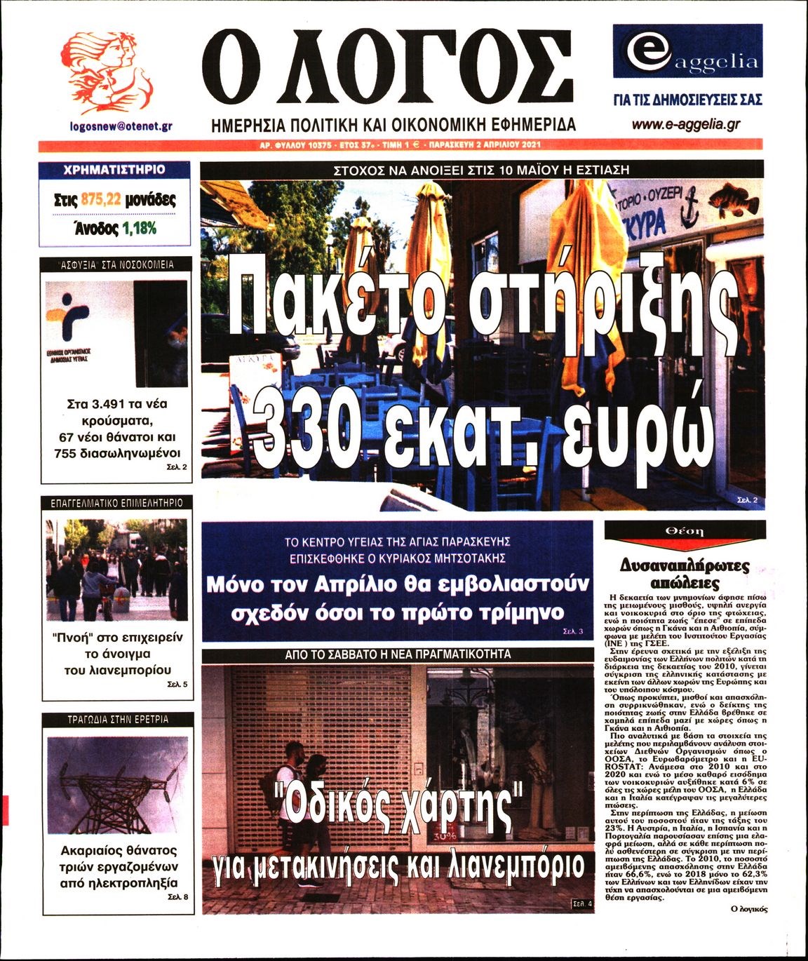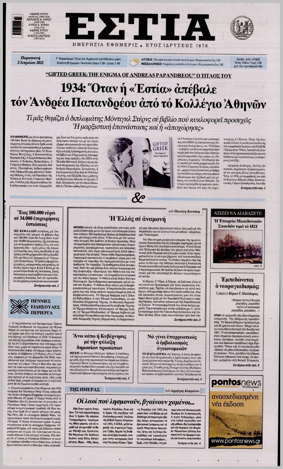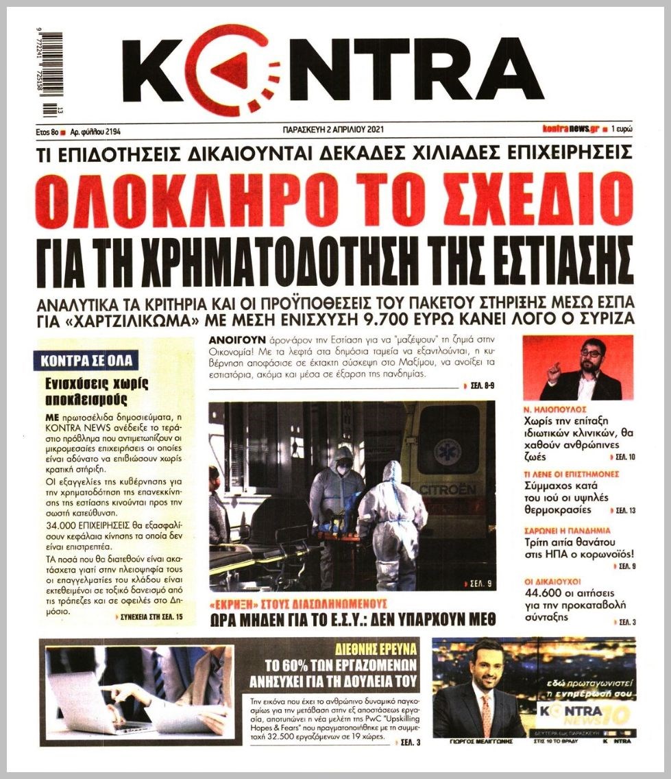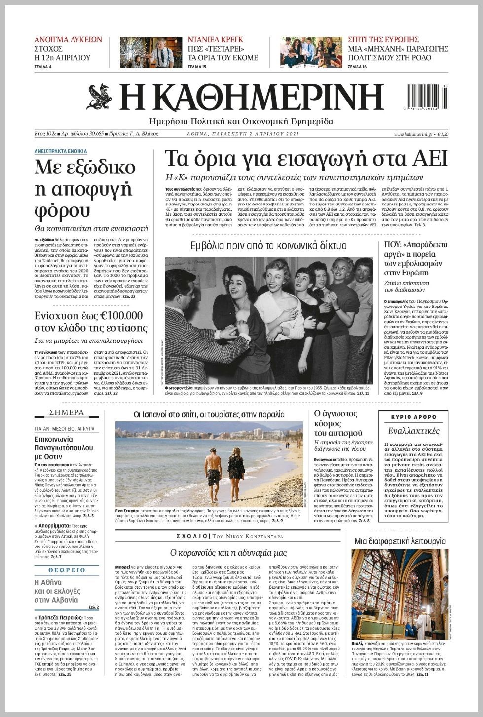 Οι πολιτικές εφημερίδες 2/4/2021 Διονύσης Νίκκας 06:10, Παρασκευή 02 Απριλίου 2021 Media Διαβάστε τα πρωτοσέλιδα των πολιτικών εφημερίδων… ΕΦΗΜΕΡΙΔΕΣ ΠΡΩΤΟΣΕΛΙΔΑ Μοιράσου το: σχολίασε κι εσύ (0 σχόλια) Ακολουθήστε το enikos.gr στο Google News και μάθετε πρώτοι όλες τις ειδήσεις Δείτε όλες τις τελευταίες ειδήσεις από την Ελλάδα και τον Κόσμο στο enikos.gr Ειδήσεις Ροή Ειδήσεων 4 ώρες πριν Υπόθεση Έπσταϊν: Το Υπουργείο Δικαιοσύνης δημοσιοποίησε μια σειρά από εξαιρετικά επεξεργασμένα αρχεία – «Λείπουν τα πιο σημαντικά έγγραφα», λένε οι Δημοκρατικοί 46 λεπτά πριν Γιορτές με μπλόκα για τους αγρότες: Ανοίγουν διόδια και μοιράζουν προϊόντα στους ταξιδιώτες 1 ώρα πριν Εξαφάνιση 33χρονου γιατρού στην Κρήτη: «Άναψα τα φώτα, τρόμαξε και άρχισε να τρέχει στα χωράφια» – Η τελευταία διαδρομή και η μαρτυρία «κλειδί» 3 ώρες πριν Ο «χάρτης» με τις αυξήσεις και τις φοροελαφρύνσεις του 2026 – Ποιοι και πόσα κερδίζουν 1 ώρα πριν Τα αρχεία του Έπσταϊν αποκαλύπτουν φωτογραφία του έκπτωτου πρίγκιπα Άντριου – Είναι ξαπλωμένος στην αγκαλιά 5 γυναικών 1 ώρα πριν Μία νέα «χρυσή» περίοδος αρχίζει για 3 ζώδια από σήμερα – «Μία αναπάντεχη ευκαιρία οδηγεί στην επιτυχία» 5 ώρες πριν Αυγά: Πόσα μπορείτε να τρώτε την ημέρα με ασφάλεια για μέγιστη πρόσληψη πρωτεΐνης 3 ώρες πριν Αρχαιολόγοι ανακάλυψαν σε χωράφι απεικόνιση 600 ετών ενός Αγίου – Τα στοιχεία που δείχνουν ότι μαρτύρησε 2 ώρες πριν Αγχώνεται για το χριστουγεννιάτικο δώρο που πήρε στην πλούσια σύντροφό του – «Φοβάμαι πως θα το βρει φθηνιάρικο, φοράει βραχιόλια Cartier» 4 λεπτά πριν Τα Labubu «μετακομίζουν» στο Χόλιγουντ: Η Sony Pictures ετοιμάζει live-action ταινία με τον σκηνοθέτη του «Wonka» 11 λεπτά πριν Νέες ταυτότητες: Μεγάλη αναμονή για ραντεβού στην Αττική – Τέλος τα ταξίδια εκτός Ελλάδος από τον Αύγουστο για όσους δεν έχουν αλλάξει 20 λεπτά πριν Οι 7 φράσεις που δεν λένε ποτέ οι συναισθηματικά έξυπνοι άνθρωποι κατά τη διάρκεια ενός καβγά 23 λεπτά πριν Τηλεθέαση (19/12): Ανατροπές και πρωτιές στην πρωινή ζώνη 31 λεπτά πριν Πώς η κλιματική αλλαγή επηρεάζει εγκύους και βρέφη – Οι επιπτώσεις των υψηλών θερμοκρασιών ENIKOS NETWORK Είστε μόνιμα απρόσεκτοι; 3 σημάδια που δείχνουν ότι μπορεί να είναι σύμπτωμα πάθησης Πόσα κιλά παίρνουμε πραγματικά τα Χριστούγεννα, σύμφωνα με την επιστήμη – Πώς να το αποτρέψουμε; e-ΕΦΚΑ και ΔΥΠΑ: Έρχονται νέες πληρωμές έως τις 24 Δεκεμβρίου – Ποιοι πάνε ταμείο Επίδομα παιδιού: Τι αλλάζει από το 2026 – Το όφελος από τις φορολογικές ελαφρύνσεις Χαρτογραφώντας το «σημείο χωρίς επιστροφή»: Για πρώτη φορά αποκαλύπτεται με λεπτομέρεια το ακανθώδες όριο της ατμόσφαιρας τ... Η Google καταργεί τη λειτουργία «dark web report» – Πώς θα μπορούν οι χρήστες να διαγράφουν τα δεδομένα τους περισσότερα 09:30 , Σάββατο 20 Δεκεμβρίου 2025 «Porto Leone: Στη γειτονιά με τα κόκκινα φανάρια» – Ο Χρόνης αποκαλύπτει στην Αλεξάνδρα το μυστικό για το παιδί της Λένας Η μεγάλη δραματική σειρά του Apha «Porto Leone: Στη γειτονιά με τα κόκκινα φανάρια» μας μεταφέ... 08:14 , Σάββατο 20 Δεκεμβρίου 2025 Τρομεροί γονείς: Η Μαρία Καβογιάννη εισβάλλει στο σπίτι της οικογένειας Στεφανίδη Όσα θα δούμε στο νέο διπλό επεισόδιο της σειράς «Τρομεροί γονείς», σήμερα Σάββατο 20 Δεκεμβρίο... 05:48 , Σάββατο 20 Δεκεμβρίου 2025 Οι οικονομικές εφημερίδες 20/12/2025 Διαβάστε τα πρωτοσέλιδα από τις οικονομικές εφημερίδες, σήμερα 20/12/2025. 05:43 , Σάββατο 20 Δεκεμβρίου 2025 Οι αθλητικές εφημερίδες 20/12/2025 Διαβάστε τα πρωτοσέλιδα από τις αθλη