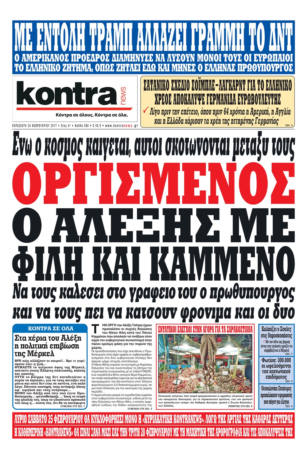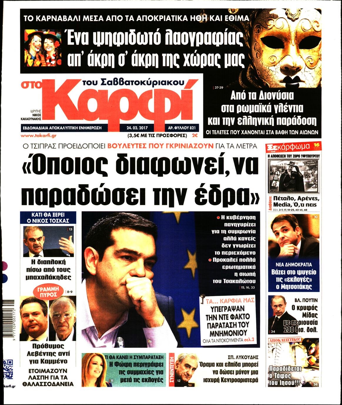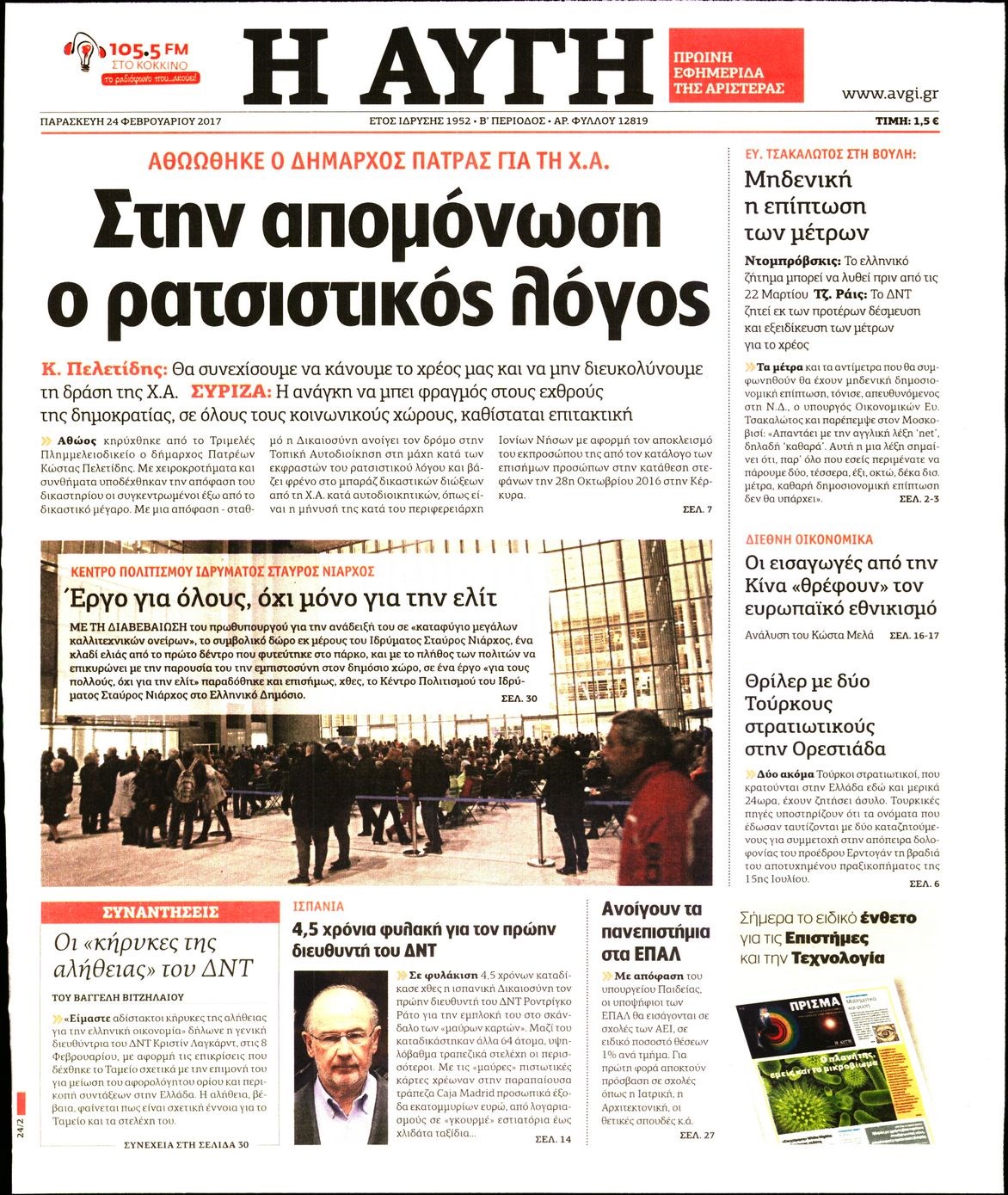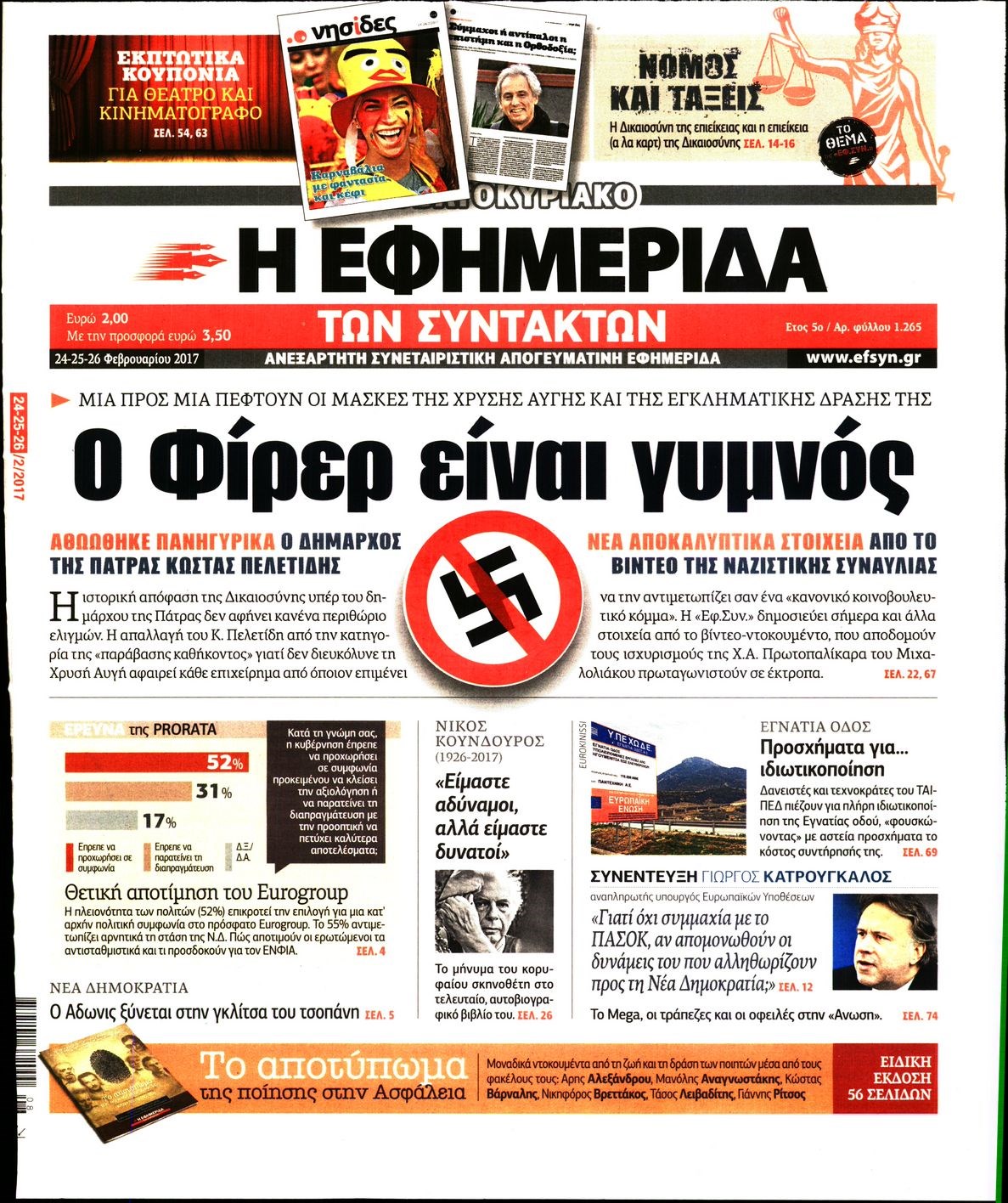 Οι πολιτικές εφημερίδες 24/2/2017 Enikos Newsroom 06:53, Παρασκευή 24 Φεβρουαρίου 2017 Media Διαβάστε τα σημερινά πρωτοσέλιδα των πολιτικών εφημερίδων: ΠΟΛΙΤΙΚΕΣ ΕΦΗΜΕΡΙΔΕΣ ΠΡΩΤΟΣΕΛΙΔΑ Μοιράσου το: σχολίασε κι εσύ (0 σχόλια) Ακολουθήστε το enikos.gr στο Google News και μάθετε πρώτοι όλες τις ειδήσεις Δείτε όλες τις τελευταίες ειδήσεις από την Ελλάδα και τον Κόσμο στο enikos.gr Ειδήσεις Ροή Ειδήσεων 45 λεπτά πριν Υπόθεση Έπσταϊν: Το Υπουργείο Δικαιοσύνης δημοσιοποίησε μια σειρά από εξαιρετικά επεξεργασμένα αρχεία – «Λείπουν τα πιο σημαντικά έγγραφα», λένε οι Δημοκρατικοί 2 ώρες πριν Σαρωτικοί οι έλεγχοι στους δρόμους ενόψει εορτών – Μπλόκα της τροχαίας σε κεντρικές αρτηρίες της Αττικής 56 λεπτά πριν ΟΝΕΧ – MEGATUGS: Ξεκίνησε η ναυπήγηση ρυμουλκών στην Ελλάδα – Προθάλαμος πολεμικών πλοίων – Δείτε φωτογραφίες και βίντεο 48 λεπτά πριν Καιρός: Αλλαγή σκηνικού σήμερα με βροχές και πτώση της θερμοκρασίας – Οι προβλέψεις των μετεωρολόγων για τα Χριστούγεννα 10 ώρες πριν Χριστούγεννα στα μπλόκα: Επιμένουν στις κινητοποιήσεις τους οι αγρότες – Ανοίγουν τα διόδια το Σαββατοκύριακο 3 ώρες πριν Αυγά: Πόσα μπορείτε να τρώτε την ημέρα με ασφάλεια για μέγιστη πρόσληψη πρωτεΐνης 3 ώρες πριν Τα ζώδια σήμερα, Σάββατο 20 Δεκεμβρίου: Παρθένοι, το σύμπαν σας δίνει το κλειδί 2 ώρες πριν Οπτική ψευδαίσθηση: Μόνο αν είσαι ο Σέρλοκ Χολμς θα βρεις τον αριθμό «87» σε 7 δευτερόλεπτα 25 λεπτά πριν Αρχαιολόγοι ανακάλυψαν σε χωράφι απεικόνιση 600 ετών ενός Αγίου – Τα στοιχεία που δείχνουν ότι μαρτύρησε 1 λεπτό πριν Η τέλεια συνταγή για cookies με κομμάτια σοκολάτας 9 λεπτά πριν MyHealth App: Τα στοιχεία για τον Προσωπικό Βοηθό Υγείας Πολίτη – Τι ερωτήματα έγιναν μέσα σε 7 ημέρες 17 λεπτά πριν Τρομεροί γονείς: Η Μαρία Καβογιάννη εισβάλλει στο σπίτι της οικογένειας Στεφανίδη 25 λεπτά πριν Αρχαιολόγοι ανακάλυψαν σε χωράφι απεικόνιση 600 ετών ενός Αγίου – Τα στοιχεία που δείχνουν ότι μαρτύρησε 32 λεπτά πριν Mega χριστουγεννιάτικη φορολοταρία: «Κλείδωσε» η ημερομηνία για την κλήρωση – Ερωτήσεις και απαντήσεις ENIKOS NETWORK Το τεστ των 10 δευτερολέπτων που μπορεί να προβλέψει το προσδόκιμο ζωής σας – Τι λέει ειδικός του Cleveland Επιλέξτε καρέκλα για να μάθετε ποια είναι τα κρυφά χαρακτηριστικά σας – Τι αποκάλυψε για εσάς αυτό το τεστ προσωπικότητας; Mega χριστουγεννιάτικη φορολοταρία: «Κλείδωσε» η ημερομηνία για την κλήρωση – Ερωτήσεις και απαντήσεις Αναστολή μέτρων αναγκαστικής εκτέλεσης για κτηνοτρόφους που πλήττονται από την ευλογιά των αιγοπροβάτων Χαρτογραφώντας το «σημείο χωρίς επιστροφή»: Για πρώτη φορά αποκαλύπτεται με λεπτομέρεια το ακανθώδες όριο της ατμόσφαιρας τ... Η Google καταργεί τη λειτουργία «dark web report» – Πώς θα μπορούν οι χρήστες να διαγράφουν τα δεδομένα τους περισσότερα 08:14 , Σάββατο 20 Δεκεμβρίου 2025 Τρομεροί γονείς: Η Μαρία Καβογιάννη εισβάλλει στο σπίτι της οικογένειας Στεφανίδη Όσα θα δούμε στο νέο διπλό επεισόδιο της σειράς «Τρομεροί γονείς», σήμερα Σάββατο 20 Δεκεμβρίο... 05:48 , Σάββατο 20 Δεκεμβρίου 2025 Οι οικονομικές εφημερίδες 20/12/2025 Διαβάστε τα πρωτοσέλιδα από τις οικονομικές εφημερίδες, σήμερα 20/12/2025. 05:43 , Σάββατο 20 Δεκεμβρίου 2025 Οι αθλητικές εφημερίδες 20/12/2025 Διαβάστε τα πρωτοσέλιδα από τις αθλητικές εφημερίδες, σήμερα 20/12/2025. 05:38 , Σάββατο 20 Δεκεμβρίου 2025 Οι πολιτικές εφημερίδες 20/12/2025 Διαβάστε τα πρωτοσέλιδα από τις πολιτικές εφημερίδες, σήμερα 20/12/2025. ΤΕΛΕΥΤΑΙΕΣ ΕΙΔΗΣΕΙΣ 9 λεπτά πριν MyHealth App: Τα στοιχεία γ