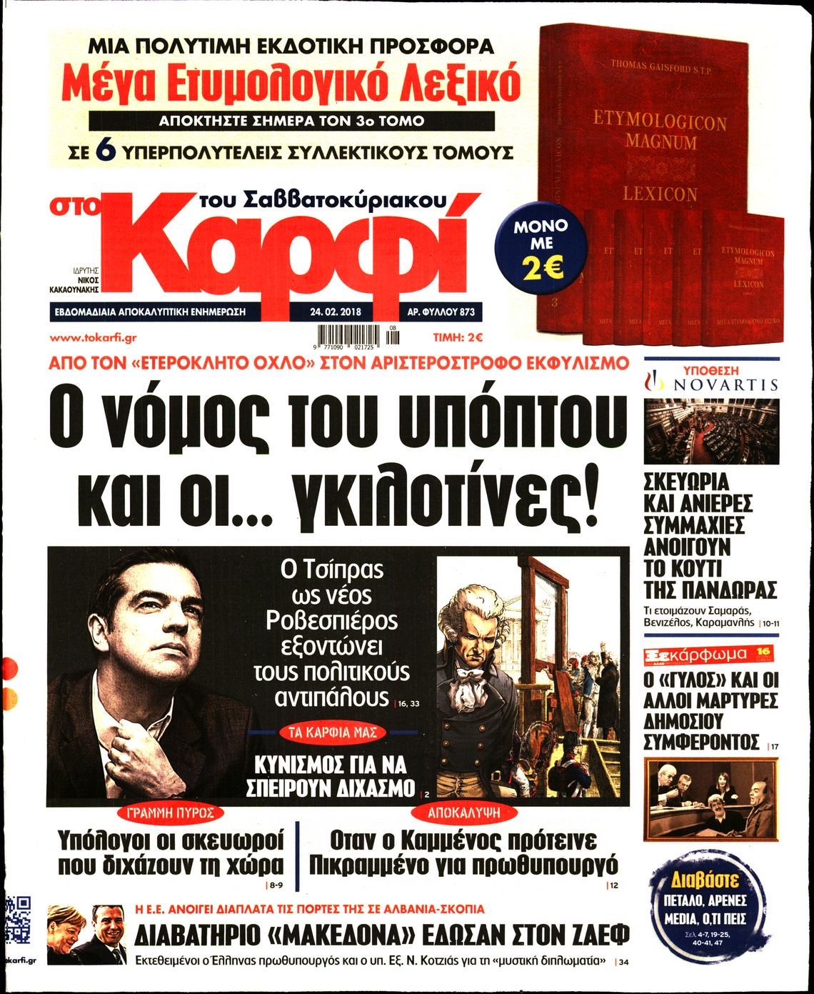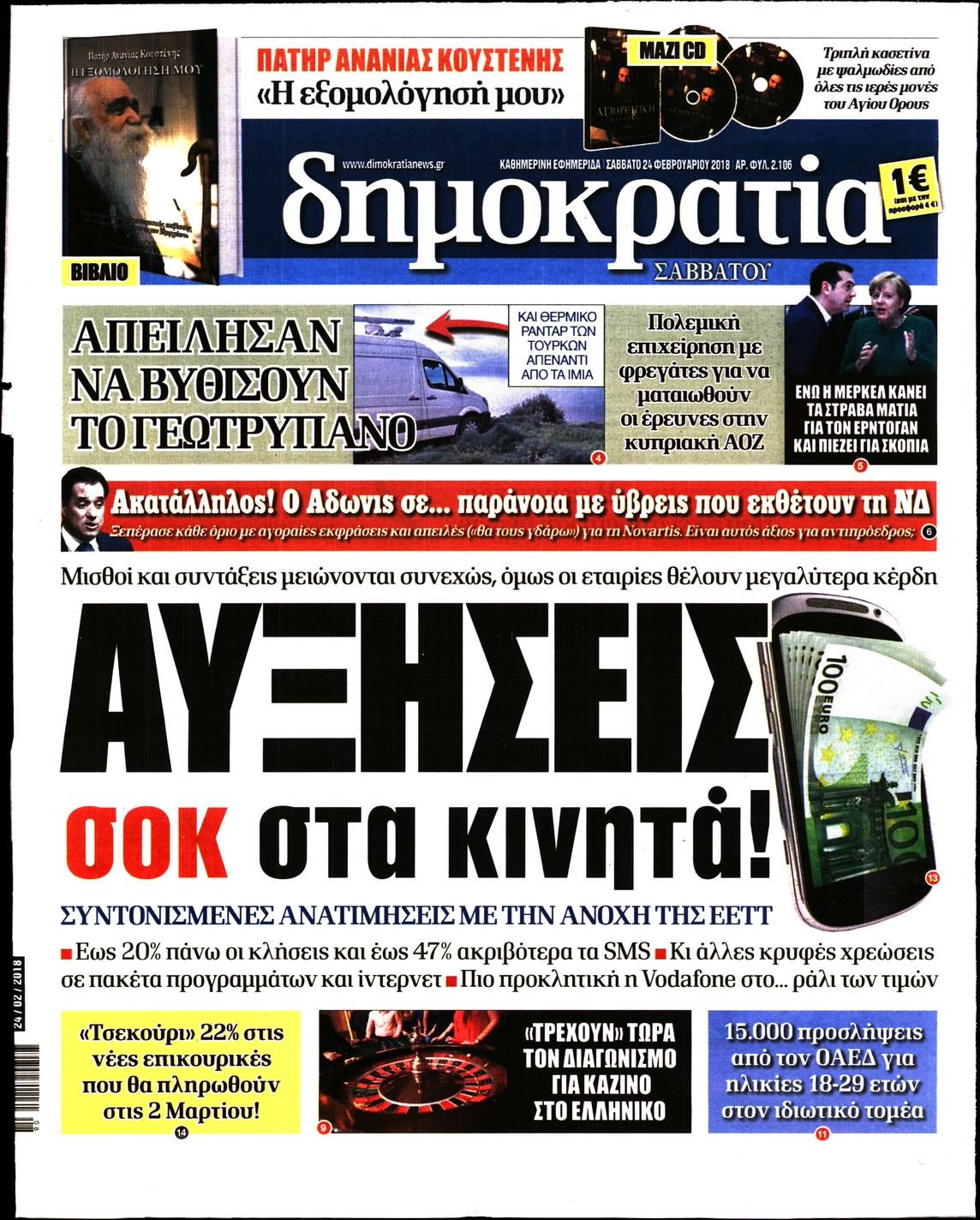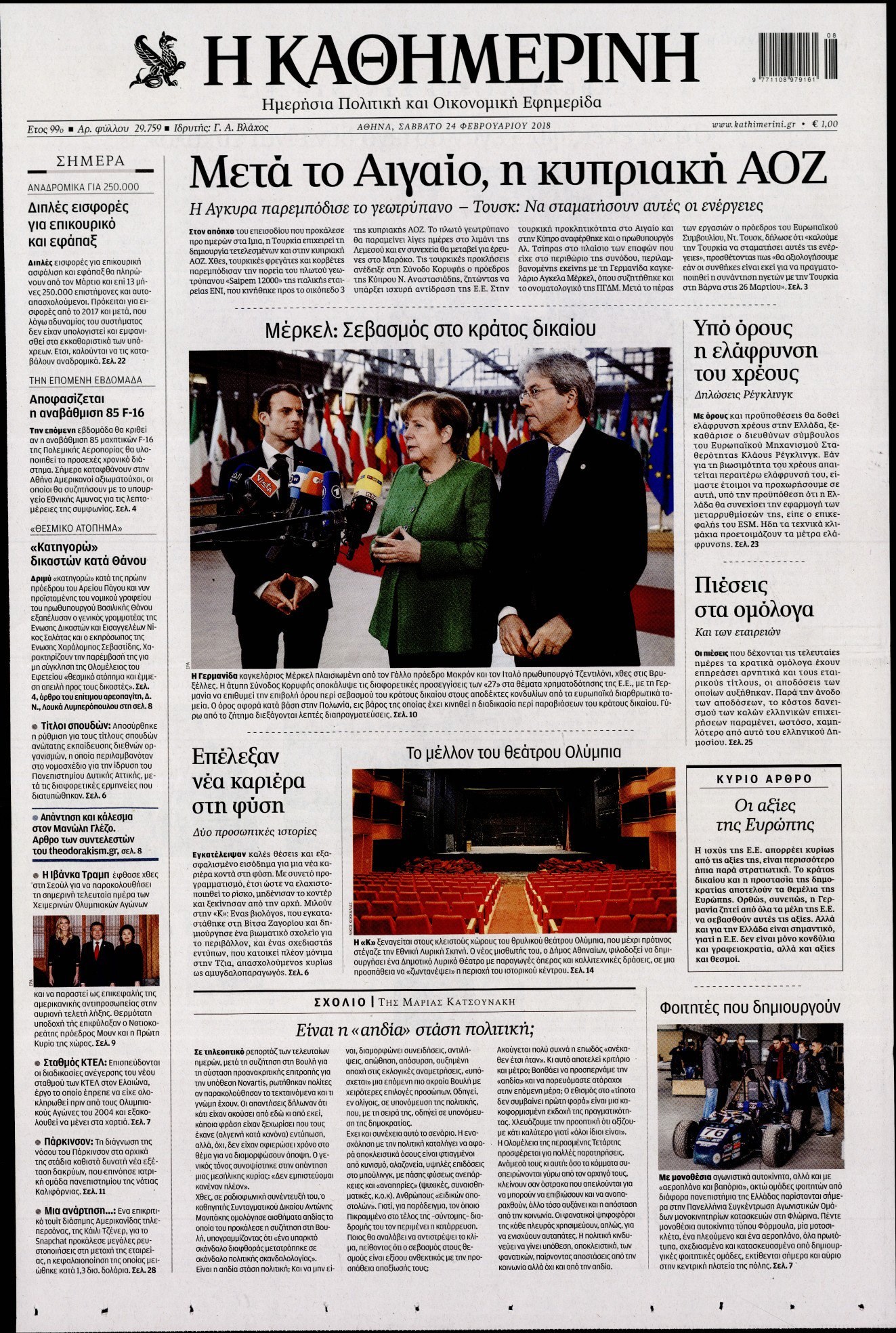 Οι πολιτικές εφημερίδες 24/2/2018 Enikos Newsroom 07:44, Σάββατο 24 Φεβρουαρίου 2018 Media Διαβάστε τα σημερινά πρωτοσέλιδα των πολιτικών εφημερίδων: ΠΟΛΙΤΙΚΕΣ ΕΦΗΜΕΡΙΔΕΣ ΠΡΩΤΟΣΕΛΙΔΑ Μοιράσου το: σχολίασε κι εσύ (0 σχόλια) Ακολουθήστε το enikos.gr στο Google News και μάθετε πρώτοι όλες τις ειδήσεις Δείτε όλες τις τελευταίες ειδήσεις από την Ελλάδα και τον Κόσμο στο enikos.gr Ειδήσεις Ροή Ειδήσεων 3 ώρες πριν Χριστούγεννα στα μπλόκα οι αγρότες: Άνοιξαν στα διόδια και μοίρασαν προϊόντα στους πολίτες – Νέα σύσκεψη την Κυριακή στη Νίκαια 3 ώρες πριν Κύκλωμα διακίνησης ναρκωτικών σε σχολεία: Τηλεφωνούσαν στους ανηλίκους την ώρα του μαθήματος – Οι διάλογοι-σοκ, τα «ψευδώνυμα» και τα βασανιστήρια 3 ώρες πριν Αρχεία Επστάιν: Οι 500 σελίδες που λείπουν, τα αναπάντητα ερωτήματα και οι επώνυμοι – Τι έπεται 5 ώρες πριν Ζελένσκι: Μόνο οι ΗΠΑ και ο Τραμπ μπορούν να πιέσουν τη Ρωσία να βάλει τέλος στον πόλεμο 5 ώρες πριν Φοινικούντα: Προφυλακιστέος ο 30χρονος για συνέργεια στη διπλή δολοφονία – Και άλλα πρόσωπα στο «μικροσκόπιο» 3 ώρες πριν Αποκαλύφθηκε το άγνωστο «GPS» της αρχαιότητας – Πώς οι ναοί «φώτιζαν» τον δρόμο των ναυτικών πριν από την εφεύρεση των φάρων 4 ώρες πριν Ύπνος: Η διατροφή που μπορεί να σας βοηθήσει να κοιμάστε καλύτερα και να ζήσετε περισσότερο 5 ώρες πριν Αριθμολογία: Ο αριθμός του φύλακα αγγέλου σας, με βάση τον μήνα γέννησής σας – «Έτσι σας στέλνει σημάδια το σύμπαν» 17 ώρες πριν Enerwave: Το νέο «ρεύμα» στη λιανική ενέργειας που αλλάζει την εμπειρία του καταναλωτή 10 λεπτά πριν Σεισμός 3,8 Ρίχτερ ανοιχτά της Αμοργού 25 λεπτά πριν Άννα Βίσση: Τα… Social Media «προσκύνησαν» την «απόλυτη» για την συναυλία της στο Καλλιμάρμαρο που προβλήθηκε από το Mega 39 λεπτά πριν Φωτεινή Αθερίδου: «Προσπαθώ να είμαι κάθετη και αυστηρή σαν μαμά πια» 54 λεπτά πριν ΗΠΑ, Αίγυπτος, Κατάρ και Τουρκία συζήτησαν τη δεύτερη φάση του ειρηνευτικού σχεδίου για τη Γάζα 1 ώρα πριν Γιάννης Αντετοκούνμπο: Έμεινε στην 6η θέση της ψηφοφορίας του ESPN για το βραβείο του MVP του NBA ENIKOS NETWORK Οι γυναίκες αποκαλύπτουν το πιο ελκυστικό πράγμα που μπορεί να κάνει ένας άνδρας Ομορφιά και αντιγήρανση: Ειδικοί μιλούν για συσκευές περιποίησης του δέρματος «Πολεμική» προετοιμασία από την ευρωπαϊκή βιομηχανία ενέργειας – Η Eurelectric ζητεί «ομπρέλα» προστασίας για τις υποδομές Ακύρωση ΑΦΜ για απάτες – Ποιους βάζει στο στόχαστρο η ΑΑΔΕ Χαρτογραφώντας το «σημείο χωρίς επιστροφή»: Για πρώτη φορά αποκαλύπτεται με λεπτομέρεια το ακανθώδες όριο της ατμόσφαιρας τ... Η Google καταργεί τη λειτουργία «dark web report» – Πώς θα μπορούν οι χρήστες να διαγράφουν τα δεδομένα τους περισσότερα 01:30 , Κυριακή 21 Δεκεμβρίου 2025 Άννα Βίσση: Τα… Social Media «προσκύνησαν» την «απόλυτη» για την συναυλία της στο Καλλιμάρμαρο που προβλήθηκε από το Mega Την ημέρα των γενεθλίων της Άννας Βίσση, το MEGA τίμησε τη διαχρονική παρουσία της «απόλυτης Ε... 00:00 , Κυριακή 21 Δεκεμβρίου 2025 The Voice: Η επιστροφή της Έλενας Παπαρίζου και η ατάκα του Γιώργου Μαζωνάκη μετά τις καταγγελίες Στη φάση των Cross Battles Live μπήκε το The Voice, με την Έλενα Παπαρίζου να επιστρέφει στο π... 20:30 , Σάββατο 20 Δεκεμβρίου 2025 Αυτή την Κυριακή με τη Realnews: Instyle, μαζί Drive και Realnews Geopolitics Αυτή την Κυριακή με τη Realnews: Instyle, μαζί Drive και Realnews Geopolitics Instyle Η Άννα Ρ... 20:28 , Σάββατο 20 Δεκεμβρίου 2025 Ο ΑΝΤ1 γεμίζει τις γιορτές με μουσική – Ποιους καλλιτέχνες θα απολαύσουμε Φέτος στον ΑΝΤ1 γιορτάζουμε τις νύχτες μας παρέα με αγαπημένους καλλιτέχν