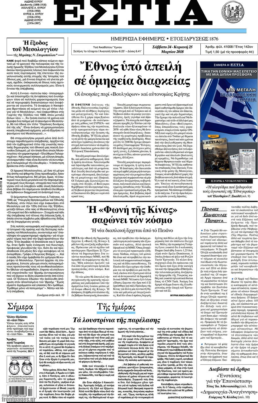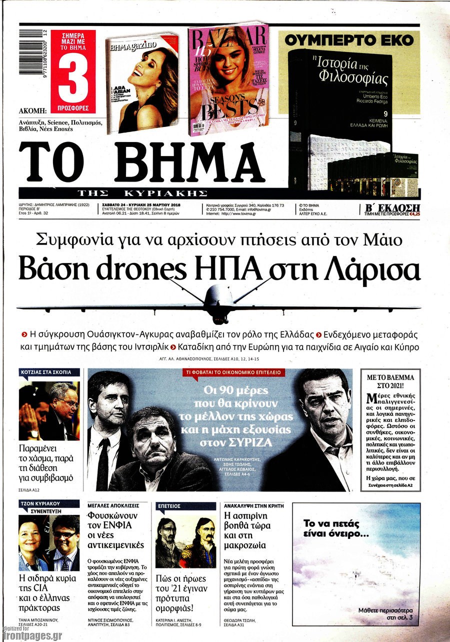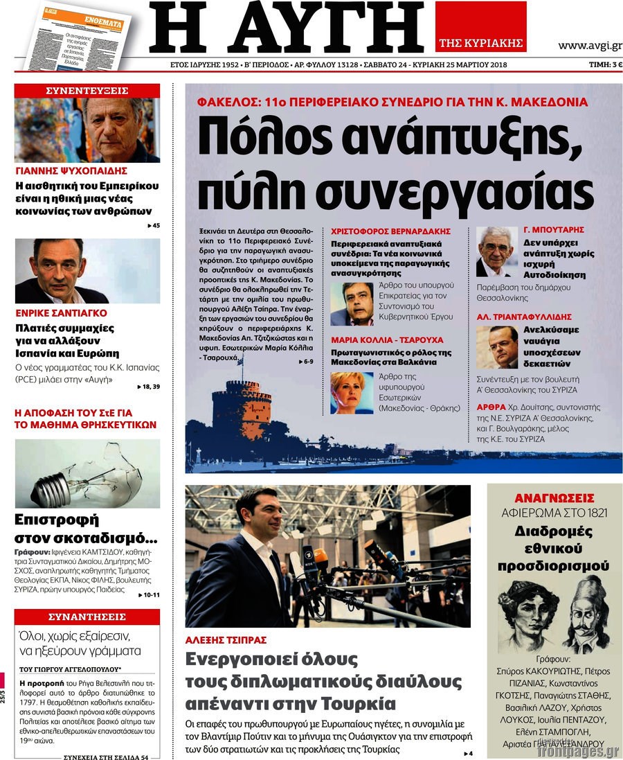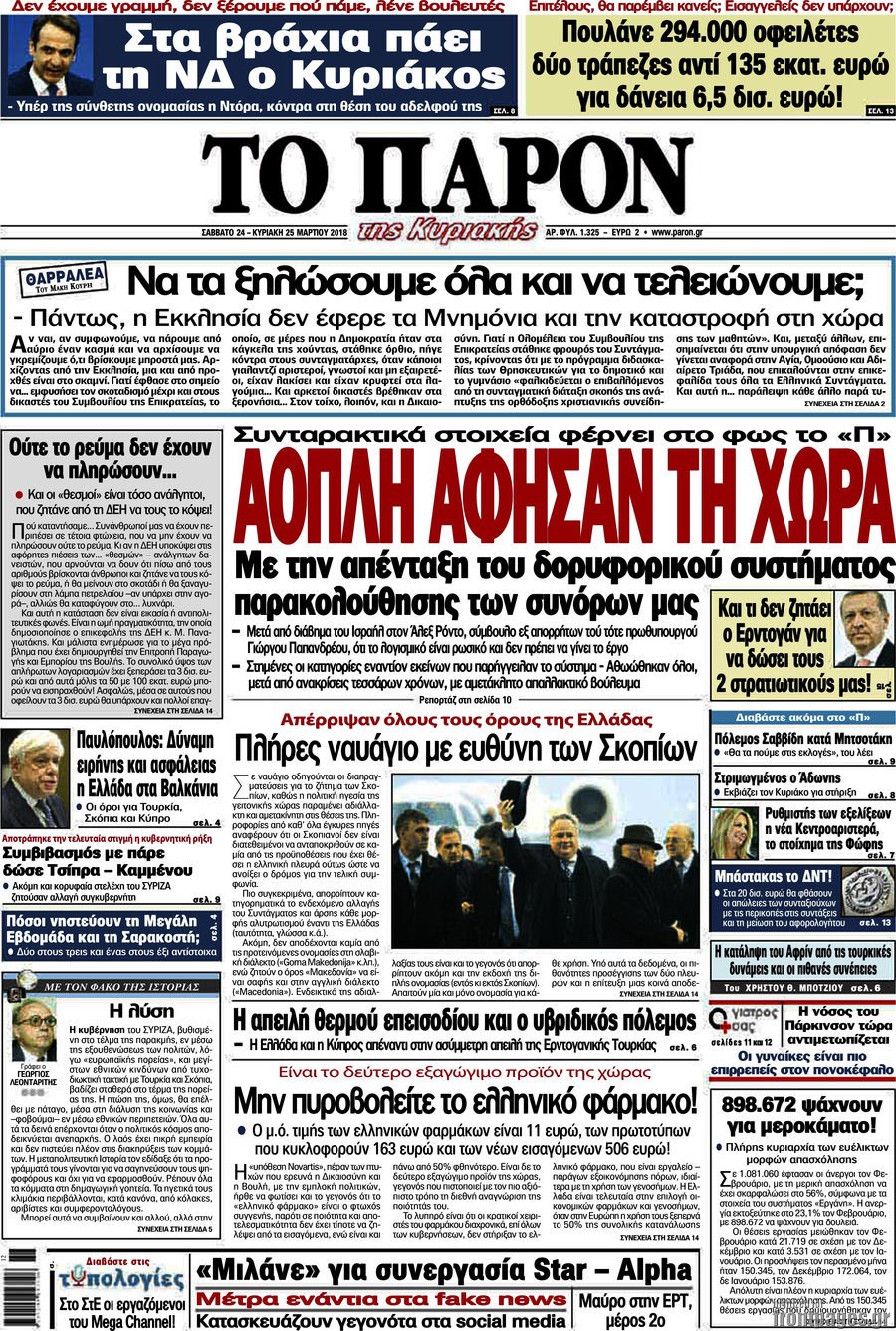 Οι πολιτικές εφημερίδες 24/3/2018 Enikos Newsroom 07:43, Σάββατο 24 Μαρτίου 2018 Media Διαβάστε τα σημερινά πρωτοσέλιδα των πολιτικών εφημερίδων: ΠΟΛΙΤΙΚΕΣ ΕΦΗΜΕΡΙΔΕΣ ΠΡΩΤΟΣΕΛΙΔΑ Μοιράσου το: σχολίασε κι εσύ (0 σχόλια) Ακολουθήστε το enikos.gr στο Google News και μάθετε πρώτοι όλες τις ειδήσεις Δείτε όλες τις τελευταίες ειδήσεις από την Ελλάδα και τον Κόσμο στο enikos.gr Ειδήσεις Ροή Ειδήσεων 3 ώρες πριν Πώς δρούσε το κύκλωμα που διακινούσε ναρκωτικά σε σχολεία – Υπέβαλαν σε βασανιστήρια όσους δεν τηρούσαν τους «κανόνες πειθαρχίας» 4 ώρες πριν Αγρότες: Γιορτές στα μπλόκα με ανοιχτά διόδια – Δικογραφία στα Ιωάννινα για το σήκωμα των μπαρών 3 ώρες πριν Ζελένσκι: Οι Αμερικανοί πρότειναν συνάντηση Ουκρανίας, ΗΠΑ, Ρωσίας στο Μαϊάμι 2 ώρες πριν Τραμπ: Πώς περνάει τις γιορτές των Χριστουγέννων – Τα δώρα που κάνει στα εγγόνια του 2 ώρες πριν Μικαέλα Μπέντχαους: Ο πρώτος άνθρωπος σε αναπηρικό αμαξίδιο που ταξίδεψε στο διάστημα – ΒΙΝΤΕΟ 4 ώρες πριν Η τύχη χαμογελά σε 3 ζώδια έως τις 28 Δεκεμβρίου – «Προσέξτε τις επιλογές σας και η επιμονή σας θα ανταμειφθεί» 5 ώρες πριν Μία ανεκμετάλλευτη πηγή θα μπορούσε να προσφέρει ανεξάντλητη ενέργεια – Οι επιστήμονες ίσως γνωρίζουν πώς να την ξεκλειδώσουν 1 ώρα πριν Μήπως οι γιορτές σας δεν είναι τόσο τέλειες; 7 χριστουγεννιάτικες συνήθειες που μαρτυρούν ότι μια οικογένεια είναι δυσλειτουργική 11 ώρες πριν Enerwave: Το νέο «ρεύμα» στη λιανική ενέργειας που αλλάζει την εμπειρία του καταναλωτή 8 λεπτά πριν Πώς να απαλλαγείτε από τη μυρωδιά του τηγανητού φαγητού: Το μυστικό βρίσκεται στην κουζίνα σας 14 λεπτά πριν Βλαχοδήμος: «Νιώθω καλά που είμαι σημαντικός για τη Σεβίλλη» – Τι είπε για τη Ρεάλ Μαδρίτης και τον Μπαπέ 23 λεπτά πριν Πρίγκιπας Ουίλιαμ: Μαγείρεψε παρέα με τον πρίγκιπα Τζορτζ για τους αστέγους – ΦΩΤΟ και ΒΙΝΤΕΟ 31 λεπτά πριν Επιχείρηση της Τροχαίας κατά της παράνομης στάθμευσης στο Νέο Ψυχικό – Τέσσερις συλλήψεις 41 λεπτά πριν Κυριάκος Μητσοτάκης: Στην Ιερουσαλήμ την Τρίτη ο Πρωθυπουργός για την τριμερή Ελλάδας, Κύπρου, Ισραήλ – Θα συναντηθεί και με τον Αμπάς ENIKOS NETWORK Οι γυναίκες αποκαλύπτουν το πιο ελκυστικό πράγμα που μπορεί να κάνει ένας άνδρας Ομορφιά και αντιγήρανση: Ειδικοί μιλούν για συσκευές περιποίησης του δέρματος Θεοδωρικάκος: Εθνική στρατηγική για τους ημιαγωγούς – Πρώτο βήμα η χρηματοδότηση του πρώτου Κέντρου Ικανοτήτων, με 3,63 εκα... Επίδομα θέρμανσης: Μπαίνει η πρώτη δόση την Τρίτη – Οι επόμενες πληρωμές Χαρτογραφώντας το «σημείο χωρίς επιστροφή»: Για πρώτη φορά αποκαλύπτεται με λεπτομέρεια το ακανθώδες όριο της ατμόσφαιρας τ... Η Google καταργεί τη λειτουργία «dark web report» – Πώς θα μπορούν οι χρήστες να διαγράφουν τα δεδομένα τους περισσότερα 18:19 , Σάββατο 20 Δεκεμβρίου 2025 HOTΕΛ ΕΛVIRA: Η Ελβίρα μαθαίνει πως ο Χάρι μένει κρυφά στο ξενοδοχείο του Παντελή Συνεχίζονται οι εκλογές για πρόεδρο, στο νέο επεισόδιο της κωμικής σειράς του MEGA, HOTΕΛ ΕΛVI... 14:04 , Σάββατο 20 Δεκεμβρίου 2025 Η Realnews αυτής της Κυριακής (21/12/2025) Με τίτλο: «Ασπίδα προστασίας για την Ελλάδα» κυκλοφορεί, αυτήν την Κυριακή, η Realnews. Σημαντ... 12:53 , Σάββατο 20 Δεκεμβρίου 2025 Να μ’ αγαπάς: Το παρελθόν έρχεται στο φως – Καταιγιστικές εξελίξεις στα τελευταία επεισόδια του 2025 Ο Άγγελος αποκαλύπτεται, η Φωτεινή ανησυχεί για τον Λευτέρη και η Ζωή έρχεται αντιμέτωπη με το... 11:41 , Σάββατο 20 Δεκεμβρίου 2025 «Η αγάπη δεν χάνεται ποτέ»: Η μικρού μήκους ταινία κινουμένων σχεδίων που θέτει ερωτή