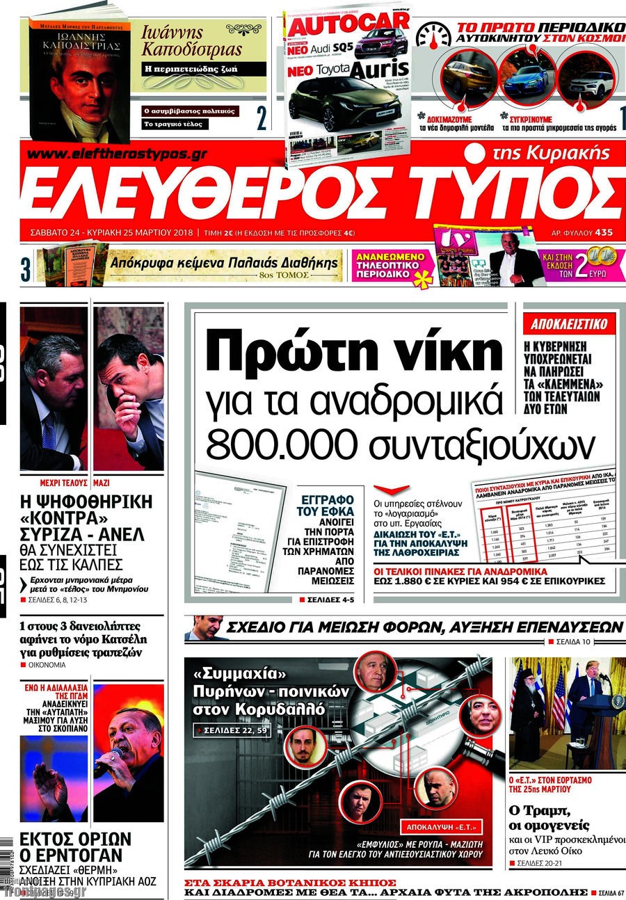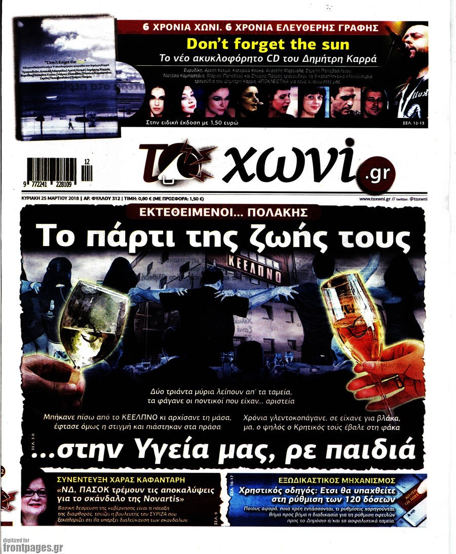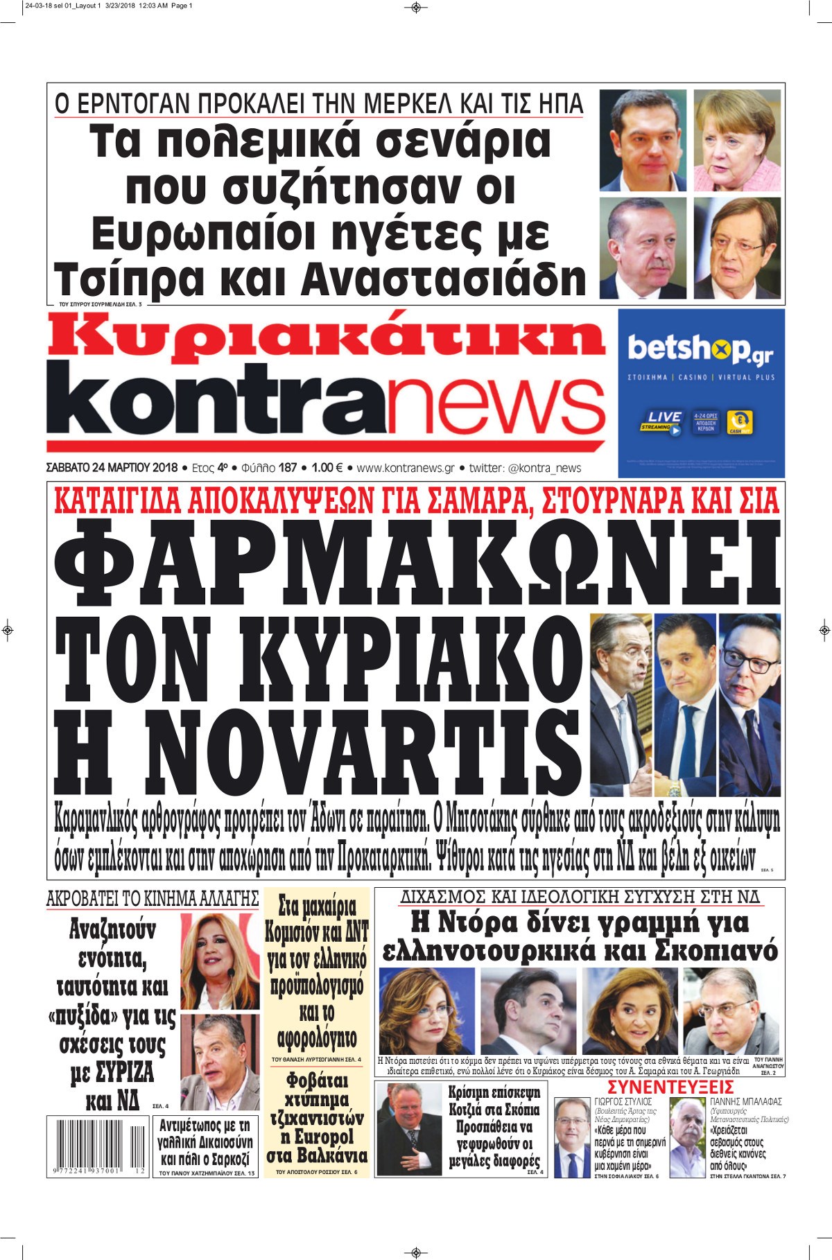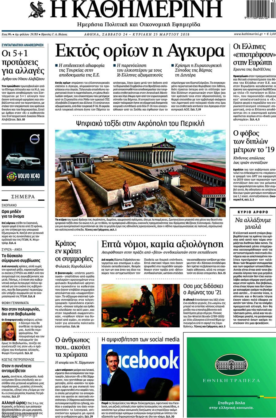Οι πολιτικές εφημερίδες 24/3/2018 Enikos Newsroom 07:43, Σάββατο 24 Μαρτίου 2018 Media Διαβάστε τα σημερινά πρωτοσέλιδα των πολιτικών εφημερίδων: ΠΟΛΙΤΙΚΕΣ ΕΦΗΜΕΡΙΔΕΣ ΠΡΩΤΟΣΕΛΙΔΑ Μοιράσου το: σχολίασε κι εσύ (0 σχόλια) Ακολουθήστε το enikos.gr στο Google News και μάθετε πρώτοι όλες τις ειδήσεις Δείτε όλες τις τελευταίες ειδήσεις από την Ελλάδα και τον Κόσμο στο enikos.gr Ειδήσεις Ροή Ειδήσεων 3 ώρες πριν Πώς δρούσε το κύκλωμα που διακινούσε ναρκωτικά σε σχολεία – Υπέβαλαν σε βασανιστήρια όσους δεν τηρούσαν τους «κανόνες πειθαρχίας» 4 ώρες πριν Αγρότες: Γιορτές στα μπλόκα με ανοιχτά διόδια – Δικογραφία στα Ιωάννινα για το σήκωμα των μπαρών 3 ώρες πριν Ζελένσκι: Οι Αμερικανοί πρότειναν συνάντηση Ουκρανίας, ΗΠΑ, Ρωσίας στο Μαϊάμι 2 ώρες πριν Τραμπ: Πώς περνάει τις γιορτές των Χριστουγέννων – Τα δώρα που κάνει στα εγγόνια του 2 ώρες πριν Μικαέλα Μπέντχαους: Ο πρώτος άνθρωπος σε αναπηρικό αμαξίδιο που ταξίδεψε στο διάστημα – ΒΙΝΤΕΟ 4 ώρες πριν Η τύχη χαμογελά σε 3 ζώδια έως τις 28 Δεκεμβρίου – «Προσέξτε τις επιλογές σας και η επιμονή σας θα ανταμειφθεί» 5 ώρες πριν Μία ανεκμετάλλευτη πηγή θα μπορούσε να προσφέρει ανεξάντλητη ενέργεια – Οι επιστήμονες ίσως γνωρίζουν πώς να την ξεκλειδώσουν 1 ώρα πριν Μήπως οι γιορτές σας δεν είναι τόσο τέλειες; 7 χριστουγεννιάτικες συνήθειες που μαρτυρούν ότι μια οικογένεια είναι δυσλειτουργική 11 ώρες πριν Enerwave: Το νέο «ρεύμα» στη λιανική ενέργειας που αλλάζει την εμπειρία του καταναλωτή 8 λεπτά πριν Πώς να απαλλαγείτε από τη μυρωδιά του τηγανητού φαγητού: Το μυστικό βρίσκεται στην κουζίνα σας 14 λεπτά πριν Βλαχοδήμος: «Νιώθω καλά που είμαι σημαντικός για τη Σεβίλλη» – Τι είπε για τη Ρεάλ Μαδρίτης και τον Μπαπέ 23 λεπτά πριν Πρίγκιπας Ουίλιαμ: Μαγείρεψε παρέα με τον πρίγκιπα Τζορτζ για τους αστέγους – ΦΩΤΟ και ΒΙΝΤΕΟ 31 λεπτά πριν Επιχείρηση της Τροχαίας κατά της παράνομης στάθμευσης στο Νέο Ψυχικό – Τέσσερις συλλήψεις 41 λεπτά πριν Κυριάκος Μητσοτάκης: Στην Ιερουσαλήμ την Τρίτη ο Πρωθυπουργός για την τριμερή Ελλάδας, Κύπρου, Ισραήλ – Θα συναντηθεί και με τον Αμπάς ENIKOS NETWORK Οι γυναίκες αποκαλύπτουν το πιο ελκυστικό πράγμα που μπορεί να κάνει ένας άνδρας Ομορφιά και αντιγήρανση: Ειδικοί μιλούν για συσκευές περιποίησης του δέρματος Θεοδωρικάκος: Εθνική στρατηγική για τους ημιαγωγούς – Πρώτο βήμα η χρηματοδότηση του πρώτου Κέντρου Ικανοτήτων, με 3,63 εκα... Επίδομα θέρμανσης: Μπαίνει η πρώτη δόση την Τρίτη – Οι επόμενες πληρωμές Χαρτογραφώντας το «σημείο χωρίς επιστροφή»: Για πρώτη φορά αποκαλύπτεται με λεπτομέρεια το ακανθώδες όριο της ατμόσφαιρας τ... Η Google καταργεί τη λειτουργία «dark web report» – Πώς θα μπορούν οι χρήστες να διαγράφουν τα δεδομένα τους περισσότερα 18:19 , Σάββατο 20 Δεκεμβρίου 2025 HOTΕΛ ΕΛVIRA: Η Ελβίρα μαθαίνει πως ο Χάρι μένει κρυφά στο ξενοδοχείο του Παντελή Συνεχίζονται οι εκλογές για πρόεδρο, στο νέο επεισόδιο της κωμικής σειράς του MEGA, HOTΕΛ ΕΛVI... 14:04 , Σάββατο 20 Δεκεμβρίου 2025 Η Realnews αυτής της Κυριακής (21/12/2025) Με τίτλο: «Ασπίδα προστασίας για την Ελλάδα» κυκλοφορεί, αυτήν την Κυριακή, η Realnews. Σημαντ... 12:53 , Σάββατο 20 Δεκεμβρίου 2025 Να μ’ αγαπάς: Το παρελθόν έρχεται στο φως – Καταιγιστικές εξελίξεις στα τελευταία επεισόδια του 2025 Ο Άγγελος αποκαλύπτεται, η Φωτεινή ανησυχεί για τον Λευτέρη και η Ζωή έρχεται αντιμέτωπη με το... 11:41 , Σάββατο 20 Δεκεμβρίου 2025 «Η αγάπη δεν χάνεται ποτέ»: Η μικρού μήκους ταινία κινουμένων σχεδίων που θέτει ερωτή