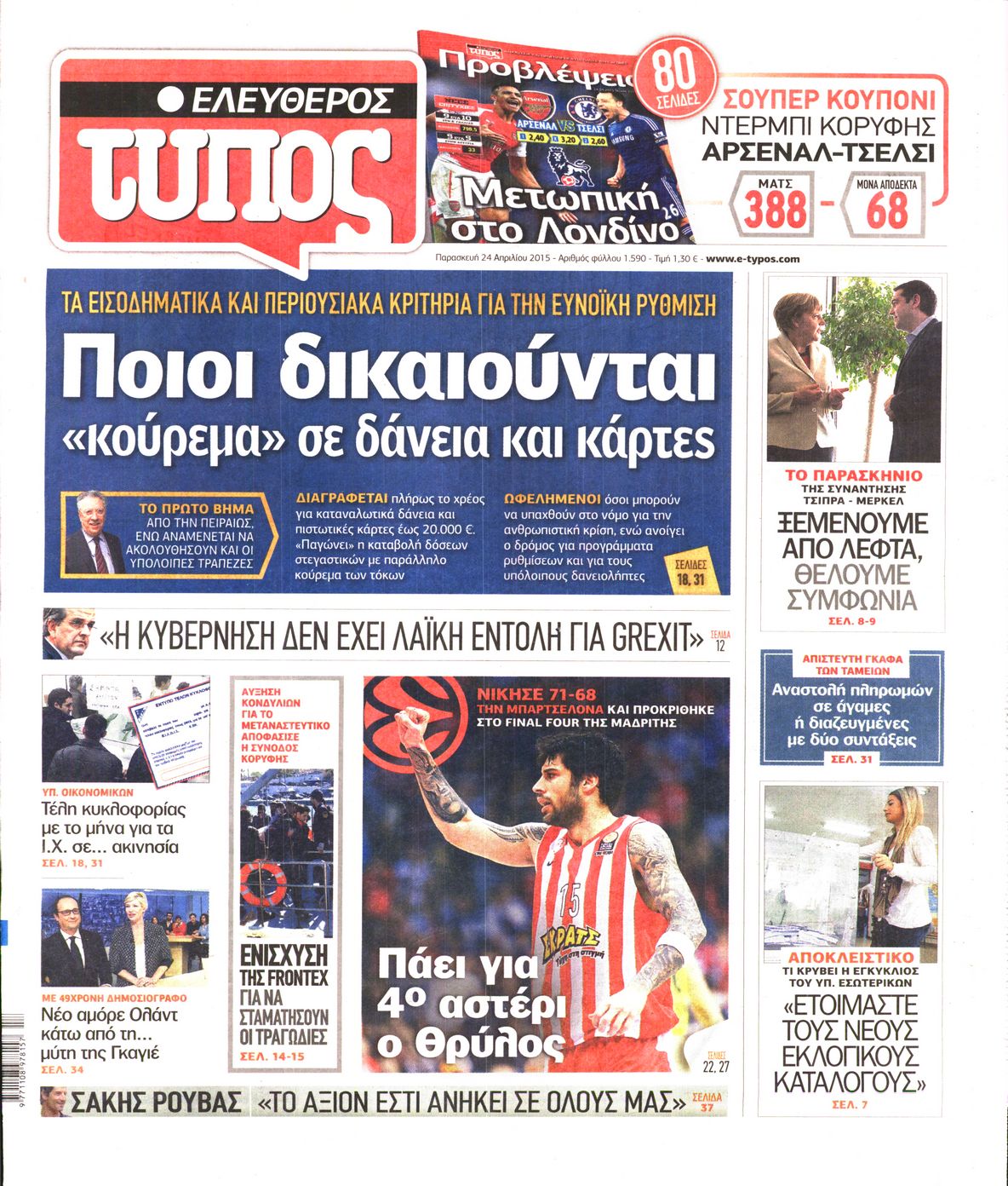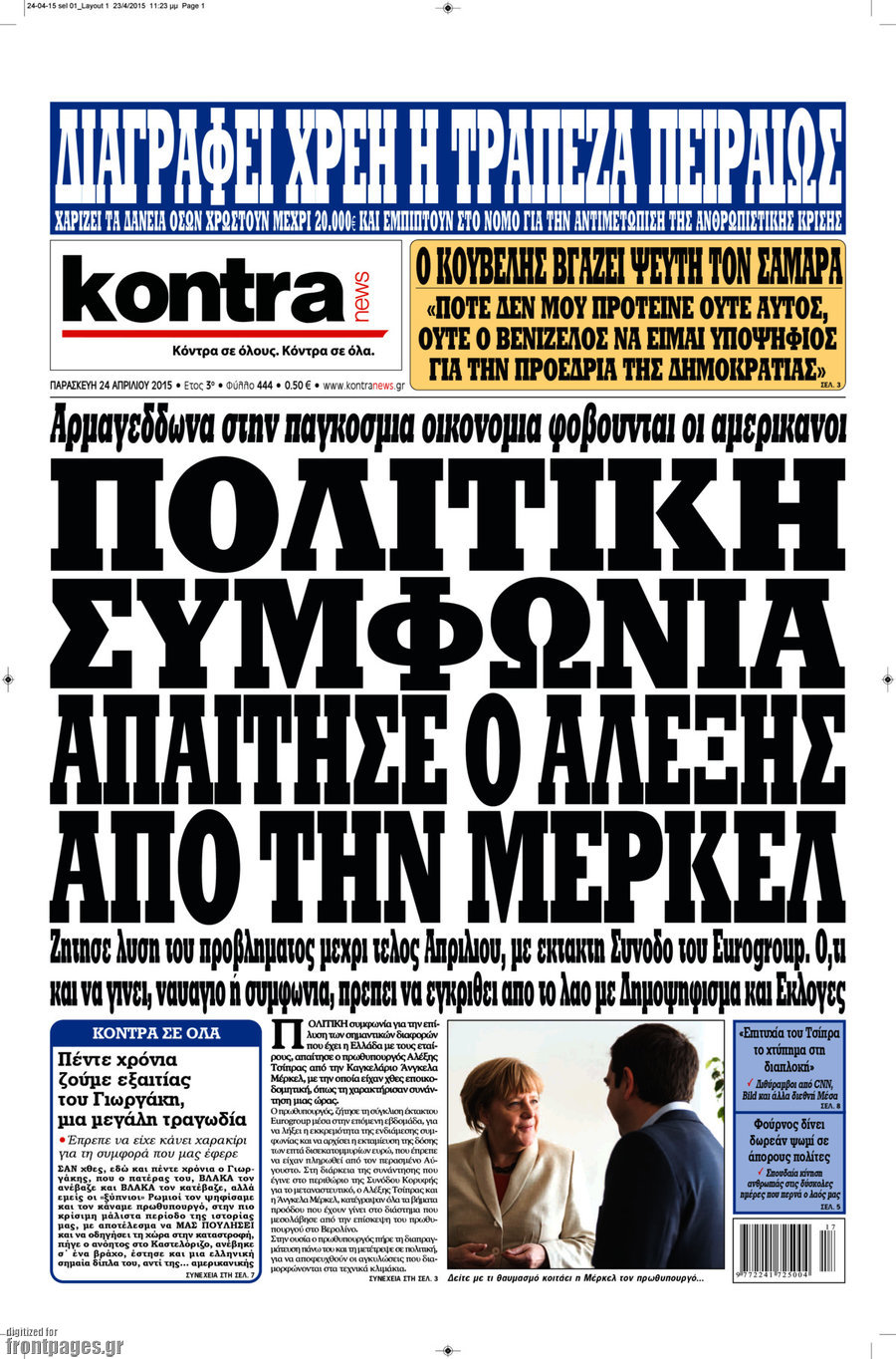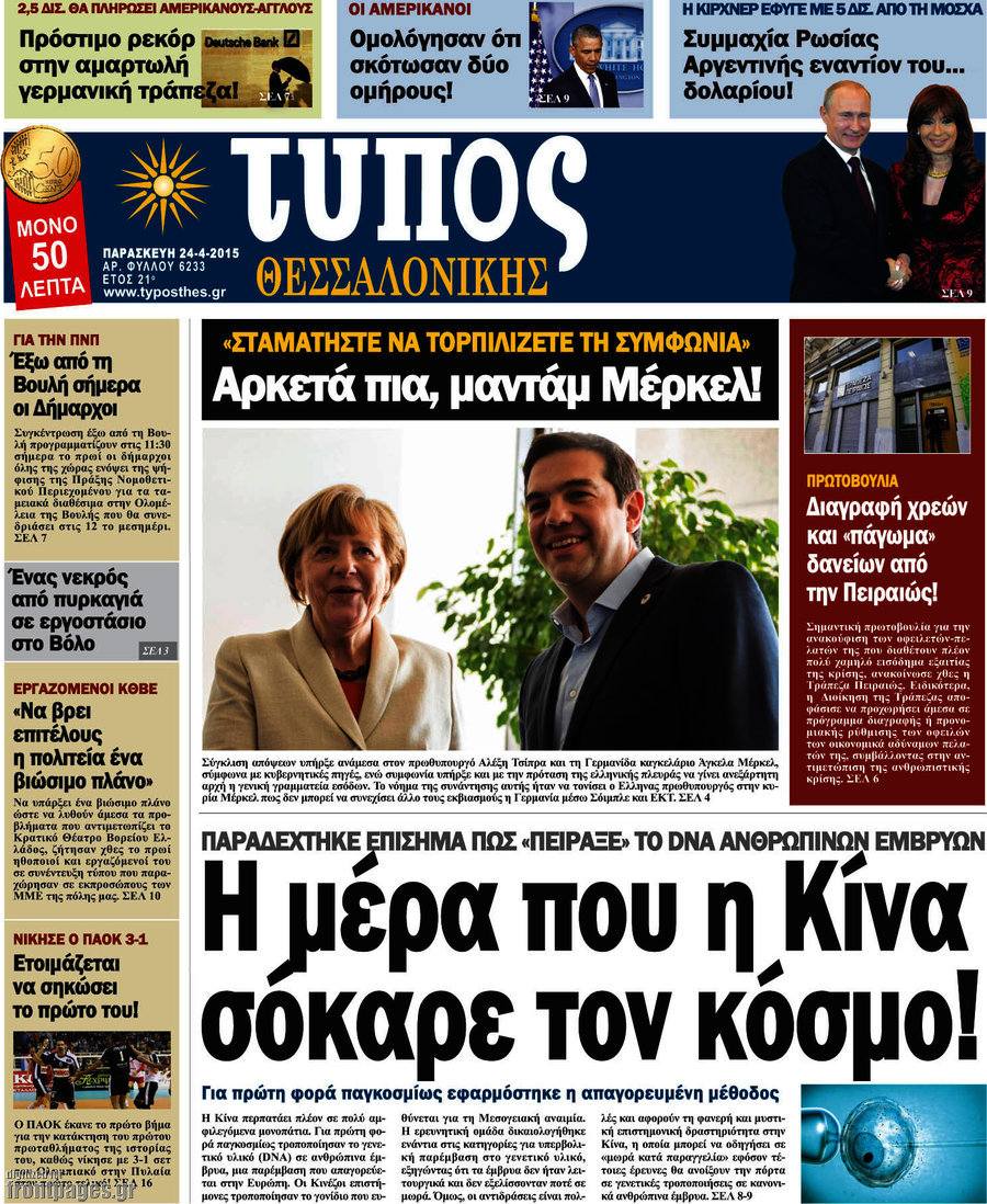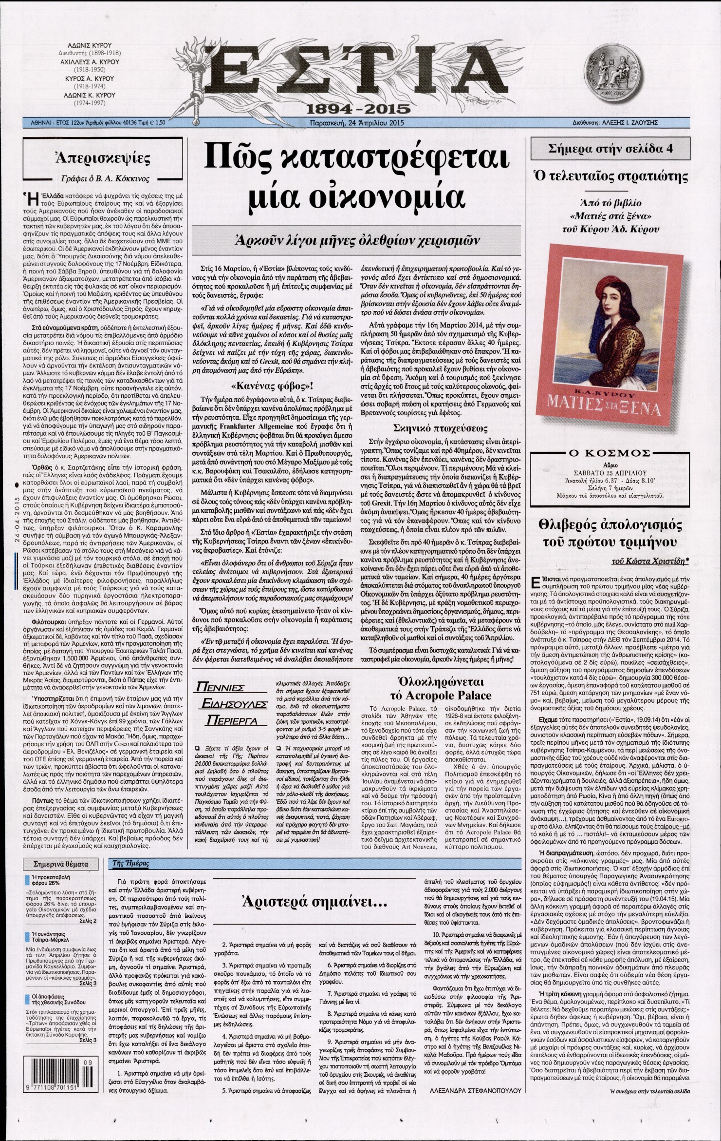 Οι πολιτικές εφημερίδες 24/4/2015 Enikos Newsroom 06:41, Παρασκευή 24 Απριλίου 2015 Media Διαβάστε τα σημερινά πρωτοσέλιδα των πολιτικών εφημερίδων: ΕΦΗΜΕΡΙΔΕΣ ΠΟΛΙΤΙΚΕΣ ΕΦΗΜΕΡΙΔΕΣ ΠΡΩΤΟΣΕΛΙΔΑ Μοιράσου το: σχολίασε κι εσύ (0 σχόλια) Ακολουθήστε το enikos.gr στο Google News και μάθετε πρώτοι όλες τις ειδήσεις Δείτε όλες τις τελευταίες ειδήσεις από την Ελλάδα και τον Κόσμο στο enikos.gr Ειδήσεις Ροή Ειδήσεων 3 ώρες πριν Πώς δρούσε το κύκλωμα που διακινούσε ναρκωτικά σε σχολεία – Υπέβαλαν σε βασανιστήρια όσους δεν τηρούσαν τους «κανόνες πειθαρχίας» 4 ώρες πριν Αγρότες: Γιορτές στα μπλόκα με ανοιχτά διόδια – Δικογραφία στα Ιωάννινα για το σήκωμα των μπαρών 3 ώρες πριν Ζελένσκι: Οι Αμερικανοί πρότειναν συνάντηση Ουκρανίας, ΗΠΑ, Ρωσίας στο Μαϊάμι 2 ώρες πριν Τραμπ: Πώς περνάει τις γιορτές των Χριστουγέννων – Τα δώρα που κάνει στα εγγόνια του 2 ώρες πριν Μικαέλα Μπέντχαους: Ο πρώτος άνθρωπος σε αναπηρικό αμαξίδιο που ταξίδεψε στο διάστημα – ΒΙΝΤΕΟ 4 ώρες πριν Η τύχη χαμογελά σε 3 ζώδια έως τις 28 Δεκεμβρίου – «Προσέξτε τις επιλογές σας και η επιμονή σας θα ανταμειφθεί» 5 ώρες πριν Μία ανεκμετάλλευτη πηγή θα μπορούσε να προσφέρει ανεξάντλητη ενέργεια – Οι επιστήμονες ίσως γνωρίζουν πώς να την ξεκλειδώσουν 1 ώρα πριν Μήπως οι γιορτές σας δεν είναι τόσο τέλειες; 7 χριστουγεννιάτικες συνήθειες που μαρτυρούν ότι μια οικογένεια είναι δυσλειτουργική 11 ώρες πριν Enerwave: Το νέο «ρεύμα» στη λιανική ενέργειας που αλλάζει την εμπειρία του καταναλωτή 9 λεπτά πριν Πώς να απαλλαγείτε από τη μυρωδιά του τηγανητού φαγητού: Το μυστικό βρίσκεται στην κουζίνα σας 14 λεπτά πριν Βλαχοδήμος: «Νιώθω καλά που είμαι σημαντικός για τη Σεβίλλη» – Τι είπε για τη Ρεάλ Μαδρίτης και τον Μπαπέ 23 λεπτά πριν Πρίγκιπας Ουίλιαμ: Μαγείρεψε παρέα με τον πρίγκιπα Τζορτζ για τους αστέγους – ΦΩΤΟ και ΒΙΝΤΕΟ 32 λεπτά πριν Επιχείρηση της Τροχαίας κατά της παράνομης στάθμευσης στο Νέο Ψυχικό – Τέσσερις συλλήψεις 41 λεπτά πριν Κυριάκος Μητσοτάκης: Στην Ιερουσαλήμ την Τρίτη ο Πρωθυπουργός για την τριμερή Ελλάδας, Κύπρου, Ισραήλ – Θα συναντηθεί και με τον Αμπάς ENIKOS NETWORK Οι γυναίκες αποκαλύπτουν το πιο ελκυστικό πράγμα που μπορεί να κάνει ένας άνδρας Ομορφιά και αντιγήρανση: Ειδικοί μιλούν για συσκευές περιποίησης του δέρματος Θεοδωρικάκος: Εθνική στρατηγική για τους ημιαγωγούς – Πρώτο βήμα η χρηματοδότηση του πρώτου Κέντρου Ικανοτήτων, με 3,63 εκα... Επίδομα θέρμανσης: Μπαίνει η πρώτη δόση την Τρίτη – Οι επόμενες πληρωμές Χαρτογραφώντας το «σημείο χωρίς επιστροφή»: Για πρώτη φορά αποκαλύπτεται με λεπτομέρεια το ακανθώδες όριο της ατμόσφαιρας τ... Η Google καταργεί τη λειτουργία «dark web report» – Πώς θα μπορούν οι χρήστες να διαγράφουν τα δεδομένα τους περισσότερα 18:19 , Σάββατο 20 Δεκεμβρίου 2025 HOTΕΛ ΕΛVIRA: Η Ελβίρα μαθαίνει πως ο Χάρι μένει κρυφά στο ξενοδοχείο του Παντελή Συνεχίζονται οι εκλογές για πρόεδρο, στο νέο επεισόδιο της κωμικής σειράς του MEGA, HOTΕΛ ΕΛVI... 14:04 , Σάββατο 20 Δεκεμβρίου 2025 Η Realnews αυτής της Κυριακής (21/12/2025) Με τίτλο: «Ασπίδα προστασίας για την Ελλάδα» κυκλοφορεί, αυτήν την Κυριακή, η Realnews. Σημαντ... 12:53 , Σάββατο 20 Δεκεμβρίου 2025 Να μ’ αγαπάς: Το παρελθόν έρχεται στο φως – Καταιγιστικές εξελίξεις στα τελευταία επεισόδια του 2025 Ο Άγγελος αποκαλύπτεται, η Φωτεινή ανησυχεί για τον Λευτέρη και η Ζωή έρχεται αντιμέτωπη με το... 11:41 , Σάββατο 20 Δεκεμβρίου 2025 «Η αγάπη δεν χάνεται ποτέ»: Η μικρού μήκους ταινία κινουμένων σχεδίων π