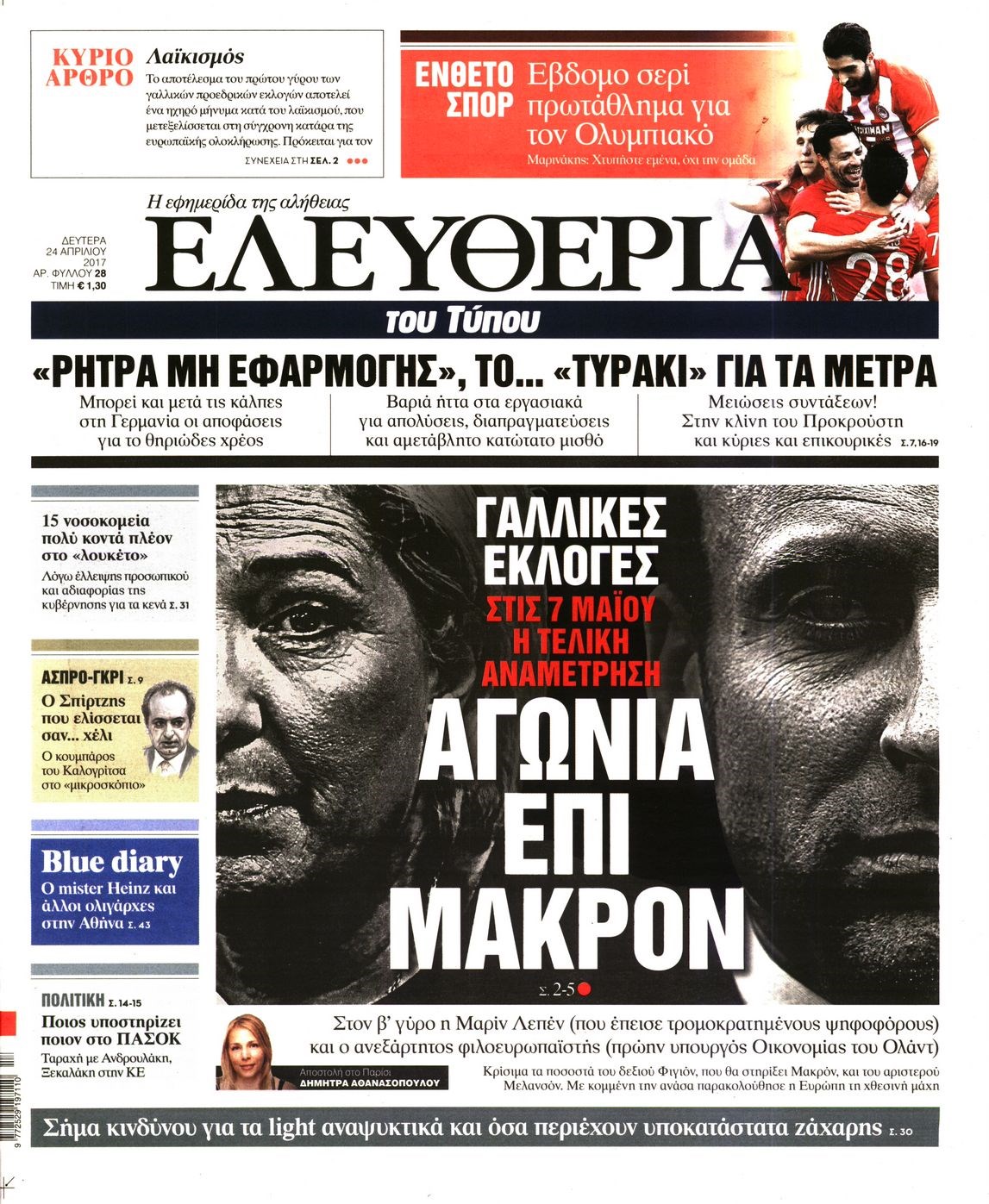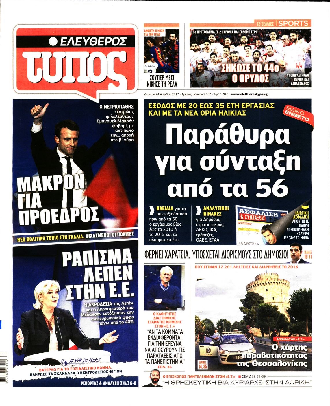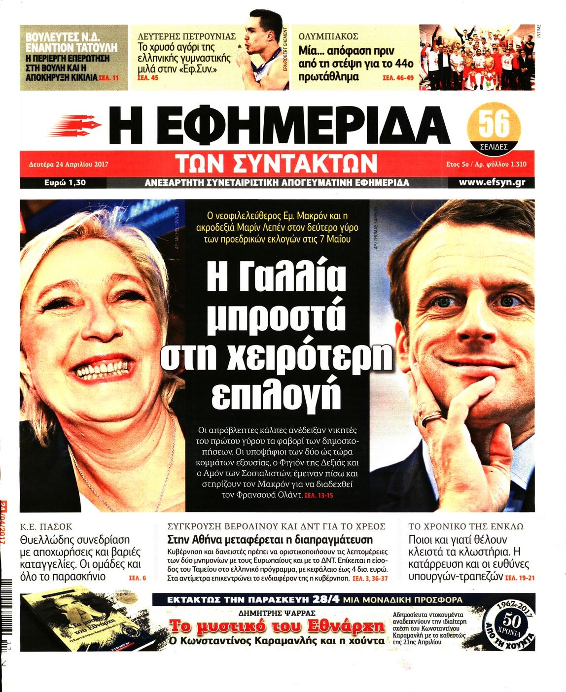 Οι πολιτικές εφημερίδες 24/4/2017 Enikos Newsroom 07:08, Δευτέρα 24 Απριλίου 2017 Media Διαβάστε τα σημερινά πρωτοσέλιδα των πολιτικών εφημερίδων: ΠΟΛΙΤΙΚΕΣ ΕΦΗΜΕΡΙΔΕΣ ΠΡΩΤΟΣΕΛΙΔΑ Μοιράσου το: σχολίασε κι εσύ (0 σχόλια) Ακολουθήστε το enikos.gr στο Google News και μάθετε πρώτοι όλες τις ειδήσεις Δείτε όλες τις τελευταίες ειδήσεις από την Ελλάδα και τον Κόσμο στο enikos.gr Ειδήσεις Ροή Ειδήσεων 4 ώρες πριν Υπόθεση Έπσταϊν: Το Υπουργείο Δικαιοσύνης δημοσιοποίησε μια σειρά από εξαιρετικά επεξεργασμένα αρχεία – «Λείπουν τα πιο σημαντικά έγγραφα», λένε οι Δημοκρατικοί 49 λεπτά πριν Γιορτές με μπλόκα για τους αγρότες: Ανοίγουν διόδια και μοιράζουν προϊόντα στους ταξιδιώτες 1 ώρα πριν Εξαφάνιση 33χρονου γιατρού στην Κρήτη: «Άναψα τα φώτα, τρόμαξε και άρχισε να τρέχει στα χωράφια» – Η τελευταία διαδρομή και η μαρτυρία «κλειδί» 3 ώρες πριν Ο «χάρτης» με τις αυξήσεις και τις φοροελαφρύνσεις του 2026 – Ποιοι και πόσα κερδίζουν 1 ώρα πριν Τα αρχεία του Έπσταϊν αποκαλύπτουν φωτογραφία του έκπτωτου πρίγκιπα Άντριου – Είναι ξαπλωμένος στην αγκαλιά 5 γυναικών 1 ώρα πριν Μία νέα «χρυσή» περίοδος αρχίζει για 3 ζώδια από σήμερα – «Μία αναπάντεχη ευκαιρία οδηγεί στην επιτυχία» 5 ώρες πριν Αυγά: Πόσα μπορείτε να τρώτε την ημέρα με ασφάλεια για μέγιστη πρόσληψη πρωτεΐνης 3 ώρες πριν Αρχαιολόγοι ανακάλυψαν σε χωράφι απεικόνιση 600 ετών ενός Αγίου – Τα στοιχεία που δείχνουν ότι μαρτύρησε 2 ώρες πριν Αγχώνεται για το χριστουγεννιάτικο δώρο που πήρε στην πλούσια σύντροφό του – «Φοβάμαι πως θα το βρει φθηνιάρικο, φοράει βραχιόλια Cartier» 6 λεπτά πριν Τα Labubu «μετακομίζουν» στο Χόλιγουντ: Η Sony Pictures ετοιμάζει live-action ταινία με τον σκηνοθέτη του «Wonka» 14 λεπτά πριν Νέες ταυτότητες: Μεγάλη αναμονή για ραντεβού στην Αττική – Τέλος τα ταξίδια εκτός Ελλάδος από τον Αύγουστο για όσους δεν έχουν αλλάξει 22 λεπτά πριν Οι 7 φράσεις που δεν λένε ποτέ οι συναισθηματικά έξυπνοι άνθρωποι κατά τη διάρκεια ενός καβγά 25 λεπτά πριν Τηλεθέαση (19/12): Ανατροπές και πρωτιές στην πρωινή ζώνη 33 λεπτά πριν Πώς η κλιματική αλλαγή επηρεάζει εγκύους και βρέφη – Οι επιπτώσεις των υψηλών θερμοκρασιών ENIKOS NETWORK Είστε μόνιμα απρόσεκτοι; 3 σημάδια που δείχνουν ότι μπορεί να είναι σύμπτωμα πάθησης Πόσα κιλά παίρνουμε πραγματικά τα Χριστούγεννα, σύμφωνα με την επιστήμη – Πώς να το αποτρέψουμε; e-ΕΦΚΑ και ΔΥΠΑ: Έρχονται νέες πληρωμές έως τις 24 Δεκεμβρίου – Ποιοι πάνε ταμείο Επίδομα παιδιού: Τι αλλάζει από το 2026 – Το όφελος από τις φορολογικές ελαφρύνσεις Χαρτογραφώντας το «σημείο χωρίς επιστροφή»: Για πρώτη φορά αποκαλύπτεται με λεπτομέρεια το ακανθώδες όριο της ατμόσφαιρας τ... Η Google καταργεί τη λειτουργία «dark web report» – Πώς θα μπορούν οι χρήστες να διαγράφουν τα δεδομένα τους περισσότερα 09:30 , Σάββατο 20 Δεκεμβρίου 2025 «Porto Leone: Στη γειτονιά με τα κόκκινα φανάρια» – Ο Χρόνης αποκαλύπτει στην Αλεξάνδρα το μυστικό για το παιδί της Λένας Η μεγάλη δραματική σειρά του Apha «Porto Leone: Στη γειτονιά με τα κόκκινα φανάρια» μας μεταφέ... 08:14 , Σάββατο 20 Δεκεμβρίου 2025 Τρομεροί γονείς: Η Μαρία Καβογιάννη εισβάλλει στο σπίτι της οικογένειας Στεφανίδη Όσα θα δούμε στο νέο διπλό επεισόδιο της σειράς «Τρομεροί γονείς», σήμερα Σάββατο 20 Δεκεμβρίο... 05:48 , Σάββατο 20 Δεκεμβρίου 2025 Οι οικονομικές εφημερίδες 20/12/2025 Διαβάστε τα πρωτοσέλιδα από τις οικονομικές εφημερίδες, σήμερα 20/12/2025. 05:43 , Σάββατο 20 Δεκεμβρίου 2025 Οι αθλητικές εφημερίδες 20/12/2025 Διαβάστε τα πρωτοσέλιδα απ