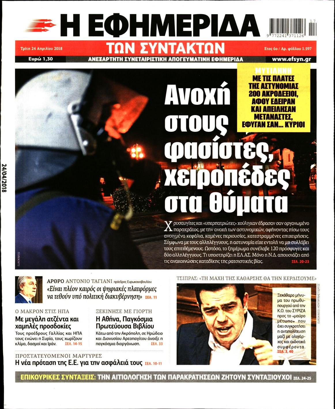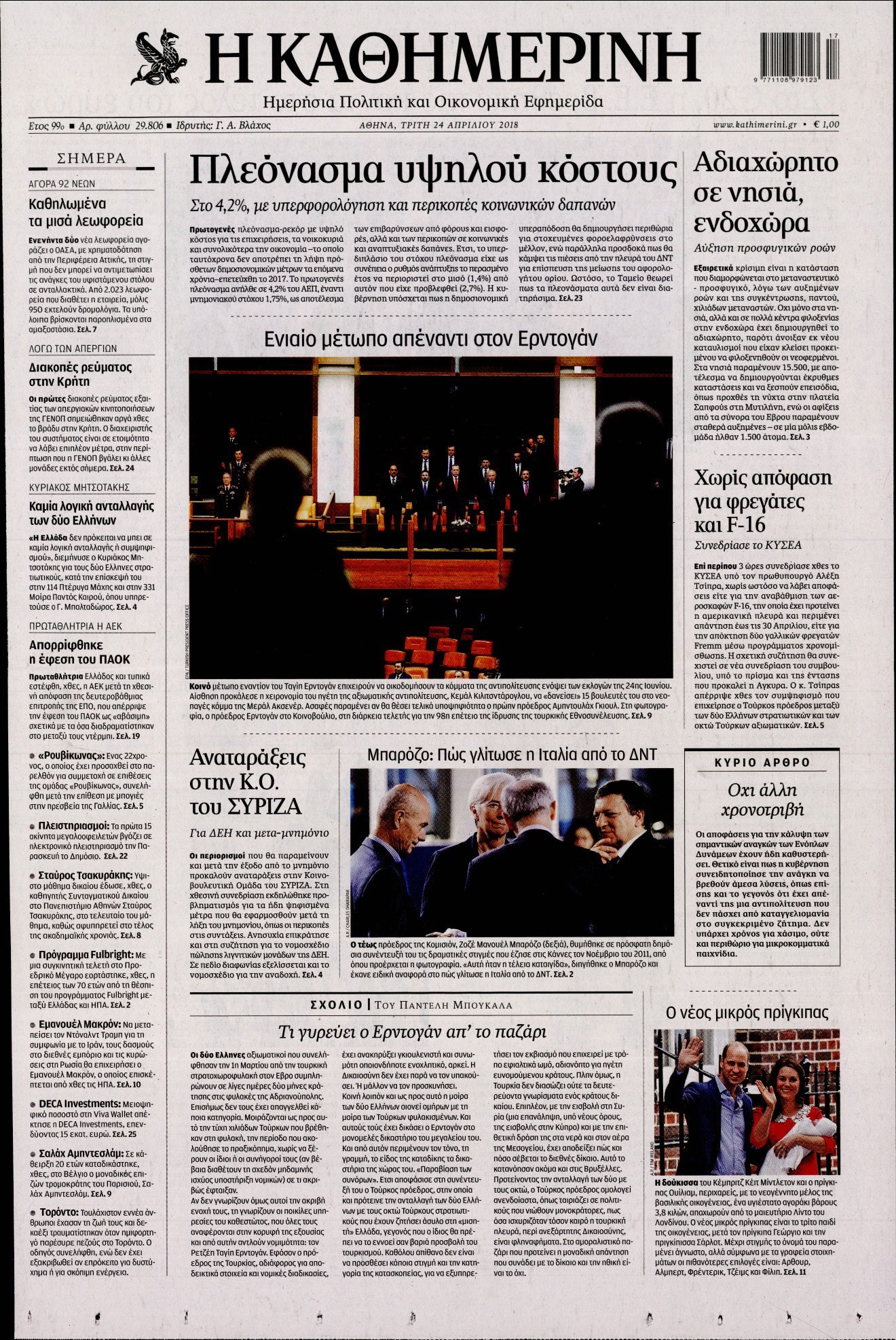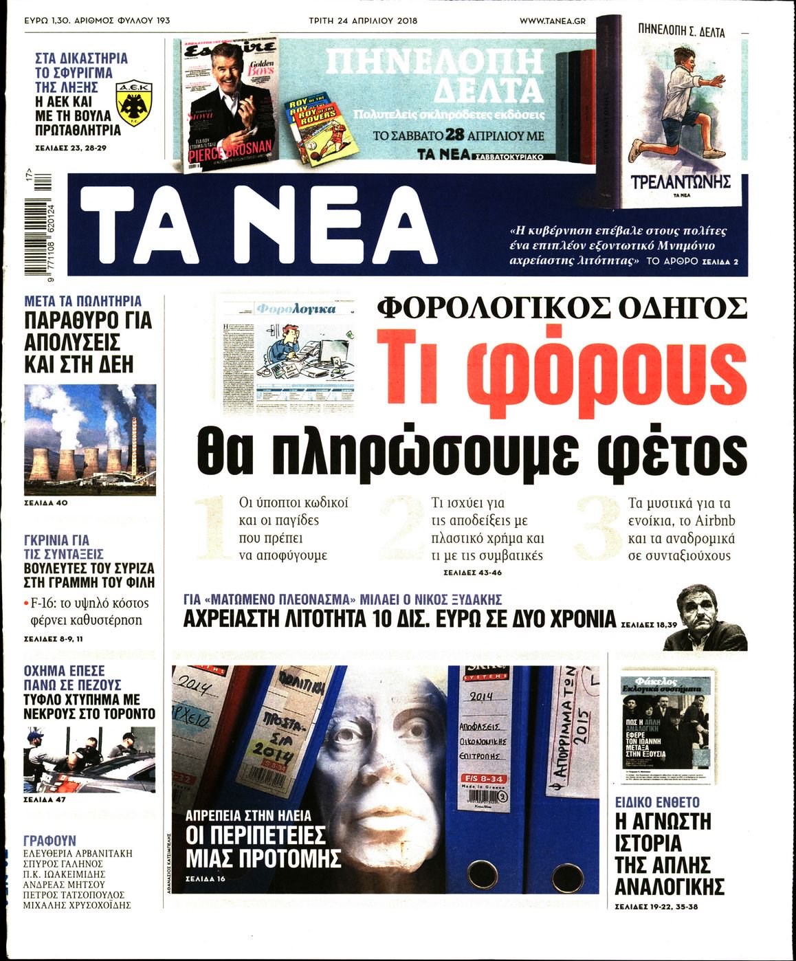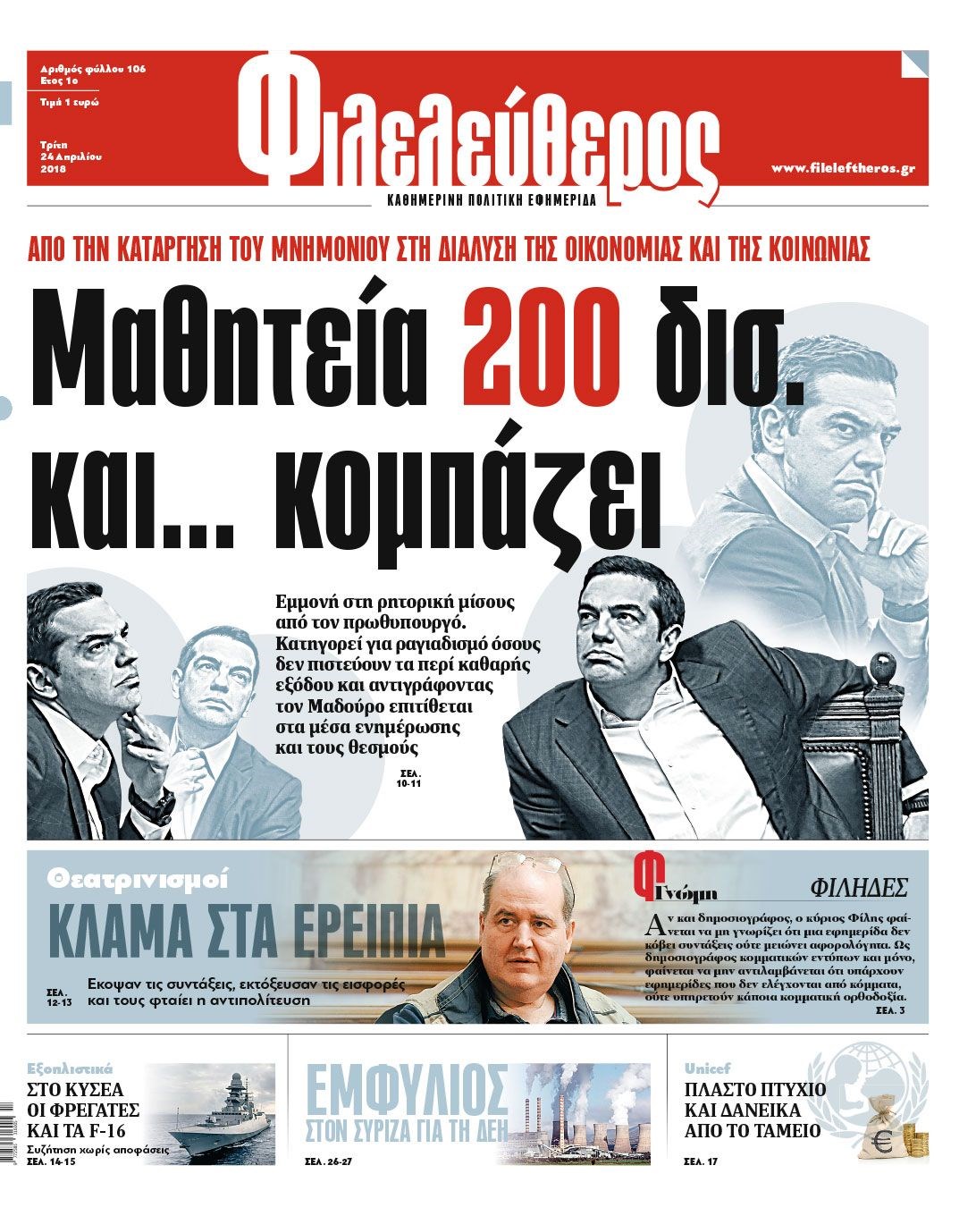 Οι πολιτικές εφημερίδες 24/4/2018 Κώστας Τεό 06:26, Τρίτη 24 Απριλίου 2018 Media Διαβάστε τα σημερινά πρωτοσέλιδα των πολιτικών εφημερίδων: ΠΟΛΙΤΙΚΕΣ ΕΦΗΜΕΡΙΔΕΣ ΠΡΩΤΟΣΕΛΙΔΑ Μοιράσου το: σχολίασε κι εσύ (0 σχόλια) Ακολουθήστε το enikos.gr στο Google News και μάθετε πρώτοι όλες τις ειδήσεις Δείτε όλες τις τελευταίες ειδήσεις από την Ελλάδα και τον Κόσμο στο enikos.gr Ειδήσεις Ροή Ειδήσεων 4 ώρες πριν Υπόθεση Έπσταϊν: Το Υπουργείο Δικαιοσύνης δημοσιοποίησε μια σειρά από εξαιρετικά επεξεργασμένα αρχεία – «Λείπουν τα πιο σημαντικά έγγραφα», λένε οι Δημοκρατικοί 49 λεπτά πριν Γιορτές με μπλόκα για τους αγρότες: Ανοίγουν διόδια και μοιράζουν προϊόντα στους ταξιδιώτες 1 ώρα πριν Εξαφάνιση 33χρονου γιατρού στην Κρήτη: «Άναψα τα φώτα, τρόμαξε και άρχισε να τρέχει στα χωράφια» – Η τελευταία διαδρομή και η μαρτυρία «κλειδί» 3 ώρες πριν Ο «χάρτης» με τις αυξήσεις και τις φοροελαφρύνσεις του 2026 – Ποιοι και πόσα κερδίζουν 1 ώρα πριν Τα αρχεία του Έπσταϊν αποκαλύπτουν φωτογραφία του έκπτωτου πρίγκιπα Άντριου – Είναι ξαπλωμένος στην αγκαλιά 5 γυναικών 1 ώρα πριν Μία νέα «χρυσή» περίοδος αρχίζει για 3 ζώδια από σήμερα – «Μία αναπάντεχη ευκαιρία οδηγεί στην επιτυχία» 5 ώρες πριν Αυγά: Πόσα μπορείτε να τρώτε την ημέρα με ασφάλεια για μέγιστη πρόσληψη πρωτεΐνης 3 ώρες πριν Αρχαιολόγοι ανακάλυψαν σε χωράφι απεικόνιση 600 ετών ενός Αγίου – Τα στοιχεία που δείχνουν ότι μαρτύρησε 2 ώρες πριν Αγχώνεται για το χριστουγεννιάτικο δώρο που πήρε στην πλούσια σύντροφό του – «Φοβάμαι πως θα το βρει φθηνιάρικο, φοράει βραχιόλια Cartier» 6 λεπτά πριν Τα Labubu «μετακομίζουν» στο Χόλιγουντ: Η Sony Pictures ετοιμάζει live-action ταινία με τον σκηνοθέτη του «Wonka» 14 λεπτά πριν Νέες ταυτότητες: Μεγάλη αναμονή για ραντεβού στην Αττική – Τέλος τα ταξίδια εκτός Ελλάδος από τον Αύγουστο για όσους δεν έχουν αλλάξει 23 λεπτά πριν Οι 7 φράσεις που δεν λένε ποτέ οι συναισθηματικά έξυπνοι άνθρωποι κατά τη διάρκεια ενός καβγά 26 λεπτά πριν Τηλεθέαση (19/12): Ανατροπές και πρωτιές στην πρωινή ζώνη 34 λεπτά πριν Πώς η κλιματική αλλαγή επηρεάζει εγκύους και βρέφη – Οι επιπτώσεις των υψηλών θερμοκρασιών ENIKOS NETWORK Είστε μόνιμα απρόσεκτοι; 3 σημάδια που δείχνουν ότι μπορεί να είναι σύμπτωμα πάθησης Πόσα κιλά παίρνουμε πραγματικά τα Χριστούγεννα, σύμφωνα με την επιστήμη – Πώς να το αποτρέψουμε; e-ΕΦΚΑ και ΔΥΠΑ: Έρχονται νέες πληρωμές έως τις 24 Δεκεμβρίου – Ποιοι πάνε ταμείο Επίδομα παιδιού: Τι αλλάζει από το 2026 – Το όφελος από τις φορολογικές ελαφρύνσεις Χαρτογραφώντας το «σημείο χωρίς επιστροφή»: Για πρώτη φορά αποκαλύπτεται με λεπτομέρεια το ακανθώδες όριο της ατμόσφαιρας τ... Η Google καταργεί τη λειτουργία «dark web report» – Πώς θα μπορούν οι χρήστες να διαγράφουν τα δεδομένα τους περισσότερα 09:30 , Σάββατο 20 Δεκεμβρίου 2025 «Porto Leone: Στη γειτονιά με τα κόκκινα φανάρια» – Ο Χρόνης αποκαλύπτει στην Αλεξάνδρα το μυστικό για το παιδί της Λένας Η μεγάλη δραματική σειρά του Apha «Porto Leone: Στη γειτονιά με τα κόκκινα φανάρια» μας μεταφέ... 08:14 , Σάββατο 20 Δεκεμβρίου 2025 Τρομεροί γονείς: Η Μαρία Καβογιάννη εισβάλλει στο σπίτι της οικογένειας Στεφανίδη Όσα θα δούμε στο νέο διπλό επεισόδιο της σειράς «Τρομεροί γονείς», σήμερα Σάββατο 20 Δεκεμβρίο... 05:48 , Σάββατο 20 Δεκεμβρίου 2025 Οι οικονομικές εφημερίδες 20/12/2025 Διαβάστε τα πρωτοσέλιδα από τις οικονομικές εφημερίδες, σήμερα 20/12/2025. 05:43 , Σάββατο 20 Δεκεμβρίου 2025 Οι αθλητικές εφημερίδες 20/12/2025 Διαβάστε τα πρωτοσέλιδα απ
