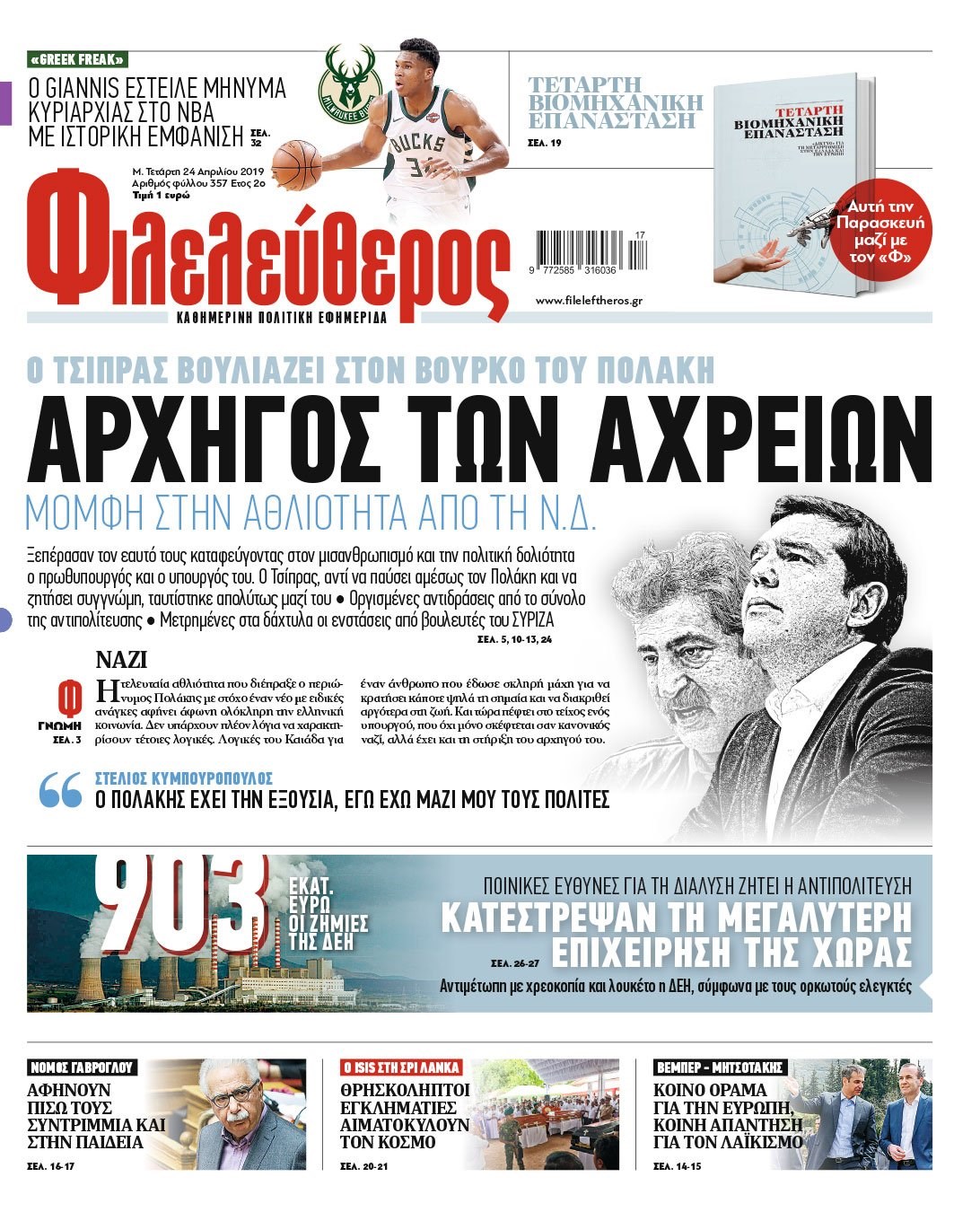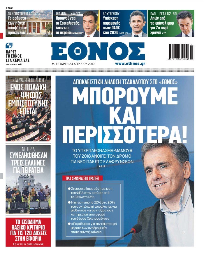 Οι πολιτικές εφημερίδες 24/4/2019 Κώστας Τεό 06:33, Τετάρτη 24 Απριλίου 2019 Media Διαβάστε τα πρωτοσέλιδα των πολιτικών εφημερίδων: ΠΟΛΙΤΙΚΕΣ ΕΦΗΜΕΡΙΔΕΣ ΠΡΩΤΟΣΕΛΙΔΑ Μοιράσου το: σχολίασε κι εσύ (0 σχόλια) Ακολουθήστε το enikos.gr στο Google News και μάθετε πρώτοι όλες τις ειδήσεις Δείτε όλες τις τελευταίες ειδήσεις από την Ελλάδα και τον Κόσμο στο enikos.gr Ειδήσεις Ροή Ειδήσεων 5 ώρες πριν Χριστούγεννα στα μπλόκα οι αγρότες: Άνοιξαν στα διόδια και μοίρασαν προϊόντα στους πολίτες – Νέα σύσκεψη την Κυριακή στη Νίκαια 6 ώρες πριν Κύκλωμα διακίνησης ναρκωτικών σε σχολεία: Τηλεφωνούσαν στους ανηλίκους την ώρα του μαθήματος – Οι διάλογοι-σοκ, τα «ψευδώνυμα» και τα βασανιστήρια 5 ώρες πριν Αρχεία Επστάιν: Οι 500 σελίδες που λείπουν, τα αναπάντητα ερωτήματα και οι επώνυμοι – Τι έπεται 7 ώρες πριν Ζελένσκι: Μόνο οι ΗΠΑ και ο Τραμπ μπορούν να πιέσουν τη Ρωσία να βάλει τέλος στον πόλεμο 7 ώρες πριν Φοινικούντα: Προφυλακιστέος ο 30χρονος για συνέργεια στη διπλή δολοφονία – Και άλλα πρόσωπα στο «μικροσκόπιο» 5 ώρες πριν Αποκαλύφθηκε το άγνωστο «GPS» της αρχαιότητας – Πώς οι ναοί «φώτιζαν» τον δρόμο των ναυτικών πριν από την εφεύρεση των φάρων 6 ώρες πριν Ύπνος: Η διατροφή που μπορεί να σας βοηθήσει να κοιμάστε καλύτερα και να ζήσετε περισσότερο 7 ώρες πριν Αριθμολογία: Ο αριθμός του φύλακα αγγέλου σας, με βάση τον μήνα γέννησής σας – «Έτσι σας στέλνει σημάδια το σύμπαν» 19 ώρες πριν Enerwave: Το νέο «ρεύμα» στη λιανική ενέργειας που αλλάζει την εμπειρία του καταναλωτή 1 ώρα πριν Σήμερα με τη Realnews: Δωροεπιταγή 10€ 27 δευτερόλεπτα πριν Σήμερα με τη Realnews: Ό,τι και αν αγοράσεις, σκανάρεις και κερδίζεις! 8 λεπτά πριν Βενεζουέλα: Προσφέρει βοήθεια στο Ιράν στην σύγκρουση με τις ΗΠΑ 23 λεπτά πριν Μαριλού Κατσαφάδου: «Η απώλεια της με έβαλε σε διαδικασία να δω διαφορετικά τη ζωή, σαν να ωρίμασα 10 χρόνια» 38 λεπτά πριν Ολυμπιακός: Ξέσπασε ο Τζουλιάν Μπιανκόν – «Ο γκολκίπερ της Κηφισιάς έδινε show, ήταν πέναλτι στο τέλος» ENIKOS NETWORK Οι γυναίκες αποκαλύπτουν το πιο ελκυστικό πράγμα που μπορεί να κάνει ένας άνδρας Ομορφιά και αντιγήρανση: Ειδικοί μιλούν για συσκευές περιποίησης του δέρματος «Πολεμική» προετοιμασία από την ευρωπαϊκή βιομηχανία ενέργειας – Η Eurelectric ζητεί «ομπρέλα» προστασίας για τις υποδομές Ακύρωση ΑΦΜ για απάτες – Ποιους βάζει στο στόχαστρο η ΑΑΔΕ Χαρτογραφώντας το «σημείο χωρίς επιστροφή»: Για πρώτη φορά αποκαλύπτεται με λεπτομέρεια το ακανθώδες όριο της ατμόσφαιρας τ... Η Google καταργεί τη λειτουργία «dark web report» – Πώς θα μπορούν οι χρήστες να διαγράφουν τα δεδομένα τους περισσότερα 03:08 , Κυριακή 21 Δεκεμβρίου 2025 Σήμερα με τη Realnews: Instyle, μαζί Drive και Realnews Geopolitics Σήμερα με τη Realnews: Instyle, μαζί Drive και Realnews Geopolitics Instyle Η Άννα Ρεζάν, η Ch... 01:30 , Κυριακή 21 Δεκεμβρίου 2025 Άννα Βίσση: Τα… Social Media «προσκύνησαν» την «απόλυτη» για την συναυλία της στο Καλλιμάρμαρο που προβλήθηκε από το Mega Την ημέρα των γενεθλίων της Άννας Βίσση, το MEGA τίμησε τη διαχρονική παρουσία της «απόλυτης Ε... 00:00 , Κυριακή 21 Δεκεμβρίου 2025 The Voice: Η επιστροφή της Έλενας Παπαρίζου και η ατάκα του Γιώργου Μαζωνάκη μετά τις καταγγελίες Στη φάση των Cross Battles Live μπήκε το The Voice, με την Έλενα Παπαρίζου να επιστρέφει στο π... ΤΕΛΕΥΤΑΙΕΣ ΕΙΔΗΣΕΙΣ 23 λεπτά πριν Μαριλού Κατσαφάδου: «Η απώλεια της με έβαλε σε... 38 λεπτά πριν Ολυμπιακός: Ξέσπασε ο Τζουλιάν Μπιανκόν – «Ο... 53 λεπτά πριν Τρεις Αφγανοί μετανάστες πέθαναν από το κρύο... 60 λεπτά πριν Σήμερα με τη Rea