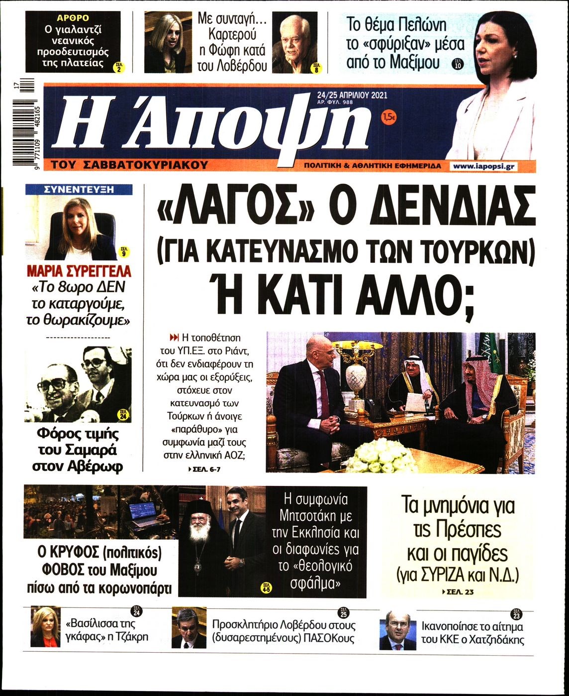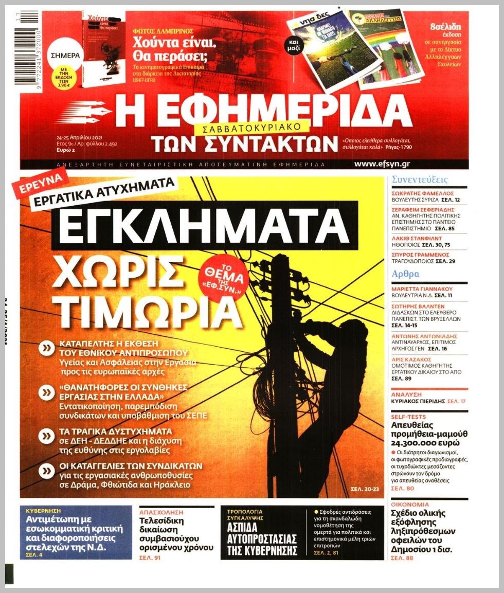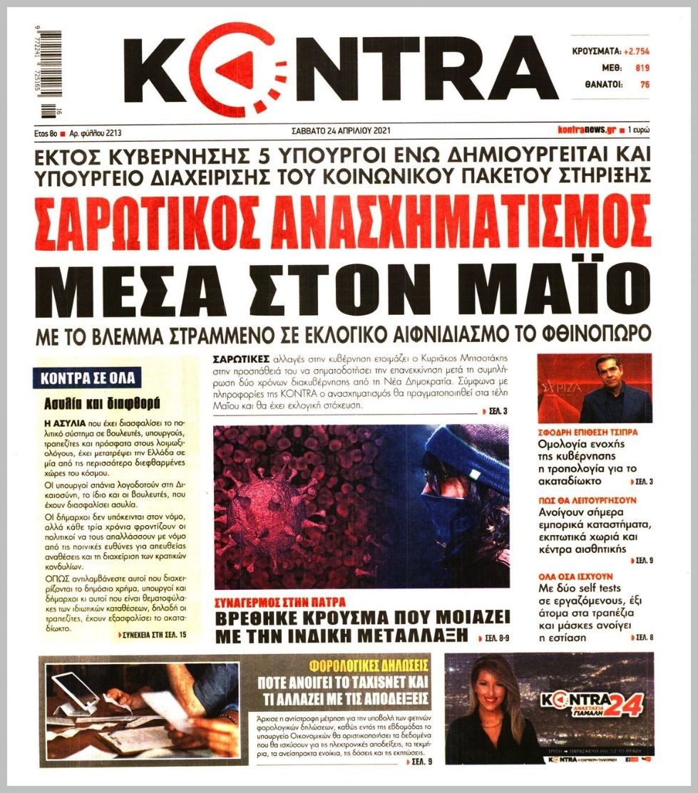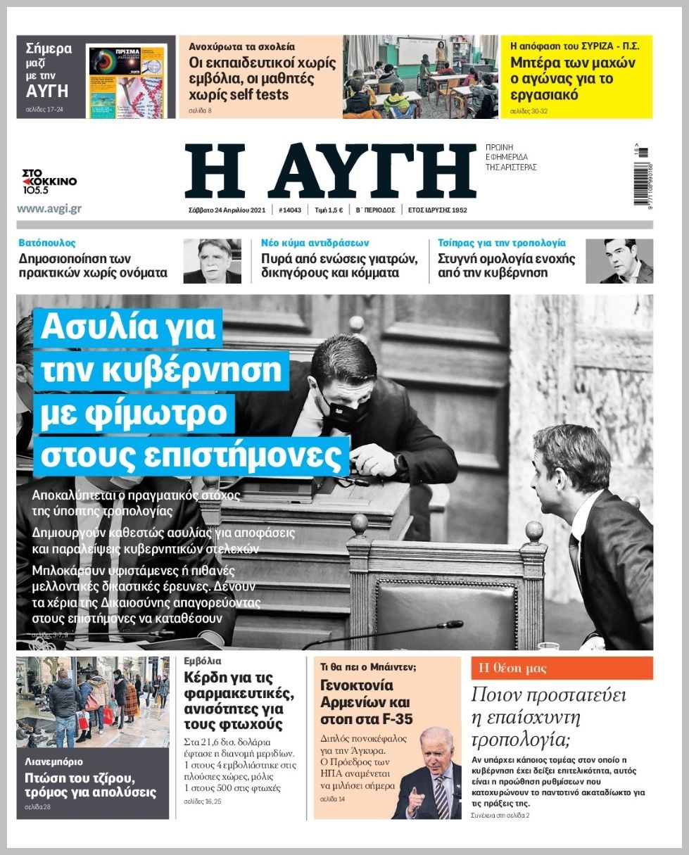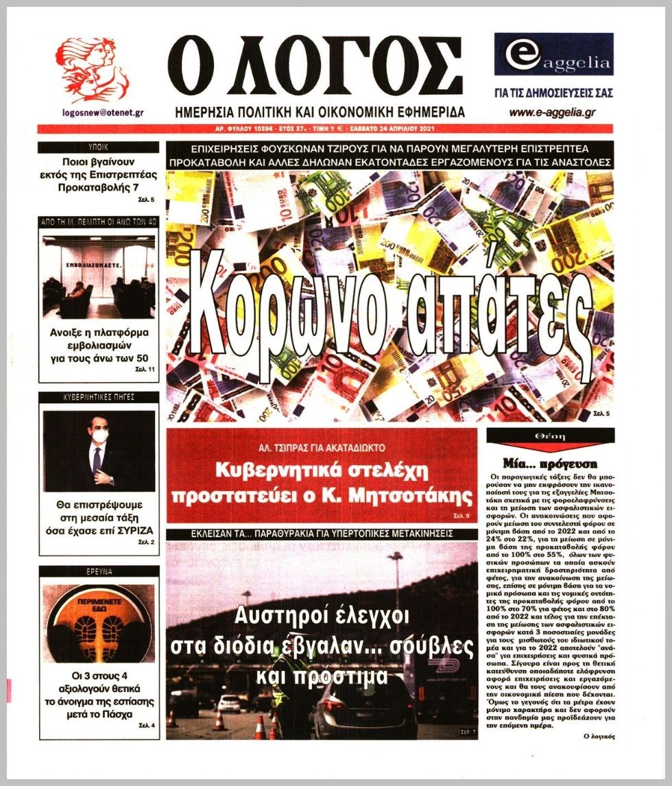 Οι πολιτικές εφημερίδες 24/4/2021 Διονύσης Νίκκας 07:04, Σάββατο 24 Απριλίου 2021 Media Διαβάστε τα πρωτοσέλιδα των πολιτικών εφημερίδων… ΕΦΗΜΕΡΙΔΕΣ ΠΡΩΤΟΣΕΛΙΔΑ Μοιράσου το: σχολίασε κι εσύ (0 σχόλια) Ακολουθήστε το enikos.gr στο Google News και μάθετε πρώτοι όλες τις ειδήσεις Δείτε όλες τις τελευταίες ειδήσεις από την Ελλάδα και τον Κόσμο στο enikos.gr Ειδήσεις Ροή Ειδήσεων 4 ώρες πριν Υπόθεση Έπσταϊν: Το Υπουργείο Δικαιοσύνης δημοσιοποίησε μια σειρά από εξαιρετικά επεξεργασμένα αρχεία – «Λείπουν τα πιο σημαντικά έγγραφα», λένε οι Δημοκρατικοί 52 λεπτά πριν Γιορτές με μπλόκα για τους αγρότες: Ανοίγουν διόδια και μοιράζουν προϊόντα στους ταξιδιώτες 1 ώρα πριν Εξαφάνιση 33χρονου γιατρού στην Κρήτη: «Άναψα τα φώτα, τρόμαξε και άρχισε να τρέχει στα χωράφια» – Η τελευταία διαδρομή και η μαρτυρία «κλειδί» 3 ώρες πριν Ο «χάρτης» με τις αυξήσεις και τις φοροελαφρύνσεις του 2026 – Ποιοι και πόσα κερδίζουν 1 ώρα πριν Τα αρχεία του Έπσταϊν αποκαλύπτουν φωτογραφία του έκπτωτου πρίγκιπα Άντριου – Είναι ξαπλωμένος στην αγκαλιά 5 γυναικών 1 ώρα πριν Μία νέα «χρυσή» περίοδος αρχίζει για 3 ζώδια από σήμερα – «Μία αναπάντεχη ευκαιρία οδηγεί στην επιτυχία» 5 ώρες πριν Αυγά: Πόσα μπορείτε να τρώτε την ημέρα με ασφάλεια για μέγιστη πρόσληψη πρωτεΐνης 3 ώρες πριν Αρχαιολόγοι ανακάλυψαν σε χωράφι απεικόνιση 600 ετών ενός Αγίου – Τα στοιχεία που δείχνουν ότι μαρτύρησε 2 ώρες πριν Αγχώνεται για το χριστουγεννιάτικο δώρο που πήρε στην πλούσια σύντροφό του – «Φοβάμαι πως θα το βρει φθηνιάρικο, φοράει βραχιόλια Cartier» 9 λεπτά πριν Τα Labubu «μετακομίζουν» στο Χόλιγουντ: Η Sony Pictures ετοιμάζει live-action ταινία με τον σκηνοθέτη του «Wonka» 17 λεπτά πριν Νέες ταυτότητες: Μεγάλη αναμονή για ραντεβού στην Αττική – Τέλος τα ταξίδια εκτός Ελλάδος από τον Αύγουστο για όσους δεν έχουν αλλάξει 25 λεπτά πριν Οι 7 φράσεις που δεν λένε ποτέ οι συναισθηματικά έξυπνοι άνθρωποι κατά τη διάρκεια ενός καβγά 28 λεπτά πριν Τηλεθέαση (19/12): Ανατροπές και πρωτιές στην πρωινή ζώνη 36 λεπτά πριν Πώς η κλιματική αλλαγή επηρεάζει εγκύους και βρέφη – Οι επιπτώσεις των υψηλών θερμοκρασιών ENIKOS NETWORK Είστε μόνιμα απρόσεκτοι; 3 σημάδια που δείχνουν ότι μπορεί να είναι σύμπτωμα πάθησης Πόσα κιλά παίρνουμε πραγματικά τα Χριστούγεννα, σύμφωνα με την επιστήμη – Πώς να το αποτρέψουμε; e-ΕΦΚΑ και ΔΥΠΑ: Έρχονται νέες πληρωμές έως τις 24 Δεκεμβρίου – Ποιοι πάνε ταμείο Επίδομα παιδιού: Τι αλλάζει από το 2026 – Το όφελος από τις φορολογικές ελαφρύνσεις Χαρτογραφώντας το «σημείο χωρίς επιστροφή»: Για πρώτη φορά αποκαλύπτεται με λεπτομέρεια το ακανθώδες όριο της ατμόσφαιρας τ... Η Google καταργεί τη λειτουργία «dark web report» – Πώς θα μπορούν οι χρήστες να διαγράφουν τα δεδομένα τους περισσότερα 09:30 , Σάββατο 20 Δεκεμβρίου 2025 «Porto Leone: Στη γειτονιά με τα κόκκινα φανάρια» – Ο Χρόνης αποκαλύπτει στην Αλεξάνδρα το μυστικό για το παιδί της Λένας Η μεγάλη δραματική σειρά του Apha «Porto Leone: Στη γειτονιά με τα κόκκινα φανάρια» μας μεταφέ... 08:14 , Σάββατο 20 Δεκεμβρίου 2025 Τρομεροί γονείς: Η Μαρία Καβογιάννη εισβάλλει στο σπίτι της οικογένειας Στεφανίδη Όσα θα δούμε στο νέο διπλό επεισόδιο της σειράς «Τρομεροί γονείς», σήμερα Σάββατο 20 Δεκεμβρίο... 05:48 , Σάββατο 20 Δεκεμβρίου 2025 Οι οικονομικές εφημερίδες 20/12/2025 Διαβάστε τα πρωτοσέλιδα από τις οικονομικές εφημερίδες, σήμερα 20/12/2025. 05:43 , Σάββατο 20 Δεκεμβρίου 2025 Οι αθλητικές εφημερίδες 20/12/2025 Διαβάστε τα πρωτοσέλιδα από τις αθλητ
