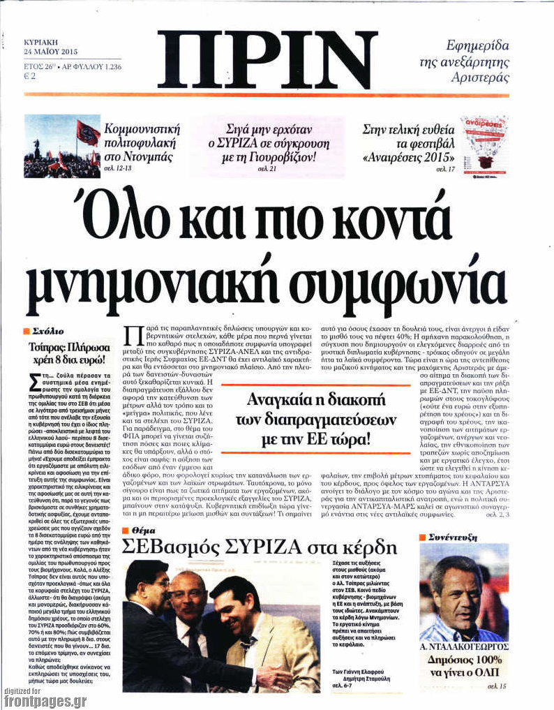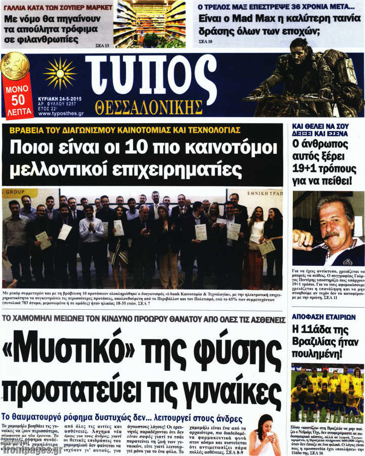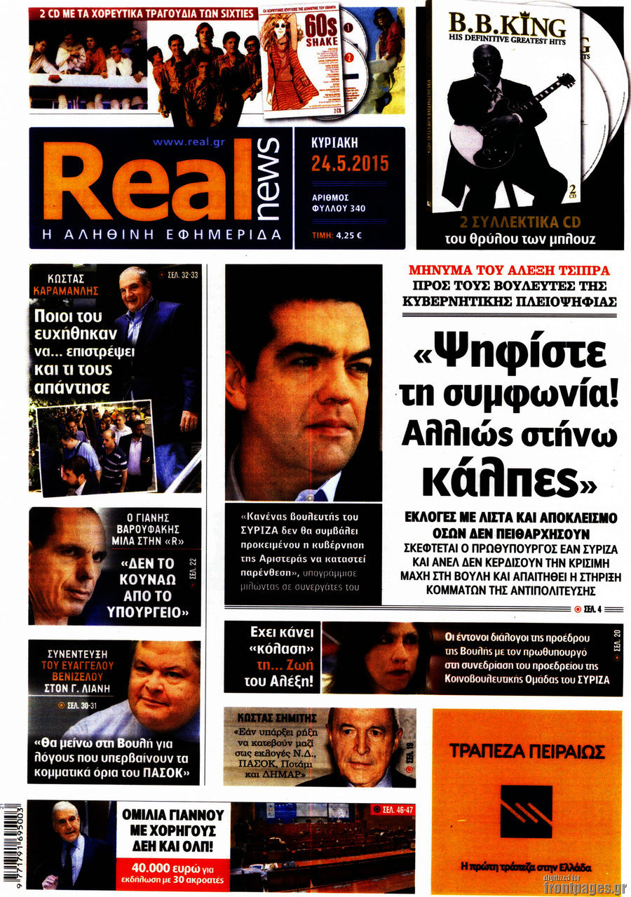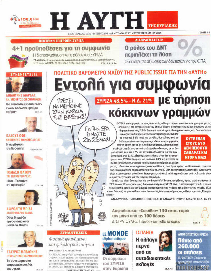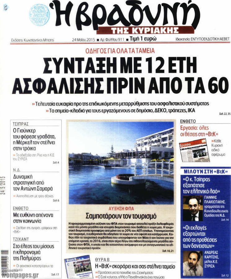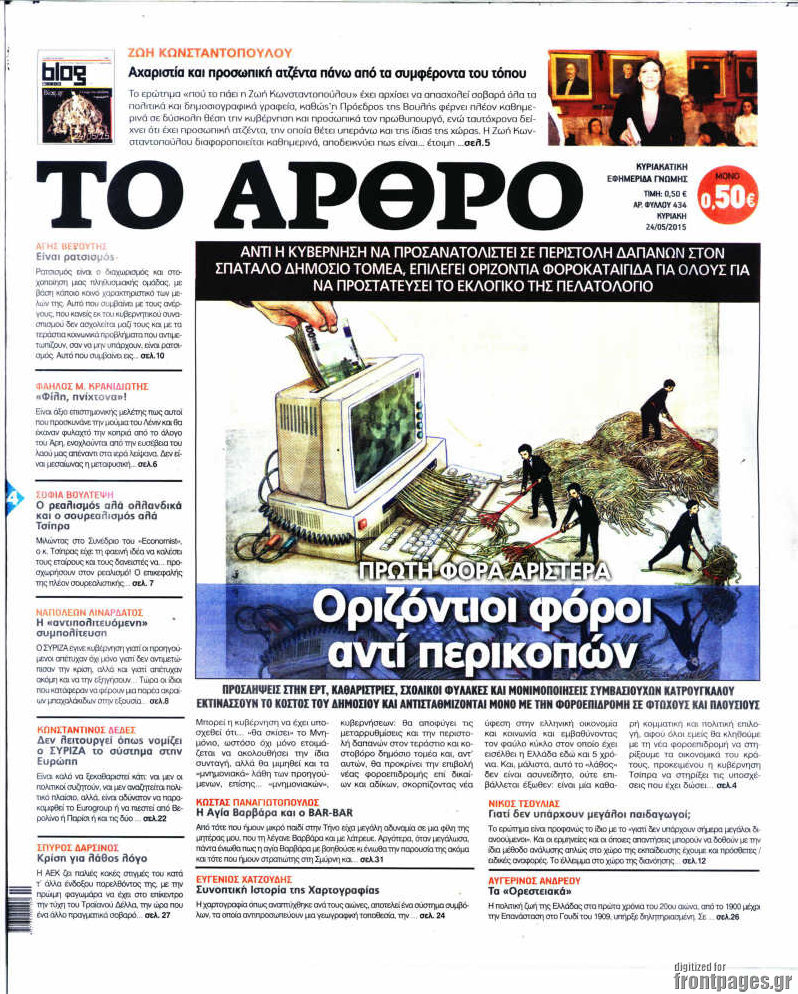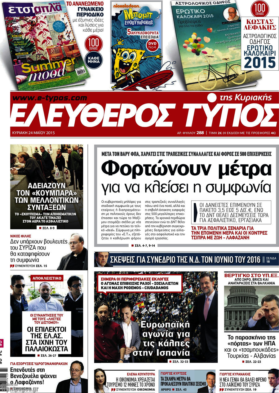 Οι πολιτικές εφημερίδες 24/5/2015 Enikos Newsroom 07:53, Κυριακή 24 Μαΐου 2015 Media Διαβάστε τα σημερινά πρωτοσέλιδα των πολιτικών εφημερίδων. ΕΦΗΜΕΡΙΔΕΣ ΠΟΛΙΤΙΚΕΣ ΕΦΗΜΕΡΙΔΕΣ ΠΡΩΤΟΣΕΛΙΔΑ Μοιράσου το: σχολίασε κι εσύ (0 σχόλια) Ακολουθήστε το enikos.gr στο Google News και μάθετε πρώτοι όλες τις ειδήσεις Δείτε όλες τις τελευταίες ειδήσεις από την Ελλάδα και τον Κόσμο στο enikos.gr Ειδήσεις Ροή Ειδήσεων 2 ώρες πριν Πώς δρούσε το κύκλωμα που διακινούσε ναρκωτικά σε σχολεία – Υπέβαλαν σε βασανιστήρια όσους δεν τηρούσαν τους «κανόνες πειθαρχίας» 3 ώρες πριν Αγρότες: Γιορτές στα μπλόκα με ανοιχτά διόδια – Δικογραφία στα Ιωάννινα για το σήκωμα των μπαρών 2 ώρες πριν Ζελένσκι: Οι Αμερικανοί πρότειναν συνάντηση Ουκρανίας, ΗΠΑ, Ρωσίας στο Μαϊάμι 2 ώρες πριν Αττική: Εξαρθρώθηκε εγκληματική οργάνωση που έκλεβε οχήματα, τα παραποιούσε και τα μεταπωλούσε σε πολίτες – Πώς δρούσε το κύκλωμα 1 ώρα πριν Μικαέλα Μπέντχαους: Ο πρώτος άνθρωπος σε αναπηρικό αμαξίδιο που ταξίδεψε στο διάστημα – ΒΙΝΤΕΟ 3 ώρες πριν Η τύχη χαμογελά σε 3 ζώδια έως τις 28 Δεκεμβρίου – «Προσέξτε τις επιλογές σας και η επιμονή σας θα ανταμειφθεί» 7 ώρες πριν Διαιτολόγος αποκαλύπτει 9 πρωινές συνήθειες που «λιώνουν» το κοιλιακό λίπος – «Υποστηρίζουν την υγιεινή απώλεια βάρους» 4 ώρες πριν Μία ανεκμετάλλευτη πηγή θα μπορούσε να προσφέρει ανεξάντλητη ενέργεια – Οι επιστήμονες ίσως γνωρίζουν πώς να την ξεκλειδώσουν 10 ώρες πριν Enerwave: Το νέο «ρεύμα» στη λιανική ενέργειας που αλλάζει την εμπειρία του καταναλωτή 6 λεπτά πριν Μήπως οι γιορτές σας δεν είναι τόσο τέλειες; 7 χριστουγεννιάτικες συνήθειες που μαρτυρούν ότι μια οικογένεια είναι δυσλειτουργική 9 λεπτά πριν Φωτιά σε αυτοκίνητο στην Λεωφόρο Κηφισίας στο ύψος της Φιλοθέης – Μεγάλο μποτιλιάρισμα στο σημείο 13 λεπτά πριν Πηνελόπη Πλάκα: Η εξομολόγηση για την προσωπική της ζωή – «Γούσταρα πάρα πολύ την ελευθερία μου» 25 λεπτά πριν Λούλα: Προειδοποιεί πως μια επέμβαση των ΗΠΑ στη Βενεζουέλα θα μπορούσε να είναι καταστροφική 34 λεπτά πριν Τραμπ: Πώς περνάει τις γιορτές των Χριστουγέννων – Τα δώρα που κάνει στα εγγόνια του ENIKOS NETWORK Οι γυναίκες αποκαλύπτουν το πιο ελκυστικό πράγμα που μπορεί να κάνει ένας άνδρας Ομορφιά και αντιγήρανση: Ειδικοί μιλούν για συσκευές περιποίησης του δέρματος Ολοκληρώθηκαν πληρωμές 22,16 εκατ. ευρώ για το μεταφορικό ισοδύναμο – Κικίλιας: Στηρίζουμε τη νησιωτικότητα Η Realnews στο www.pressreader.com Χαρτογραφώντας το «σημείο χωρίς επιστροφή»: Για πρώτη φορά αποκαλύπτεται με λεπτομέρεια το ακανθώδες όριο της ατμόσφαιρας τ... Η Google καταργεί τη λειτουργία «dark web report» – Πώς θα μπορούν οι χρήστες να διαγράφουν τα δεδομένα τους περισσότερα 18:19 , Σάββατο 20 Δεκεμβρίου 2025 HOTΕΛ ΕΛVIRA: Η Ελβίρα μαθαίνει πως ο Χάρι μένει κρυφά στο ξενοδοχείο του Παντελή Συνεχίζονται οι εκλογές για πρόεδρο, στο νέο επεισόδιο της κωμικής σειράς του MEGA, HOTΕΛ ΕΛVI... 14:04 , Σάββατο 20 Δεκεμβρίου 2025 Η Realnews αυτής της Κυριακής (21/12/2025) Με τίτλο: «Ασπίδα προστασίας για την Ελλάδα» κυκλοφορεί, αυτήν την Κυριακή, η Realnews. Σημαντ... 12:53 , Σάββατο 20 Δεκεμβρίου 2025 Να μ’ αγαπάς: Το παρελθόν έρχεται στο φως – Καταιγιστικές εξελίξεις στα τελευταία επεισόδια του 2025 Ο Άγγελος αποκαλύπτεται, η Φωτεινή ανησυχεί για τον Λευτέρη και η Ζωή έρχεται αντιμέτωπη με το... 11:41 , Σάββατο 20 Δεκεμβρίου 2025 «Η αγάπη δεν χάνεται ποτέ»: Η μικρού μήκους ταινία κινουμένων σχεδίων που θέτει ερωτήματα για τη ζωή και τον θάνατο Ο θάνατο