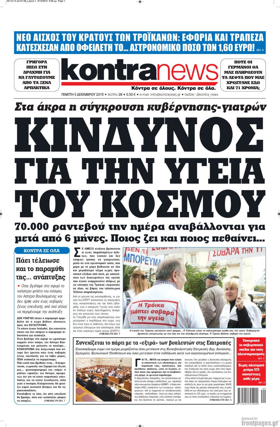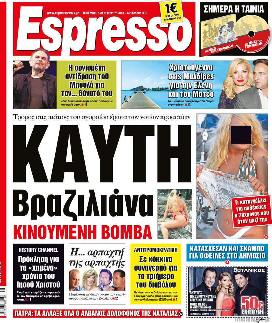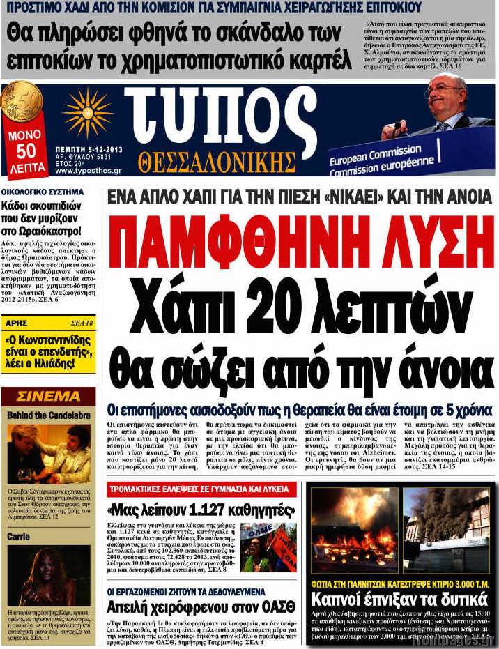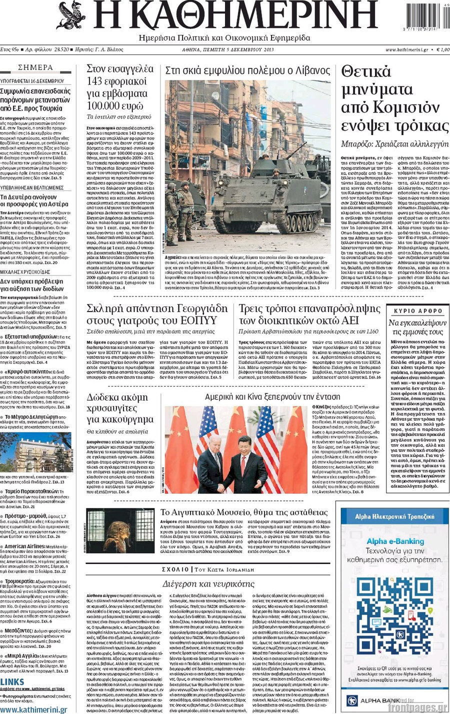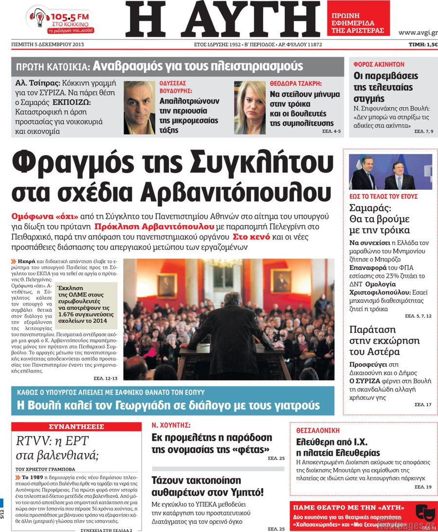 Οι πολιτικές εφημερίδες Enikos Newsroom 08:08, Πέμπτη 05 Δεκεμβρίου 2013 Media Οι πολιτικές εφημερίδες Διαβάστε τα πρωτοσέλιδα των πολιτικών εφημερίδων: ΕΦΗΜΕΡΙΔΕΣ ΠΡΩΤΟΣΕΛΙΔΑ Μοιράσου το: σχολίασε κι εσύ (0 σχόλια) Ακολουθήστε το enikos.gr στο Google News και μάθετε πρώτοι όλες τις ειδήσεις Δείτε όλες τις τελευταίες ειδήσεις από την Ελλάδα και τον Κόσμο στο enikos.gr Ειδήσεις Ροή Ειδήσεων 6 ώρες πριν Εκτός ευρωομάδας ΣΥΡΙΖΑ ο Νίκος Παππάς μετά την επίθεση στον δημοσιογράφο Νίκο Γιαννόπουλο – Η μήνυση και οι νέες δηλώσεις 7 ώρες πριν «Αγριεύουν» οι αγρότες: «Δεν συντρέχει λόγος συνάντησης με τον πρωθυπουργό» – Ώρα αποφάσεων στη σύσκεψη της Πέμπτης 7 ώρες πριν Κυψέλη: Χωρίς την οικογένειά της δίπλα της απολογήθηκε η 16χρονη – «Της είχε επιτεθεί κάποιος για να την βιάσει, φοβήθηκε και κυκλοφορούσε με μαχαίρι» 6 ώρες πριν Politico: Το πρόβλημα της Ευρώπης δεν είναι το Βέλγιο αλλά ο Ντόναλντ Τραμπ 8 ώρες πριν Αλεξανδρούπολη: Πολυοργανική ανεπάρκεια λόγω υποσιτισμού η αιτία θανάτου του 3χρονου αγοριού 6 ώρες πριν Μυστήριο με τεράστιες κυκλικές πέτρες 200 κιλών – Ανακαλύφθηκαν τυχαία κατά τη διάρκεια οδικών έργων και κανείς δεν ξέρει από πού προέρχονται 7 ώρες πριν Ύπνος: Ειδικός εξηγεί τον πραγματικό λόγο που ξυπνάτε στις 4 τα ξημερώματα – Ο ρόλος των ορμονών και του κιρκάδιου ρυθμού 8 ώρες πριν Αριθμολογία: Οι άνθρωποι που έχουν γεννηθεί αυτές τις 4 ημερομηνίες, είναι τρυφεροί και αγαπούν ανιδιοτελώς 20 ώρες πριν 20 χρόνια τα Χριστούγεννα ξεκινούν στα Public με μεγάλη ποικιλία σε δώρα! 7 λεπτά πριν Το Ποντίκι σήμερα Πέμπτη 18/12/2025 12 λεπτά πριν Εφημερεύοντα φαρμακεία σε Αθήνα και Θεσσαλονίκη (18/12) 14 λεπτά πριν Αλεξάνδρα Ούστα: «Αυτό που με τρέλανε στον σύζυγό μου ήταν η ορθολογική του σκέψη» 22 λεπτά πριν Μιχάλης Αεράκης: «Της είπα “θέλω να κάνουμε σπιτικό, αλλά υπάρχουν τρεις προϋποθέσεις…”» 29 λεπτά πριν Αυστραλία: Κυβερνητική δέσμευση για αυστηρότερα μέτρα κατά της υποκίνησης μίσους ENIKOS NETWORK Αϋπνία: Το κόλπο που θα σας βοηθήσει να κοιμηθείτε απόψε – Είναι απλό και έχει αποτέλεσμα 2,6 εκατομμύρια πολίτες έχουν ήδη εμβολιαστεί κατά της γρίπης ΕΛΣΤΑΤ: Τι δείχνουν τα νέα στοιχεία για τις ηλεκτρονικές παραγγελίες των επιχειρήσεων ΚΕΠΕ: Οι 3 διακριτές συμβολές των ΜμΕ και της μεταποίησης στην ελληνική οικονομία Χαρτογραφώντας το «σημείο χωρίς επιστροφή»: Για πρώτη φορά αποκαλύπτεται με λεπτομέρεια το ακανθώδες όριο της ατμόσφαιρας τ... Η Google καταργεί τη λειτουργία «dark web report» – Πώς θα μπορούν οι χρήστες να διαγράφουν τα δεδομένα τους περισσότερα 05:22 , Πέμπτη 18 Δεκεμβρίου 2025 Το Ποντίκι σήμερα Πέμπτη 18/12/2025 Διαβάστε το πρωτοσέλιδο της εφημερίδας «Το Ποντίκι» σήμερα 18/12/2025. 02:30 , Πέμπτη 18 Δεκεμβρίου 2025 Αλ Τσαντίρι Νιουζ: Η κόρη της Πάολα στο κοινό – Η ατάκα Λαζόπουλου που την έκανε να «κοκκινήσει» Γιορτινή διάθεση και ευχάριστες στιγμές γέμισε η αποψινή, τελευταία για το 2025, εκπομπή του «... 22:24 , Τετάρτη 17 Δεκεμβρίου 2025 Το Σπίτι Δίπλα Στο Ποτάμι: Σε κίνδυνο η υγεία του Απόστολου – Τι θα δούμε απόψε “Το Σπίτι Δίπλα στο Ποτάμι” ξετυλίγει το νήμα της ζωής των πέντε αδελφών με καταισ... 21:14 , Τετάρτη 17 Δεκεμβρίου 2025 Παιχνίδια Εκδίκησης: Θα καταφέρει ο Χρήστος να κλονίσει την εμπιστοσύνη της Μάγιας απέναντι στον Άγη; Τα «Παιχνίδια Εκδίκησης» έρχονται απόψε στις 22:30, στον Αντ1, με το τελευταίο επεισόδιο της χ... ΤΕΛΕΥΤΑΙΕΣ ΕΙΔΗΣΕΙΣ 7 λεπτά πριν Το Ποντίκι σήμερα Πέμπτη 18/12/2025 12 λεπτά πριν Εφημερεύοντα 
