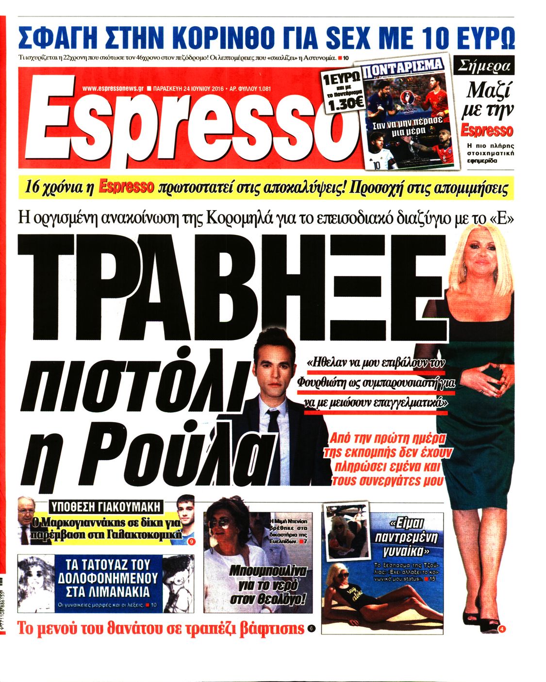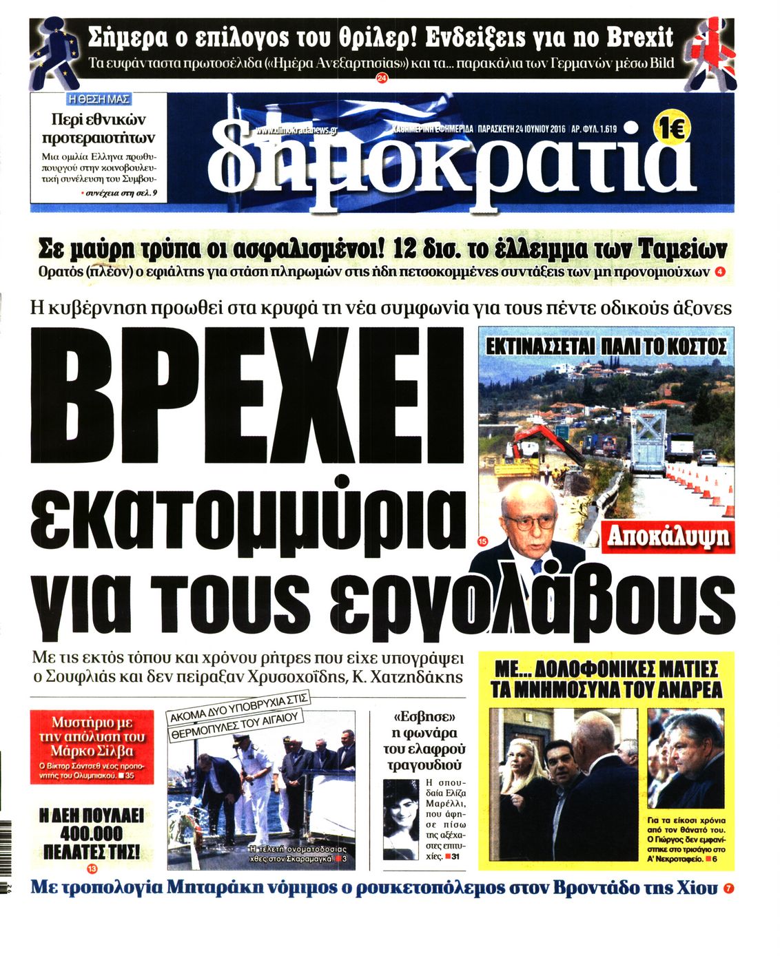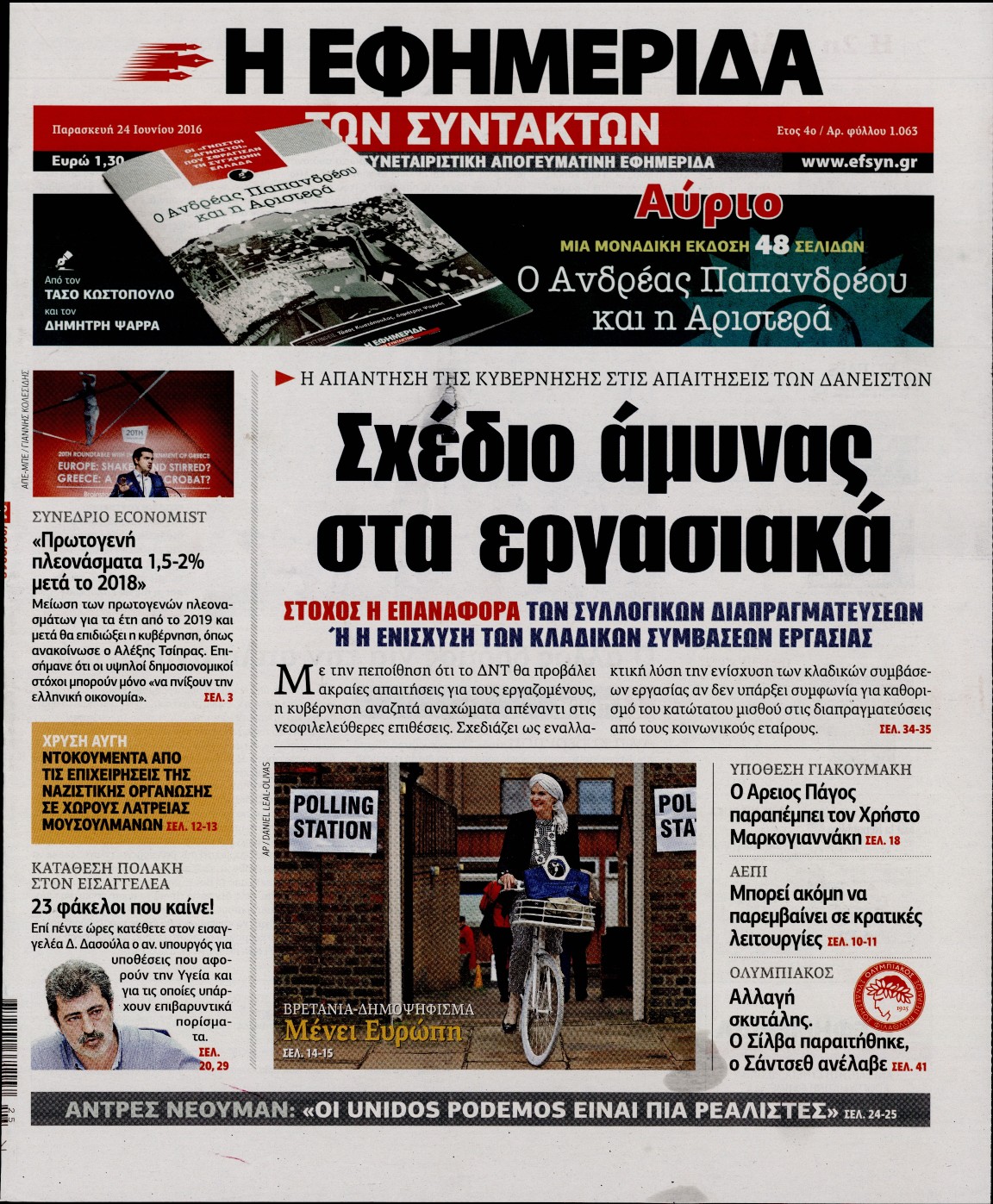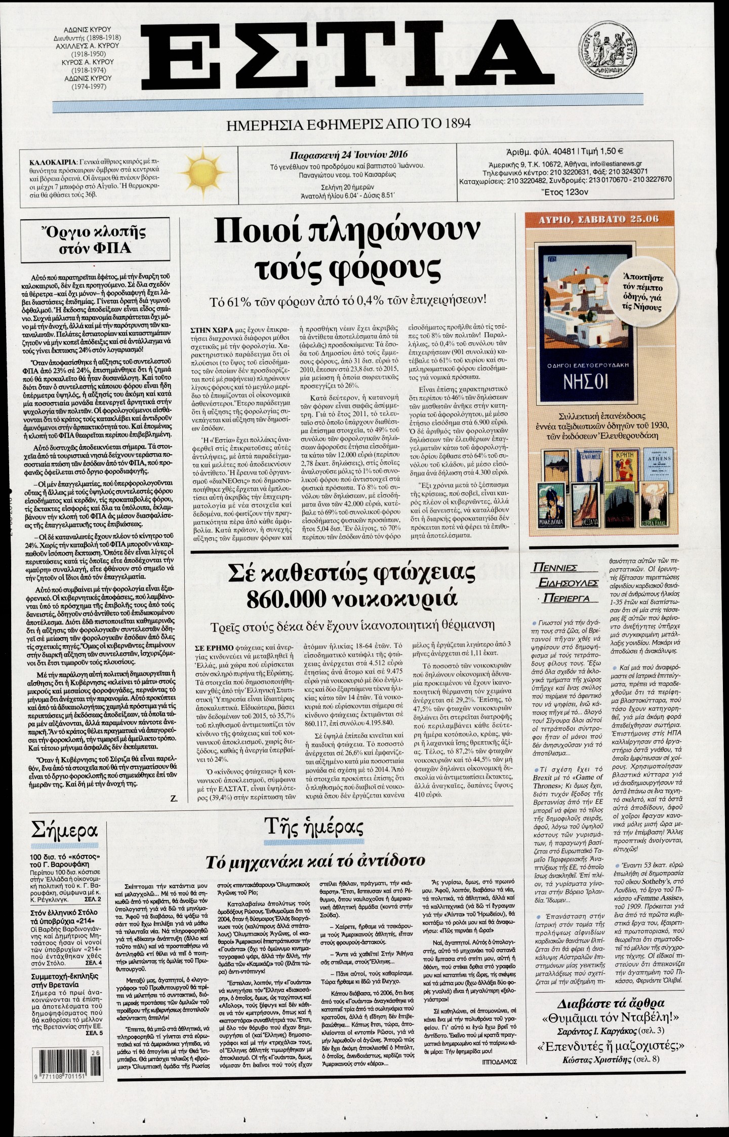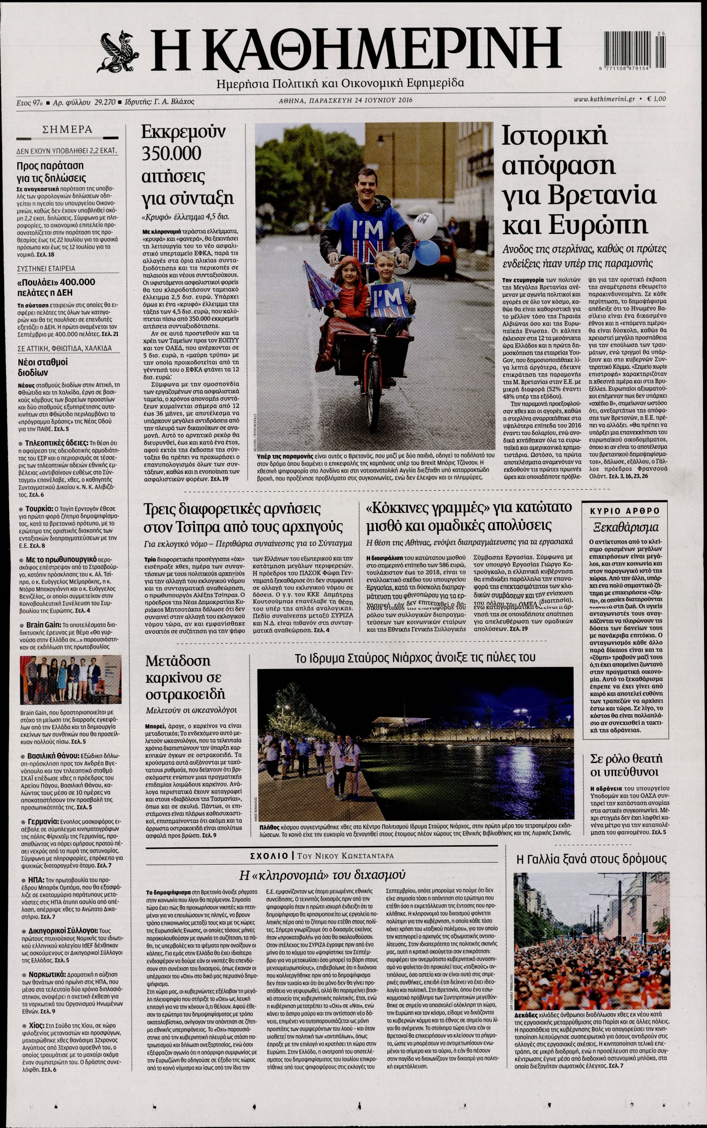 Οι πολιτικές εφημερίδες 24/6/2016 Enikos Newsroom 05:55, Παρασκευή 24 Ιουνίου 2016 Media Διαβάστε τα σημερινά πρωτοσέλιδα των πολιτικών εφημερίδων: ΠΟΛΙΤΙΚΕΣ ΕΦΗΜΕΡΙΔΕΣ ΠΡΩΤΟΣΕΛΙΔΑ Μοιράσου το: σχολίασε κι εσύ (0 σχόλια) Ακολουθήστε το enikos.gr στο Google News και μάθετε πρώτοι όλες τις ειδήσεις Δείτε όλες τις τελευταίες ειδήσεις από την Ελλάδα και τον Κόσμο στο enikos.gr Ειδήσεις Ροή Ειδήσεων 4 ώρες πριν Χριστούγεννα στα μπλόκα: Επιμένουν στις κινητοποιήσεις τους οι αγρότες – Ανοίγουν τα διόδια το Σαββατοκύριακο 4 ώρες πριν Ουκρανία: Η άνευ προηγουμένου επίθεση σε ρωσικό τάνκερ στη Μεσόγειο και το μήνυμα προς στον Πούτιν – Το «μακρύ χέρι» του Κιέβου 4 ώρες πριν Πούτιν: Τα μηνύματα σε Ευρώπη και ΝΑΤΟ από το μαραθώνιο «σόου» του – Η απαίτηση για «σεβασμό» και η ειρήνη «με τους όρους» της Μόσχας 4 ώρες πριν Τραμπ: Δεν αποκλείει την πιθανότητα ενός πολέμου στη Βενεζουέλα – «Ο Μαδούρο ξέρει καλύτερα από τον καθένα τι ακριβώς θέλω» 5 ώρες πριν Συνεχίζει να προκαλεί ο Μίτσκοσκι: «Για μένα το όνομα Μακεδονία είναι ιερό» 4 ώρες πριν Ανακαλύφθηκαν αρχαία χρυσά νομίσματα 2.200 ετών που απεικονίζουν τον θεό Απόλλωνα – Η άγνωστη σύνδεση με τον Φίλιππο Β΄ της Μακεδονίας 5 ώρες πριν Ύπνος: Μια κρυφή κατάσταση του εγκεφάλου πριν από τον ύπνο μπορεί να είναι το “κλειδί” για υψηλή ευφυΐα και δημιουργικότητα 6 ώρες πριν Αριθμολογία: Οι άνθρωποι που έχουν γεννηθεί αυτές τις 4 ημερομηνίες, συχνά παρεξηγούνται – «Η καλοσύνη τους κρύβει τεράστια δύναμη» 7 ώρες πριν Ξεχάστε το καθάρισμα το Σαββατοκύριακο: Ο «κανόνας των 20 λεπτών» που θα σας λύσει τα χέρια 6 λεπτά πριν Ντόναλντ Τραμπ: «Πολύ βαριά αντίποινα» στη Συρία – «Πλήττουμε πολύ δυνατά οχυρά του Ισλαμικού Κράτους» 20 λεπτά πριν Εξάρχεια: Ένταση με μολότοφ, χημικά και κρότου λάμψης 36 λεπτά πριν ΗΠΑ: Τραγωδία στην Αλαμπάμα – Σκότωσε την δημοσιογράφο σύζυγό του και αυτοκτόνησε μπροστά στον 3χρονο γιο τους 50 λεπτά πριν Πρόταση γάμου στο ΣΕΦ κατά την διάρκεια του αγώνα Ολυμπιακός-Βιλερμπάν – Δείτε βίντεο 1 ώρα πριν Euroleague: Επέστρεψε στις νίκες ο Ολυμπιακός, πήρε την ματσάρα της χρονιάς η Μπάρτσα – Τα αποτελέσματα και η βαθμολογία ENIKOS NETWORK Το ΕΚΑΒ τιμήθηκε από την Ακαδημία Αθηνών για τα 40 χρόνια προσφοράς του Έχετε πραγματικά μεγάλη καρδιά; 10 χαρακτηριστικά όσων έχουν καλοσύνη Αναστολή μέτρων αναγκαστικής εκτέλεσης για κτηνοτρόφους που πλήττονται από την ευλογιά των αιγοπροβάτων Πλήρης επάρκεια προϊόντων στις λαϊκές της Αττικής, παρά τις αγροτικές κινητοποιήσεις – Τι απαντούν οι πωλητές Χαρτογραφώντας το «σημείο χωρίς επιστροφή»: Για πρώτη φορά αποκαλύπτεται με λεπτομέρεια το ακανθώδες όριο της ατμόσφαιρας τ... Η Google καταργεί τη λειτουργία «dark web report» – Πώς θα μπορούν οι χρήστες να διαγράφουν τα δεδομένα τους περισσότερα 22:42 , Παρασκευή 19 Δεκεμβρίου 2025 Γιώργος Γιαννόπουλος για “Το σόι σου”: “Είναι ευτυχία και ευλογία αυτή η σειρά” «Είναι ευτυχία και ευλογία η συγκυρία αυτής της σειράς», θα πει ο Γιώργος Γιαννόπουλος -ο αγαπ... 20:37 , Παρασκευή 19 Δεκεμβρίου 2025 Don’t Forget The Lyrics: Η Έλλη Κοκκίνου υποδέχεται 4 παίκτες που θα κάνουν τα πάντα για να μη χάσουν ούτε… μισή λέξη από τους στίχους Το «Don’t Forget The Lyrics» επιστρέφει απόψε, Παρασκευή 19 Δεκεμβρίου, στις 21:00 με νέο επει... 19:31 , Παρασκευή 19 Δεκεμβρίου 2025 GNTM: Απόψε ο μεγάλος τελικός για τους 4 φιναλίστ Έπειτα από μήνες γεμάτους μόδα, δημιουργία και έντονες αναμετρήσεις, το GNTM 2025 κορυφώνεται,... 18:11 , Παρασ