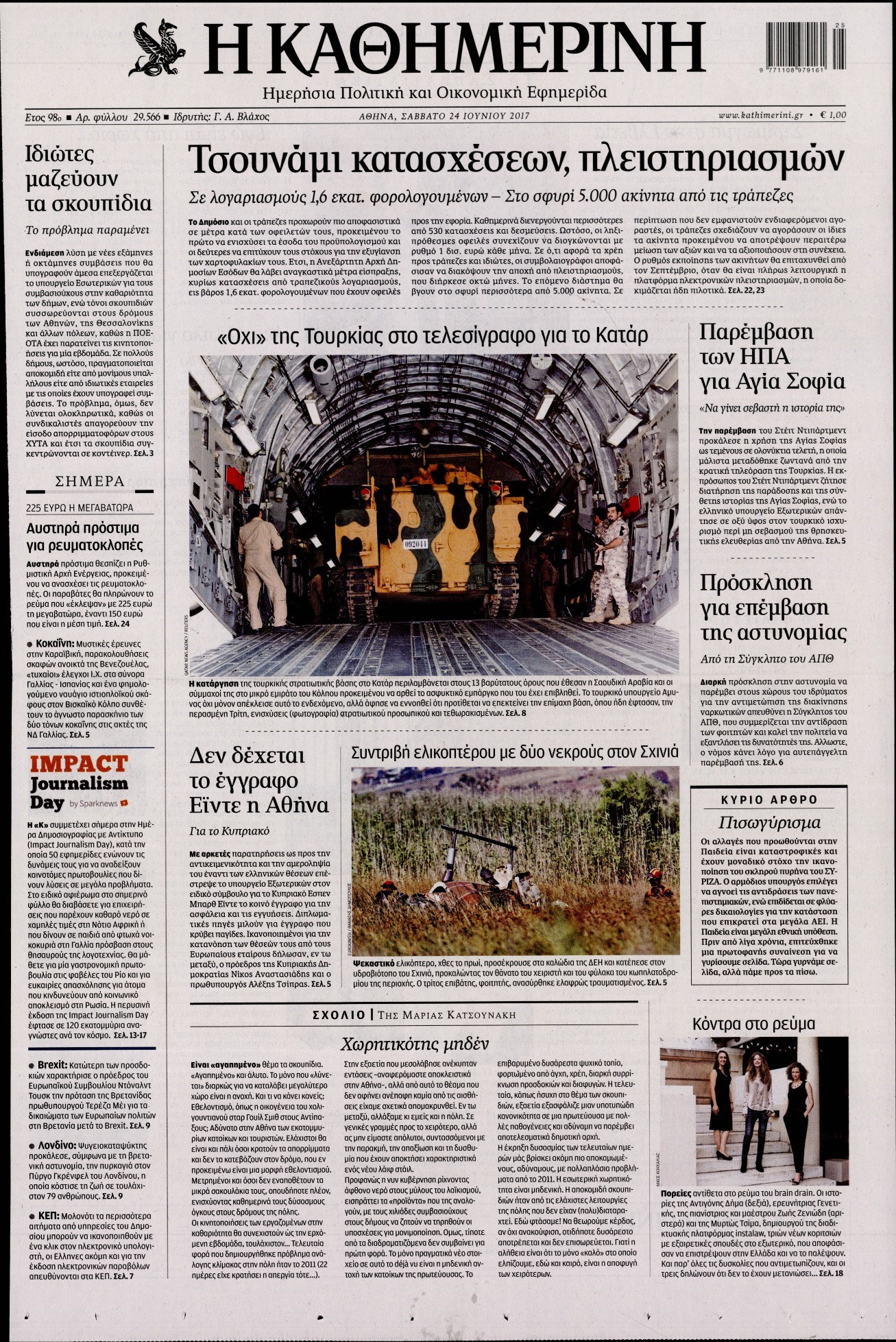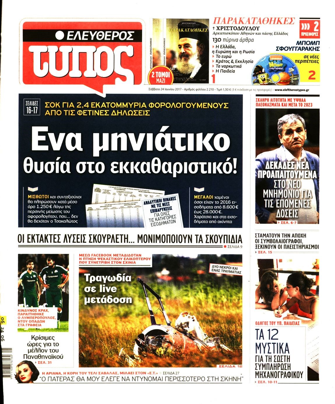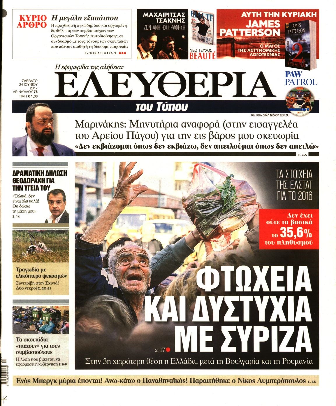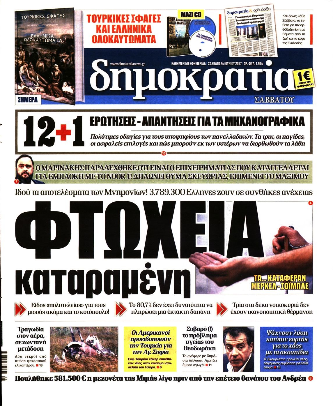 Οι πολιτικές εφημερίδες 24/6/2017 Enikos Newsroom 00:00, Δευτέρα 01 Ιανουαρίου 0001 Media Διαβάστε τα σημερινά πρωτοσέλιδα των πολιτικών εφημερίδων: ΠΟΛΙΤΙΚΕΣ ΕΦΗΜΕΡΙΔΕΣ ΠΡΩΤΟΣΕΛΙΔΑ Μοιράσου το: σχολίασε κι εσύ (0 σχόλια) Ακολουθήστε το enikos.gr στο Google News και μάθετε πρώτοι όλες τις ειδήσεις Δείτε όλες τις τελευταίες ειδήσεις από την Ελλάδα και τον Κόσμο στο enikos.gr Ειδήσεις Ροή Ειδήσεων 4 ώρες πριν Αγρότες: Την Τρίτη η απόφαση για διάλογο ή κλιμάκωση των κινητοποιήσεών τους – Πώς χαρακτηρίζουν τις ανακοινώσεις Τσιάρα και οι επόμενες κινήσεις 4 ώρες πριν Τραμπ για Ουκρανία: «Είμαστε πιο κοντά σε συμφωνία από ποτέ» – «Πολυεθνική δύναμη» προτείνουν οι Ευρωπαίοι 4 ώρες πριν Κυψέλη: Η 16χρονη που μαχαίρωσε την 14χρονη είχε συλληφθεί 3 φορές στο παρελθόν – Έβριζε καθηγητές, έβαζε φωτιές σε κάδους και εκβίαζε συμμαθητές της 4 ώρες πριν Χαλκιδική: Πώς δρούσαν οι αστυνομικοί που συνελήφθησαν για κλήσεις που δεν έκοβαν – Η «ετήσια συνδρομή» για τα μπλόκα της Τροχαίας και οι «δωρεές» 4 ώρες πριν Τρομοκρατική επίθεση στο Σίδνεϊ: Θλίψη για τα 15 θύματα – Οργή στην εβραϊκή κοινότητα που προειδοποιούσε επί δύο χρόνια 5 ώρες πριν Ύπνος: Η αρχαία μορφή άσκησης που αποδεικνύεται αποτελεσματική στην αντιμετώπιση της αϋπνίας, σύμφωνα με μελέτη 6 ώρες πριν Αριθμολογία: Ο τυχερός σας αριθμός, ανάλογα με τον μήνα γέννησής σας 7 ώρες πριν Πώς να μην μαραίνονται γρήγορα τα κομμένα λουλούδια: Το λάθος στην τοποθέτηση του βάζου που πρέπει να αποφεύγετε 4 ώρες πριν Επιστήμονες ίσως έλυσαν το μυστήριο γύρω από τα Χόμπιτ – Νέα έρευνα αποκαλύπτει πώς εξαφανίστηκαν 9 λεπτά πριν Έντι Γαβριηλίδης: «Πούλησα ακριβά σε δημοπρασία το φουστάνι που φόρεσε η Lady Gaga γιατί ξέμεινα από χρήματα» 26 λεπτά πριν Ροντ Στιούαρτ: Εκνευρίστηκε με θεατή στην συναυλία του στην Αθήνα – «Φύγε από την μέση, χαλάς το σόου» 39 λεπτά πριν Μεξικό: Συντριβή μικρού αεροσκάφους – Τουλάχιστον επτά νεκροί 52 λεπτά πριν Serie A: O Γουέσλι Φράνκα επανάφερε τη Ρόμα στις νίκες, 1-0 την Κόμο του Τάσου Δουβίκα 1 ώρα πριν Σεισμός 5,2 Ρίχτερ ανοιχτά της Ζακύνθου ENIKOS NETWORK Πότε το χρόνιο ροχαλητό να αποτελέσει ένδειξη κινδύνου για την καρδιά; Τι λένε οι ειδικοί Μάριος Θεμιστοκλέους: Το ΕΣΥ ενισχύεται, εκσυγχρονίζεται, αλλάζει ΕΒΕΠ για αγροτικές κινητοποιήσεις: Κάθε επιπλέον εβδομάδα προσθέτει περίπου 200 εκατ. ευρώ ζημιά Τι προβλέπει το νομοσχέδιο του υπουργείου Εθνικής Άμυνας – Oι αλλαγές στους μισθούς Σύγχρονος Νοστράδαμος: Προειδοποιεί για «μεγάλο γεγονός» τους επόμενους μήνες που θα συγκλονίσει τη Βρετανία και τον κόσμο Τεστ παρατηρητικότητας: Μπορείτε να βρείτε τις 3 διαφορές στις εικόνες με έναν πιγκουίνο σε 14 δευτερόλεπτα περισσότερα 21:35 , Δευτέρα 15 Δεκεμβρίου 2025 Το Σπίτι Δίπλα Στο Ποτάμι: Η Ιουλία και ο Φωκάς μετακομίζουν στη Ρόδο – Δύο νέοι χαρακτήρες μπαίνουν στη σειρά Δύο νέοι, κομβικοί χαρακτήρες κάνουν την εμφάνισή τους αυτή την εβδομάδα στην αγαπημένη σειρά ... 19:46 , Δευτέρα 15 Δεκεμβρίου 2025 Άγιος έρωτας: Η Χριστίνα λέει την αλήθεια στον Αντρέα Ο Βασίλης δέχεται επίθεση από τους συμμαθητές του, η Αναστασία είναι συντετριμμένη με την απώλ... 18:45 , Δευτέρα 15 Δεκεμβρίου 2025 Συνέδριο «Ελληνικός Τουρισμός 2025, Μια εθνική υπόθεση!» – «Ο Θαλάσσιος Πυλώνας ως Ενιαία Στρατηγική: Συνέργειες σε Λιμάνια, Μαρίνες, Ακτοπλοΐα, Κρουαζιέρα και Yachting» Στο πλαίσιο της τέταρτης και τελευταίας ενότητας του 7ου συνεδρίου «Ελληνικός Τουρισμός 2025, ... 18:13 , Δευτέ