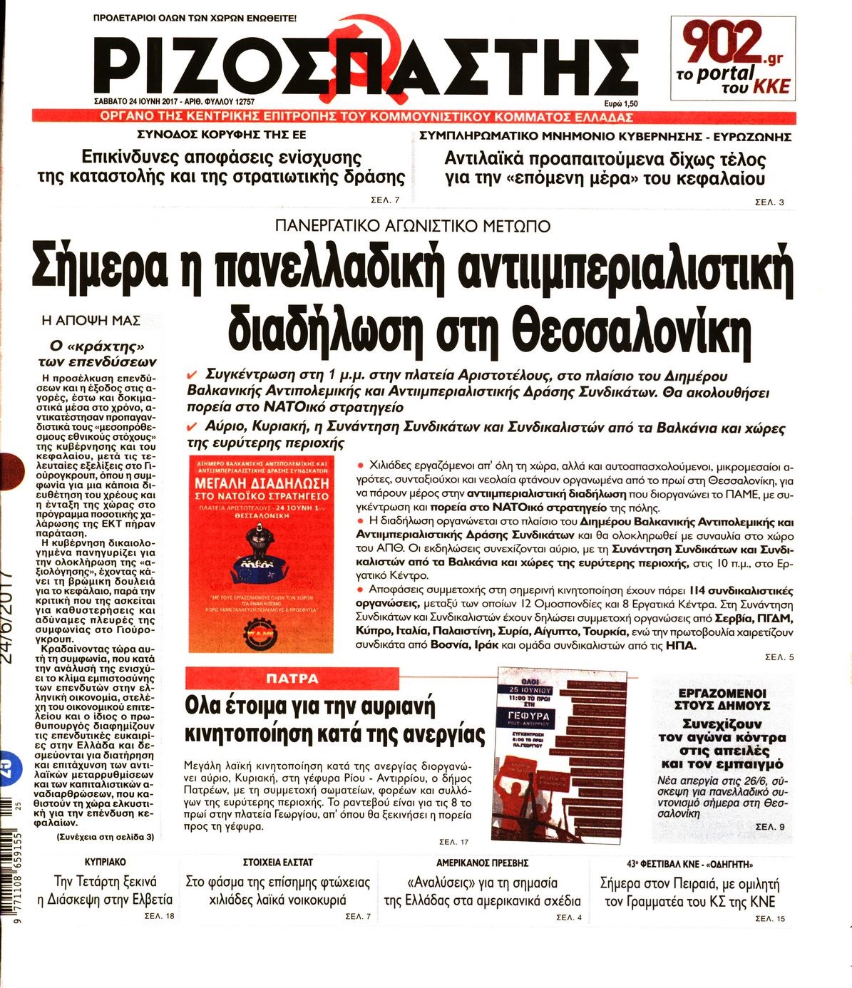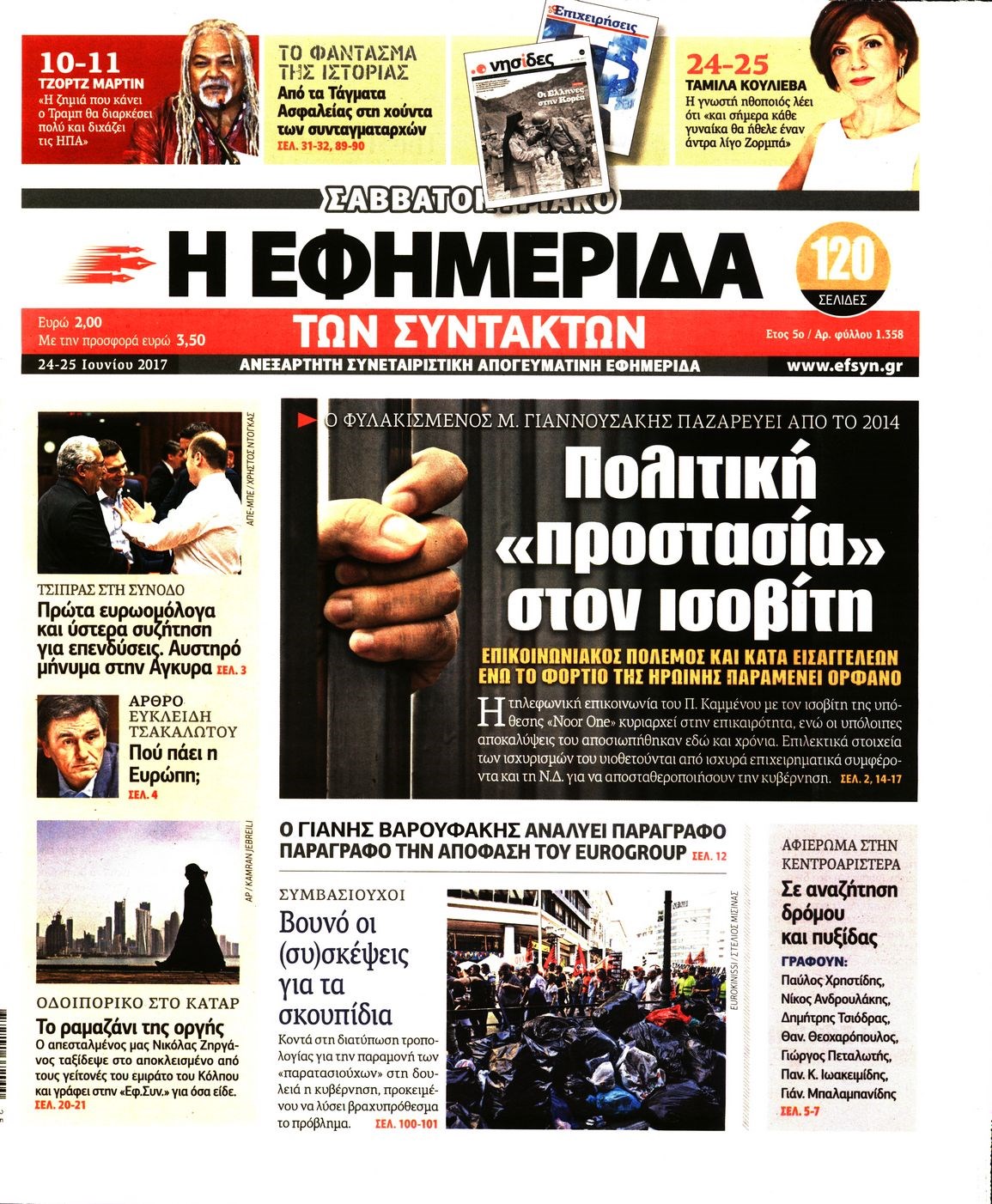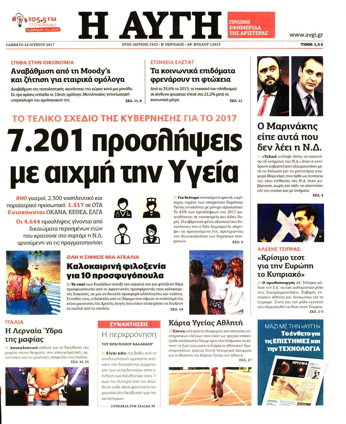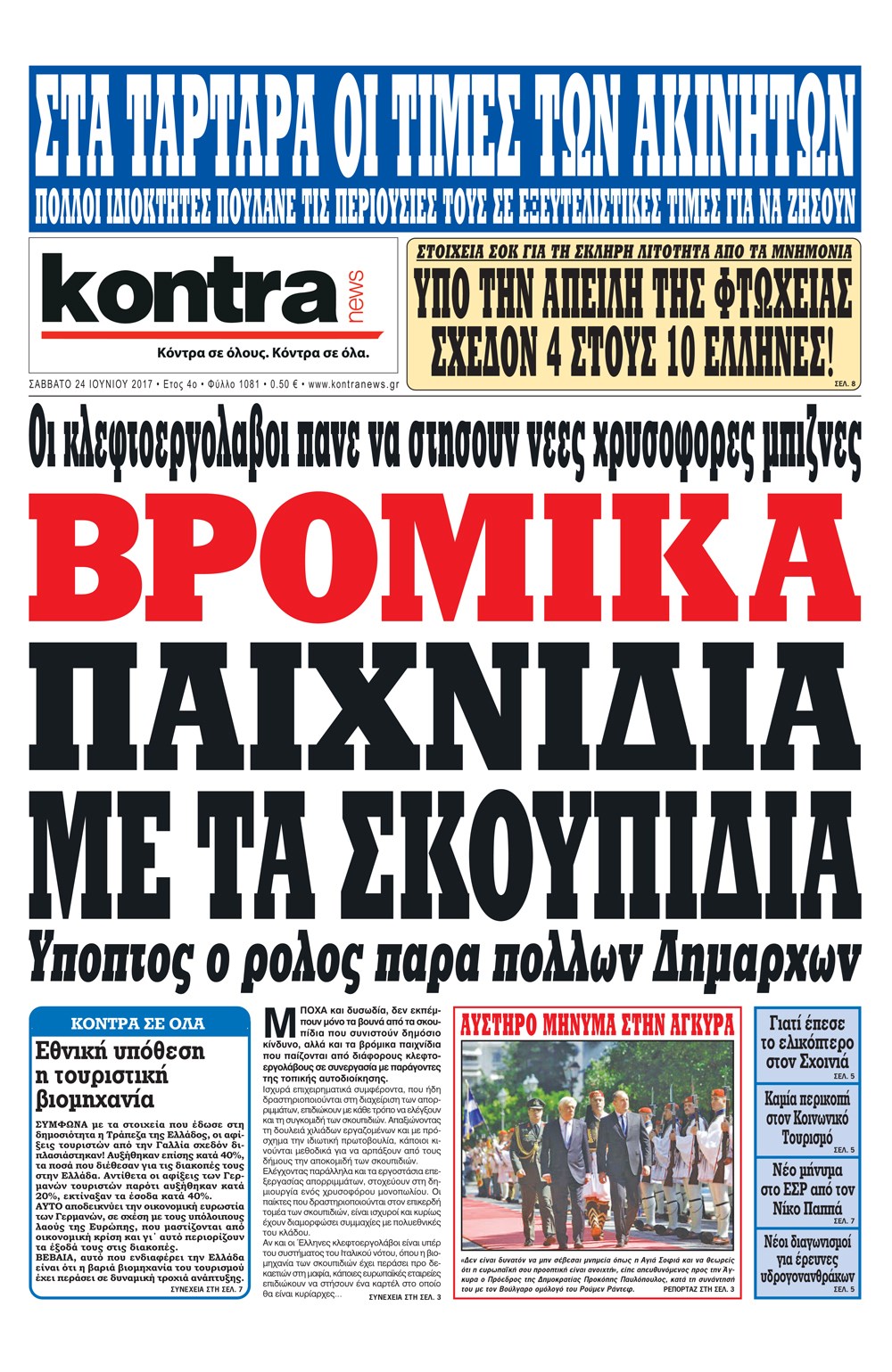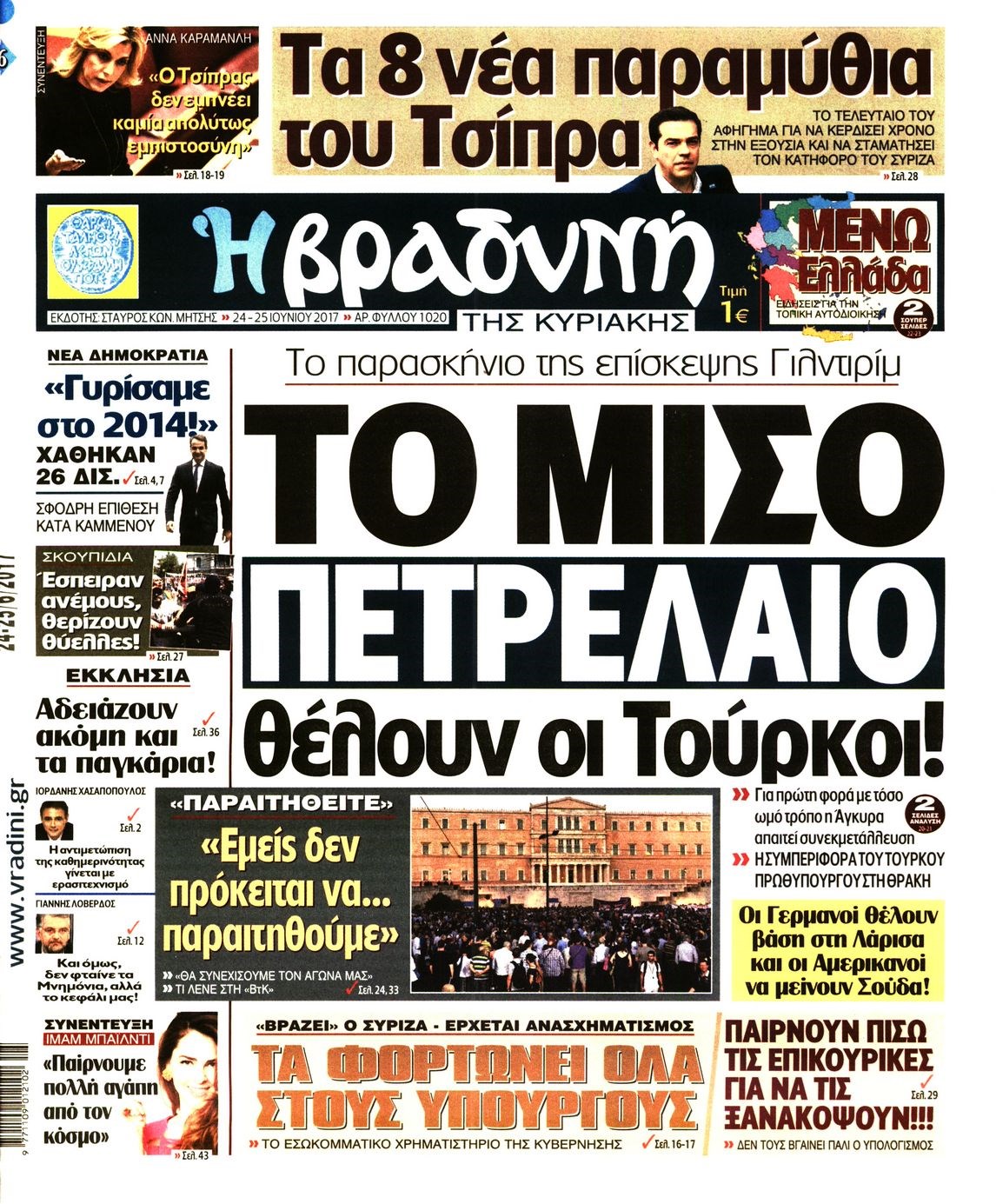 Οι πολιτικές εφημερίδες 24/6/2017 Enikos Newsroom 00:00, Δευτέρα 01 Ιανουαρίου 0001 Media Διαβάστε τα σημερινά πρωτοσέλιδα των πολιτικών εφημερίδων: ΠΟΛΙΤΙΚΕΣ ΕΦΗΜΕΡΙΔΕΣ ΠΡΩΤΟΣΕΛΙΔΑ Μοιράσου το: σχολίασε κι εσύ (0 σχόλια) Ακολουθήστε το enikos.gr στο Google News και μάθετε πρώτοι όλες τις ειδήσεις Δείτε όλες τις τελευταίες ειδήσεις από την Ελλάδα και τον Κόσμο στο enikos.gr Ειδήσεις Ροή Ειδήσεων 4 ώρες πριν Αγρότες: Την Τρίτη η απόφαση για διάλογο ή κλιμάκωση των κινητοποιήσεών τους – Πώς χαρακτηρίζουν τις ανακοινώσεις Τσιάρα και οι επόμενες κινήσεις 4 ώρες πριν Τραμπ για Ουκρανία: «Είμαστε πιο κοντά σε συμφωνία από ποτέ» – «Πολυεθνική δύναμη» προτείνουν οι Ευρωπαίοι 4 ώρες πριν Κυψέλη: Η 16χρονη που μαχαίρωσε την 14χρονη είχε συλληφθεί 3 φορές στο παρελθόν – Έβριζε καθηγητές, έβαζε φωτιές σε κάδους και εκβίαζε συμμαθητές της 4 ώρες πριν Χαλκιδική: Πώς δρούσαν οι αστυνομικοί που συνελήφθησαν για κλήσεις που δεν έκοβαν – Η «ετήσια συνδρομή» για τα μπλόκα της Τροχαίας και οι «δωρεές» 4 ώρες πριν Τρομοκρατική επίθεση στο Σίδνεϊ: Θλίψη για τα 15 θύματα – Οργή στην εβραϊκή κοινότητα που προειδοποιούσε επί δύο χρόνια 5 ώρες πριν Ύπνος: Η αρχαία μορφή άσκησης που αποδεικνύεται αποτελεσματική στην αντιμετώπιση της αϋπνίας, σύμφωνα με μελέτη 6 ώρες πριν Αριθμολογία: Ο τυχερός σας αριθμός, ανάλογα με τον μήνα γέννησής σας 7 ώρες πριν Πώς να μην μαραίνονται γρήγορα τα κομμένα λουλούδια: Το λάθος στην τοποθέτηση του βάζου που πρέπει να αποφεύγετε 4 ώρες πριν Επιστήμονες ίσως έλυσαν το μυστήριο γύρω από τα Χόμπιτ – Νέα έρευνα αποκαλύπτει πώς εξαφανίστηκαν 9 λεπτά πριν Έντι Γαβριηλίδης: «Πούλησα ακριβά σε δημοπρασία το φουστάνι που φόρεσε η Lady Gaga γιατί ξέμεινα από χρήματα» 26 λεπτά πριν Ροντ Στιούαρτ: Εκνευρίστηκε με θεατή στην συναυλία του στην Αθήνα – «Φύγε από την μέση, χαλάς το σόου» 39 λεπτά πριν Μεξικό: Συντριβή μικρού αεροσκάφους – Τουλάχιστον επτά νεκροί 52 λεπτά πριν Serie A: O Γουέσλι Φράνκα επανάφερε τη Ρόμα στις νίκες, 1-0 την Κόμο του Τάσου Δουβίκα 1 ώρα πριν Σεισμός 5,2 Ρίχτερ ανοιχτά της Ζακύνθου ENIKOS NETWORK Πότε το χρόνιο ροχαλητό να αποτελέσει ένδειξη κινδύνου για την καρδιά; Τι λένε οι ειδικοί Μάριος Θεμιστοκλέους: Το ΕΣΥ ενισχύεται, εκσυγχρονίζεται, αλλάζει ΕΒΕΠ για αγροτικές κινητοποιήσεις: Κάθε επιπλέον εβδομάδα προσθέτει περίπου 200 εκατ. ευρώ ζημιά Τι προβλέπει το νομοσχέδιο του υπουργείου Εθνικής Άμυνας – Oι αλλαγές στους μισθούς Σύγχρονος Νοστράδαμος: Προειδοποιεί για «μεγάλο γεγονός» τους επόμενους μήνες που θα συγκλονίσει τη Βρετανία και τον κόσμο Τεστ παρατηρητικότητας: Μπορείτε να βρείτε τις 3 διαφορές στις εικόνες με έναν πιγκουίνο σε 14 δευτερόλεπτα περισσότερα 21:35 , Δευτέρα 15 Δεκεμβρίου 2025 Το Σπίτι Δίπλα Στο Ποτάμι: Η Ιουλία και ο Φωκάς μετακομίζουν στη Ρόδο – Δύο νέοι χαρακτήρες μπαίνουν στη σειρά Δύο νέοι, κομβικοί χαρακτήρες κάνουν την εμφάνισή τους αυτή την εβδομάδα στην αγαπημένη σειρά ... 19:46 , Δευτέρα 15 Δεκεμβρίου 2025 Άγιος έρωτας: Η Χριστίνα λέει την αλήθεια στον Αντρέα Ο Βασίλης δέχεται επίθεση από τους συμμαθητές του, η Αναστασία είναι συντετριμμένη με την απώλ... 18:45 , Δευτέρα 15 Δεκεμβρίου 2025 Συνέδριο «Ελληνικός Τουρισμός 2025, Μια εθνική υπόθεση!» – «Ο Θαλάσσιος Πυλώνας ως Ενιαία Στρατηγική: Συνέργειες σε Λιμάνια, Μαρίνες, Ακτοπλοΐα, Κρουαζιέρα και Yachting» Στο πλαίσιο της τέταρτης και τελευταίας ενότητας του 7ου συνεδρίου «Ελληνικός Τουρισμός 2025, ... 18:13 , Δευτέ