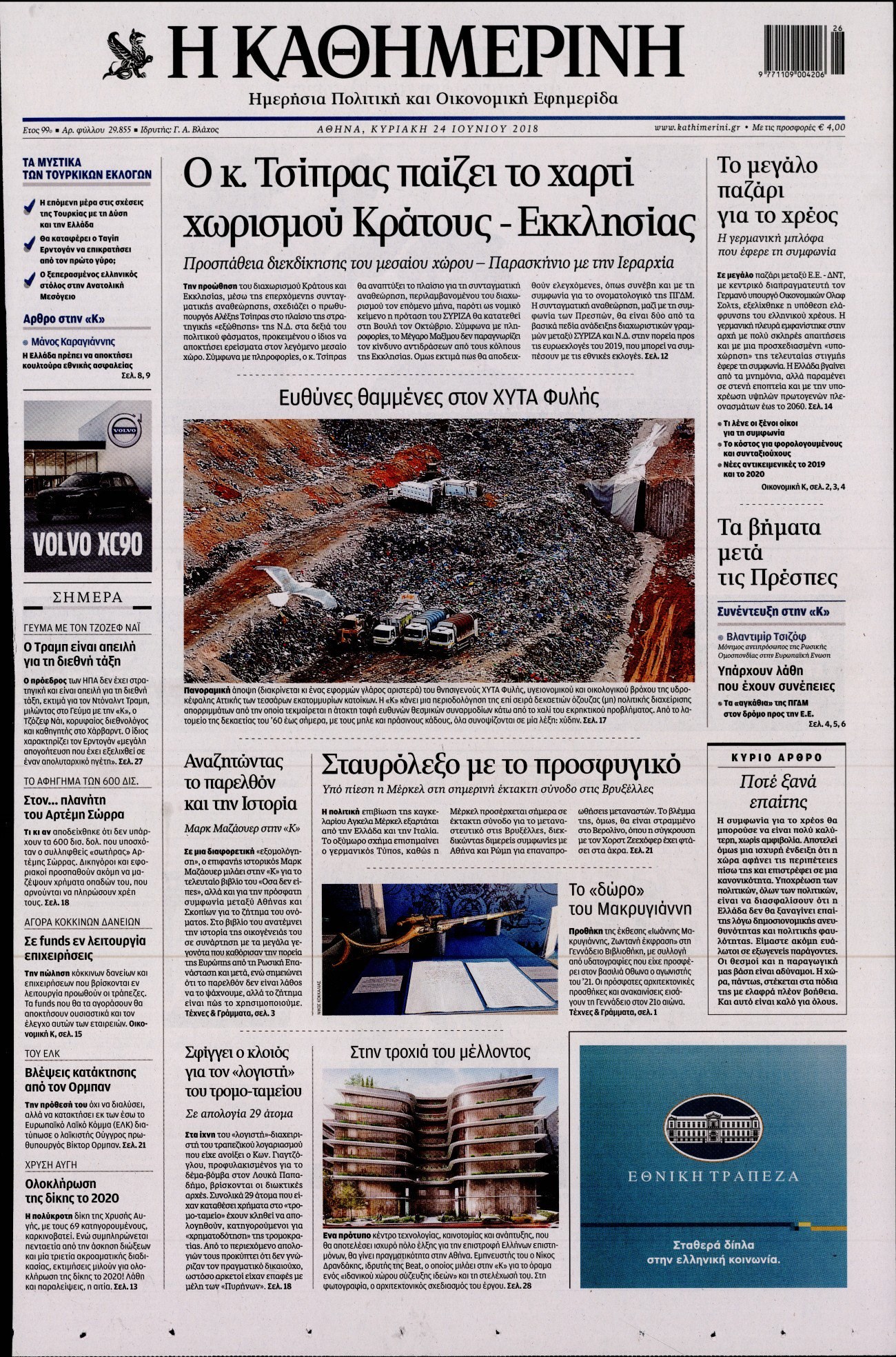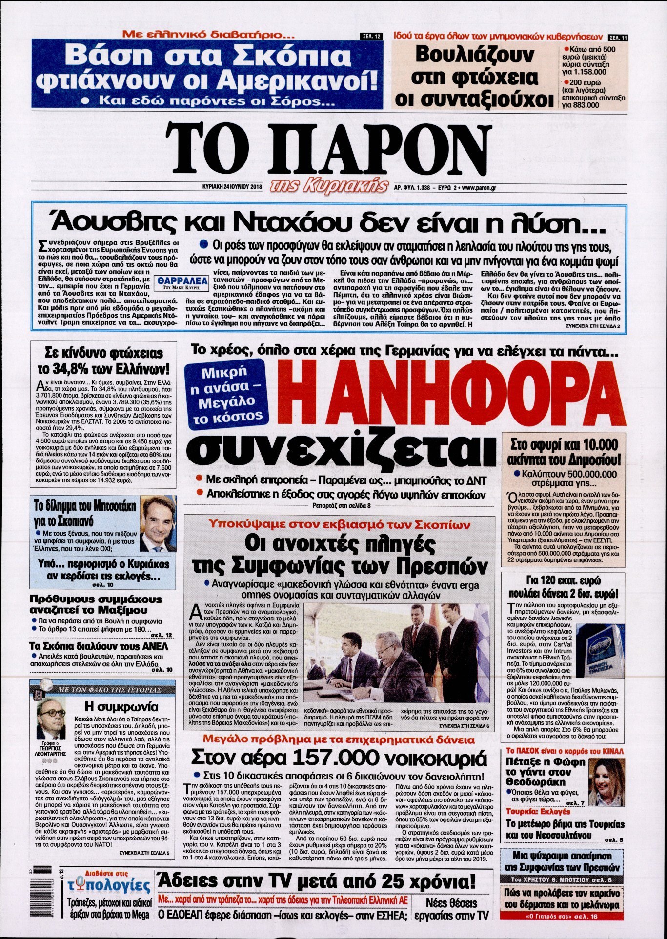 Οι πολιτικές εφημερίδες 24/6/2018 Enikos Newsroom 06:33, Κυριακή 24 Ιουνίου 2018 Media Διαβάστε τα σημερινά πρωτοσέλιδα των πολιτικών εφημερίδων. ΠΟΛΙΤΙΚΕΣ ΕΦΗΜΕΡΙΔΕΣ ΠΡΩΤΟΣΕΛΙΔΟ Μοιράσου το: σχολίασε κι εσύ (0 σχόλια) Ακολουθήστε το enikos.gr στο Google News και μάθετε πρώτοι όλες τις ειδήσεις Δείτε όλες τις τελευταίες ειδήσεις από την Ελλάδα και τον Κόσμο στο enikos.gr Ειδήσεις Ροή Ειδήσεων 35 λεπτά πριν Πέθανε η Ελένη Γλύκατζη-Αρβελέρ 3 ώρες πριν Υπουργείο Πολιτισμού: Στο Βέλγιο τις επόμενες ημέρες εμπειρογνώμονες για τις φωτογραφίες των 200 εκτελεσθέντων της Καισαριανής 5 ώρες πριν «Ήρθαν ολοζώντανα στο μυαλό μου, όσα γνώριζα για τον ηρωικό θάνατο του θείου μου»: Στο enikos.gr ο ανιψιός του Σπήλιου Αμπελογιάννη που εκτελέστηκε στην Καισαριανή 48 λεπτά πριν Φυλακές Δομοκού: Πώς έγινε η δολοφονία του Έλληνα ισοβίτη – Η έρευνα του «ελληνικού FBI», το «τυφλό» σημείο και τα ερωτήματα 1 ώρα πριν Πρώην πρίγκιπας Άντριου: Δείπνο με μοντέλο στην Κίνα και νέα emails με τον Επστάιν φέρνουν πιέσεις για έρευνα 4 ώρες πριν Τα 4 ζώδια που θα έχουν την απόλυτη τύχη για το υπόλοιπο του Φεβρουαρίου – «Θα είναι σαν να βρίσκεστε στην κορυφή του κόσμου» 9 ώρες πριν «Έχασα 15 κιλά σε δύο μήνες λόγω προβλήματος υγείας» – Γυναίκα μιλάει για την απώλεια βάρους έπειτα από την γέννηση της κόρης της 5 ώρες πριν Ξεκίνησε η ζωή ως «γλίτσα»; Επιστήμονες προτείνουν μια νέα θεωρία που ανατρέπει την «αρχέγονη σούπα» 1 ώρα πριν Πώς να εξαφανίσετε τη μυρωδιά του κρεμμυδιού από τα χέρια σας, χωρίς να χρησιμοποιήσετε γάντια 4 λεπτά πριν Θα εκραγεί το υπερηφαίστειο του Yellowstone; – Τα παράξενα πράγματα που συμβαίνουν στο Εθνικό Πάρκο 7 λεπτά πριν Θύμα διαδικτυακής απάτης ο Νίκος Χατζηνικολάου – Προφίλ στο «X» παρίστανε ότι ήταν ο ίδιος 8 λεπτά πριν Θλιβερό τέλος στις έρευνες για τον εντοπισμό του 55χρονου αγνοούμενου – Εντοπίστηκε νεκρός σε πολυκατοικία στη Θεσσαλονίκη 15 λεπτά πριν «Ηλεκτρολόγοι» εξαπατούσαν πολίτες στην Αττική – Εξιχνιάστηκαν 14 περιπτώσεις 21 λεπτά πριν Χατζηδάκης: Ορισμένοι έχουν ξεπεράσει κάθε όριο ENIKOS NETWORK Αϋπνία: Το κόλπο με τη βραστή μπανάνα που θα σας βοηθήσει να κοιμηθείτε μέσα σε 30 λεπτά ΙΣΑ: Επιστολή στον υπουργό Άμυνας για αναβολή στράτευσης νέων γιατρών λόγω ειδικότητας ΑΑΔΕ: Εργασίες για την εκκαθάριση ΕΝΦΙΑ 2026 – Ποιες λειτουργίες δεν θα είναι διαθέσιμες την Πέμπτη e-ΕΦΚΑ: Πότε θα καταβληθούν οι συντάξεις Μαρτίου 2026 Ευπάθεια στο moltbook ai αποκαλύπτει email, tokens σύνδεσης και api keys Αυτός είναι ο ρόλος της μικρής τρύπας στους νυχοκόπτες – «Είμαι ο μόνος που δεν το ήξερε;»» περισσότερα 19:57 , Δευτέρα 16 Φεβρουαρίου 2026 Θύμα διαδικτυακής απάτης ο Νίκος Χατζηνικολάου – Προφίλ στο «X» παρίστανε ότι ήταν ο ίδιος Θύμα διαδικτυακής απάτης δήλωσε ότι έπεσε ο δημοσιογράφος Νίκος Χατζηνικολάου, ο οποίος ενημέρ... 19:33 , Δευτέρα 16 Φεβρουαρίου 2026 Να μ’ αγαπάς: Η Άννα και η Φωτεινή βρίσκονται εγκλωβισμένες στο χείλος του γκρεμού, σήμερα στις 20:00 στον Alpha Η Ζωή είναι απογοητευμένη από τη συμπεριφορά του Άγγελου στο νέο επεισόδιο της σειράς “Ν... 17:45 , Δευτέρα 16 Φεβρουαρίου 2026 Bullying, body-shaming και τοξικά «makeovers»: Το σκοτεινό παρασκήνιο του America’s Next Top Model στο νέο ντοκιμαντέρ του Netflix Το America’s Next Top Model αποτέλεσε τηλεοπτικό φαινόμενο από το 2003 έως το 2018, όμως πίσω ... 13:30 , Δευτέρα 16 Φεβρουαρίου 2026 «Λευκό χαρτί» η prime time: Σε οριστικό φινάλε οδηγούνται σχεδόν όλες οι σειρές της τρέχουσας σεζόν Oλική ανανέωση έρχεται στην prime time την πρ