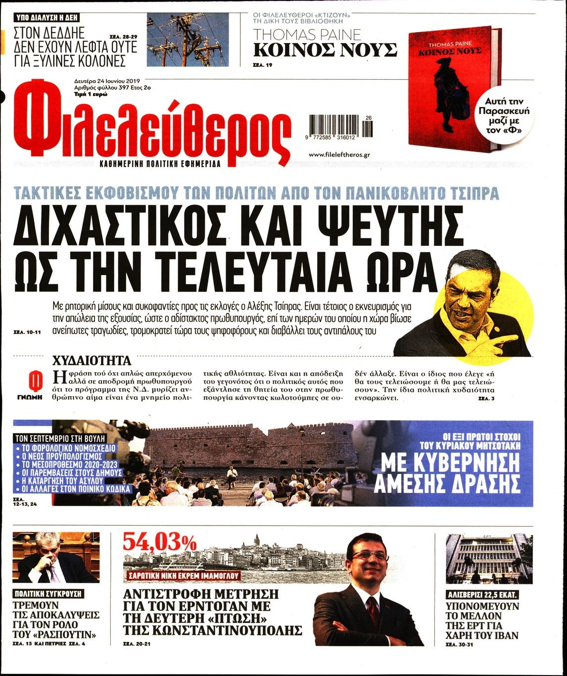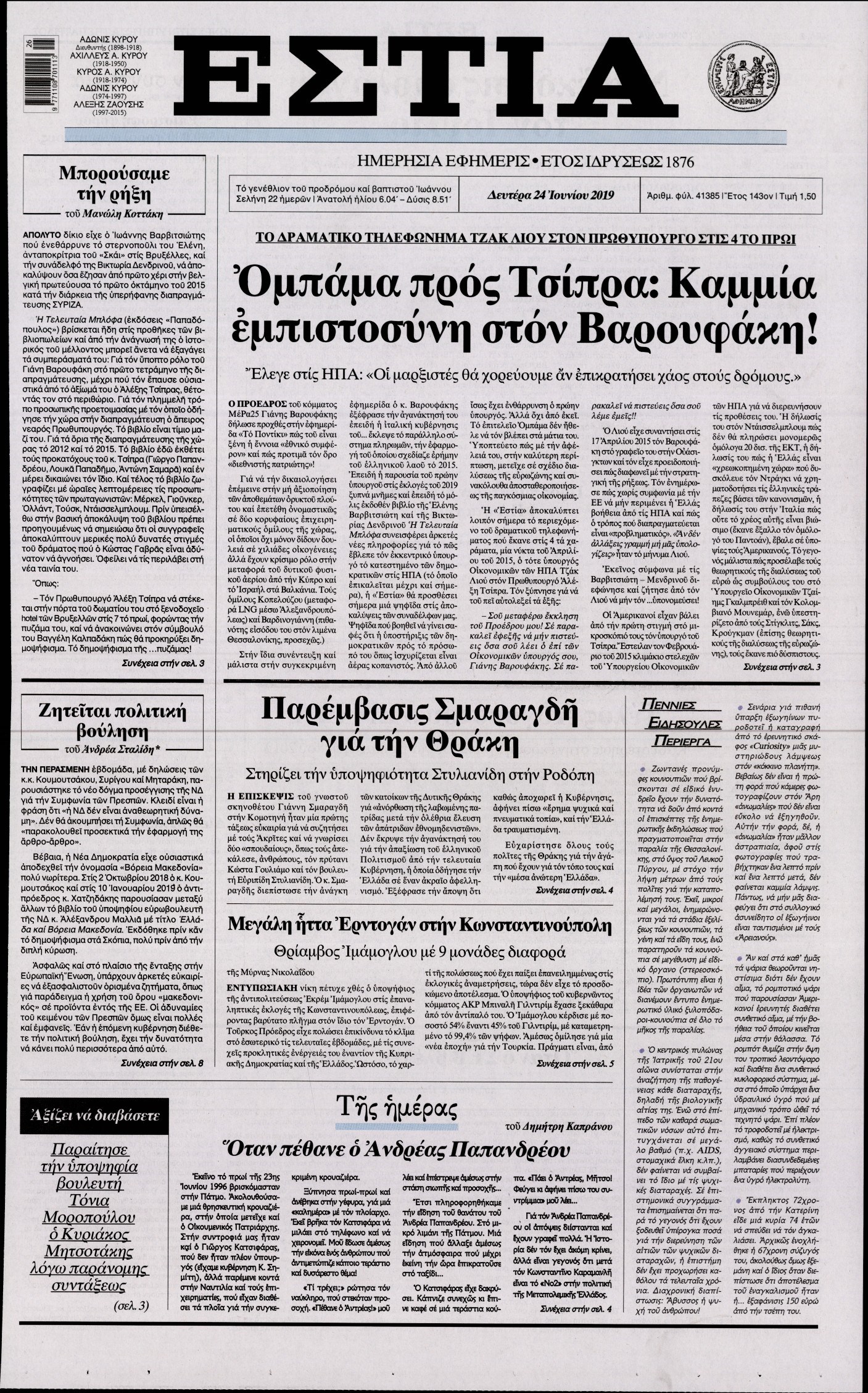 Οι πολιτικές εφημερίδες 24/6/2019 Enikos Newsroom 06:46, Δευτέρα 24 Ιουνίου 2019 Media Διαβάστε τα πρωτοσέλιδα των πολιτικών εφημερίδων: ΠΟΛΙΤΙΚΕΣ ΕΦΗΜΕΡΙΔΕΣ ΠΡΩΤΟΣΕΛΙΔΑ Μοιράσου το: σχολίασε κι εσύ (0 σχόλια) Ακολουθήστε το enikos.gr στο Google News και μάθετε πρώτοι όλες τις ειδήσεις Δείτε όλες τις τελευταίες ειδήσεις από την Ελλάδα και τον Κόσμο στο enikos.gr Ειδήσεις Ροή Ειδήσεων 2 ώρες πριν Χριστούγεννα στα μπλόκα: Επιμένουν στις κινητοποιήσεις τους οι αγρότες – Ανοίγουν τα διόδια το Σαββατοκύριακο 2 ώρες πριν Ουκρανία: Η άνευ προηγουμένου επίθεση σε ρωσικό τάνκερ στη Μεσόγειο και το μήνυμα προς στον Πούτιν – Το «μακρύ χέρι» του Κιέβου 1 ώρα πριν Πούτιν: Τα μηνύματα σε Ευρώπη και ΝΑΤΟ από το μαραθώνιο «σόου» του – Η απαίτηση για «σεβασμό» και η ειρήνη «με τους όρους» της Μόσχας 2 ώρες πριν Τραμπ: Δεν αποκλείει την πιθανότητα ενός πολέμου στη Βενεζουέλα – «Ο Μαδούρο ξέρει καλύτερα από τον καθένα τι ακριβώς θέλω» 3 ώρες πριν Συνεχίζει να προκαλεί ο Μίτσκοσκι: «Για μένα το όνομα Μακεδονία είναι ιερό» 1 ώρα πριν Ανακαλύφθηκαν αρχαία χρυσά νομίσματα 2.200 ετών που απεικονίζουν τον θεό Απόλλωνα – Η άγνωστη σύνδεση με τον Φίλιππο Β΄ της Μακεδονίας 2 ώρες πριν Ύπνος: Μια κρυφή κατάσταση του εγκεφάλου πριν από τον ύπνο μπορεί να είναι το “κλειδί” για υψηλή ευφυΐα και δημιουργικότητα 3 ώρες πριν Αριθμολογία: Οι άνθρωποι που έχουν γεννηθεί αυτές τις 4 ημερομηνίες, συχνά παρεξηγούνται – «Η καλοσύνη τους κρύβει τεράστια δύναμη» 4 ώρες πριν Ξεχάστε το καθάρισμα το Σαββατοκύριακο: Ο «κανόνας των 20 λεπτών» που θα σας λύσει τα χέρια 6 δευτερόλεπτα πριν Βασίλης Σπανούλης: Δεν εμφανίστηκε ούτε ένας δημοσιογράφος στην συνέντευξη Τύπου – «Καλησπέρα στον… κανέναν», δείτε βίντεο 11 λεπτά πριν Πόλεμος στην Ουκρανία: Εφτά νεκροί από ρωσική πυραυλική επίθεση στο λιμάνι της Οδησσού 15 λεπτά πριν ΗΠΑ: Η κυβέρνηση του Ντόναλντ Τραμπ άρχισε να δημοσιοποιεί τα αρχεία Έπσταϊν 26 λεπτά πριν Σάμος: Άνοιξε το μπλόκο των αγροτών στον κόμβο Κοκκαρίου – Σε νέα συνεδρίαση θα καθορίσουν την στάση τους 35 λεπτά πριν Άνω Λιόσια: Πυροβολισμοί σε επιχείρηση με χαλιά – Εντοπίστηκαν 10 κάλυκες ENIKOS NETWORK Το ΕΚΑΒ τιμήθηκε από την Ακαδημία Αθηνών για τα 40 χρόνια προσφοράς του Έχετε πραγματικά μεγάλη καρδιά; 10 χαρακτηριστικά όσων έχουν καλοσύνη Αναστολή μέτρων αναγκαστικής εκτέλεσης για κτηνοτρόφους που πλήττονται από την ευλογιά των αιγοπροβάτων Πλήρης επάρκεια προϊόντων στις λαϊκές της Αττικής, παρά τις αγροτικές κινητοποιήσεις – Τι απαντούν οι πωλητές Χαρτογραφώντας το «σημείο χωρίς επιστροφή»: Για πρώτη φορά αποκαλύπτεται με λεπτομέρεια το ακανθώδες όριο της ατμόσφαιρας τ... Η Google καταργεί τη λειτουργία «dark web report» – Πώς θα μπορούν οι χρήστες να διαγράφουν τα δεδομένα τους περισσότερα 22:42 , Παρασκευή 19 Δεκεμβρίου 2025 Γιώργος Γιαννόπουλος για “Το σόι σου”: “Είναι ευτυχία και ευλογία αυτή η σειρά” «Είναι ευτυχία και ευλογία η συγκυρία αυτής της σειράς», θα πει ο Γιώργος Γιαννόπουλος -ο αγαπ... 20:37 , Παρασκευή 19 Δεκεμβρίου 2025 Don’t Forget The Lyrics: Η Έλλη Κοκκίνου υποδέχεται 4 παίκτες που θα κάνουν τα πάντα για να μη χάσουν ούτε… μισή λέξη από τους στίχους Το «Don’t Forget The Lyrics» επιστρέφει απόψε, Παρασκευή 19 Δεκεμβρίου, στις 21:00 με νέο επει... 19:31 , Παρασκευή 19 Δεκεμβρίου 2025 GNTM: Απόψε ο μεγάλος τελικός για τους 4 φιναλίστ Έπειτα από μήνες γεμάτους μόδα, δημιουργία και έντονες αναμετρήσεις, το GNTM 2025 κορυφώνεται,... 18:11 , Παρασκευή 1