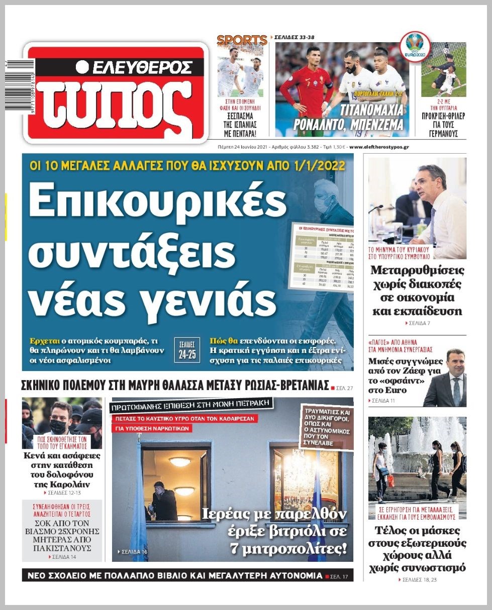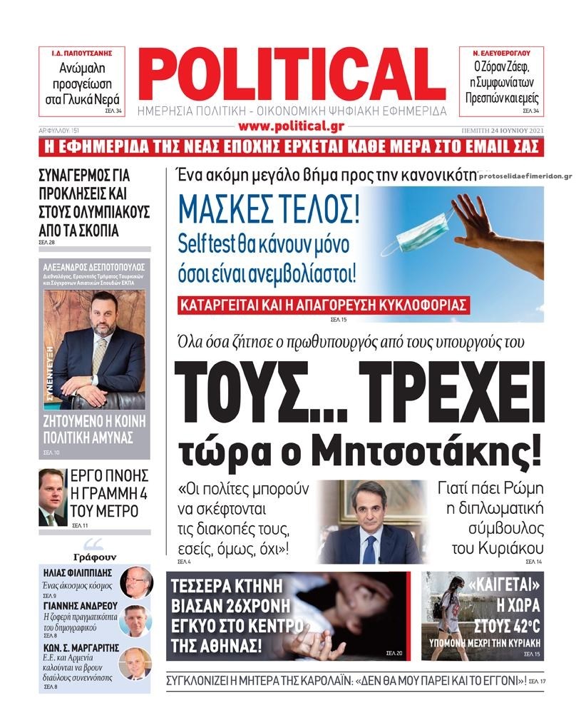 Οι πολιτικές εφημερίδες 24/6/2021 Διονύσης Νίκκας 06:06, Πέμπτη 24 Ιουνίου 2021 Media Διαβάστε τα πρωτοσέλιδα των πολιτικών εφημερίδων… ΕΦΗΜΕΡΙΔΕΣ ΠΡΩΤΟΣΕΛΙΔΑ Μοιράσου το: σχολίασε κι εσύ (0 σχόλια) Ακολουθήστε το enikos.gr στο Google News και μάθετε πρώτοι όλες τις ειδήσεις Δείτε όλες τις τελευταίες ειδήσεις από την Ελλάδα και τον Κόσμο στο enikos.gr Ειδήσεις Ροή Ειδήσεων 7 ώρες πριν Ρετζέπ Ταγίπ Ερντογάν: Δεν έχουμε καμία βλέψη στα εδάφη ή την κυριαρχία κανενός – Δεν θα επιτρέψουμε να παραβιαστούν τα δικαιώματά μας 9 ώρες πριν Χριστούγεννα στα μπλόκα οι αγρότες: Άνοιξαν στα διόδια και μοίρασαν προϊόντα στους πολίτες – Νέα σύσκεψη την Κυριακή στη Νίκαια 9 ώρες πριν Αρχεία Επστάιν: Οι 500 σελίδες που λείπουν, τα αναπάντητα ερωτήματα και οι επώνυμοι – Τι έπεται 9 ώρες πριν Κύκλωμα διακίνησης ναρκωτικών σε σχολεία: Τηλεφωνούσαν στους ανηλίκους την ώρα του μαθήματος – Οι διάλογοι-σοκ, τα «ψευδώνυμα» και τα βασανιστήρια 8 ώρες πριν H ακτοφυλακή των ΗΠΑ κατάσχεσε και δεύτερο τάνκερ στα ανοιχτά της Βενεζουέλας – Δείτε βίντεο 1 ώρα πριν Οπτική ψευδαίσθηση: Μόνο το 2% των ανθρώπων θα βρει την πεταλούδα σε 15 δευτερόλεπτα 2 ώρες πριν Μήλο vs μπανάνα: Ποιο φρούτο έχει περισσότερες φυτικές ίνες, σύμφωνα με διαιτολόγους – Τα οφέλη τους για την υγεία 2 ώρες πριν Τα ζώδια σήμερα, Κυριακή 21 Δεκεμβρίου: Αιγόκεροι, αποφασίζετε για το επόμενο κεφάλαιο της ζωής σας 23 ώρες πριν Enerwave: Το νέο «ρεύμα» στη λιανική ενέργειας που αλλάζει την εμπειρία του καταναλωτή 30 λεπτά πριν Σήμερα με τη Realnews: Ό,τι και αν αγοράσεις, σκανάρεις και κερδίζεις! 8 λεπτά πριν LEGEND: Ο διάδοχος της φρεγάτας Constellation έρχεται από την ακτοφυλακή των ΗΠΑ 15 λεπτά πριν Καιρός: Βροχές και χαμηλές θερμοκρασίες σήμερα – Η πρόγνωση για τα Χριστούγεννα 24 λεπτά πριν Εορτολόγιο: Ποιοι γιορτάζουν σήμερα 21 Δεκεμβρίου 30 λεπτά πριν Σήμερα με τη Realnews: Instyle, μαζί Drive και Realnews Geopolitics ENIKOS NETWORK Το αφροδισιακό φυλλώδες λαχανικό που μπορεί να προστατεύσει τα μάτια και να καταπολεμήσει τον καρκίνο Το απόλυτο κόλπο με το αυτοκόλλητο για να βγει πρώτη η βαλίτσα σας από το αεροπλάνο «Πολεμική» προετοιμασία από την ευρωπαϊκή βιομηχανία ενέργειας – Η Eurelectric ζητεί «ομπρέλα» προστασίας για τις υποδομές Ακύρωση ΑΦΜ για απάτες – Ποιους βάζει στο στόχαστρο η ΑΑΔΕ Χαρτογραφώντας το «σημείο χωρίς επιστροφή»: Για πρώτη φορά αποκαλύπτεται με λεπτομέρεια το ακανθώδες όριο της ατμόσφαιρας τ... Η Google καταργεί τη λειτουργία «dark web report» – Πώς θα μπορούν οι χρήστες να διαγράφουν τα δεδομένα τους περισσότερα 07:00 , Κυριακή 21 Δεκεμβρίου 2025 Σήμερα με τη Realnews: Instyle, μαζί Drive και Realnews Geopolitics Σήμερα με τη Realnews: Instyle, μαζί Drive και Realnews Geopolitics Instyle Η Άννα Ρεζάν, η Ch... 06:55 , Κυριακή 21 Δεκεμβρίου 2025 Η Realnews στο www.pressreader.com Διαβάστε την ψηφιακή έκδοση της εφημερίδας στην οθόνη του κινητού, του tablet και του υπολογισ... 05:46 , Κυριακή 21 Δεκεμβρίου 2025 Οι αθλητικές εφημερίδες 21/12/2025 Διαβάστε τα πρωτοσέλιδα από τις αθλητικές εφημερίδες, σήμερα 21/12/2025. 05:38 , Κυριακή 21 Δεκεμβρίου 2025 Οι πολιτικές εφημερίδες 21/12/2025 Διαβάστε τα πρωτοσέλιδα από τις πολιτικές εφημερίδες, σήμερα 21/12/2025. ΤΕΛΕΥΤΑΙΕΣ ΕΙΔΗΣΕΙΣ 8 λεπτά πριν LEGEND: Ο διάδοχος της φρεγάτας Constellation έρχεται από την... 15 λεπτά πριν Καιρός: Βροχές και χαμηλές θερμοκρασίες σήμερα – Η... 25 λεπτά πριν Εορτολόγιο: Ποιοι γιορτάζουν σήμερα 21 Δεκεμβρίου 30 λεπτά πριν Σήμερα με τη Realnews: Instyle, μαζί Drive και Realnews Geopolitics 35 λεπτά πριν Η Realnews στο www.pressreader.com 43 λεπτά πριν ΔΕΔ