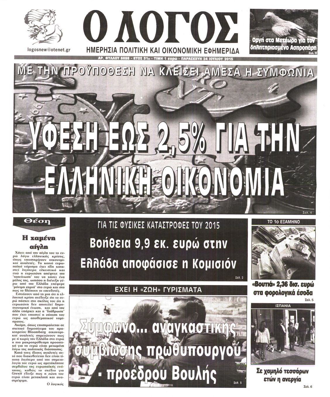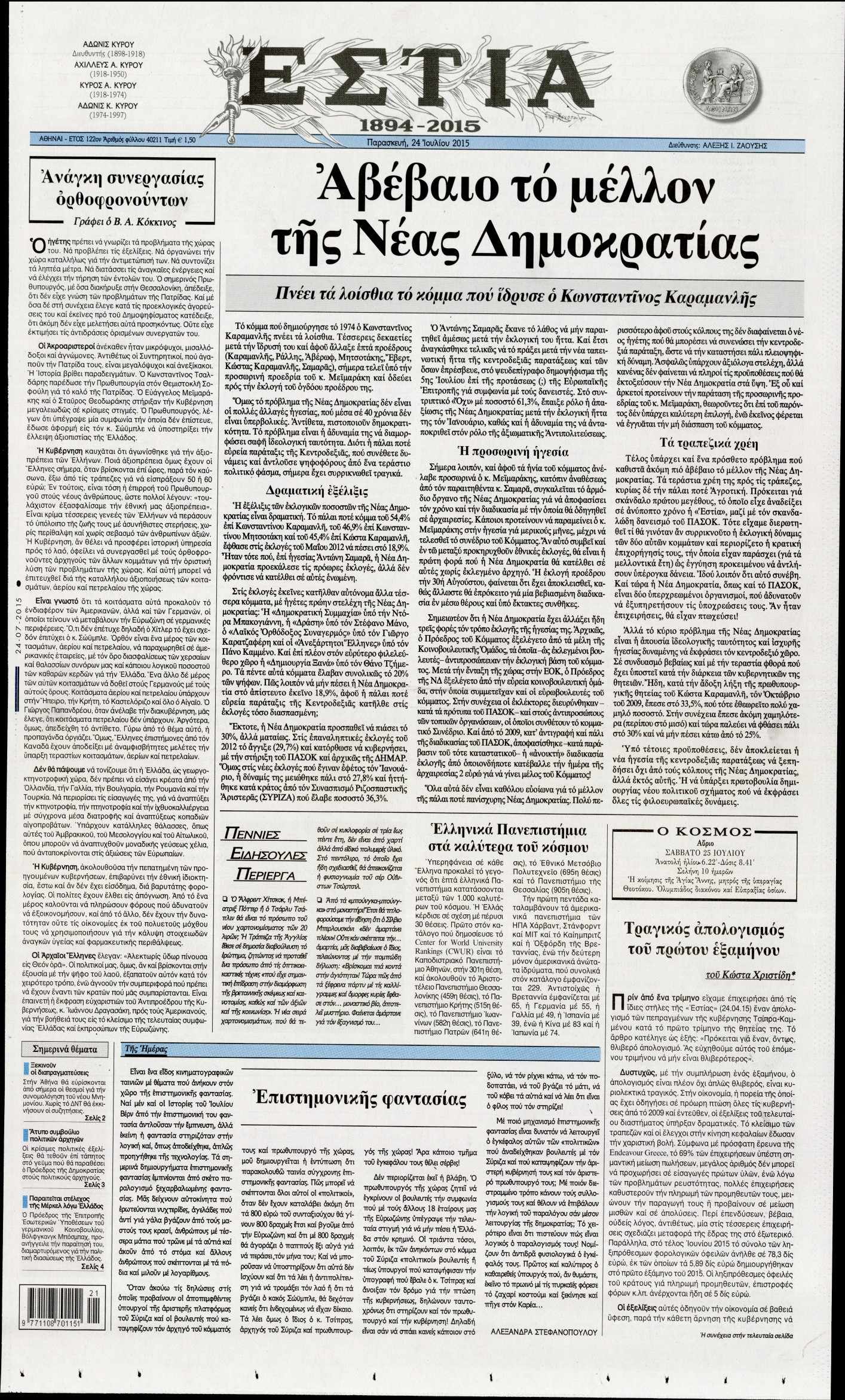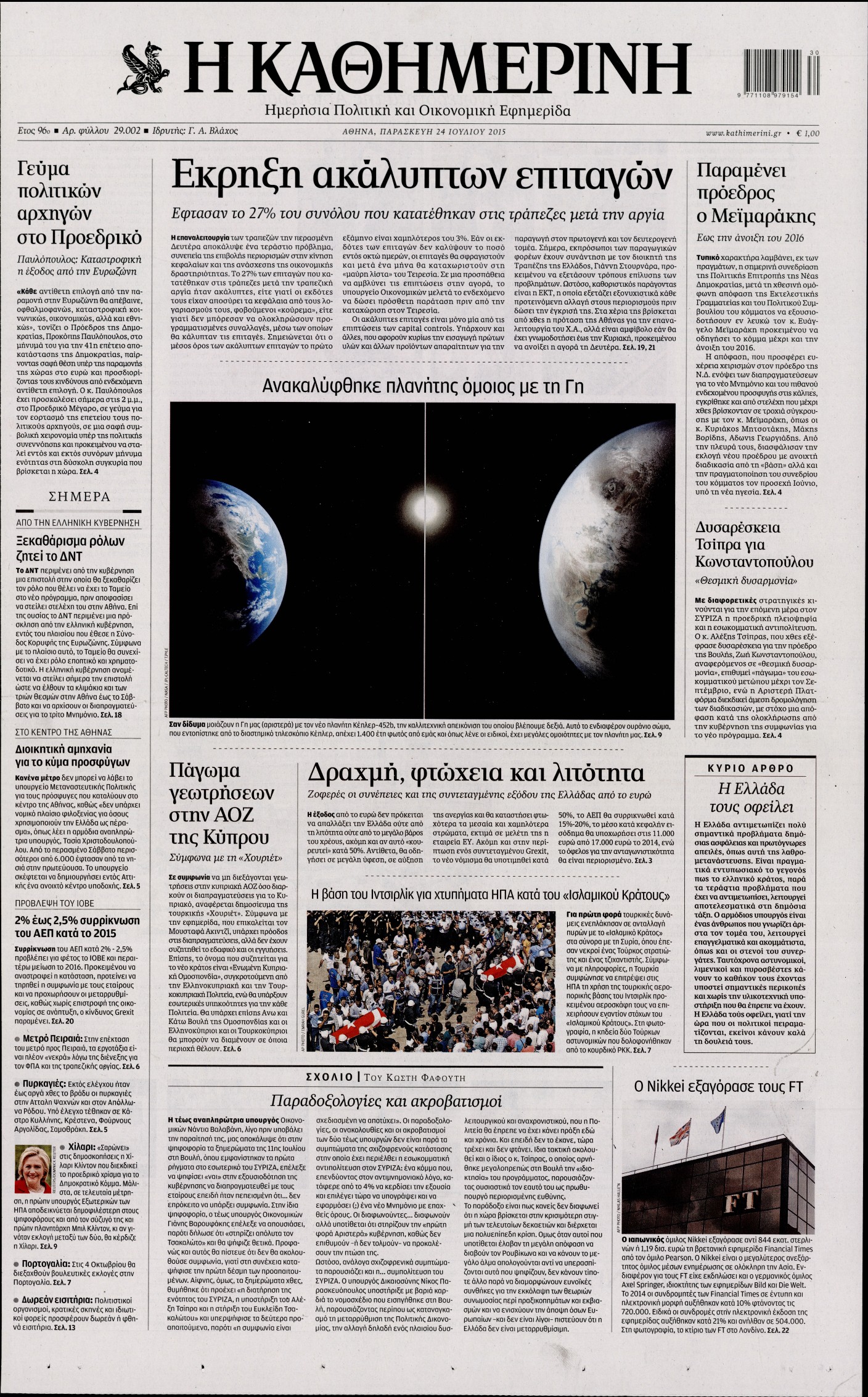 Οι πολιτικές εφημερίδες 24/7/2015 Enikos Newsroom 08:34, Παρασκευή 24 Ιουλίου 2015 Media Διαβάστε τα σημερινά πρωτοσέλιδα των πολιτικών εφημερίδων. ΕΦΗΜΕΡΙΔΕΣ ΠΟΛΙΤΙΚΕΣ ΕΦΗΜΕΡΙΔΕΣ ΠΡΩΤΟΣΕΛΙΔΑ Μοιράσου το: σχολίασε κι εσύ (0 σχόλια) Ακολουθήστε το enikos.gr στο Google News και μάθετε πρώτοι όλες τις ειδήσεις Δείτε όλες τις τελευταίες ειδήσεις από την Ελλάδα και τον Κόσμο στο enikos.gr Ειδήσεις Ροή Ειδήσεων 9 ώρες πριν Χριστούγεννα στα μπλόκα: Επιμένουν στις κινητοποιήσεις τους οι αγρότες – Ανοίγουν τα διόδια το Σαββατοκύριακο 1 ώρα πριν Σαρωτικοί οι έλεγχοι στους δρόμους ενόψει εορτών – Μπλόκα της τροχαίας σε κεντρικές αρτηρίες της Αττικής 8 ώρες πριν Πούτιν: Τα μηνύματα σε Ευρώπη και ΝΑΤΟ από το μαραθώνιο «σόου» του – Η απαίτηση για «σεβασμό» και η ειρήνη «με τους όρους» της Μόσχας 7 ώρες πριν ΗΠΑ: Η κυβέρνηση του Ντόναλντ Τραμπ άρχισε να δημοσιοποιεί τα αρχεία Έπσταϊν 8 ώρες πριν Άνω Λιόσια: Πυροβολισμοί σε επιχείρηση με χαλιά – Εντοπίστηκαν 10 κάλυκες 1 ώρα πριν Αυγά: Πόσα μπορείτε να τρώτε την ημέρα με ασφάλεια για μέγιστη πρόσληψη πρωτεΐνης 2 ώρες πριν Τα ζώδια σήμερα, Σάββατο 20 Δεκεμβρίου: Παρθένοι, το σύμπαν σας δίνει το κλειδί 8 ώρες πριν Ανακαλύφθηκαν αρχαία χρυσά νομίσματα 2.200 ετών που απεικονίζουν τον θεό Απόλλωνα – Η άγνωστη σύνδεση με τον Φίλιππο Β΄ της Μακεδονίας 1 ώρα πριν Οπτική ψευδαίσθηση: Μόνο αν είσαι ο Σέρλοκ Χολμς θα βρεις τον αριθμό «87» σε 7 δευτερόλεπτα 8 λεπτά πριν Οι αθλητικές μεταδόσεις 20/12/2025 17 λεπτά πριν Εορτολόγιο: Ποιοι γιορτάζουν σήμερα 20 Δεκεμβρίου 25 λεπτά πριν Συρία: Μπαράζ αμερικανικών επιδρομών εναντίον του ISIS – «Πλήττουμε δυνατά οχυρά του ΙΚ» λέει ο Ντόναλντ Τραμπ 33 λεπτά πριν Αναβολή συμφωνίας ΕΕ-Mercosur: Ο χρόνος «δεν είναι απεριόριστος» προειδοποιεί η Παραγουάη 48 λεπτά πριν Κίριλ Ντμίτριεφ: Στις ΗΠΑ ο απεσταλμένος της Ρωσίας για συνομιλίες με τους ομολόγους του, Γουίτκοφ και Κούσνερ ENIKOS NETWORK Πρέπει να αποδέχεστε ή να απορρίπτετε όλα τα cookies; Ένας ειδικός εξηγεί Η αγαπημένη λιχουδιά των πόνι που μπορεί να ενισχύσει όραση, εγκέφαλο και ανοσοποιητικό Αναστολή μέτρων αναγκαστικής εκτέλεσης για κτηνοτρόφους που πλήττονται από την ευλογιά των αιγοπροβάτων Πλήρης επάρκεια προϊόντων στις λαϊκές της Αττικής, παρά τις αγροτικές κινητοποιήσεις – Τι απαντούν οι πωλητές Χαρτογραφώντας το «σημείο χωρίς επιστροφή»: Για πρώτη φορά αποκαλύπτεται με λεπτομέρεια το ακανθώδες όριο της ατμόσφαιρας τ... Η Google καταργεί τη λειτουργία «dark web report» – Πώς θα μπορούν οι χρήστες να διαγράφουν τα δεδομένα τους περισσότερα 05:48 , Σάββατο 20 Δεκεμβρίου 2025 Οι οικονομικές εφημερίδες 20/12/2025 Διαβάστε τα πρωτοσέλιδα από τις οικονομικές εφημερίδες, σήμερα 20/12/2025. 05:43 , Σάββατο 20 Δεκεμβρίου 2025 Οι αθλητικές εφημερίδες 20/12/2025 Διαβάστε τα πρωτοσέλιδα από τις αθλητικές εφημερίδες, σήμερα 20/12/2025. 05:38 , Σάββατο 20 Δεκεμβρίου 2025 Οι πολιτικές εφημερίδες 20/12/2025 Διαβάστε τα πρωτοσέλιδα από τις πολιτικές εφημερίδες, σήμερα 20/12/2025. 04:20 , Σάββατο 20 Δεκεμβρίου 2025 Αγγελική Νικολούλη: Τα συλλυπητήρια για την απώλεια της Ειρήνης Μαρινάκη Τα συλληπητήρια στον πρόεδρο του Mega, τον Βαγγέλη Μαρινάκη, για την απώλεια της μητέρας του Ε... ΤΕΛΕΥΤΑΙΕΣ ΕΙΔΗΣΕΙΣ 8 λεπτά πριν Οι αθλητικές μεταδόσεις 20/12/2025 17 λεπτά πριν Εορτολόγιο: Ποιοι γιορτάζουν σήμερα 20 Δεκεμβρίου 25 λεπτά πριν Συρία: Μπαράζ αμερικανικών επιδρομών εναντίον του ISIS... 33 λεπτά πριν Αναβολή συμφωνίας ΕΕ-Mercosur: Ο χρόνος «δεν είναι... 48 λεπτά πριν 