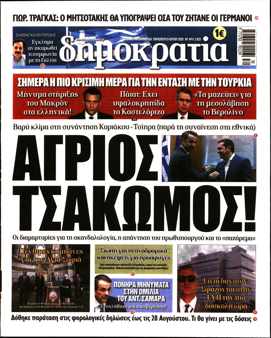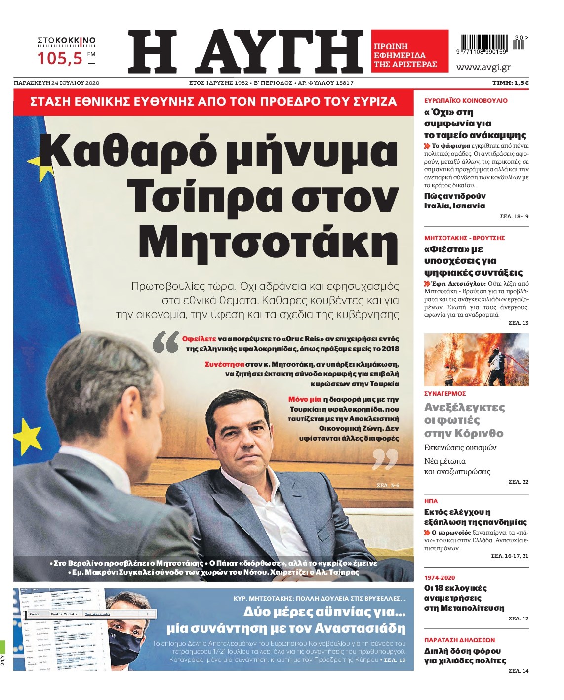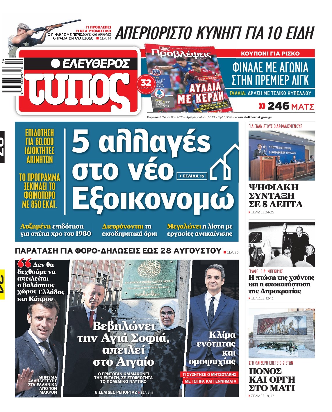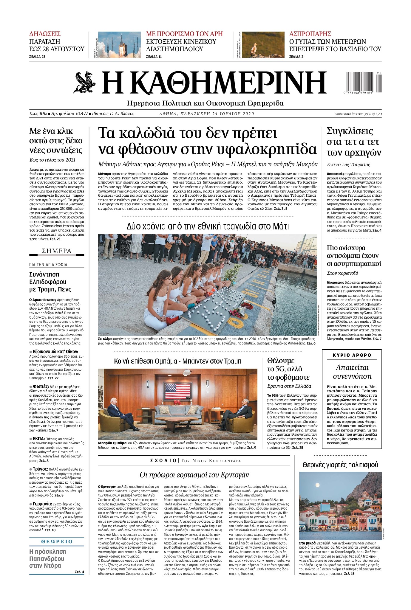 Οι πολιτικές εφημερίδες 24/7/2020 Διονύσης Νίκκας 06:07, Παρασκευή 24 Ιουλίου 2020 Media Διαβάστε τα πρωτοσέλιδα των πολιτικών εφημερίδων… ΠΟΛΙΤΙΚΕΣ ΕΦΗΜΕΡΙΔΕΣ ΠΡΩΤΟΣΕΛΙΔΑ Μοιράσου το: σχολίασε κι εσύ (0 σχόλια) Ακολουθήστε το enikos.gr στο Google News και μάθετε πρώτοι όλες τις ειδήσεις Δείτε όλες τις τελευταίες ειδήσεις από την Ελλάδα και τον Κόσμο στο enikos.gr Ειδήσεις Ροή Ειδήσεων 3 ώρες πριν Υπόθεση Έπσταϊν: Το Υπουργείο Δικαιοσύνης δημοσιοποίησε μια σειρά από εξαιρετικά επεξεργασμένα αρχεία – «Λείπουν τα πιο σημαντικά έγγραφα», λένε οι Δημοκρατικοί 20 λεπτά πριν Γιορτές με μπλόκα για τους αγρότες: Ανοίγουν διόδια και μοιράζουν προϊόντα στους ταξιδιώτες 53 λεπτά πριν Εξαφάνιση 33χρονου γιατρού στην Κρήτη: «Άναψα τα φώτα, τρόμαξε και άρχισε να τρέχει στα χωράφια» – Η τελευταία διαδρομή και η μαρτυρία «κλειδί» 2 ώρες πριν Ο «χάρτης» με τις αυξήσεις και τις φοροελαφρύνσεις του 2026 – Ποιοι και πόσα κερδίζουν 36 λεπτά πριν Τα αρχεία του Έπσταϊν αποκαλύπτουν φωτογραφία του έκπτωτου πρίγκιπα Άντριου – Είναι ξαπλωμένος στην αγκαλιά 5 γυναικών 43 λεπτά πριν Μία νέα «χρυσή» περίοδος αρχίζει για 3 ζώδια από σήμερα – «Μία αναπάντεχη ευκαιρία οδηγεί στην επιτυχία» 5 ώρες πριν Αυγά: Πόσα μπορείτε να τρώτε την ημέρα με ασφάλεια για μέγιστη πρόσληψη πρωτεΐνης 3 ώρες πριν Αρχαιολόγοι ανακάλυψαν σε χωράφι απεικόνιση 600 ετών ενός Αγίου – Τα στοιχεία που δείχνουν ότι μαρτύρησε 2 ώρες πριν Αγχώνεται για το χριστουγεννιάτικο δώρο που πήρε στην πλούσια σύντροφό του – «Φοβάμαι πως θα το βρει φθηνιάρικο, φοράει βραχιόλια Cartier» 5 λεπτά πριν Πώς η κλιματική αλλαγή επηρεάζει εγκύους και βρέφη – Οι επιπτώσεις των υψηλών θερμοκρασιών 12 λεπτά πριν e-ΕΦΚΑ και ΔΥΠΑ: Οι πληρωμές από 22 έως 24 Δεκεμβρίου – Ποιοι θα δουν χρήματα στους λογαριασμούς τους 20 λεπτά πριν Συνελήφθη οδηγός μηχανής που έτρεχε με 161 χλμ στη Συγγρού – Τον έπιασε το ραντάρ της Τροχαίας 20 λεπτά πριν Γιορτές με μπλόκα για τους αγρότες: Ανοίγουν διόδια και μοιράζουν προϊόντα στους ταξιδιώτες 29 λεπτά πριν Τηλεθέαση (19/12): Κυριάρχησε η σειρά «Το σόι σου» – Τι νούμερα έκανε ο τελικός του GNTM ENIKOS NETWORK Είστε μόνιμα απρόσεκτοι; 3 σημάδια που δείχνουν ότι μπορεί να είναι σύμπτωμα πάθησης Πόσα κιλά παίρνουμε πραγματικά τα Χριστούγεννα, σύμφωνα με την επιστήμη – Πώς να το αποτρέψουμε; Επίδομα παιδιού: Τι αλλάζει από το 2026 – Το όφελος από τις φορολογικές ελαφρύνσεις Mega χριστουγεννιάτικη φορολοταρία: «Κλείδωσε» η ημερομηνία για την κλήρωση – Ερωτήσεις και απαντήσεις Χαρτογραφώντας το «σημείο χωρίς επιστροφή»: Για πρώτη φορά αποκαλύπτεται με λεπτομέρεια το ακανθώδες όριο της ατμόσφαιρας τ... Η Google καταργεί τη λειτουργία «dark web report» – Πώς θα μπορούν οι χρήστες να διαγράφουν τα δεδομένα τους περισσότερα 09:30 , Σάββατο 20 Δεκεμβρίου 2025 «Porto Leone: Στη γειτονιά με τα κόκκινα φανάρια» – Ο Χρόνης αποκαλύπτει στην Αλεξάνδρα το μυστικό για το παιδί της Λένας Η μεγάλη δραματική σειρά του Apha «Porto Leone: Στη γειτονιά με τα κόκκινα φανάρια» μας μεταφέ... 08:14 , Σάββατο 20 Δεκεμβρίου 2025 Τρομεροί γονείς: Η Μαρία Καβογιάννη εισβάλλει στο σπίτι της οικογένειας Στεφανίδη Όσα θα δούμε στο νέο διπλό επεισόδιο της σειράς «Τρομεροί γονείς», σήμερα Σάββατο 20 Δεκεμβρίο... 05:48 , Σάββατο 20 Δεκεμβρίου 2025 Οι οικονομικές εφημερίδες 20/12/2025 Διαβάστε τα πρωτοσέλιδα από τις οικονομικές εφημερίδες, σήμερα 20/12/2025. 05:43 , Σάββατο 20 Δεκεμβρίου 2025 Οι αθλητικές εφημερίδες 20/12/2025 Διαβάστ