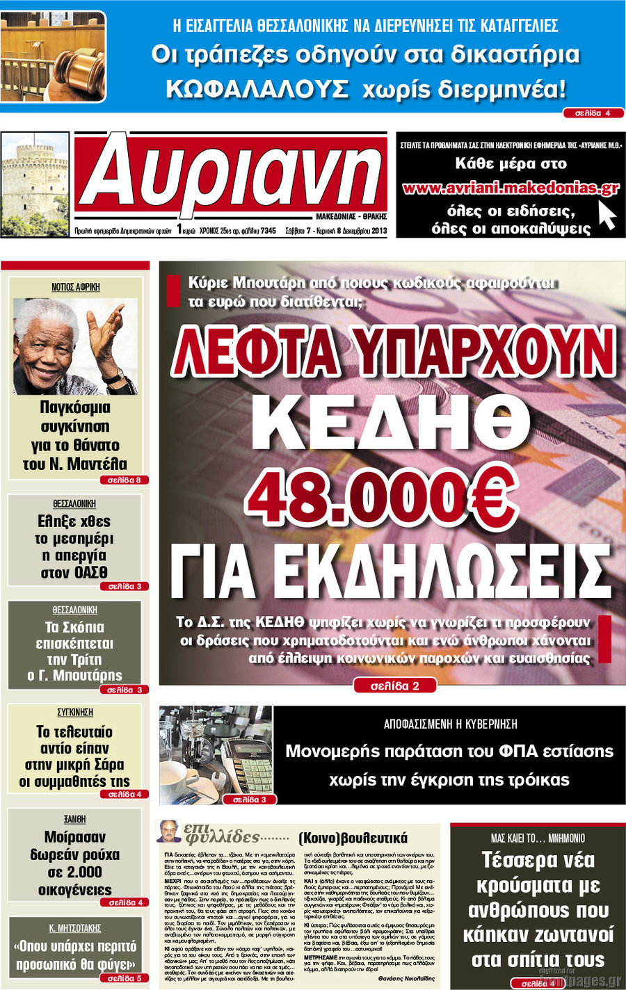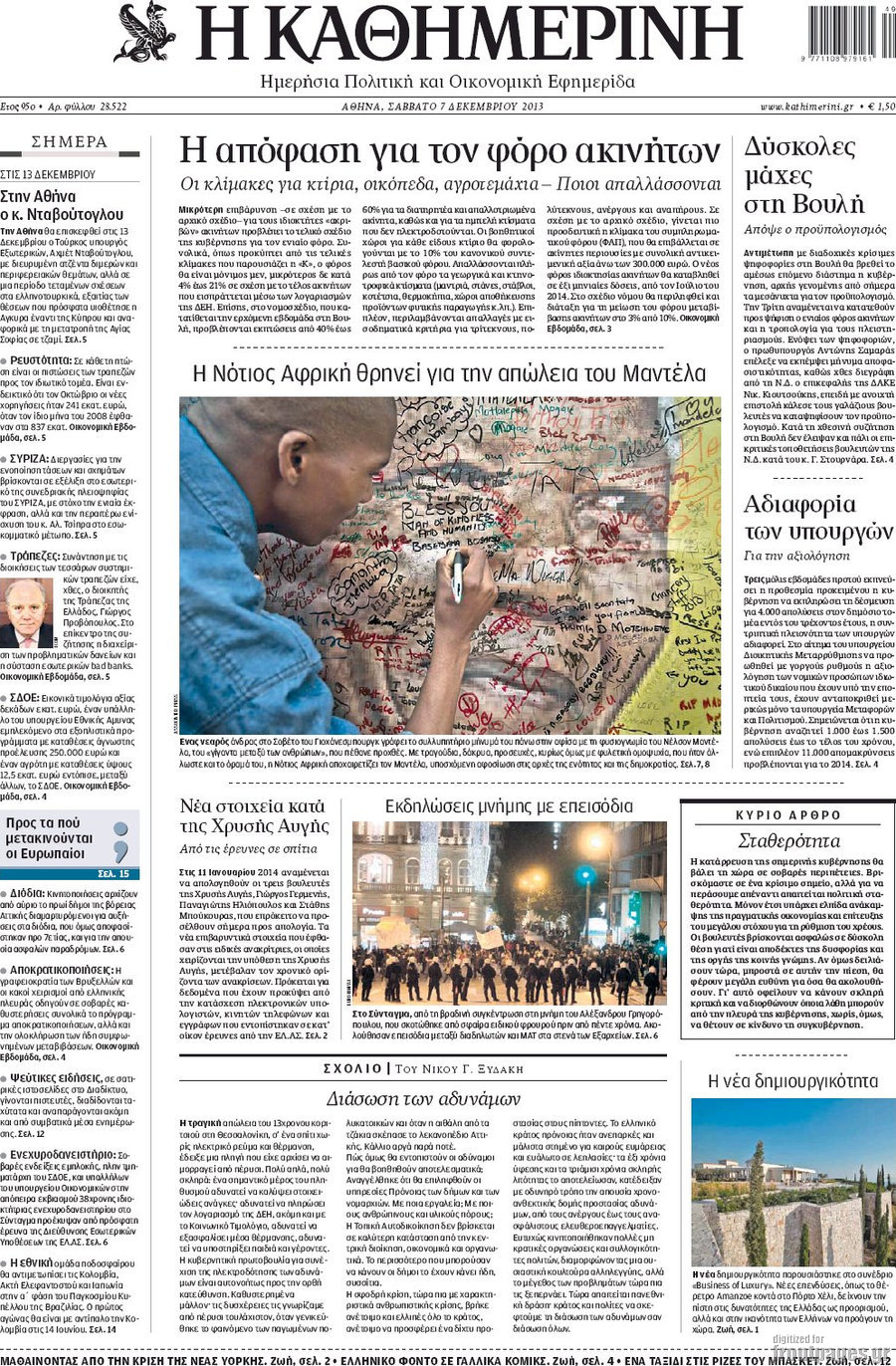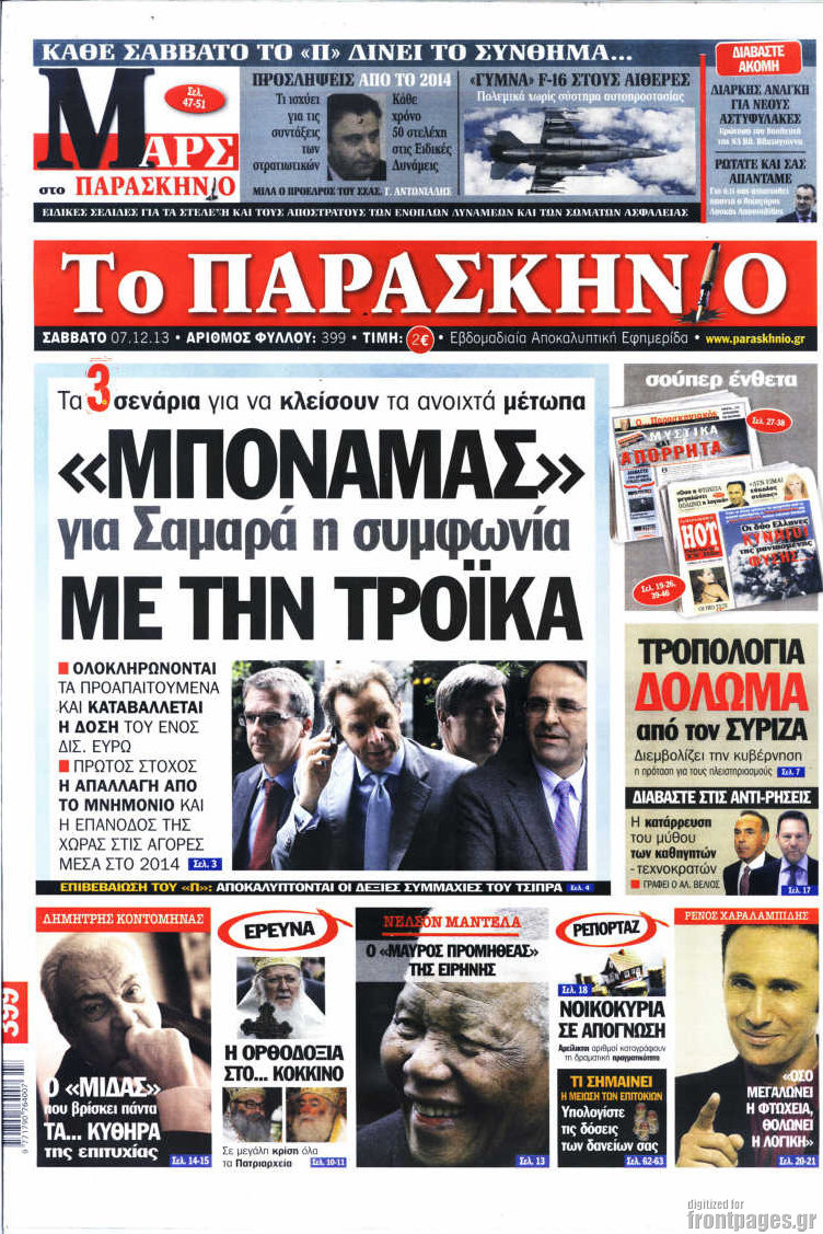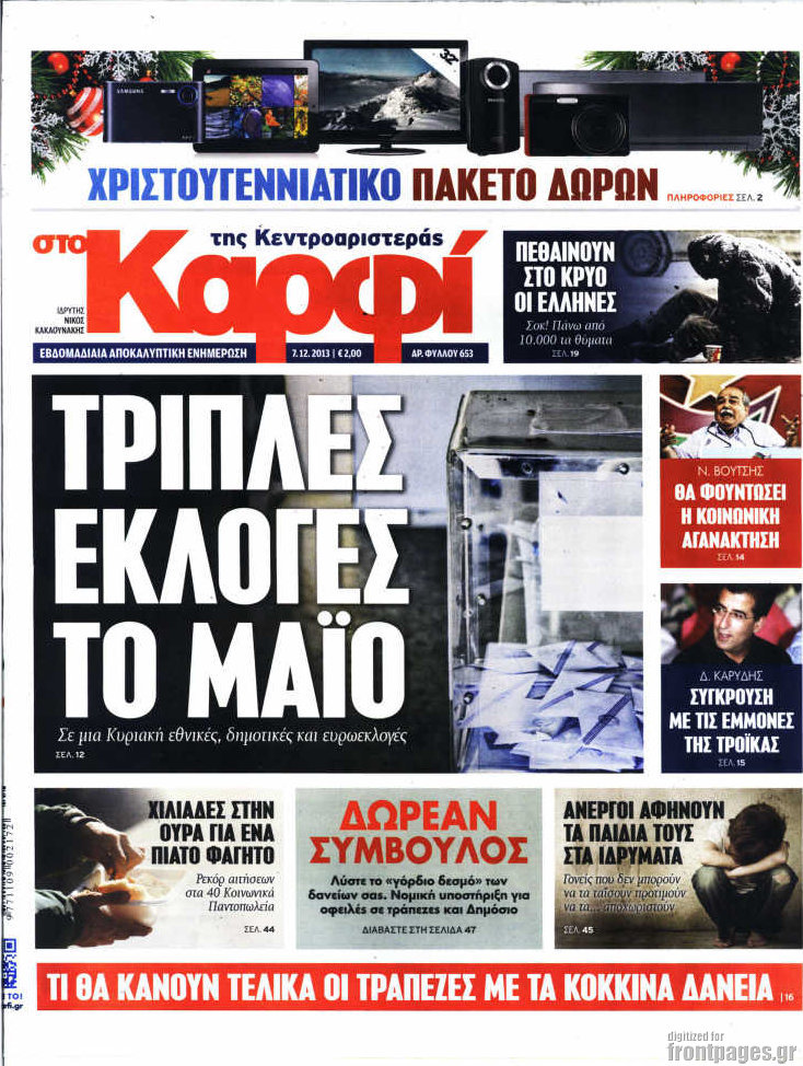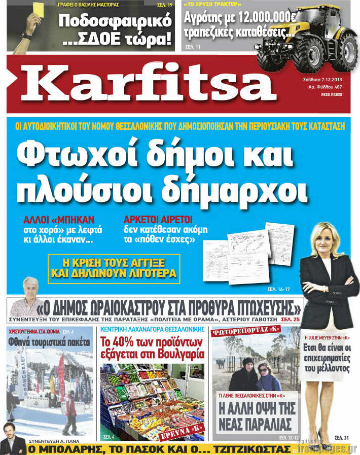 Οι πολιτικές εφημερίδες Enikos Newsroom 08:12, Σάββατο 07 Δεκεμβρίου 2013 Media Οι πολιτικές εφημερίδες ΕΦΗΜΕΡΙΔΕΣ ΠΟΛΙΤΙΚΕΣ ΕΦΗΜΕΡΙΔΕΣ Μοιράσου το: σχολίασε κι εσύ (0 σχόλια) Ακολουθήστε το enikos.gr στο Google News και μάθετε πρώτοι όλες τις ειδήσεις Δείτε όλες τις τελευταίες ειδήσεις από την Ελλάδα και τον Κόσμο στο enikos.gr Ειδήσεις Ροή Ειδήσεων 3 ώρες πριν Υπόθεση Έπσταϊν: Το Υπουργείο Δικαιοσύνης δημοσιοποίησε μια σειρά από εξαιρετικά επεξεργασμένα αρχεία – «Λείπουν τα πιο σημαντικά έγγραφα», λένε οι Δημοκρατικοί 22 λεπτά πριν Γιορτές με μπλόκα για τους αγρότες: Ανοίγουν διόδια και μοιράζουν προϊόντα στους ταξιδιώτες 54 λεπτά πριν Εξαφάνιση 33χρονου γιατρού στην Κρήτη: «Άναψα τα φώτα, τρόμαξε και άρχισε να τρέχει στα χωράφια» – Η τελευταία διαδρομή και η μαρτυρία «κλειδί» 2 ώρες πριν Ο «χάρτης» με τις αυξήσεις και τις φοροελαφρύνσεις του 2026 – Ποιοι και πόσα κερδίζουν 38 λεπτά πριν Τα αρχεία του Έπσταϊν αποκαλύπτουν φωτογραφία του έκπτωτου πρίγκιπα Άντριου – Είναι ξαπλωμένος στην αγκαλιά 5 γυναικών 45 λεπτά πριν Μία νέα «χρυσή» περίοδος αρχίζει για 3 ζώδια από σήμερα – «Μία αναπάντεχη ευκαιρία οδηγεί στην επιτυχία» 5 ώρες πριν Αυγά: Πόσα μπορείτε να τρώτε την ημέρα με ασφάλεια για μέγιστη πρόσληψη πρωτεΐνης 3 ώρες πριν Αρχαιολόγοι ανακάλυψαν σε χωράφι απεικόνιση 600 ετών ενός Αγίου – Τα στοιχεία που δείχνουν ότι μαρτύρησε 2 ώρες πριν Αγχώνεται για το χριστουγεννιάτικο δώρο που πήρε στην πλούσια σύντροφό του – «Φοβάμαι πως θα το βρει φθηνιάρικο, φοράει βραχιόλια Cartier» 6 λεπτά πριν Πώς η κλιματική αλλαγή επηρεάζει εγκύους και βρέφη – Οι επιπτώσεις των υψηλών θερμοκρασιών 14 λεπτά πριν e-ΕΦΚΑ και ΔΥΠΑ: Οι πληρωμές από 22 έως 24 Δεκεμβρίου – Ποιοι θα δουν χρήματα στους λογαριασμούς τους 22 λεπτά πριν Συνελήφθη οδηγός μηχανής που έτρεχε με 161 χλμ στη Συγγρού – Τον έπιασε το ραντάρ της Τροχαίας 22 λεπτά πριν Γιορτές με μπλόκα για τους αγρότες: Ανοίγουν διόδια και μοιράζουν προϊόντα στους ταξιδιώτες 30 λεπτά πριν Τηλεθέαση (19/12): Κυριάρχησε η σειρά «Το σόι σου» – Τι νούμερα έκανε ο τελικός του GNTM ENIKOS NETWORK Είστε μόνιμα απρόσεκτοι; 3 σημάδια που δείχνουν ότι μπορεί να είναι σύμπτωμα πάθησης Πόσα κιλά παίρνουμε πραγματικά τα Χριστούγεννα, σύμφωνα με την επιστήμη – Πώς να το αποτρέψουμε; Επίδομα παιδιού: Τι αλλάζει από το 2026 – Το όφελος από τις φορολογικές ελαφρύνσεις Mega χριστουγεννιάτικη φορολοταρία: «Κλείδωσε» η ημερομηνία για την κλήρωση – Ερωτήσεις και απαντήσεις Χαρτογραφώντας το «σημείο χωρίς επιστροφή»: Για πρώτη φορά αποκαλύπτεται με λεπτομέρεια το ακανθώδες όριο της ατμόσφαιρας τ... Η Google καταργεί τη λειτουργία «dark web report» – Πώς θα μπορούν οι χρήστες να διαγράφουν τα δεδομένα τους περισσότερα 09:30 , Σάββατο 20 Δεκεμβρίου 2025 «Porto Leone: Στη γειτονιά με τα κόκκινα φανάρια» – Ο Χρόνης αποκαλύπτει στην Αλεξάνδρα το μυστικό για το παιδί της Λένας Η μεγάλη δραματική σειρά του Apha «Porto Leone: Στη γειτονιά με τα κόκκινα φανάρια» μας μεταφέ... 08:14 , Σάββατο 20 Δεκεμβρίου 2025 Τρομεροί γονείς: Η Μαρία Καβογιάννη εισβάλλει στο σπίτι της οικογένειας Στεφανίδη Όσα θα δούμε στο νέο διπλό επεισόδιο της σειράς «Τρομεροί γονείς», σήμερα Σάββατο 20 Δεκεμβρίο... 05:48 , Σάββατο 20 Δεκεμβρίου 2025 Οι οικονομικές εφημερίδες 20/12/2025 Διαβάστε τα πρωτοσέλιδα από τις οικονομικές εφημερίδες, σήμερα 20/12/2025. 05:43 , Σάββατο 20 Δεκεμβρίου 2025 Οι αθλητικές εφημερίδες 20/12/2025 Διαβάστε τα πρωτοσέλιδα από τις αθλητικές εφημε