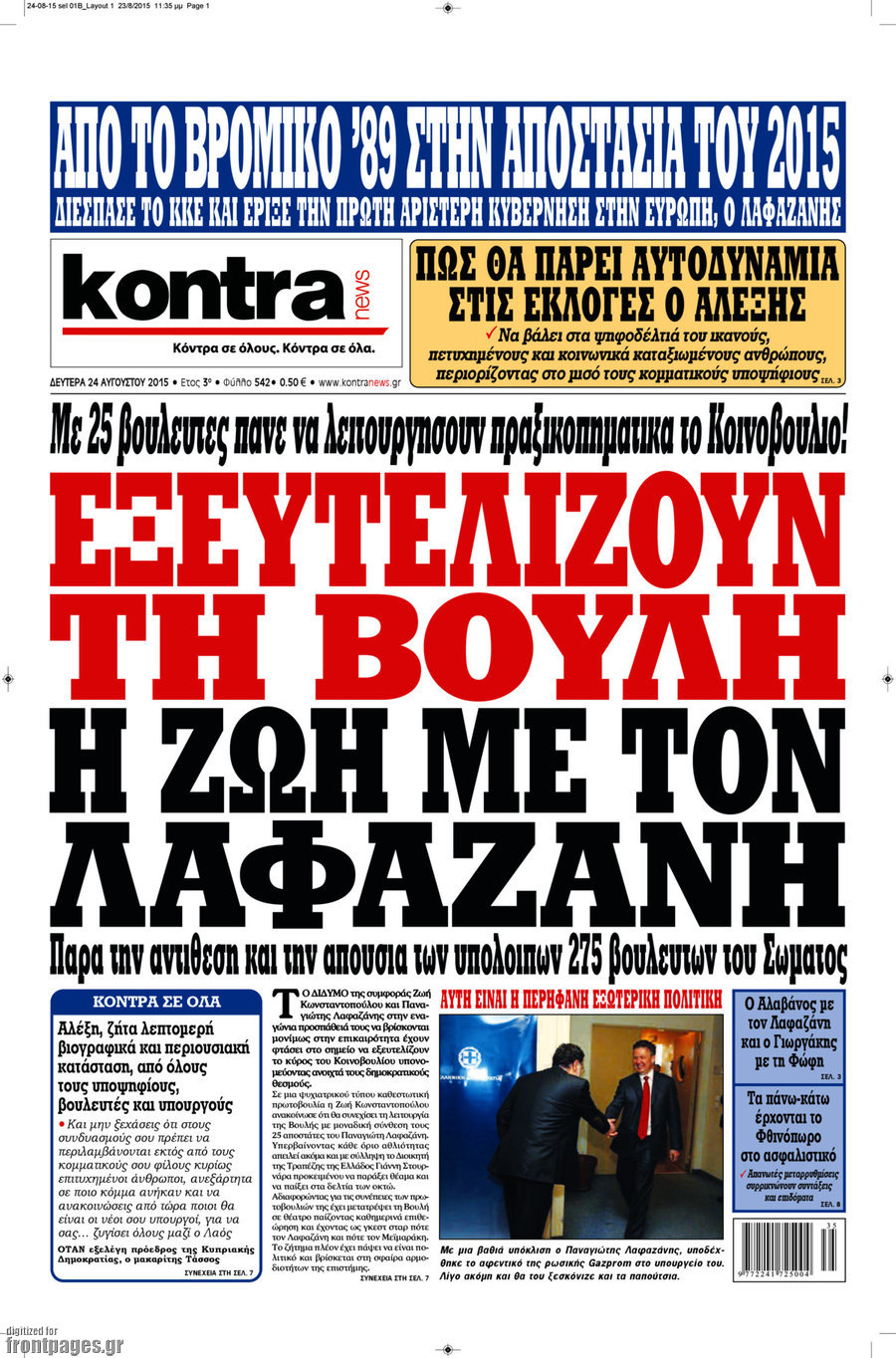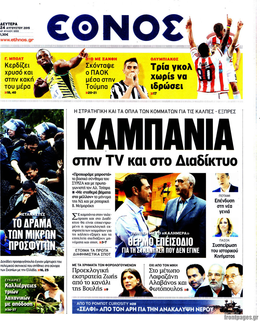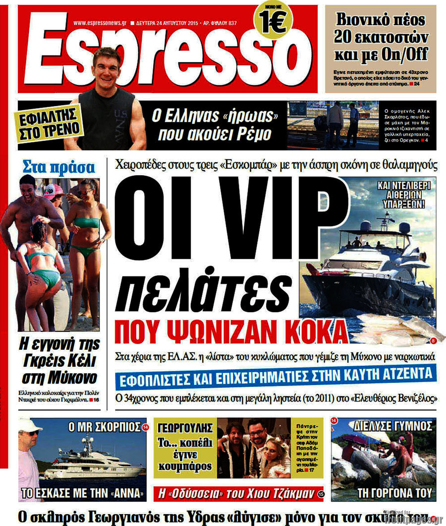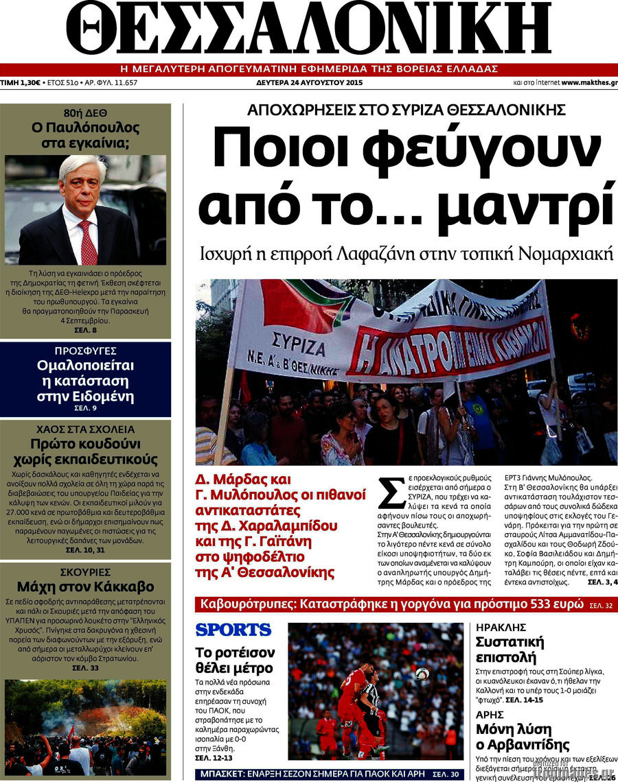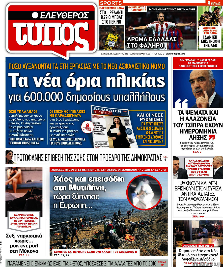 Οι πολιτικές εφημερίδες 24/8/2015 Στεφανία Κασίμη 07:27, Δευτέρα 24 Αυγούστου 2015 Media ΠΟΛΙΤΙΚΕΣ ΕΦΗΜΕΡΙΔΕΣ ΠΡΩΤΟΣΕΛΙΔΑ Μοιράσου το: σχολίασε κι εσύ (0 σχόλια) Ακολουθήστε το enikos.gr στο Google News και μάθετε πρώτοι όλες τις ειδήσεις Δείτε όλες τις τελευταίες ειδήσεις από την Ελλάδα και τον Κόσμο στο enikos.gr Ειδήσεις Ροή Ειδήσεων 50 λεπτά πριν Χριστούγεννα στα μπλόκα: Επιμένουν στις κινητοποιήσεις τους οι αγρότες – Ανοίγουν τα διόδια το Σαββατοκύριακο 1 ώρα πριν Ουκρανία: Η άνευ προηγουμένου επίθεση σε ρωσικό τάνκερ στη Μεσόγειο και το μήνυμα προς στον Πούτιν – Το «μακρύ χέρι» του Κιέβου 28 λεπτά πριν Πούτιν: Τα μηνύματα σε Ευρώπη και ΝΑΤΟ από το μαραθώνιο «σόου» του – Η απαίτηση για «σεβασμό» και η ειρήνη «με τους όρους» της Μόσχας 1 ώρα πριν Τραμπ: Δεν αποκλείει την πιθανότητα ενός πολέμου στη Βενεζουέλα – «Ο Μαδούρο ξέρει καλύτερα από τον καθένα τι ακριβώς θέλω» 2 ώρες πριν Συνεχίζει να προκαλεί ο Μίτσκοσκι: «Για μένα το όνομα Μακεδονία είναι ιερό» 4 ώρες πριν Πούτιν: «Ναι, είμαι ερωτευμένος» – Βίντεο από τη σπάνια προσωπική παραδοχή του 2 ώρες πριν Αριθμολογία: Οι άνθρωποι που έχουν γεννηθεί αυτές τις 4 ημερομηνίες, συχνά παρεξηγούνται – «Η καλοσύνη τους κρύβει τεράστια δύναμη» 1 ώρα πριν Ύπνος: Μια κρυφή κατάσταση του εγκεφάλου πριν από τον ύπνο μπορεί να είναι το “κλειδί” για υψηλή ευφυΐα και δημιουργικότητα 3 ώρες πριν Ξεχάστε το καθάρισμα το Σαββατοκύριακο: Ο «κανόνας των 20 λεπτών» που θα σας λύσει τα χέρια 29 λεπτά πριν Ανακαλύφθηκαν αρχαία χρυσά νομίσματα 2.200 ετών που απεικονίζουν τον θεό Απόλλωνα – Η άγνωστη σύνδεση με τον Φίλιππο Β΄ της Μακεδονίας 13 λεπτά πριν Ολυμπιακός – Βιλερμπάν 107-84: Επιστροφή στις νίκες με… προπόνηση 19 λεπτά πριν Νέος Κόσμος: Συνελήφθη 41χρονος με ένταλμα από την Τουρκία για εμπόριο ναρκωτικών και ληστεία 28 λεπτά πριν Πούτιν: Τα μηνύματα σε Ευρώπη και ΝΑΤΟ από το μαραθώνιο «σόου» του – Η απαίτηση για «σεβασμό» και η ειρήνη «με τους όρους» της Μόσχας 29 λεπτά πριν Ανακαλύφθηκαν αρχαία χρυσά νομίσματα 2.200 ετών που απεικονίζουν τον θεό Απόλλωνα – Η άγνωστη σύνδεση με τον Φίλιππο Β΄ της Μακεδονίας 33 λεπτά πριν Νίκος Ξυλούρης: Συγκινεί η χήρα του σπουδαίου καλλιτέχνη – «Ευχαριστώ όλο τον κόσμο που τον κρατάει ζωντανό 45 χρόνια» ENIKOS NETWORK Το ΕΚΑΒ τιμήθηκε από την Ακαδημία Αθηνών για τα 40 χρόνια προσφοράς του Έχετε πραγματικά μεγάλη καρδιά; 10 χαρακτηριστικά όσων έχουν καλοσύνη Αναστολή μέτρων αναγκαστικής εκτέλεσης για κτηνοτρόφους που πλήττονται από την ευλογιά των αιγοπροβάτων Πλήρης επάρκεια προϊόντων στις λαϊκές της Αττικής, παρά τις αγροτικές κινητοποιήσεις – Τι απαντούν οι πωλητές Χαρτογραφώντας το «σημείο χωρίς επιστροφή»: Για πρώτη φορά αποκαλύπτεται με λεπτομέρεια το ακανθώδες όριο της ατμόσφαιρας τ... Η Google καταργεί τη λειτουργία «dark web report» – Πώς θα μπορούν οι χρήστες να διαγράφουν τα δεδομένα τους περισσότερα 22:42 , Παρασκευή 19 Δεκεμβρίου 2025 Γιώργος Γιαννόπουλος για “Το σόι σου”: “Είναι ευτυχία και ευλογία αυτή η σειρά” «Είναι ευτυχία και ευλογία η συγκυρία αυτής της σειράς», θα πει ο Γιώργος Γιαννόπουλος -ο αγαπ... 20:37 , Παρασκευή 19 Δεκεμβρίου 2025 Don’t Forget The Lyrics: Η Έλλη Κοκκίνου υποδέχεται 4 παίκτες που θα κάνουν τα πάντα για να μη χάσουν ούτε… μισή λέξη από τους στίχους Το «Don’t Forget The Lyrics» επιστρέφει απόψε, Παρασκευή 19 Δεκεμβρίου, στις 21:00 με νέο επει... 19:31 , Παρασκευή 19 Δεκεμβρίου 2025 GNTM: Απόψε ο μεγάλος τελικός για του