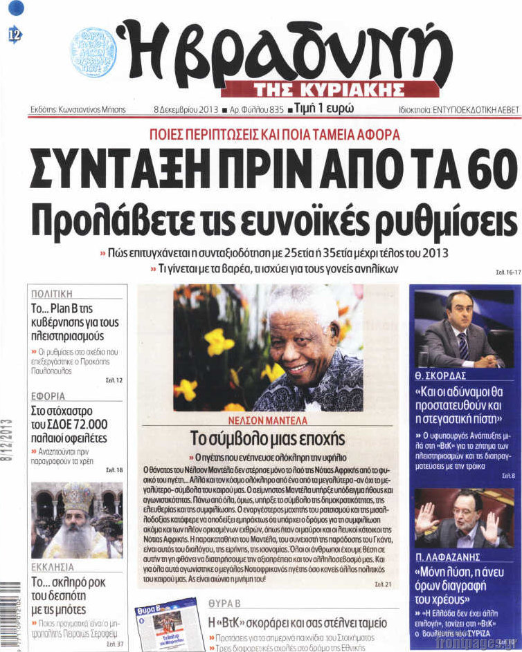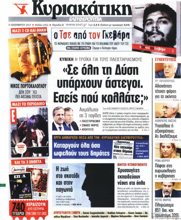 Οι πολιτικές εφημερίδες Enikos Newsroom 08:20, Κυριακή 08 Δεκεμβρίου 2013 Media Οι πολιτικές εφημερίδες Διαβάστε τα πρωτοσέλιδα των πολιτικών εφημερίδων: ΕΦΗΜΕΡΙΔΕΣ ΠΟΛΙΤΙΚΕΣ ΕΦΗΜΕΡΙΔΕΣ ΠΡΩΤΟΣΕΛΙΔΑ Μοιράσου το: σχολίασε κι εσύ (0 σχόλια) Ακολουθήστε το enikos.gr στο Google News και μάθετε πρώτοι όλες τις ειδήσεις Δείτε όλες τις τελευταίες ειδήσεις από την Ελλάδα και τον Κόσμο στο enikos.gr Ειδήσεις Ροή Ειδήσεων 21 λεπτά πριν Αγρότες: Σήκωσαν τις μπάρες στα διόδια των Αφιδνών – ΦΩΤΟ και ΒΙΝΤΕΟ 4 ώρες πριν Διάλογοι-σοκ από το κύκλωμα που διακινούσε ναρκωτικά σε σχολεία – «Αν δεν είσαι εκεί σε 5 λεπτά, θα φας πολύ ξύλο μπρο» 1 ώρα πριν Κωνσταντίνος Ανεστίδης: «Είμαι αθώος, είμαι καθαρός σαν αστραπή και η αστραπή θα πέσει στο κεφάλι τους» – ΒΙΝΤΕΟ 1 ώρα πριν Εγκαινιάστηκε ο αρχαιολογικός χώρος του Ανακτόρου της Πέλλας – Παρουσιάστηκαν για πρώτη φορά δύο ελληνιστικά αγάλματα 2 ώρες πριν Δήμος Αθηναίων: Ξεκινά τη Δευτέρα η επιστροφή πινακίδων οχημάτων από τη Δημοτική Αστυνομία 3 ώρες πριν Αν ανήκετε σε ένα από αυτά τα 3 ζώδια, το 2026 θα είναι η χρονιά σας – «Η ζωή σας βελτιώνεται σε όλους τους τομείς» 28 λεπτά πριν Είσοδος σπιτιού: Πώς να οργανώσετε το χώρο πριν έρθουν οι καλεσμένοι σας – Η ρουτίνα 3 βημάτων 4 ώρες πριν Ένα πλάσμα στα βάθη της θάλασσας απορροφά άνθρακα από την ατμόσφαιρα – «Δεν είχαμε ιδέα για την ύπαρξή του» 1 ημέρα πριν Enerwave: Το νέο «ρεύμα» στη λιανική ενέργειας που αλλάζει την εμπειρία του καταναλωτή 31 δευτερόλεπτα πριν Ανυποχώρητοι οι αγρότες στα μπλόκα της Δυτικής Θεσσαλίας – «Δεν πρόκειται να κάνουμε πίσω» 10 λεπτά πριν Μακρόν: Η Γαλλία θα ναυπηγήσει ένα μεγαλύτερο και πιο σύγχρονο αεροπλανοφόρο που θα αντικαταστήσει το «Charles De Gaulle» 21 λεπτά πριν Αγρότες: Σήκωσαν τις μπάρες στα διόδια των Αφιδνών – ΦΩΤΟ και ΒΙΝΤΕΟ 28 λεπτά πριν Είσοδος σπιτιού: Πώς να οργανώσετε το χώρο πριν έρθουν οι καλεσμένοι σας – Η ρουτίνα 3 βημάτων 35 λεπτά πριν Σταματίνα Τσιμτσιλή: «Ο μπαμπάς μου “έφυγε” σε τροχαίο, έπεσε κάποιος πάνω του και υπέκυψε στα τραύματά του» ENIKOS NETWORK Οι γυναίκες έχουν βρει μια νέα απόλαυση στην κρεβατοκάμαρα που οι περισσότεροι άνδρες αγνοούν Christmas glow: 5 χρυσές συμβουλές για επιδερμίδα που λάμπει από ομορφιά τα Χριστούγεννα Νέα έρευνα: Οκτώ στους δέκα Έλληνες αγοράζουν από online πλατφόρμες χωρών εκτός ΕΕ – Temu και Shein οι κορυφαίες επιλογές Αττική: Πού μπήκαν οι πρώτες «έξυπνες κάμερες» – Πώς θα φτάνει η κλήση στους παραβάτες Χαρτογραφώντας το «σημείο χωρίς επιστροφή»: Για πρώτη φορά αποκαλύπτεται με λεπτομέρεια το ακανθώδες όριο της ατμόσφαιρας τ... Η Google καταργεί τη λειτουργία «dark web report» – Πώς θα μπορούν οι χρήστες να διαγράφουν τα δεδομένα τους περισσότερα 17:18 , Κυριακή 21 Δεκεμβρίου 2025 «Η Μεγάλη Χίμαιρα»: Μάγεψε το κοινό κατά την avant-première της προβολής της Την Πρωτοχρονιά (Πέμπτη 1η Ιανουαρίου 2026) στο ERTFLIX θα γίνει η πρεμιέρα της πολυαναμενόμεν... 15:08 , Κυριακή 21 Δεκεμβρίου 2025 Μια νύχτα μόνο: Η Αρετή και ο Οδυσσέας έρχονται και πάλι κοντά Το νέο επεισόδιο της δραματικής σειράς του MEGA «Μια νύχτα μόνο», θα προβληθεί απόψε Κυριακή 2... 14:24 , Κυριακή 21 Δεκεμβρίου 2025 IQ 160: Ο φάκελος με το τεστ πατρότητας ανοίγει, απόψε στις 21:00 στο Star Ανατρεπτικό το νέο διπλό επεισόδιο της σειράς “IQ 160” στις 21:00 στο Star. Ο Τηλέ... 09:43 , Κυριακή 21 Δεκεμβρίου 2025 Το λάθος στην ταινία Die Hard που άφησε άναυδους τους θαυμαστές του Μπρους Γουίλις Ένας φανατικός των ταινιών άφησε άναυδους τους θαυμαστές