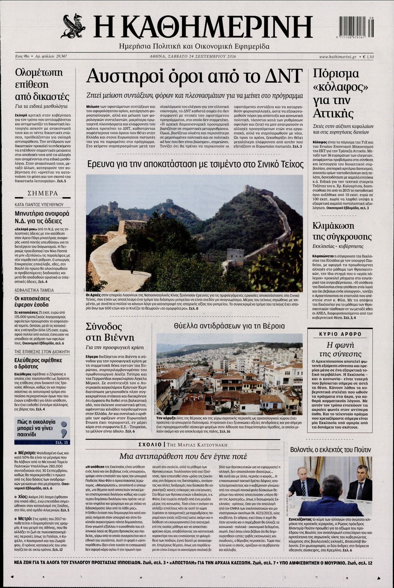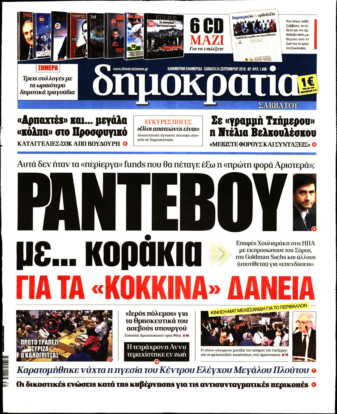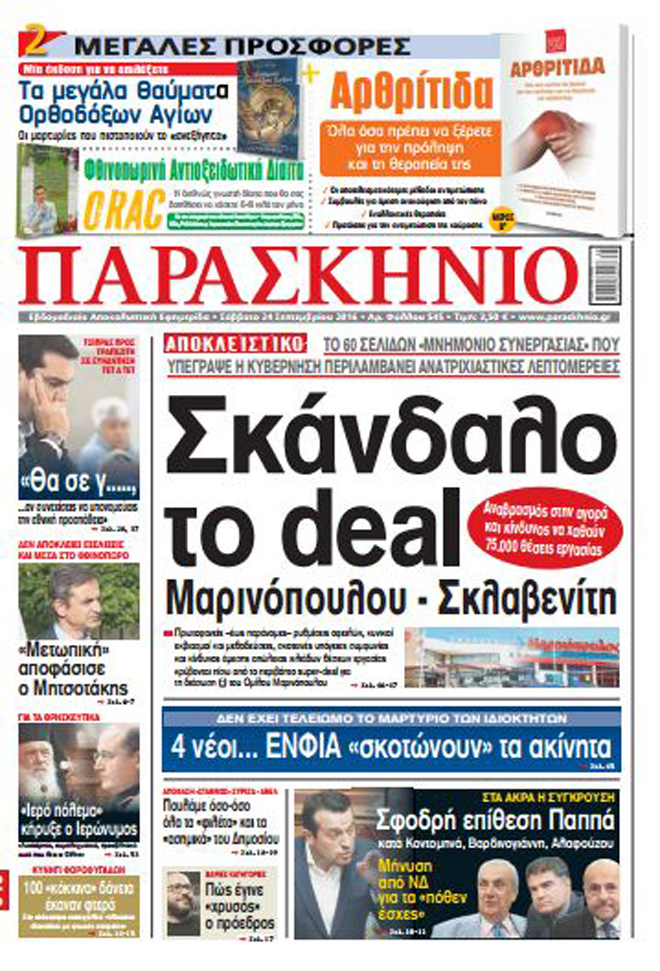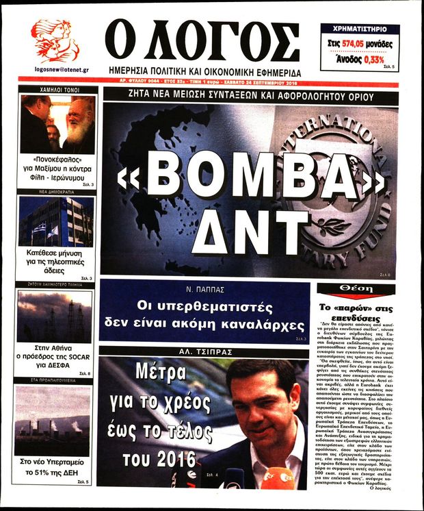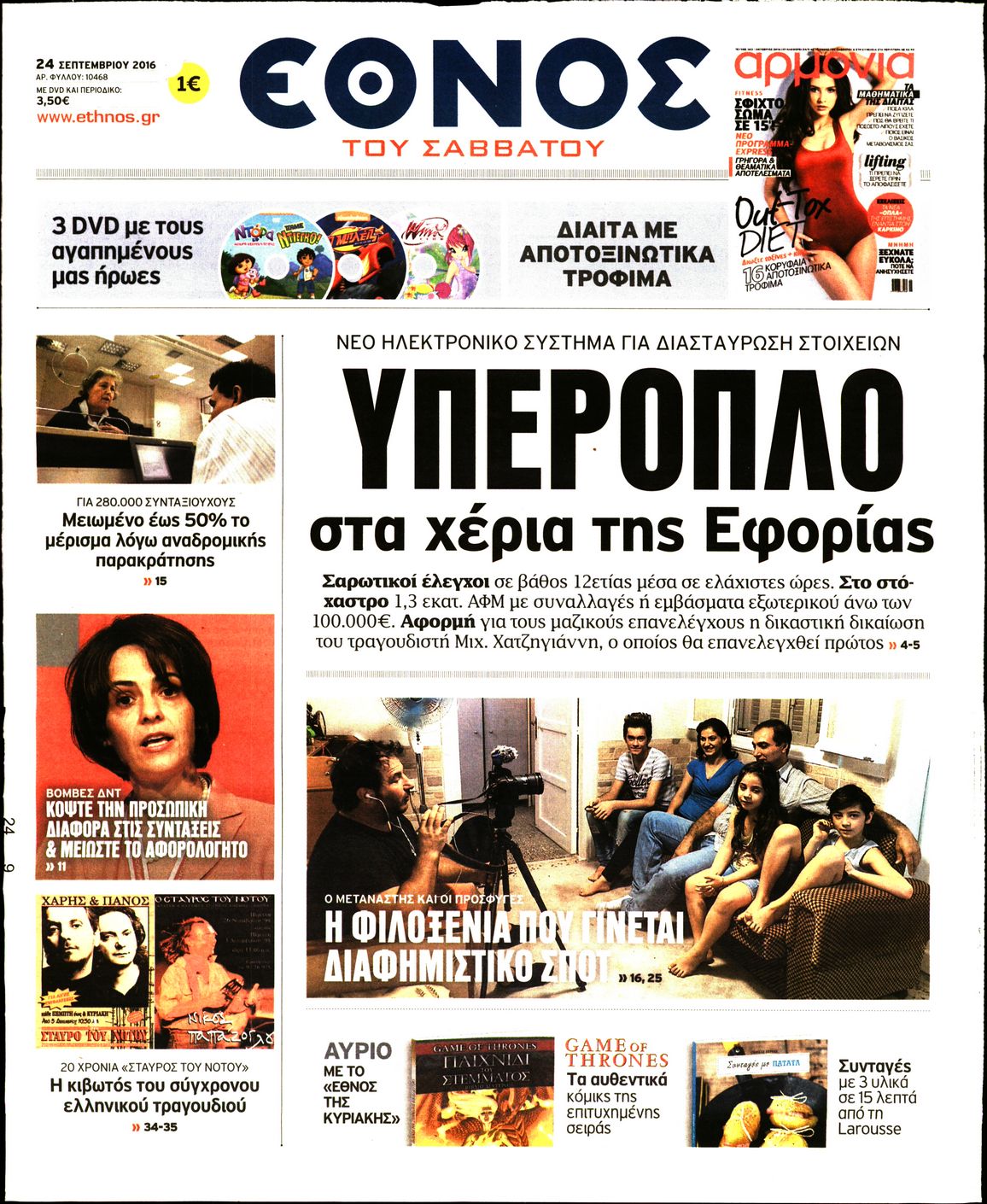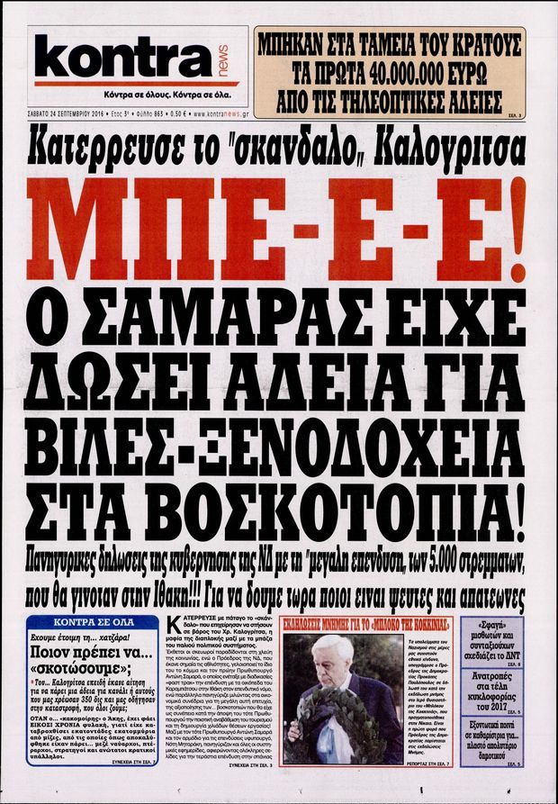 Oι πολιτικές εφημερίδες 24/9/2016 Enikos Newsroom 05:18, Σάββατο 24 Σεπτεμβρίου 2016 Media Διαβάστε τα σημερινά πρωτοσέλιδα των πολιτικών εφημερίδων: ΠΟΛΙΤΙΚΕΣ ΕΦΗΜΕΡΙΔΕΣ ΠΡΩΤΟΣΕΛΙΔΑ Μοιράσου το: σχολίασε κι εσύ (0 σχόλια) Ακολουθήστε το enikos.gr στο Google News και μάθετε πρώτοι όλες τις ειδήσεις Δείτε όλες τις τελευταίες ειδήσεις από την Ελλάδα και τον Κόσμο στο enikos.gr Ειδήσεις Ροή Ειδήσεων 35 λεπτά πριν Μητσοτάκης σε αγρότες: Είμαστε ανοιχτοί στον διάλογο, αλλά όχι στο παράλογο – Η διεκδίκηση αιτημάτων οφείλει να γίνεται με σεβασμό στο κοινωνικό σύνολο 51 λεπτά πριν Γρίπη: «Καμπανάκι» από τους επιστήμονες για έξαρση κρουσμάτων στις γιορτές – Ποιοι κινδυνεύουν και πώς προστατευόμαστε 2 ώρες πριν Γαλλία: Έτοιμοι για Χριστούγεννα στους δρόμους οι αγρότες – «Οι δεσμεύσεις της κυβέρνησης δεν είναι αρκετές» 2 ώρες πριν Φοροδιαφυγή και «κενό ΦΠΑ»: Πώς τα ψηφιακά εργαλεία έφεραν δισεκατομμύρια στα ταμεία του Δημοσίου 3 ώρες πριν Τζορτζ Κλούνεϊ: Πέθανε η αδελφή του, Άντα Ζάιντλερ – «Η ηρωίδα μου» 44 λεπτά πριν Τα άστρα ευνοούν σκανδαλωδώς 4 ζώδια – «Εμφανίζονται ξαφνικά ευκαιρίες γιατί αποφασίζετε να αφήσετε πίσω το παρελθόν» 2 ώρες πριν Οι γονείς της θέλουν να έχουν πρόσβαση στον τραπεζικό της λογαριασμό – «Επιμένουν πως στις οικογένειες δεν υπάρχουν μυστικά» 2 ώρες πριν Αρχαιολόγοι ανακάλυψαν κάτι που δεν περίμεναν: Τα μαθηματικά υπήρχαν πριν από τους αριθμούς – Το μυστικό που κρύβεται πίσω από περίεργα αγγεία 8.000 ετών 1 ημέρα πριν Enerwave: Το νέο «ρεύμα» στη λιανική ενέργειας που αλλάζει την εμπειρία του καταναλωτή 3 λεπτά πριν Νέα περιστατικά κατανάλωσης αλκοόλ από ανηλίκους στην Κρήτη: Δύο παιδιά στο νοσοκομείο – 3 συλλήψεις 11 λεπτά πριν Τηλεθέαση (20/12): Πρωτιά για το The Voice στην prime time – Τα ποσοστά στο δυναμικό και στο γενικό σύνολο 15 λεπτά πριν Συναγερμός στην Σκύρο – Ακυβέρνητο δεξαμενόπλοιο λόγω μπλακ άουτ 18 λεπτά πριν Σοκ στις Πινακάτες: Νεκρός ο πρόεδρος του χωριού Νίκος Παππάς – Κατέρρευσε μπροστά στη σύζυγο και τα παιδιά του 27 λεπτά πριν Πώς «ακούγονται» το Δέλτα του Αξιού και η λίμνη Ορεστιάδα; Οι πρώτες ηχογραφήσεις των επιστημόνων δείχνουν κάτι απρόσμενο ENIKOS NETWORK Έχετε καταρροή και φαγούρα στα μάτια στις γιορτές; Μπορεί να ευθύνεται το σύνδρομο χριστουγεννιάτικου δέντρου Η Danielle Fishel μετά τη διάγνωση καρκίνου του μαστού: «Είμαι καλά και νιώθω ευγνωμοσύνη» Ανοιχτά τα καταστήματα σήμερα – Μέχρι τι ώρα μπορείτε να κάνετε τις αγορές σας Πρωτοχρονιά 2026: Πόσο θα κοστίσει φέτος η βασιλόπιτα – Οι τιμές σε ζαχαροπλαστεία, φούρνους και σούπερ μάρκετ Χαρτογραφώντας το «σημείο χωρίς επιστροφή»: Για πρώτη φορά αποκαλύπτεται με λεπτομέρεια το ακανθώδες όριο της ατμόσφαιρας τ... Η Google καταργεί τη λειτουργία «dark web report» – Πώς θα μπορούν οι χρήστες να διαγράφουν τα δεδομένα τους περισσότερα 09:43 , Κυριακή 21 Δεκεμβρίου 2025 Το λάθος στην ταινία Die Hard που άφησε άναυδους τους θαυμαστές του Μπρους Γουίλις Ένας φανατικός των ταινιών άφησε άναυδους τους θαυμαστές του Die Hard, επισημαίνοντας τρία βασ... 08:13 , Κυριακή 21 Δεκεμβρίου 2025 Άγιος έρωτας: Ένας καταστροφικός σεισμός χτυπά τη Στέρνα Καταιγιστικές είναι οι εξελίξεις στα δυο τελευταία, συγκλονιστικά επεισόδια του 2025 της σειρά... 08:00 , Κυριακή 21 Δεκεμβρίου 2025 Σήμερα με τη Realnews: Ό,τι και αν αγοράσεις, σκανάρεις και κερδίζεις! Σήμερα με τη Realnews: Ό,τι και αν αγοράσεις, σκανάρεις και κερδίζεις! Με το PADU app, το κορυ... 07:00 , Κυριακή 21 Δεκεμβρίου