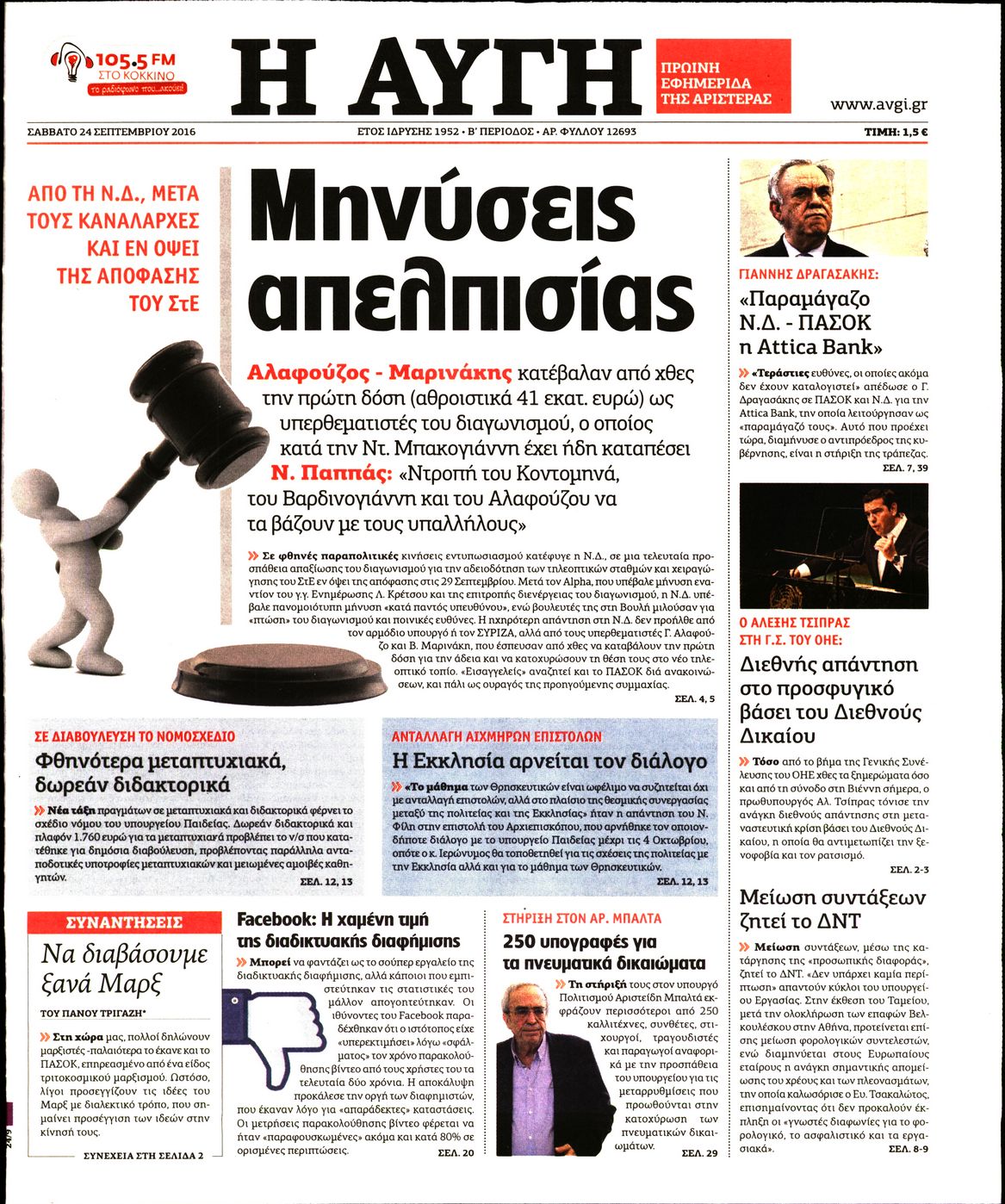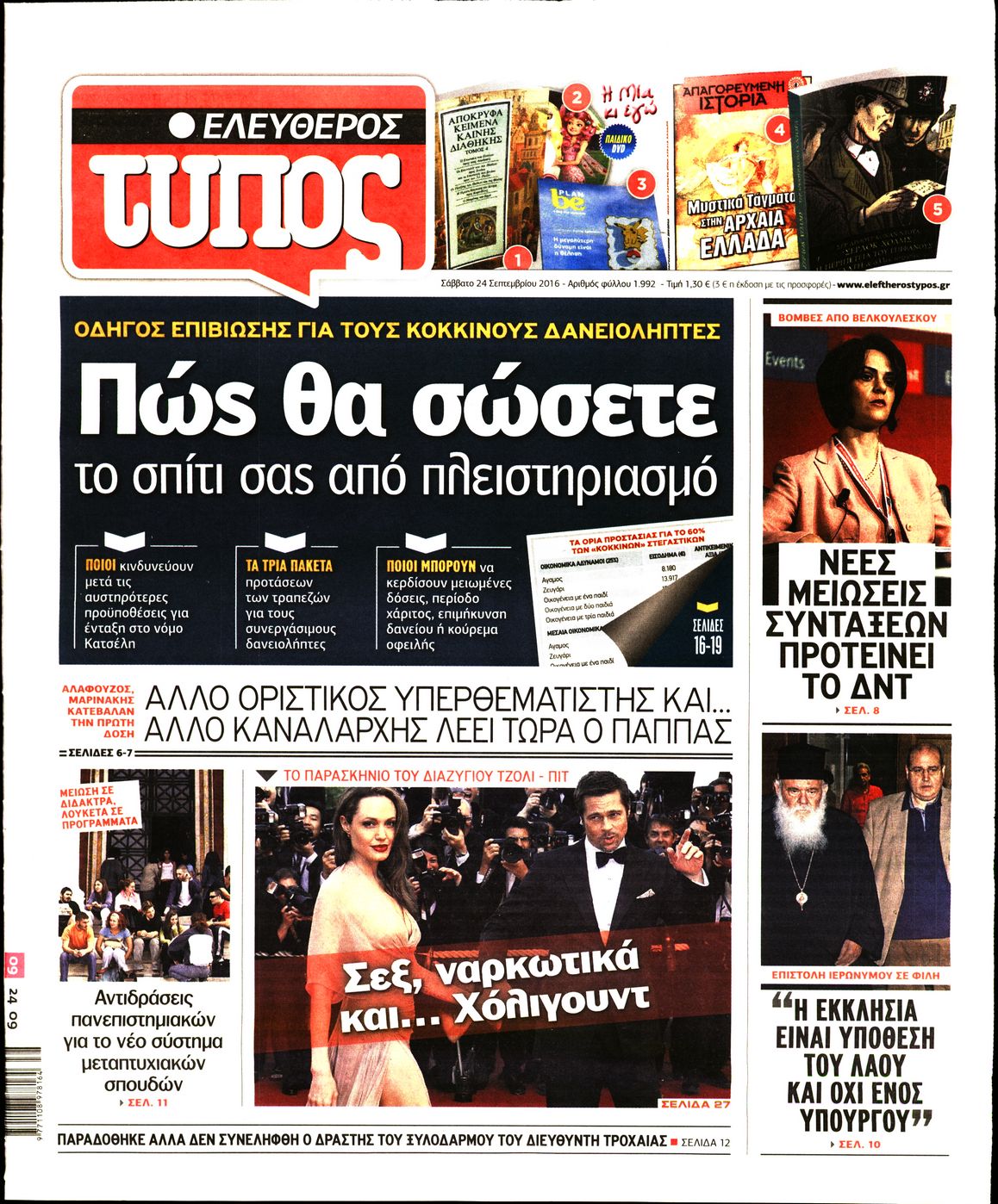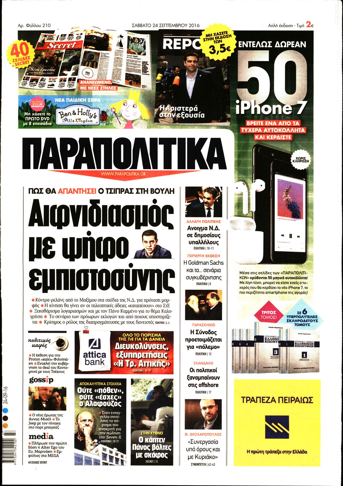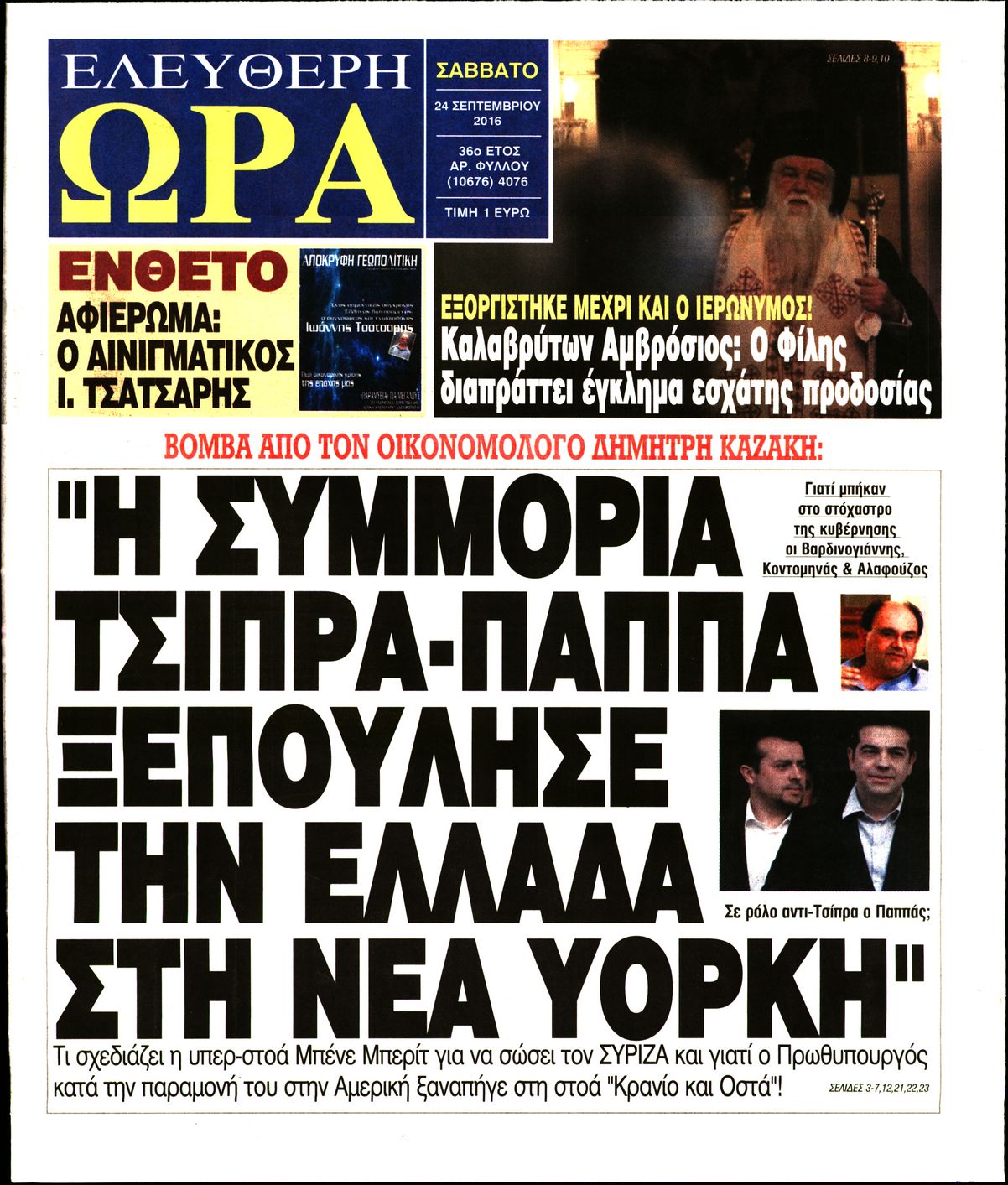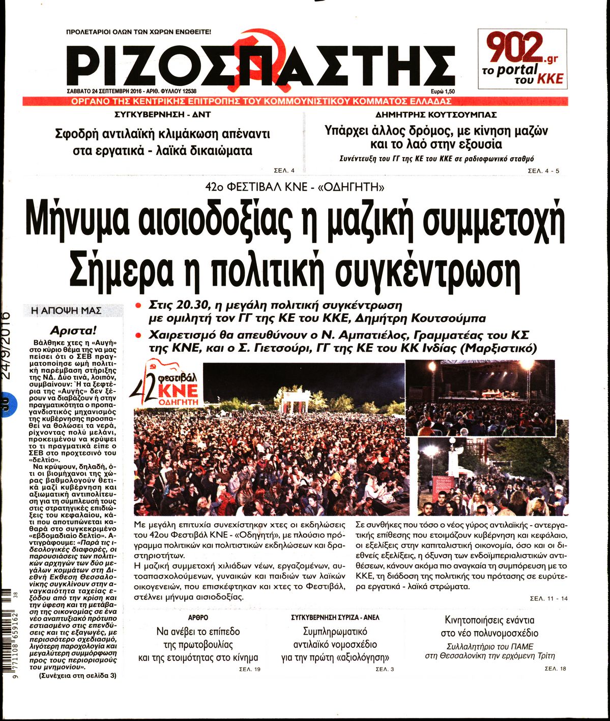 Oι πολιτικές εφημερίδες 24/9/2016 Enikos Newsroom 05:18, Σάββατο 24 Σεπτεμβρίου 2016 Media Διαβάστε τα σημερινά πρωτοσέλιδα των πολιτικών εφημερίδων: ΠΟΛΙΤΙΚΕΣ ΕΦΗΜΕΡΙΔΕΣ ΠΡΩΤΟΣΕΛΙΔΑ Μοιράσου το: σχολίασε κι εσύ (0 σχόλια) Ακολουθήστε το enikos.gr στο Google News και μάθετε πρώτοι όλες τις ειδήσεις Δείτε όλες τις τελευταίες ειδήσεις από την Ελλάδα και τον Κόσμο στο enikos.gr Ειδήσεις Ροή Ειδήσεων 35 λεπτά πριν Μητσοτάκης σε αγρότες: Είμαστε ανοιχτοί στον διάλογο, αλλά όχι στο παράλογο – Η διεκδίκηση αιτημάτων οφείλει να γίνεται με σεβασμό στο κοινωνικό σύνολο 51 λεπτά πριν Γρίπη: «Καμπανάκι» από τους επιστήμονες για έξαρση κρουσμάτων στις γιορτές – Ποιοι κινδυνεύουν και πώς προστατευόμαστε 2 ώρες πριν Γαλλία: Έτοιμοι για Χριστούγεννα στους δρόμους οι αγρότες – «Οι δεσμεύσεις της κυβέρνησης δεν είναι αρκετές» 2 ώρες πριν Φοροδιαφυγή και «κενό ΦΠΑ»: Πώς τα ψηφιακά εργαλεία έφεραν δισεκατομμύρια στα ταμεία του Δημοσίου 3 ώρες πριν Τζορτζ Κλούνεϊ: Πέθανε η αδελφή του, Άντα Ζάιντλερ – «Η ηρωίδα μου» 44 λεπτά πριν Τα άστρα ευνοούν σκανδαλωδώς 4 ζώδια – «Εμφανίζονται ξαφνικά ευκαιρίες γιατί αποφασίζετε να αφήσετε πίσω το παρελθόν» 2 ώρες πριν Οι γονείς της θέλουν να έχουν πρόσβαση στον τραπεζικό της λογαριασμό – «Επιμένουν πως στις οικογένειες δεν υπάρχουν μυστικά» 2 ώρες πριν Αρχαιολόγοι ανακάλυψαν κάτι που δεν περίμεναν: Τα μαθηματικά υπήρχαν πριν από τους αριθμούς – Το μυστικό που κρύβεται πίσω από περίεργα αγγεία 8.000 ετών 1 ημέρα πριν Enerwave: Το νέο «ρεύμα» στη λιανική ενέργειας που αλλάζει την εμπειρία του καταναλωτή 3 λεπτά πριν Νέα περιστατικά κατανάλωσης αλκοόλ από ανηλίκους στην Κρήτη: Δύο παιδιά στο νοσοκομείο – 3 συλλήψεις 11 λεπτά πριν Τηλεθέαση (20/12): Πρωτιά για το The Voice στην prime time – Τα ποσοστά στο δυναμικό και στο γενικό σύνολο 15 λεπτά πριν Συναγερμός στην Σκύρο – Ακυβέρνητο δεξαμενόπλοιο λόγω μπλακ άουτ 18 λεπτά πριν Σοκ στις Πινακάτες: Νεκρός ο πρόεδρος του χωριού Νίκος Παππάς – Κατέρρευσε μπροστά στη σύζυγο και τα παιδιά του 27 λεπτά πριν Πώς «ακούγονται» το Δέλτα του Αξιού και η λίμνη Ορεστιάδα; Οι πρώτες ηχογραφήσεις των επιστημόνων δείχνουν κάτι απρόσμενο ENIKOS NETWORK Έχετε καταρροή και φαγούρα στα μάτια στις γιορτές; Μπορεί να ευθύνεται το σύνδρομο χριστουγεννιάτικου δέντρου Η Danielle Fishel μετά τη διάγνωση καρκίνου του μαστού: «Είμαι καλά και νιώθω ευγνωμοσύνη» Ανοιχτά τα καταστήματα σήμερα – Μέχρι τι ώρα μπορείτε να κάνετε τις αγορές σας Πρωτοχρονιά 2026: Πόσο θα κοστίσει φέτος η βασιλόπιτα – Οι τιμές σε ζαχαροπλαστεία, φούρνους και σούπερ μάρκετ Χαρτογραφώντας το «σημείο χωρίς επιστροφή»: Για πρώτη φορά αποκαλύπτεται με λεπτομέρεια το ακανθώδες όριο της ατμόσφαιρας τ... Η Google καταργεί τη λειτουργία «dark web report» – Πώς θα μπορούν οι χρήστες να διαγράφουν τα δεδομένα τους περισσότερα 09:43 , Κυριακή 21 Δεκεμβρίου 2025 Το λάθος στην ταινία Die Hard που άφησε άναυδους τους θαυμαστές του Μπρους Γουίλις Ένας φανατικός των ταινιών άφησε άναυδους τους θαυμαστές του Die Hard, επισημαίνοντας τρία βασ... 08:13 , Κυριακή 21 Δεκεμβρίου 2025 Άγιος έρωτας: Ένας καταστροφικός σεισμός χτυπά τη Στέρνα Καταιγιστικές είναι οι εξελίξεις στα δυο τελευταία, συγκλονιστικά επεισόδια του 2025 της σειρά... 08:00 , Κυριακή 21 Δεκεμβρίου 2025 Σήμερα με τη Realnews: Ό,τι και αν αγοράσεις, σκανάρεις και κερδίζεις! Σήμερα με τη Realnews: Ό,τι και αν αγοράσεις, σκανάρεις και κερδίζεις! Με το PADU app, το κορυ... 07:00 , Κυριακή 21 Δεκεμβρίου