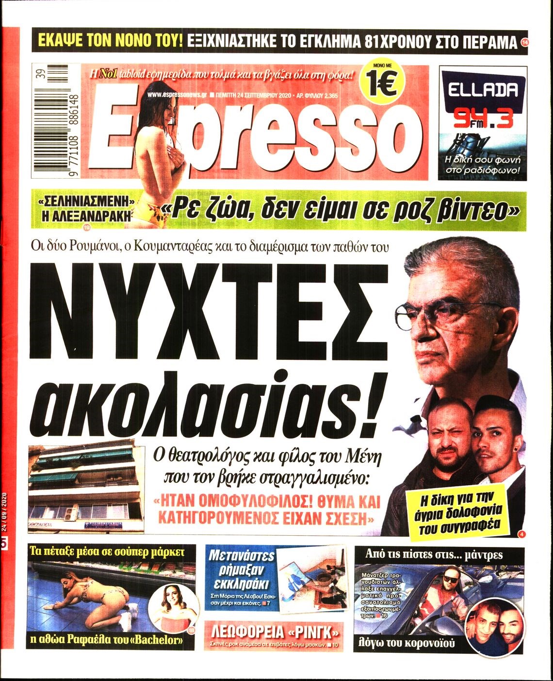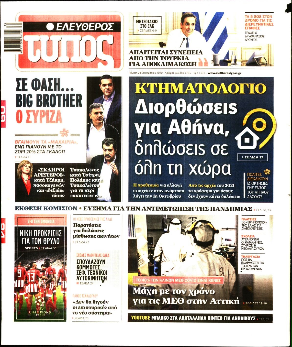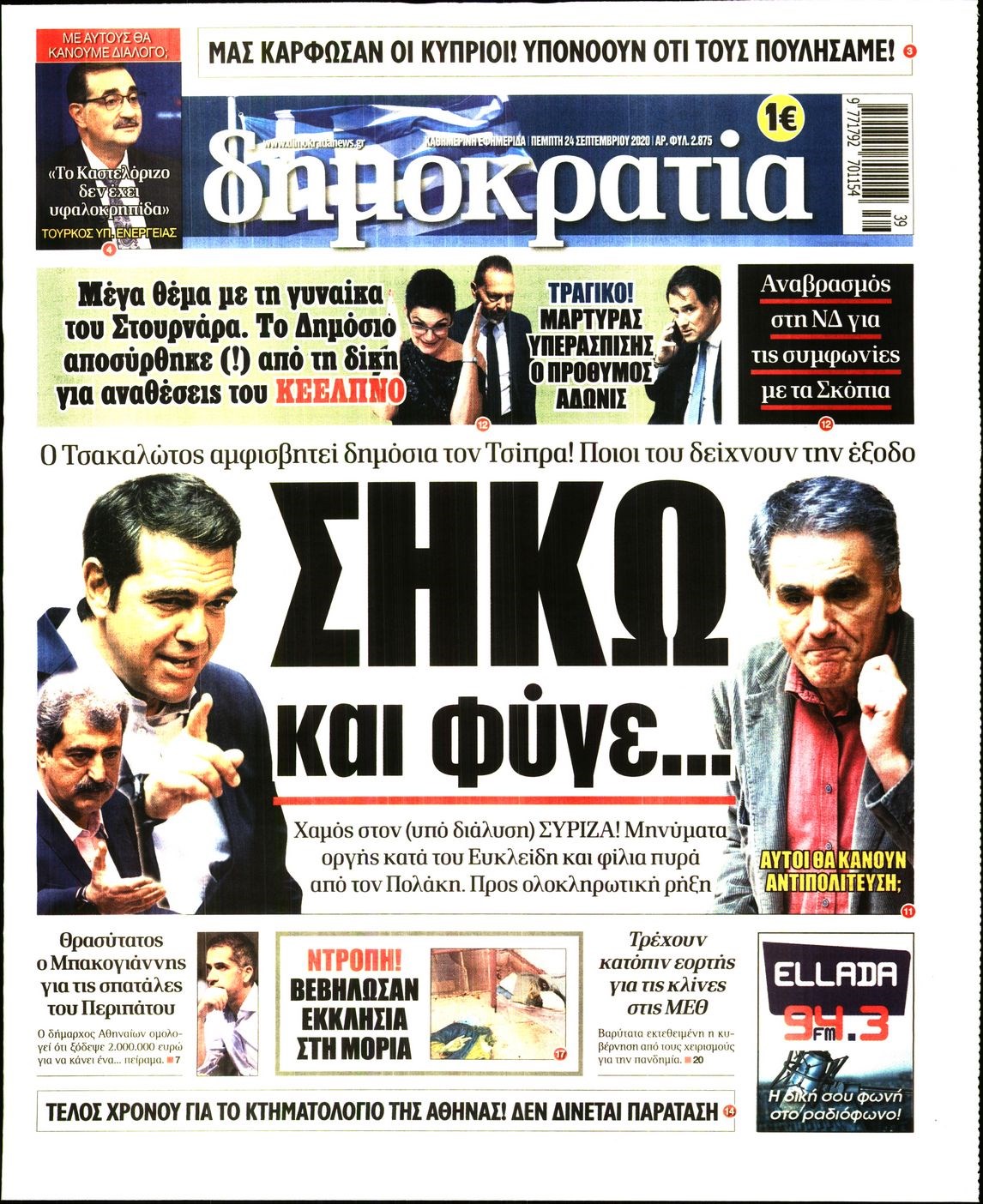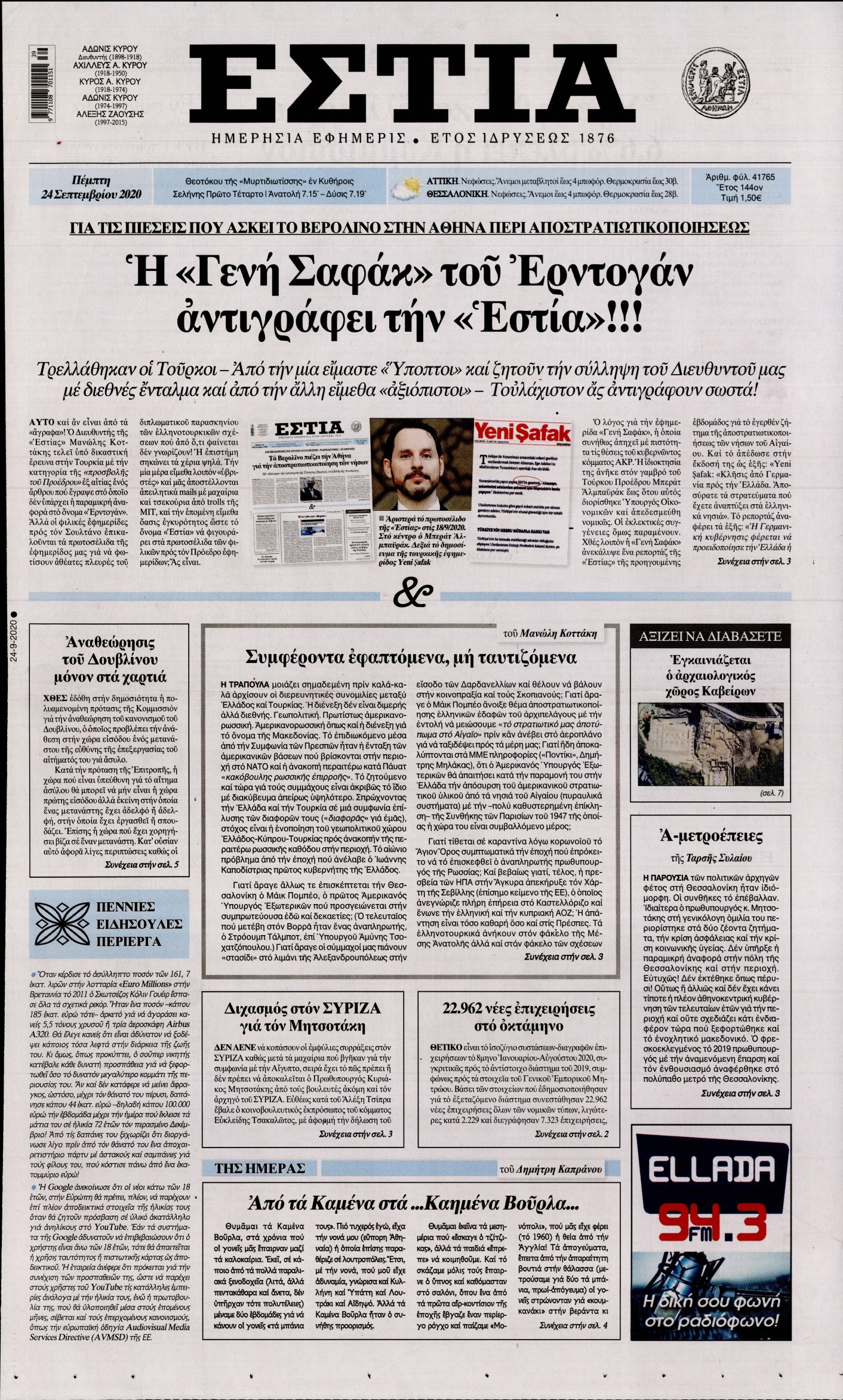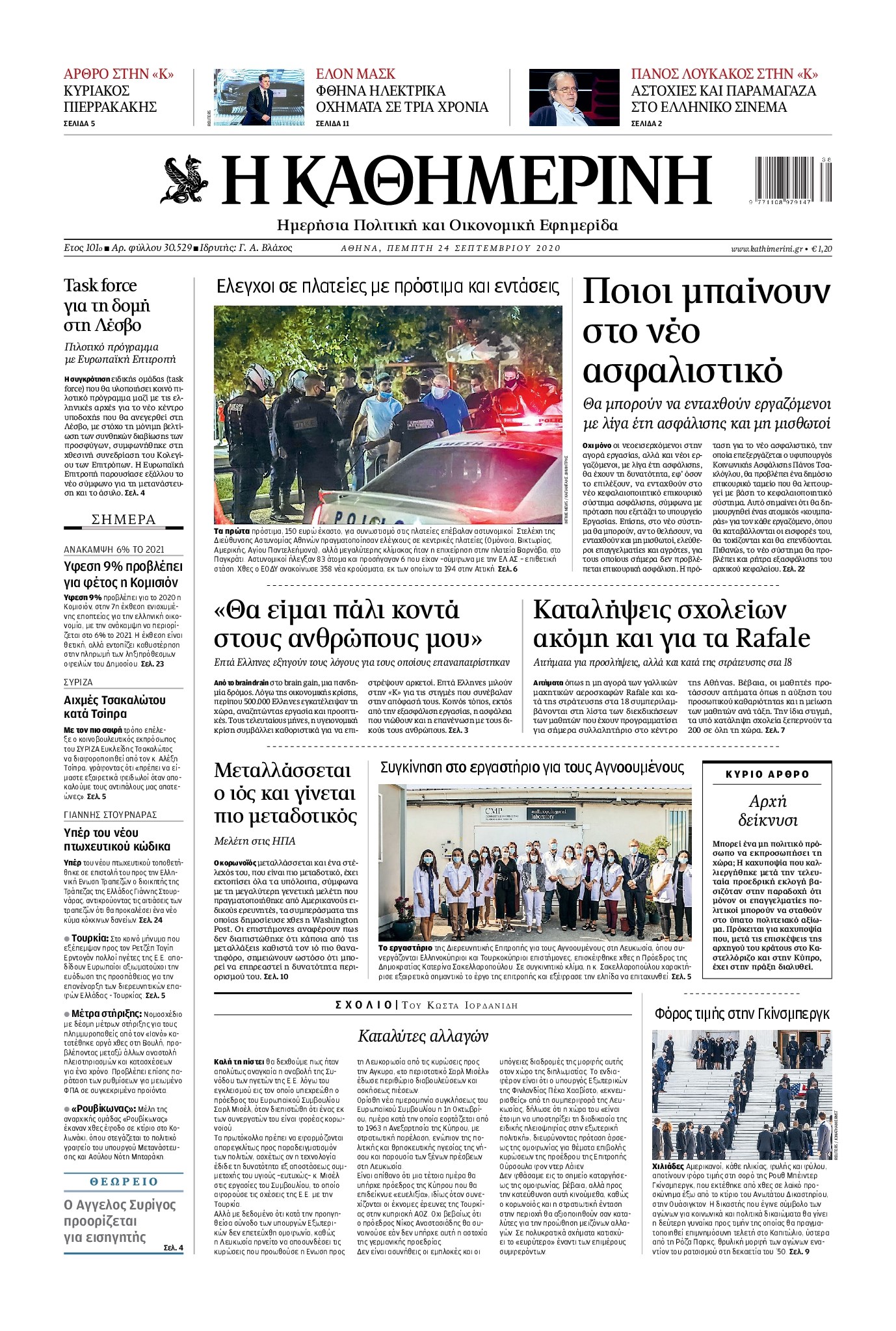 Οι πολιτικές εφημερίδες 24/9/2020 Διονύσης Νίκκας 06:02, Πέμπτη 24 Σεπτεμβρίου 2020 Media Διαβάστε τα πρωτοσέλιδα των πολιτικών εφημερίδων… ΠΟΛΙΤΙΚΕΣ ΕΦΗΜΕΡΙΔΕΣ ΠΡΩΤΟΣΕΛΙΔΑ Μοιράσου το: σχολίασε κι εσύ (0 σχόλια) Ακολουθήστε το enikos.gr στο Google News και μάθετε πρώτοι όλες τις ειδήσεις Δείτε όλες τις τελευταίες ειδήσεις από την Ελλάδα και τον Κόσμο στο enikos.gr Ειδήσεις Ροή Ειδήσεων 4 ώρες πριν Χριστούγεννα στα μπλόκα: Επιμένουν στις κινητοποιήσεις τους οι αγρότες – Ανοίγουν τα διόδια το Σαββατοκύριακο 4 ώρες πριν Ουκρανία: Η άνευ προηγουμένου επίθεση σε ρωσικό τάνκερ στη Μεσόγειο και το μήνυμα προς στον Πούτιν – Το «μακρύ χέρι» του Κιέβου 3 ώρες πριν Πούτιν: Τα μηνύματα σε Ευρώπη και ΝΑΤΟ από το μαραθώνιο «σόου» του – Η απαίτηση για «σεβασμό» και η ειρήνη «με τους όρους» της Μόσχας 4 ώρες πριν Τραμπ: Δεν αποκλείει την πιθανότητα ενός πολέμου στη Βενεζουέλα – «Ο Μαδούρο ξέρει καλύτερα από τον καθένα τι ακριβώς θέλω» 5 ώρες πριν Συνεχίζει να προκαλεί ο Μίτσκοσκι: «Για μένα το όνομα Μακεδονία είναι ιερό» 4 ώρες πριν Ανακαλύφθηκαν αρχαία χρυσά νομίσματα 2.200 ετών που απεικονίζουν τον θεό Απόλλωνα – Η άγνωστη σύνδεση με τον Φίλιππο Β΄ της Μακεδονίας 4 ώρες πριν Ύπνος: Μια κρυφή κατάσταση του εγκεφάλου πριν από τον ύπνο μπορεί να είναι το “κλειδί” για υψηλή ευφυΐα και δημιουργικότητα 5 ώρες πριν Αριθμολογία: Οι άνθρωποι που έχουν γεννηθεί αυτές τις 4 ημερομηνίες, συχνά παρεξηγούνται – «Η καλοσύνη τους κρύβει τεράστια δύναμη» 6 ώρες πριν Ξεχάστε το καθάρισμα το Σαββατοκύριακο: Ο «κανόνας των 20 λεπτών» που θα σας λύσει τα χέρια 5 λεπτά πριν Ντόναλντ Τραμπ: «Πολύ βαριά αντίποινα» στη Συρία – «Πλήττουμε πολύ δυνατά οχυρά του Ισλαμικού Κράτους» 20 λεπτά πριν Εξάρχεια: Ένταση με μολότοφ, χημικά και κρότου λάμψης 35 λεπτά πριν ΗΠΑ: Τραγωδία στην Αλαμπάμα – Σκότωσε την δημοσιογράφο σύζυγό του και αυτοκτόνησε μπροστά στον 3χρονο γιο τους 50 λεπτά πριν Πρόταση γάμου στο ΣΕΦ κατά την διάρκεια του αγώνα Ολυμπιακός-Βιλερμπάν – Δείτε βίντεο 1 ώρα πριν Euroleague: Επέστρεψε στις νίκες ο Ολυμπιακός, πήρε την ματσάρα της χρονιάς η Μπάρτσα – Τα αποτελέσματα και η βαθμολογία ENIKOS NETWORK Το ΕΚΑΒ τιμήθηκε από την Ακαδημία Αθηνών για τα 40 χρόνια προσφοράς του Έχετε πραγματικά μεγάλη καρδιά; 10 χαρακτηριστικά όσων έχουν καλοσύνη Αναστολή μέτρων αναγκαστικής εκτέλεσης για κτηνοτρόφους που πλήττονται από την ευλογιά των αιγοπροβάτων Πλήρης επάρκεια προϊόντων στις λαϊκές της Αττικής, παρά τις αγροτικές κινητοποιήσεις – Τι απαντούν οι πωλητές Χαρτογραφώντας το «σημείο χωρίς επιστροφή»: Για πρώτη φορά αποκαλύπτεται με λεπτομέρεια το ακανθώδες όριο της ατμόσφαιρας τ... Η Google καταργεί τη λειτουργία «dark web report» – Πώς θα μπορούν οι χρήστες να διαγράφουν τα δεδομένα τους περισσότερα 22:42 , Παρασκευή 19 Δεκεμβρίου 2025 Γιώργος Γιαννόπουλος για “Το σόι σου”: “Είναι ευτυχία και ευλογία αυτή η σειρά” «Είναι ευτυχία και ευλογία η συγκυρία αυτής της σειράς», θα πει ο Γιώργος Γιαννόπουλος -ο αγαπ... 20:37 , Παρασκευή 19 Δεκεμβρίου 2025 Don’t Forget The Lyrics: Η Έλλη Κοκκίνου υποδέχεται 4 παίκτες που θα κάνουν τα πάντα για να μη χάσουν ούτε… μισή λέξη από τους στίχους Το «Don’t Forget The Lyrics» επιστρέφει απόψε, Παρασκευή 19 Δεκεμβρίου, στις 21:00 με νέο επει... 19:31 , Παρασκευή 19 Δεκεμβρίου 2025 GNTM: Απόψε ο μεγάλος τελικός για τους 4 φιναλίστ Έπειτα από μήνες γεμάτους μόδα, δημιουργία και έντονες αναμετρήσεις, το GNTM 2025 κορυφώνεται,... 18:11 , Παρα