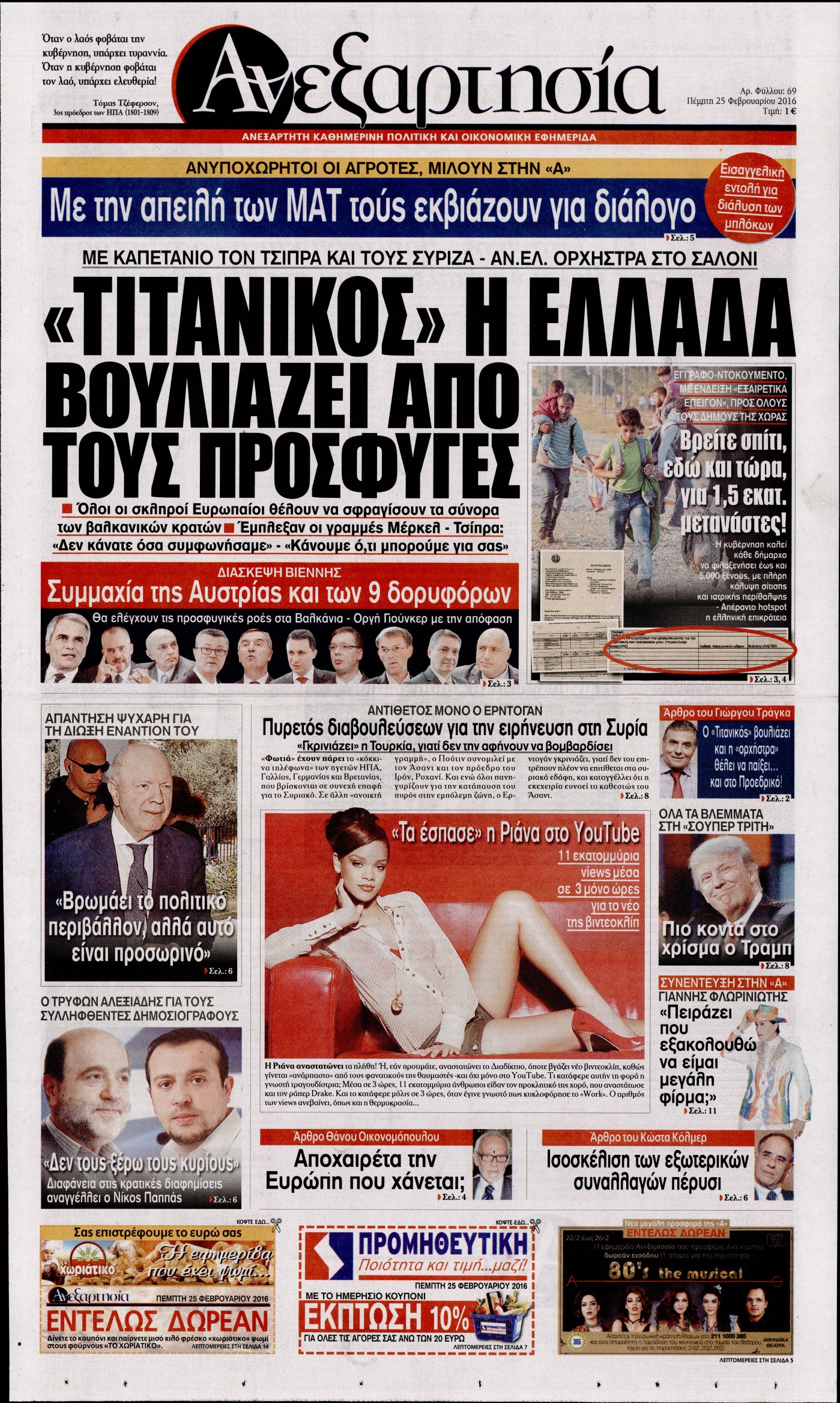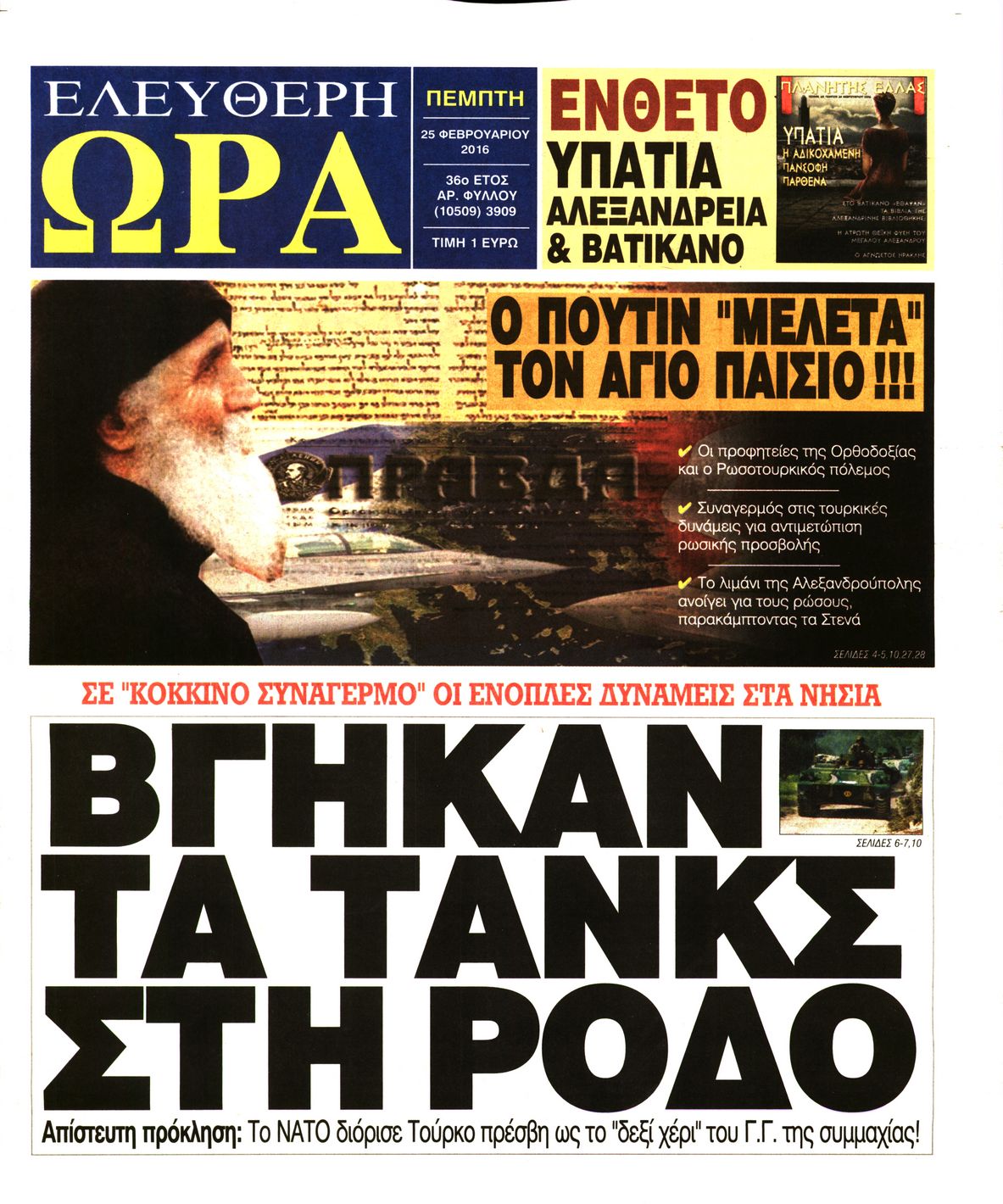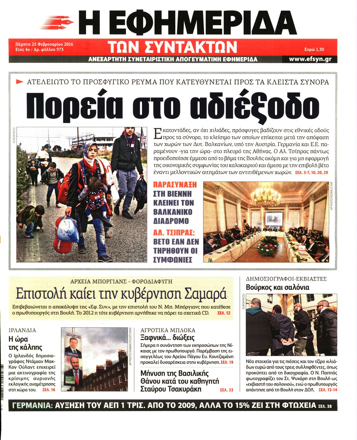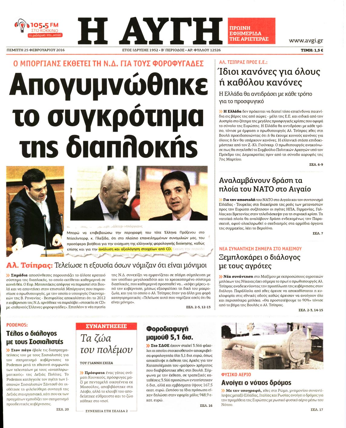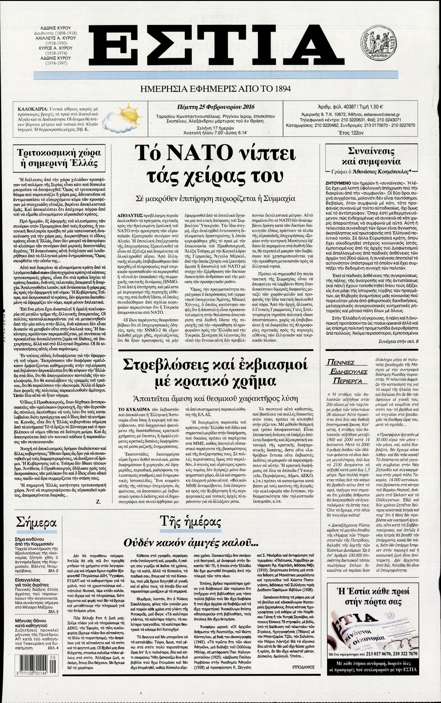 Οι πολιτικές εφημερίδες 25-2-2016 Enikos Newsroom 07:15, Πέμπτη 25 Φεβρουαρίου 2016 Media Διαβάστε τα σημερινά πρωτοσέλιδα των πολιτικών εφημερίδων ΠΟΛΙΤΙΚΕΣ ΕΦΗΜΕΡΙΔΕΣ ΠΡΩΤΟΣΕΛΙΔΑ Μοιράσου το: σχολίασε κι εσύ (0 σχόλια) Ακολουθήστε το enikos.gr στο Google News και μάθετε πρώτοι όλες τις ειδήσεις Δείτε όλες τις τελευταίες ειδήσεις από την Ελλάδα και τον Κόσμο στο enikos.gr Ειδήσεις Ροή Ειδήσεων 12 λεπτά πριν Διάλογοι-σοκ από το κύκλωμα που διακινούσε ναρκωτικά σε σχολεία – «Αν δεν είσαι εκεί σε 5 λεπτά, θα φας πολύ ξύλο μπρο» 2 ώρες πριν Αγρότες από το μπλόκο Νίκαιας κλείνουν τη Δευτέρα τις σήραγγες των Τεμπών για τα φορτηγά – Τι αποφάσισαν 4 ώρες πριν Κηφισιά: Δύο συλλήψεις για ληστεία με λεία 180.000 ευρώ – Βίντεο ντοκουμέντα από τη δράση των συλληφθέντων 1 ώρα πριν Ζελένσκι: Τάχθηκε σήμερα υπέρ της διεξαγωγής ευρύτερων διαβουλεύσεων με Ευρωπαίους εταίρους 2 ώρες πριν Θεσσαλονίκη: Με Αγιοβασίληδες γέμισε ο Θερμαϊκός στο 5ο Santa SUP 6 ώρες πριν Τα άστρα ευνοούν σκανδαλωδώς 4 ζώδια – «Εμφανίζονται ξαφνικά ευκαιρίες γιατί αποφασίζετε να αφήσετε πίσω το παρελθόν» 4 ώρες πριν Οι άνθρωποι που στρώνουν το κρεβάτι τους κάθε πρωί, διαθέτουν αυτές τις 8 κρυφές δυνάμεις 42 λεπτά πριν Ένα πλάσμα στα βάθη της θάλασσας απορροφά άνθρακα από την ατμόσφαιρα – «Δεν είχαμε ιδέα για την ύπαρξή του» 1 ημέρα πριν Enerwave: Το νέο «ρεύμα» στη λιανική ενέργειας που αλλάζει την εμπειρία του καταναλωτή 4 λεπτά πριν Σόφη Ζαννίνου: «Έκλαιγε τόσο πολύ ο Βέγγος που είπα να τον πάρουν, μην πάθει κάτι και το έχω βάρος στη συνείδησή μου» 12 λεπτά πριν Διάλογοι-σοκ από το κύκλωμα που διακινούσε ναρκωτικά σε σχολεία – «Αν δεν είσαι εκεί σε 5 λεπτά, θα φας πολύ ξύλο μπρο» 13 λεπτά πριν Νέα έρευνα: Οκτώ στους δέκα Έλληνες αγοράζουν από online πλατφόρμες χωρών εκτός ΕΕ – Temu και Shein οι κορυφαίες επιλογές 22 λεπτά πριν Αγρότες: Ανοιχτός ο Προμαχώνας για όλα τα οχήματα την Παραμονή και την ημέρα των Χριστουγέννων 27 λεπτά πριν Βελόπουλος: Ο πρωθυπουργός επαναλαμβάνει συνεχώς τα ίδια ψέματα ENIKOS NETWORK Ο εγκέφαλός μας ξεπερνά ακόμα σε εξυπνάδα το ΑΙ – Ποιο είναι αυτό στο οποίο είμαστε καλύτεροι Φοράτε ψηλοτάκουνα παπούτσια; Ποδίατροι συμβουλεύουν πόσο ψηλά επιτρέπεται να είναι και πώς να τα επιλέξετε IRIS: Διπλασιάζεται το όριο μεταφοράς χρημάτων μεταξύ ιδιωτών – Οι νέες αλλαγές και πότε θα εφαρμοστούν Η επόμενη ημέρα για τις ελληνικές τράπεζες -Τι λένε κορυφαία στελέχη του κλάδου Χαρτογραφώντας το «σημείο χωρίς επιστροφή»: Για πρώτη φορά αποκαλύπτεται με λεπτομέρεια το ακανθώδες όριο της ατμόσφαιρας τ... Η Google καταργεί τη λειτουργία «dark web report» – Πώς θα μπορούν οι χρήστες να διαγράφουν τα δεδομένα τους περισσότερα 15:08 , Κυριακή 21 Δεκεμβρίου 2025 Μια νύχτα μόνο: Η Αρετή και ο Οδυσσέας έρχονται και πάλι κοντά Το νέο επεισόδιο της δραματικής σειράς του MEGA «Μια νύχτα μόνο», θα προβληθεί απόψε Κυριακή 2... 14:24 , Κυριακή 21 Δεκεμβρίου 2025 IQ 160: Ο φάκελος με το τεστ πατρότητας ανοίγει, απόψε στις 21:00 στο Star Ανατρεπτικό το νέο διπλό επεισόδιο της σειράς “IQ 160” στις 21:00 στο Star. Ο Τηλέ... 09:43 , Κυριακή 21 Δεκεμβρίου 2025 Το λάθος στην ταινία Die Hard που άφησε άναυδους τους θαυμαστές του Μπρους Γουίλις Ένας φανατικός των ταινιών άφησε άναυδους τους θαυμαστές του Die Hard, επισημαίνοντας τρία βασ... 08:13 , Κυριακή 21 Δεκεμβρίου 2025 Άγιος έρωτας: Ένας καταστροφικός σεισμός χτυπά τη Στέρνα Καταιγιστικές είναι οι εξελίξεις στα δυο τελευταία, συγκλονιστικά επεισόδια του 2025 τ