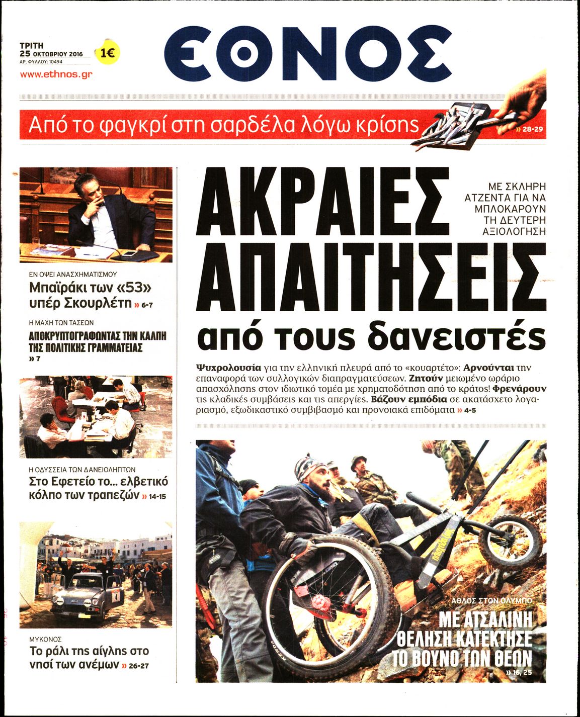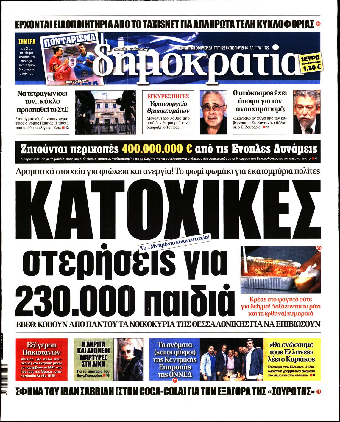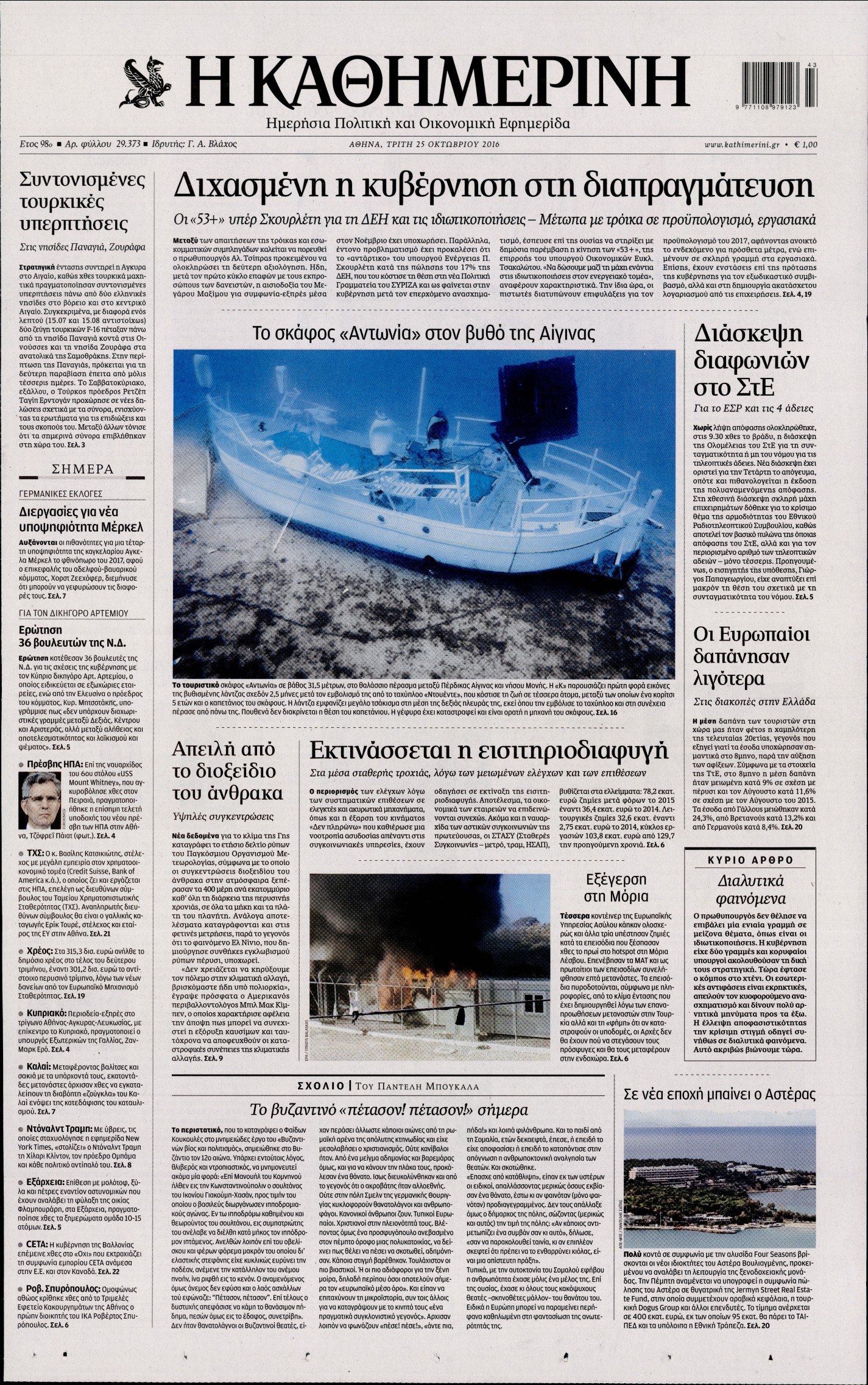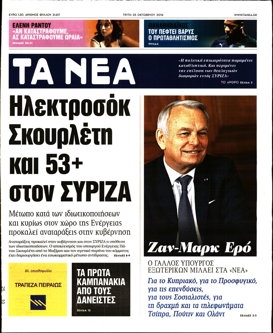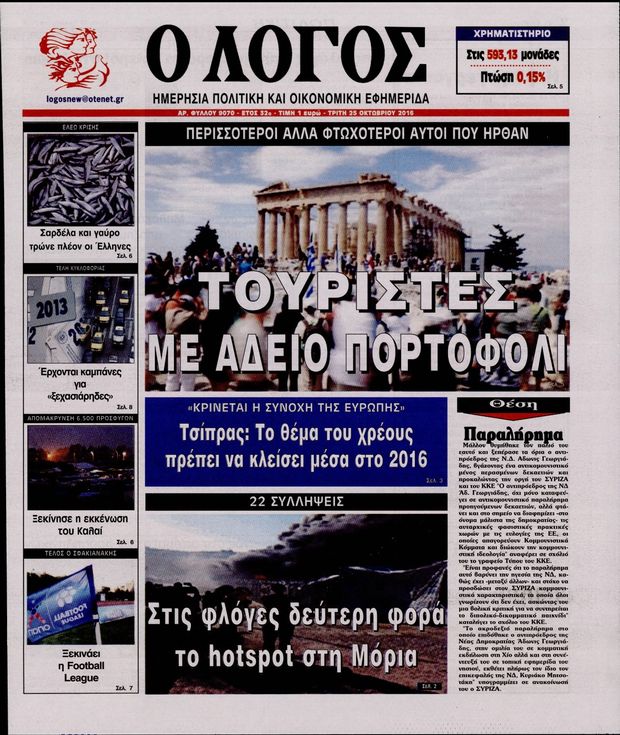 Oι πολιτικές εφημερίδες 25/10/2016 Κώστας Τεό 05:02, Τρίτη 25 Οκτωβρίου 2016 Media Διαβάστε τα σημερινά πρωτοσέλιδα των πολιτικών εφημερίδων: ΠΟΛΙΤΙΚΕΣ ΕΦΗΜΕΡΙΔΕΣ ΠΡΩΤΟΣΕΛΙΔΑ Μοιράσου το: σχολίασε κι εσύ (0 σχόλια) Ακολουθήστε το enikos.gr στο Google News και μάθετε πρώτοι όλες τις ειδήσεις Δείτε όλες τις τελευταίες ειδήσεις από την Ελλάδα και τον Κόσμο στο enikos.gr Ειδήσεις Ροή Ειδήσεων 3 ώρες πριν Αυξάνουν την πίεση προς την κυβέρνηση οι αγρότες: Κλείνουν παρακαμπτήριους και ανοίγουν διόδια – Τι θα γίνει τις γιορτές 2 ώρες πριν ΟΠΕΚΕΠΕ: Προφυλακιστέος ο φερόμενος αρχηγός και ο λογιστής της εγκληματικής οργάνωσης 3 ώρες πριν Φοινικούντα: Το Σάββατο απολογείται ο 30χρονος γιος γνωστού επιχειρηματία της Πλάκας που παραδόθηκε – Όσα είπε στους αστυνομικούς και ο ρόλος του στο έγκλημα 3 ώρες πριν Μπορεί ο Μαδούρο να αντέξει τον αποκλεισμό του Τραμπ; Τι θα χρειαστεί η Ουάσινγκτον για να τον ανατρέψει 4 ώρες πριν Πρίγκιπας Ουίλιαμ – Κέιτ: Η νέα οικογενειακή φωτογραφία για τις Χριστουγεννιάτικες κάρτες του 2025 4 ώρες πριν Ύπνος: Η απλή βραδινή ρουτίνα για να προστατεύσετε τα μαλλιά σας από το κρύο κατά τη διάρκεια του χειμώνα 5 ώρες πριν Manifesting: Πώς να συναντήσετε τον σύντροφο της ζωής σας, ανάλογα με τον μήνα γέννησής σας 2 ημέρες πριν 20 χρόνια τα Χριστούγεννα ξεκινούν στα Public με μεγάλη ποικιλία σε δώρα! 3 ώρες πριν Αρχαιολόγοι ανακάλυψαν ρωμαϊκά τεχνουργήματα από μια πόλη που δεν υπήρξε ποτέ – Τα τρία εντυπωσιακά κτίρια και ο αμφορέας με τις… σαρδέλες 6 λεπτά πριν Μάρκο Νίκολιτς: «Είμαι περήφανος για τους παίκτες μου, όποιος αντίπαλος και να έρθει θα προετοιμαστούμε» 15 λεπτά πριν ΟΗΕ: Την εκλογή του νέου ύπατου αρμοστή για τους Πρόσφυγες Μπαρχάμ Άχμεντ Σαλίχ χαιρέτησε ο Αντόνιο Γκουτέρες 19 λεπτά πριν Σύνοδος Κορυφής στις Βρυξέλλες: Ακόμη πιο κοντά σε διέξοδο για τη χρηματοδότηση της Ουκρανίας 28 λεπτά πριν ΟΗΕ: Iστορική επίσκεψη του Συμβουλίου Ασφαλείας στη Δαμασκό – Mήνυμα Ελλάδας για συμπερίληψη και λογοδοσία 35 λεπτά πριν Νέος πρέσβης της Μεγάλης Βρετανίας στις ΗΠΑ ο Κρίστιαν Τέρνερ ENIKOS NETWORK Σε περίοδο αυξημένης δραστηριότητας η γρίπη στην Ελλάδα-Μέτρα προστασίας από τον ΕΟΔΥ Σκέφτεστε συνέχεια συζητήσεις που έχετε κάνει; Τι σημαίνει αυτό, σύμφωνα με ειδικό Στεγαστικό: Τι λέει η ΠΟΜΙΔΑ για τα νέα μέτρα που ανακοίνωσε ο Κυριάκος Μητσοτάκης Λαγκάρντ: Αισιόδοξη για την ανάπτυξη της Ευρωζώνης, αβέβαιη για τον πληθωρισμό Χαρτογραφώντας το «σημείο χωρίς επιστροφή»: Για πρώτη φορά αποκαλύπτεται με λεπτομέρεια το ακανθώδες όριο της ατμόσφαιρας τ... Η Google καταργεί τη λειτουργία «dark web report» – Πώς θα μπορούν οι χρήστες να διαγράφουν τα δεδομένα τους περισσότερα 17:45 , Πέμπτη 18 Δεκεμβρίου 2025 ROUK ZOUK: Εορταστικό επεισόδιο με καλεσμένους τους πρωταγωνιστές του «Γιατί ρε πατέρα» Το Σάββατο 20 Δεκεμβρίου στις 21:00, η Ζέτα Μακρυπούλια υποδέχεται εκλεκτούς ηθοποιούς που όλο... 17:20 , Πέμπτη 18 Δεκεμβρίου 2025 Άγιος έρωτας: Η Χριστίνα εξομολογείται στον πατέρα Νικόλαο, απόψε στις 21:00 στον Alpha Η Νότα αποφασίζει να εκδικηθεί τον Πέτρο και τον Στέφανο, για χάρη του Λούη, όμως τα πράγματα ... 16:50 , Πέμπτη 18 Δεκεμβρίου 2025 Να μ’ αγαπάς: Ζωή και Φωτεινή συμφιλιώνονται ως μάνα με κόρη, απόψε στις 20:00 Η ταυτότητα του Άγγελου αποκαλύπτεται στο νέο επεισόδιο της σειράς “Να μ’ αγαπάς... 15:52 , Πέμπτη 18 Δεκεμβρίου 2025 Το Σπίτι Δίπλα Στο Ποτάμι: Το καθηλωτικό τελευταίο επεισόδιο για το 2025 απόψε στις 22:30 Καθηλώνει το 