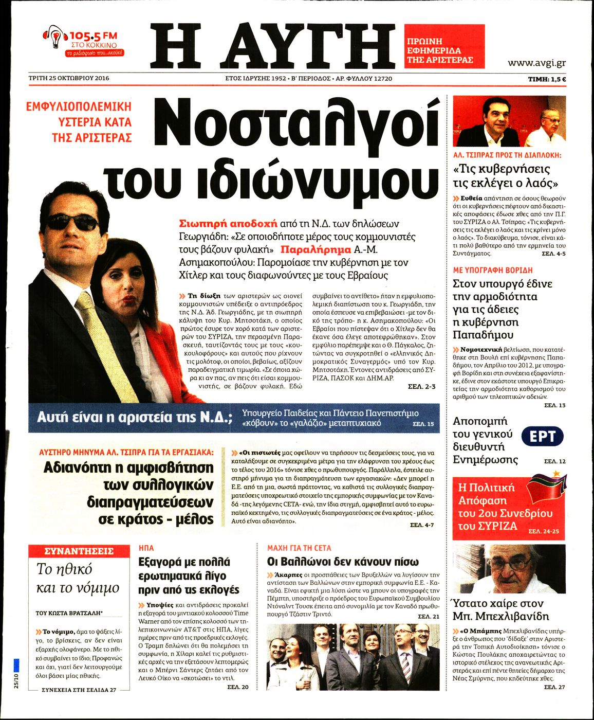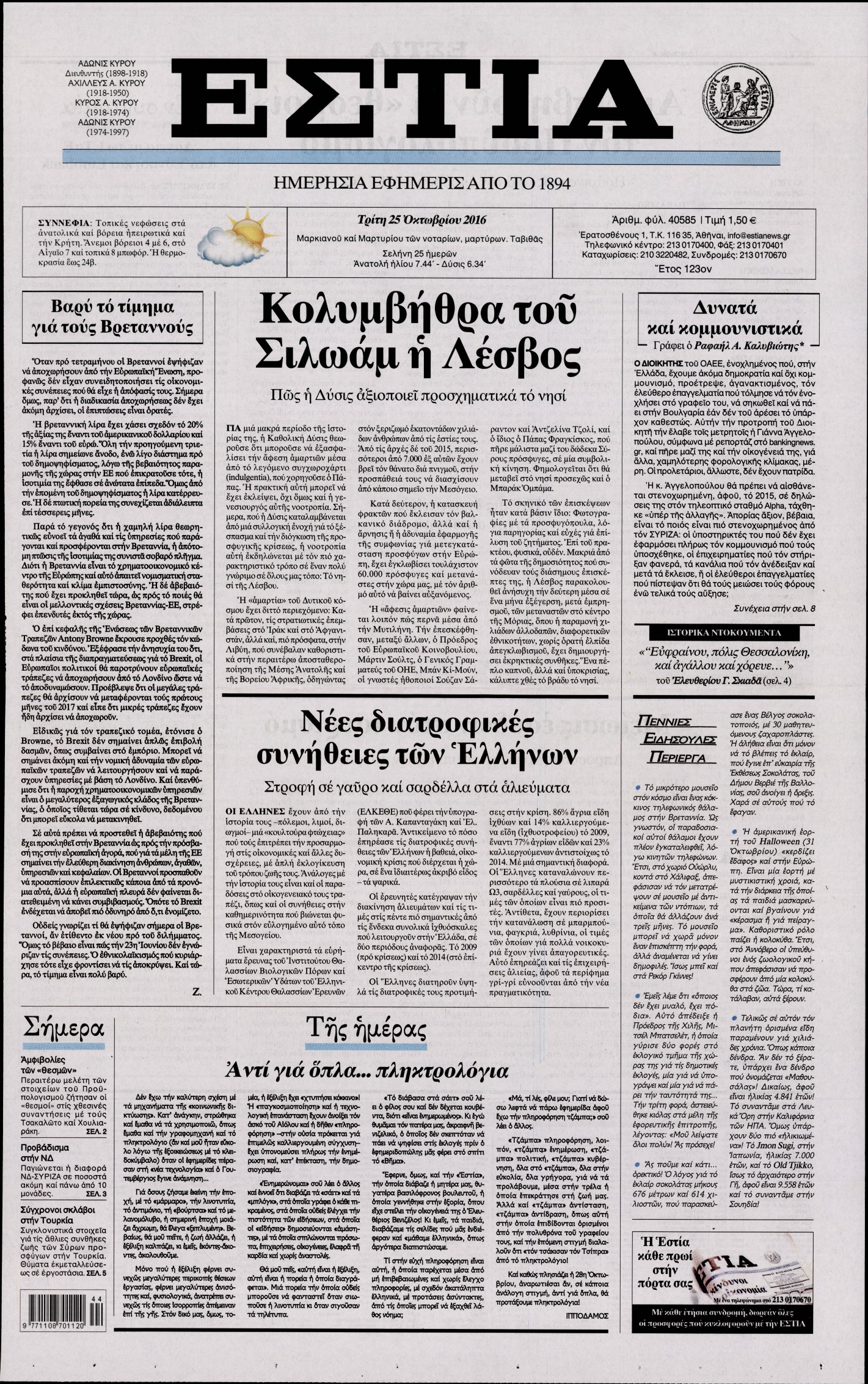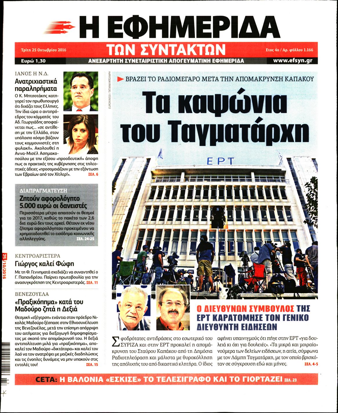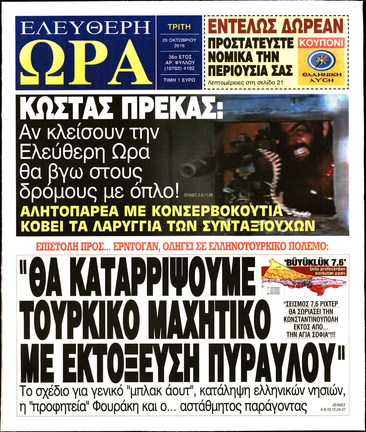 Oι πολιτικές εφημερίδες 25/10/2016 Κώστας Τεό 05:02, Τρίτη 25 Οκτωβρίου 2016 Media Διαβάστε τα σημερινά πρωτοσέλιδα των πολιτικών εφημερίδων: ΠΟΛΙΤΙΚΕΣ ΕΦΗΜΕΡΙΔΕΣ ΠΡΩΤΟΣΕΛΙΔΑ Μοιράσου το: σχολίασε κι εσύ (0 σχόλια) Ακολουθήστε το enikos.gr στο Google News και μάθετε πρώτοι όλες τις ειδήσεις Δείτε όλες τις τελευταίες ειδήσεις από την Ελλάδα και τον Κόσμο στο enikos.gr Ειδήσεις Ροή Ειδήσεων 3 ώρες πριν Αυξάνουν την πίεση προς την κυβέρνηση οι αγρότες: Κλείνουν παρακαμπτήριους και ανοίγουν διόδια – Τι θα γίνει τις γιορτές 2 ώρες πριν ΟΠΕΚΕΠΕ: Προφυλακιστέος ο φερόμενος αρχηγός και ο λογιστής της εγκληματικής οργάνωσης 3 ώρες πριν Φοινικούντα: Το Σάββατο απολογείται ο 30χρονος γιος γνωστού επιχειρηματία της Πλάκας που παραδόθηκε – Όσα είπε στους αστυνομικούς και ο ρόλος του στο έγκλημα 3 ώρες πριν Μπορεί ο Μαδούρο να αντέξει τον αποκλεισμό του Τραμπ; Τι θα χρειαστεί η Ουάσινγκτον για να τον ανατρέψει 4 ώρες πριν Πρίγκιπας Ουίλιαμ – Κέιτ: Η νέα οικογενειακή φωτογραφία για τις Χριστουγεννιάτικες κάρτες του 2025 4 ώρες πριν Ύπνος: Η απλή βραδινή ρουτίνα για να προστατεύσετε τα μαλλιά σας από το κρύο κατά τη διάρκεια του χειμώνα 5 ώρες πριν Manifesting: Πώς να συναντήσετε τον σύντροφο της ζωής σας, ανάλογα με τον μήνα γέννησής σας 2 ημέρες πριν 20 χρόνια τα Χριστούγεννα ξεκινούν στα Public με μεγάλη ποικιλία σε δώρα! 3 ώρες πριν Αρχαιολόγοι ανακάλυψαν ρωμαϊκά τεχνουργήματα από μια πόλη που δεν υπήρξε ποτέ – Τα τρία εντυπωσιακά κτίρια και ο αμφορέας με τις… σαρδέλες 6 λεπτά πριν Μάρκο Νίκολιτς: «Είμαι περήφανος για τους παίκτες μου, όποιος αντίπαλος και να έρθει θα προετοιμαστούμε» 15 λεπτά πριν ΟΗΕ: Την εκλογή του νέου ύπατου αρμοστή για τους Πρόσφυγες Μπαρχάμ Άχμεντ Σαλίχ χαιρέτησε ο Αντόνιο Γκουτέρες 19 λεπτά πριν Σύνοδος Κορυφής στις Βρυξέλλες: Ακόμη πιο κοντά σε διέξοδο για τη χρηματοδότηση της Ουκρανίας 28 λεπτά πριν ΟΗΕ: Iστορική επίσκεψη του Συμβουλίου Ασφαλείας στη Δαμασκό – Mήνυμα Ελλάδας για συμπερίληψη και λογοδοσία 35 λεπτά πριν Νέος πρέσβης της Μεγάλης Βρετανίας στις ΗΠΑ ο Κρίστιαν Τέρνερ ENIKOS NETWORK Σε περίοδο αυξημένης δραστηριότητας η γρίπη στην Ελλάδα-Μέτρα προστασίας από τον ΕΟΔΥ Σκέφτεστε συνέχεια συζητήσεις που έχετε κάνει; Τι σημαίνει αυτό, σύμφωνα με ειδικό Στεγαστικό: Τι λέει η ΠΟΜΙΔΑ για τα νέα μέτρα που ανακοίνωσε ο Κυριάκος Μητσοτάκης Λαγκάρντ: Αισιόδοξη για την ανάπτυξη της Ευρωζώνης, αβέβαιη για τον πληθωρισμό Χαρτογραφώντας το «σημείο χωρίς επιστροφή»: Για πρώτη φορά αποκαλύπτεται με λεπτομέρεια το ακανθώδες όριο της ατμόσφαιρας τ... Η Google καταργεί τη λειτουργία «dark web report» – Πώς θα μπορούν οι χρήστες να διαγράφουν τα δεδομένα τους περισσότερα 17:45 , Πέμπτη 18 Δεκεμβρίου 2025 ROUK ZOUK: Εορταστικό επεισόδιο με καλεσμένους τους πρωταγωνιστές του «Γιατί ρε πατέρα» Το Σάββατο 20 Δεκεμβρίου στις 21:00, η Ζέτα Μακρυπούλια υποδέχεται εκλεκτούς ηθοποιούς που όλο... 17:20 , Πέμπτη 18 Δεκεμβρίου 2025 Άγιος έρωτας: Η Χριστίνα εξομολογείται στον πατέρα Νικόλαο, απόψε στις 21:00 στον Alpha Η Νότα αποφασίζει να εκδικηθεί τον Πέτρο και τον Στέφανο, για χάρη του Λούη, όμως τα πράγματα ... 16:50 , Πέμπτη 18 Δεκεμβρίου 2025 Να μ’ αγαπάς: Ζωή και Φωτεινή συμφιλιώνονται ως μάνα με κόρη, απόψε στις 20:00 Η ταυτότητα του Άγγελου αποκαλύπτεται στο νέο επεισόδιο της σειράς “Να μ’ αγαπάς... 15:52 , Πέμπτη 18 Δεκεμβρίου 2025 Το Σπίτι Δίπλα Στο Ποτάμι: Το καθηλωτικό τελευταίο επεισόδιο για το 2025 απόψε στις 22:30 Καθηλώνει το 