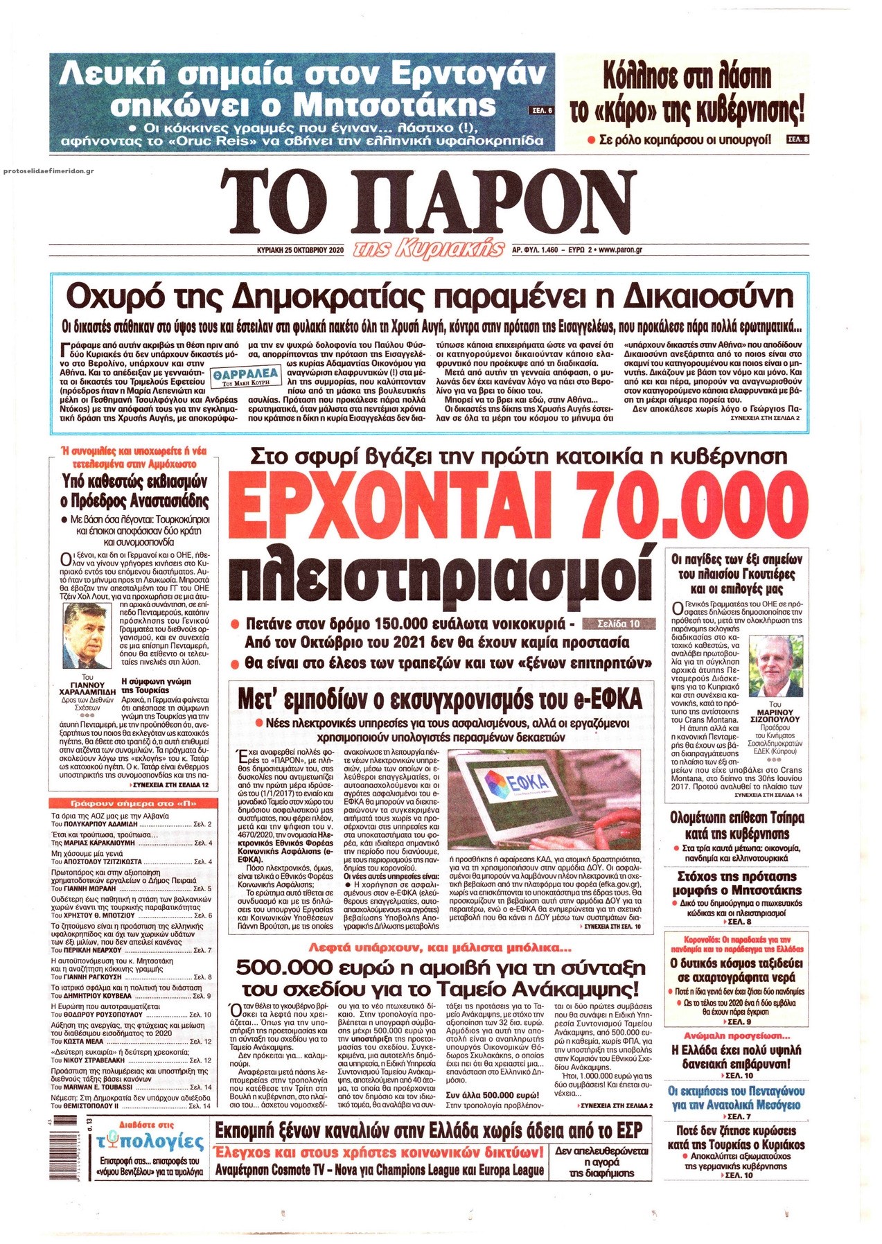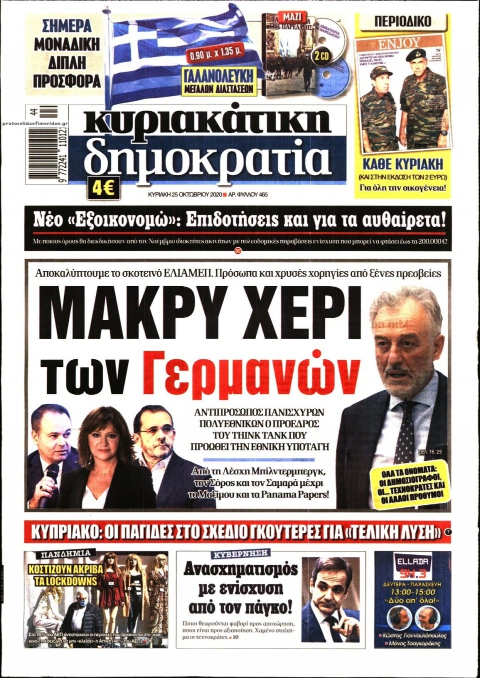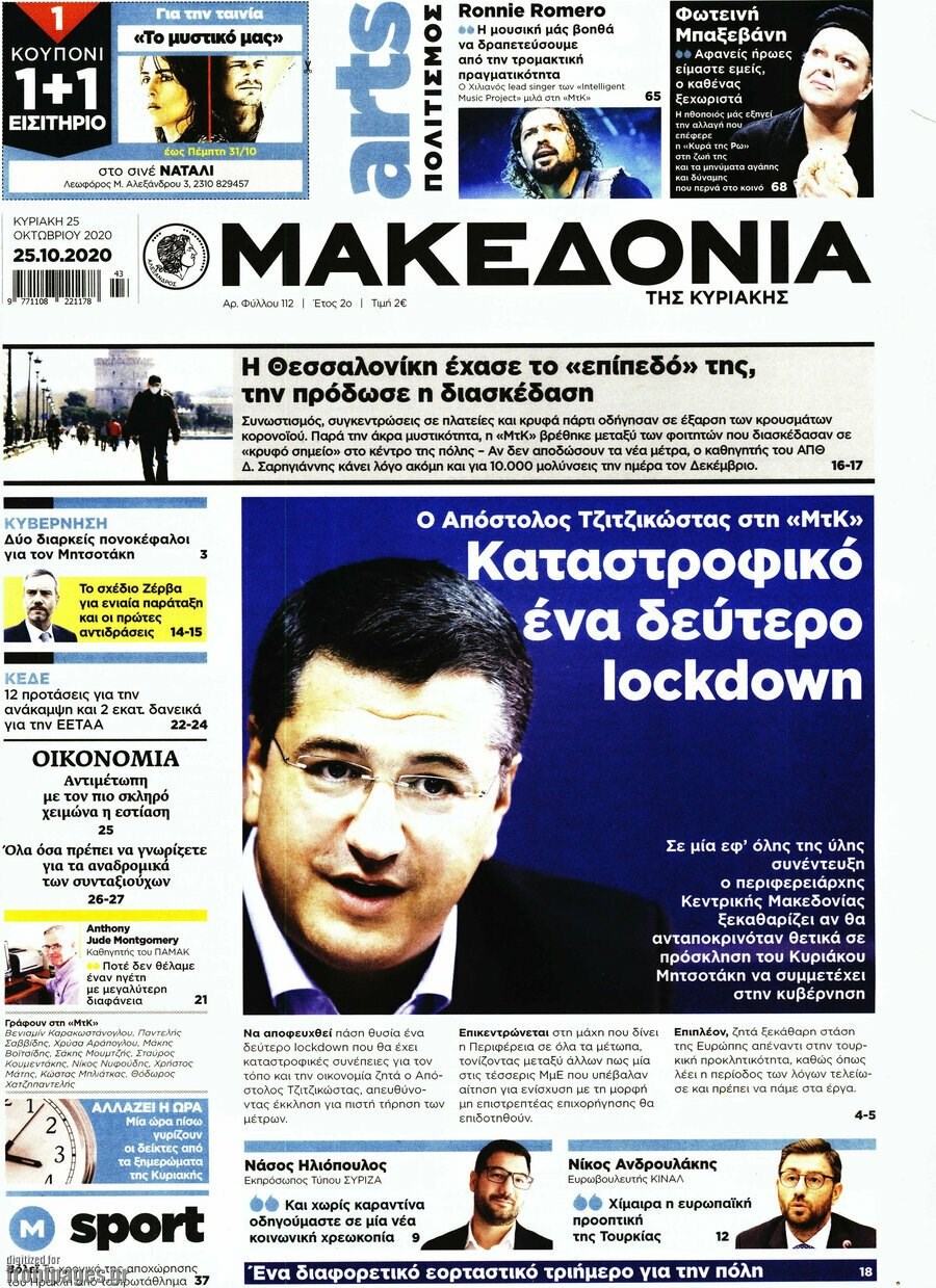 Οι πολιτικές εφημερίδες 25/10/2020 Σήφης Γαρυφαλάκης 07:35, Κυριακή 25 Οκτωβρίου 2020 Media Διαβάστε τα πρωτοσέλιδα των πολιτικών εφημερίδων… ΕΦΗΜΕΡΙΔΕΣ ΠΟΛΙΤΙΚΕΣ ΕΦΗΜΕΡΙΔΕΣ ΠΡΩΤΟΣΕΛΙΔΑ ΠΡΩΤΟΣΕΛΙΔΑ ΕΦΗΜΕΡΙΔΩΝ Μοιράσου το: σχολίασε κι εσύ (0 σχόλια) Ακολουθήστε το enikos.gr στο Google News και μάθετε πρώτοι όλες τις ειδήσεις Δείτε όλες τις τελευταίες ειδήσεις από την Ελλάδα και τον Κόσμο στο enikos.gr Ειδήσεις Ροή Ειδήσεων 3 ώρες πριν Από το Ορμένιο ως τα Μάλγαρα κι από τη Σιάτιστα μέχρι τη Νίκαια: Μπλόκα σε όλη την Ελλάδα – Το Σάββατο ανοίγουν τα διόδια οι αγρότες 49 λεπτά πριν Εμπλοκή και αερομαχίες με οπλισμένα τουρκικά F-16 στο Αιγαίο 2 ώρες πριν Αττική: Θρίλερ με νεκρό βρέφος 5 μηνών – Κοιμόταν στο ίδιο κρεβάτι με τους γονείς του 39 λεπτά πριν Πούτιν: «Ναι, είμαι ερωτευμένος» – Βίντεο από τη σπάνια προσωπική παραδοχή του 3 ώρες πριν Μεσόγειος: Η διαδρομή του ρωσικού τάνκερ «Qendil» και η στοχευμένη επίθεση της Ουκρανίας με drone – Ο Πούτιν προειδοποίησε για αντίποινα 4 ώρες πριν Τα 5 ζώδια που ευνοούνται στην ερωτική ζωή τους την επόμενη εβδομάδα – «Η ενέργεια του Αιγόκερου φέρνει αγάπη και σταθερότητα» 5 ώρες πριν Αυτό το έξυπνο μαθηματικό κόλπο θα μπορούσε να αλλάξει τον τρόπο με τον οποίο οι επιστήμονες μελετούν τους σεισμούς 1 ώρα πριν Μήπως έχετε χάσει τον εαυτό σας στη σχέση σας; 7 «αθόρυβες» υποχωρήσεις που μάλλον κάνατε, χωρίς να το συνειδητοποιήσετε 3 ώρες πριν Κουίζ για την παλιά Αθήνα: Αναγνωρίζετε την περιοχή; Έχετε περάσει 100% από εκεί 46 δευτερόλεπτα πριν Η εξομολόγηση της Νίκης Σερέτη: «Δεν κρύβω ότι ήταν πάρα πολύ δύσκολο όλο αυτό που βίωσα» 6 λεπτά πριν Αγρότες: Κλειστό ξανά το ρεύμα εισόδου στα Μάλγαρα – Άνοιξαν τον κόμβο της Χαλκηδόνας 11 λεπτά πριν Νίκος Γιαννόπουλος: «Μου επιτέθηκε ο Παππάς – Ήμουν νηφάλιος, δεν τον προκάλεσα» – ΒΙΝΤΕΟ 19 λεπτά πριν Γιώργος Τράγκας: Ανατροπή από το Πριγκιπάτο του Μονακό για την υπόθεση της κληρονομιάς – Η ανακοίνωση της δικηγόρου της Μαρίας Καρρά 27 λεπτά πριν Ξεχάστε το καθάρισμα το Σαββατοκύριακο: Ο «κανόνας των 20 λεπτών» που θα σας λύσει τα χέρια ENIKOS NETWORK Έχετε πραγματικά μεγάλη καρδιά; 10 χαρακτηριστικά όσων έχουν καλοσύνη «Η σούπερ» γρίπη εξαπλώνεται στην Ευρώπη-Στοιχεία από το ECDC για την αποτελεσματικότητα του εμβολίου Επίδομα παιδιού: Πότε ανοίγει ξανά η πλατφόρμα για τις αιτήσεις Προκήρυξη ΑΣΕΠ για 397 μόνιμες προσλήψεις στο Δημόσιο: Βγήκαν τα προσωρινά αποτελέσματα – Πότε αρχίζει η υποβολή ενστάσεων Χαρτογραφώντας το «σημείο χωρίς επιστροφή»: Για πρώτη φορά αποκαλύπτεται με λεπτομέρεια το ακανθώδες όριο της ατμόσφαιρας τ... Η Google καταργεί τη λειτουργία «dark web report» – Πώς θα μπορούν οι χρήστες να διαγράφουν τα δεδομένα τους περισσότερα 19:31 , Παρασκευή 19 Δεκεμβρίου 2025 GNTM: Απόψε ο μεγάλος τελικός για τους 4 φιναλίστ Έπειτα από μήνες γεμάτους μόδα, δημιουργία και έντονες αναμετρήσεις, το GNTM 2025 κορυφώνεται,... 18:11 , Παρασκευή 19 Δεκεμβρίου 2025 Το σόι σου: Ο Άρης έρχεται στην Ελλάδα για τις γιορτές των Χριστουγέννων – Τι θα δούμε στο αποψινό εορταστικό επεισόδιο Ένα απολαυστικό, εορταστικό επεισόδιο της σειράς “Το σόι σου”, γεμάτο ευτράπελα αλ... 15:15 , Παρασκευή 19 Δεκεμβρίου 2025 Την Κυριακή με τη Realnews: Ό,τι και αν αγοράσεις, σκανάρεις και κερδίζεις! Την Κυριακή με τη Realnews: Ό,τι και αν αγοράσεις, σκανάρεις και κερδίζεις! Με το PADU app, το... 08:00 , Παρασκευή 19 Δεκεμβρίου 2025 Την Κυριακή με τη Realnews: Δωροεπιταγή 10€ Δωροεπιταγή αξίας 10€ 