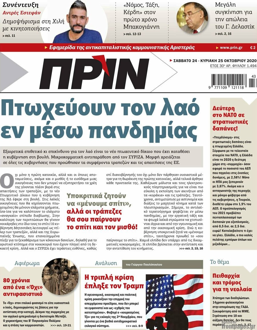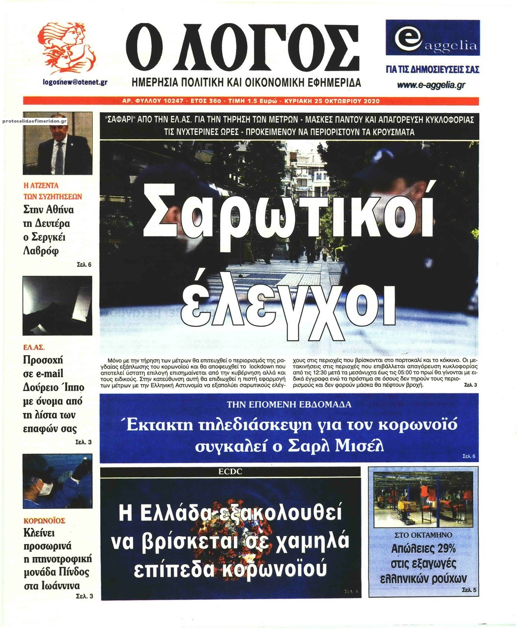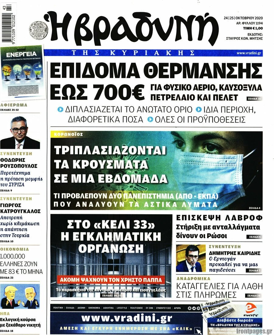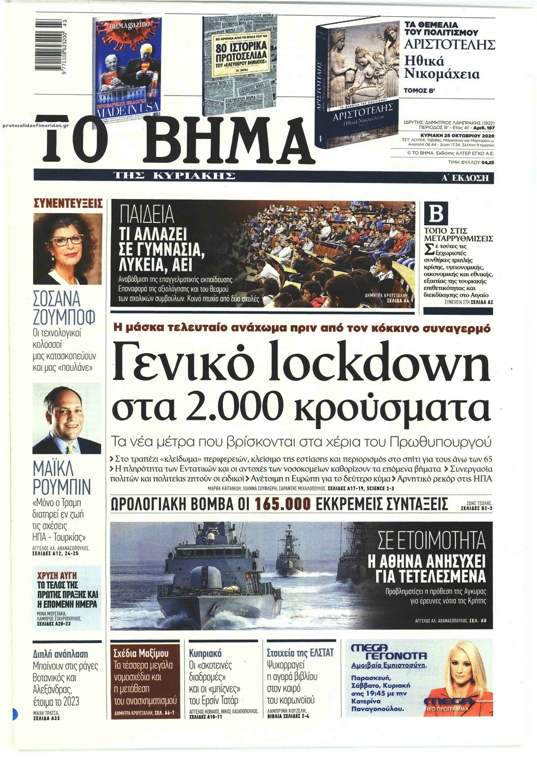 Οι πολιτικές εφημερίδες 25/10/2020 Σήφης Γαρυφαλάκης 07:35, Κυριακή 25 Οκτωβρίου 2020 Media Διαβάστε τα πρωτοσέλιδα των πολιτικών εφημερίδων… ΕΦΗΜΕΡΙΔΕΣ ΠΟΛΙΤΙΚΕΣ ΕΦΗΜΕΡΙΔΕΣ ΠΡΩΤΟΣΕΛΙΔΑ ΠΡΩΤΟΣΕΛΙΔΑ ΕΦΗΜΕΡΙΔΩΝ Μοιράσου το: σχολίασε κι εσύ (0 σχόλια) Ακολουθήστε το enikos.gr στο Google News και μάθετε πρώτοι όλες τις ειδήσεις Δείτε όλες τις τελευταίες ειδήσεις από την Ελλάδα και τον Κόσμο στο enikos.gr Ειδήσεις Ροή Ειδήσεων 3 ώρες πριν Από το Ορμένιο ως τα Μάλγαρα κι από τη Σιάτιστα μέχρι τη Νίκαια: Μπλόκα σε όλη την Ελλάδα – Το Σάββατο ανοίγουν τα διόδια οι αγρότες 49 λεπτά πριν Εμπλοκή και αερομαχίες με οπλισμένα τουρκικά F-16 στο Αιγαίο 2 ώρες πριν Αττική: Θρίλερ με νεκρό βρέφος 5 μηνών – Κοιμόταν στο ίδιο κρεβάτι με τους γονείς του 39 λεπτά πριν Πούτιν: «Ναι, είμαι ερωτευμένος» – Βίντεο από τη σπάνια προσωπική παραδοχή του 3 ώρες πριν Μεσόγειος: Η διαδρομή του ρωσικού τάνκερ «Qendil» και η στοχευμένη επίθεση της Ουκρανίας με drone – Ο Πούτιν προειδοποίησε για αντίποινα 4 ώρες πριν Τα 5 ζώδια που ευνοούνται στην ερωτική ζωή τους την επόμενη εβδομάδα – «Η ενέργεια του Αιγόκερου φέρνει αγάπη και σταθερότητα» 5 ώρες πριν Αυτό το έξυπνο μαθηματικό κόλπο θα μπορούσε να αλλάξει τον τρόπο με τον οποίο οι επιστήμονες μελετούν τους σεισμούς 1 ώρα πριν Μήπως έχετε χάσει τον εαυτό σας στη σχέση σας; 7 «αθόρυβες» υποχωρήσεις που μάλλον κάνατε, χωρίς να το συνειδητοποιήσετε 3 ώρες πριν Κουίζ για την παλιά Αθήνα: Αναγνωρίζετε την περιοχή; Έχετε περάσει 100% από εκεί 46 δευτερόλεπτα πριν Η εξομολόγηση της Νίκης Σερέτη: «Δεν κρύβω ότι ήταν πάρα πολύ δύσκολο όλο αυτό που βίωσα» 6 λεπτά πριν Αγρότες: Κλειστό ξανά το ρεύμα εισόδου στα Μάλγαρα – Άνοιξαν τον κόμβο της Χαλκηδόνας 11 λεπτά πριν Νίκος Γιαννόπουλος: «Μου επιτέθηκε ο Παππάς – Ήμουν νηφάλιος, δεν τον προκάλεσα» – ΒΙΝΤΕΟ 19 λεπτά πριν Γιώργος Τράγκας: Ανατροπή από το Πριγκιπάτο του Μονακό για την υπόθεση της κληρονομιάς – Η ανακοίνωση της δικηγόρου της Μαρίας Καρρά 27 λεπτά πριν Ξεχάστε το καθάρισμα το Σαββατοκύριακο: Ο «κανόνας των 20 λεπτών» που θα σας λύσει τα χέρια ENIKOS NETWORK Έχετε πραγματικά μεγάλη καρδιά; 10 χαρακτηριστικά όσων έχουν καλοσύνη «Η σούπερ» γρίπη εξαπλώνεται στην Ευρώπη-Στοιχεία από το ECDC για την αποτελεσματικότητα του εμβολίου Επίδομα παιδιού: Πότε ανοίγει ξανά η πλατφόρμα για τις αιτήσεις Προκήρυξη ΑΣΕΠ για 397 μόνιμες προσλήψεις στο Δημόσιο: Βγήκαν τα προσωρινά αποτελέσματα – Πότε αρχίζει η υποβολή ενστάσεων Χαρτογραφώντας το «σημείο χωρίς επιστροφή»: Για πρώτη φορά αποκαλύπτεται με λεπτομέρεια το ακανθώδες όριο της ατμόσφαιρας τ... Η Google καταργεί τη λειτουργία «dark web report» – Πώς θα μπορούν οι χρήστες να διαγράφουν τα δεδομένα τους περισσότερα 19:31 , Παρασκευή 19 Δεκεμβρίου 2025 GNTM: Απόψε ο μεγάλος τελικός για τους 4 φιναλίστ Έπειτα από μήνες γεμάτους μόδα, δημιουργία και έντονες αναμετρήσεις, το GNTM 2025 κορυφώνεται,... 18:11 , Παρασκευή 19 Δεκεμβρίου 2025 Το σόι σου: Ο Άρης έρχεται στην Ελλάδα για τις γιορτές των Χριστουγέννων – Τι θα δούμε στο αποψινό εορταστικό επεισόδιο Ένα απολαυστικό, εορταστικό επεισόδιο της σειράς “Το σόι σου”, γεμάτο ευτράπελα αλ... 15:15 , Παρασκευή 19 Δεκεμβρίου 2025 Την Κυριακή με τη Realnews: Ό,τι και αν αγοράσεις, σκανάρεις και κερδίζεις! Την Κυριακή με τη Realnews: Ό,τι και αν αγοράσεις, σκανάρεις και κερδίζεις! Με το PADU app, το... 08:00 , Παρασκευή 19 Δεκεμβρίου 2025 Την Κυριακή με τη Realnews: Δωροεπιταγή 10€ Δωροεπιταγή αξίας 10€ 