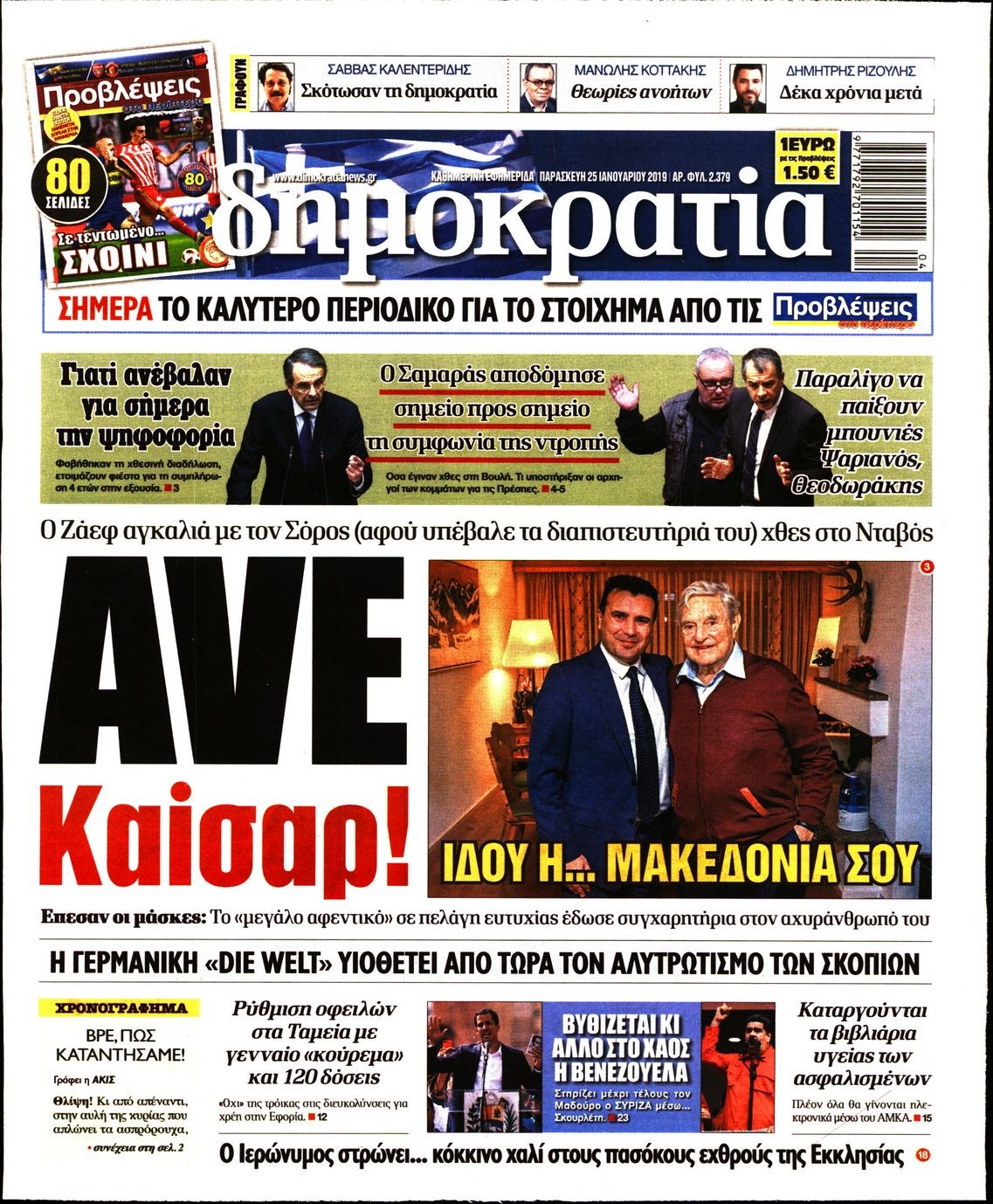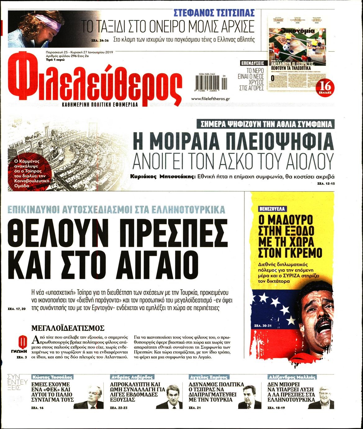 Οι πολιτικές εφημερίδες 25/1/19 Enikos Newsroom 06:40, Παρασκευή 25 Ιανουαρίου 2019 Media Διαβάστε τα πρωτοσέλιδα των πολιτικών εφημερίδων: ΠΟΛΙΤΙΚΕΣ ΕΦΗΜΕΡΙΔΕΣ ΠΡΩΤΟΣΕΛΙΔΑ Μοιράσου το: σχολίασε κι εσύ (0 σχόλια) Ακολουθήστε το enikos.gr στο Google News και μάθετε πρώτοι όλες τις ειδήσεις Δείτε όλες τις τελευταίες ειδήσεις από την Ελλάδα και τον Κόσμο στο enikos.gr Ειδήσεις Ροή Ειδήσεων 1 ώρα πριν Μητσοτάκης: Το 2026 συνεχίζουμε με την ίδια συνταγή – Ενισχύουμε την οικονομία με μεταρρυθμίσεις και επενδύσεις, χωρίς να παίζουμε με τα δημόσια οικονομικά 3 ώρες πριν Εικόνες φρίκης στα νοσοκομεία του Ιράν: «Βλέπουμε στοιβαγμένα πτώματα» καταγγέλλουν διαδηλωτές – Φουντώνουν τα σενάρια για επέμβαση των ΗΠΑ 4 ώρες πριν Αποστολή στη Λευκωσία: Συνδρομή από Ισραήλ και ΗΠΑ για το βίντεο εξετάζουν οι κυπριακές αρχές 2 ώρες πριν Αγρότες: Αποφάσισαν να συναντηθούν 2 επιτροπές με τον πρωθυπουργό την Τρίτη – Τι περιλαμβάνει η ατζέντα των αιτημάτων τους 4 ώρες πριν Πώς θα μπορούσαν οι ΗΠΑ να «αποκτήσουν» τη Γροιλανδία – Oι πιθανές προκλήσεις 1 ώρα πριν Απρόσμενη τύχη για 3 ζώδια – «Θα βρεθείτε στο σωστό μέρος, τη σωστή στιγμή» 5 ώρες πριν Μακροζωία: Οι 6 τροφές που αποφεύγουν οι μακροβιότεροι άνθρωποι στον κόσμο 3 ώρες πριν «Το δαχτυλίδι της αιώνιας πίστης»: Ανακαλύφθηκε χρυσό σύμβολο αγάπης 2.000 ετών 2 ώρες πριν Πλήρωσε 300 ευρώ για ένα ραντεβού σε πανάκριβο εστιατόριο – «Η κάρτα του απορρίφθηκε, τον κέρασα και μετά εξαφανίστηκε» 7 λεπτά πριν Στα «λευκά» ντύθηκαν τα ορεινά της χώρας – Χιονισμένα τοπία σε Φλώρινα, Ορεινή Ναυπακτία, Αιτωλοακαρνανία και Τρίκαλα 12 λεπτά πριν Σήμερα με τη Realnews: Ό,τι και αν αγοράσεις, σκανάρεις και κερδίζεις! 15 λεπτά πριν Αρχίζουν αύριο οι χειμερινές εκπτώσεις – Τι πρέπει να προσέχετε στις αγορές σας και ποιες Κυριακές θα είναι ανοιχτά τα καταστήματα 22 λεπτά πριν «Δεν μπορούσα να περπατήσω για πάνω από 5 λεπτά – Η απώλεια 76 κιλών μου έσωσε τη ζωή» – Όσα εξομολογείται γυναίκα για τη μάχη της με το βάρος 24 λεπτά πριν Βενεζουέλα: Το Στέιτ Ντιπάρτμεντ καλεί τους Αμερικανούς να φύγουν από τη χώρα – Το μήνυμα Μαδούρο από τις φυλακές και οι διαπραγματεύσεις της προσωρινής προέδρου ENIKOS NETWORK Λιπώδες ήπαρ: Τα συμπτώματα στο πρόσωπο που μπορεί να σχετίζονται με τη νόσο Η Kate Winslet αποκαλύπτει: «Φιλούσα αγόρια και κορίτσια, δεν είχα αποφασίσει» – Πώς επηρέασε την καριέρα της; e-ΕΦΚΑ και ΔΥΠΑ:Ποιοι πάνε από αύριο στα ΑΤΜ Φοροδιαφυγή: Έρχονται νέα ψηφιακά όπλα από την ΑΑΔΕ- Όλες οι λεπτομέρειες Ο Google Assistant θα παραμείνει λίγο περισσότερο για ορισμένους χρήστες Android Τεστ προσωπικότητας: Το βάζο που θα επιλέξετε αποκαλύπτει πώς λύνετε προβλήματα στη ζωή σας περισσότερα 11:15 , Κυριακή 11 Ιανουαρίου 2026 Σήμερα με τη Realnews: Ό,τι και αν αγοράσεις, σκανάρεις και κερδίζεις! Σήμερα με τη Realnews: Ό,τι και αν αγοράσεις, σκανάρεις και κερδίζεις! Με το PADU app, το κορυ... 09:56 , Κυριακή 11 Ιανουαρίου 2026 Σήμερα με τη Realnews: Δωροεπιταγή 10€ Σήμερα με τη Realnews: Δωροεπιταγή 10€ Δωροεπιταγή αξίας 10€ για αγορές άνω των 60€ από τα πολ... 08:57 , Κυριακή 11 Ιανουαρίου 2026 Η Realnews στο www.pressreader.com Διαβάστε την ψηφιακή έκδοση της εφημερίδας στην οθόνη του κινητού, του tablet και του υπολογισ... 00:01 , Κυριακή 11 Ιανουαρίου 2026 Σήμερα με τη Realnews: Μυστηριώδης εξαφάνιση του Rick Mofina – Μαζί Food & Travel Σήμερα με τη Realnews: Μυστηριώδης εξαφάνιση του Rick Mofina – Μαζί Food & Travel Μ... ΤΕΛΕΥΤΑΙΕΣ ΕΙΔΗΣΕΙΣ 7 λεπτά πριν Στα «λευκά» ντύθηκαν τα ορεινά της χώρας –... 12 λεπτ