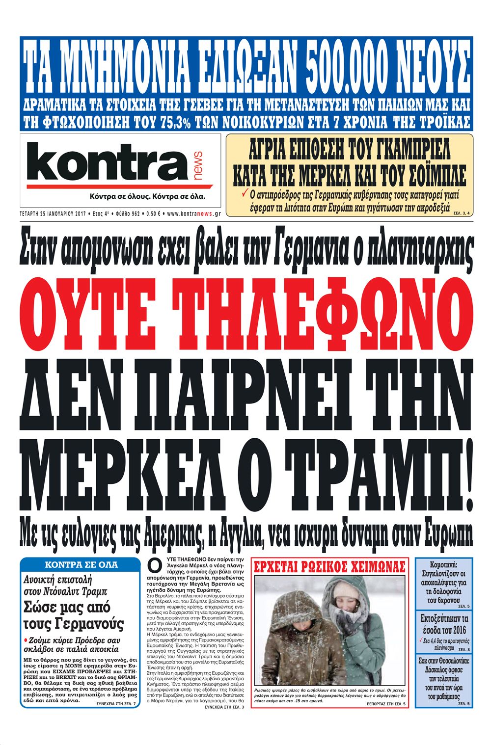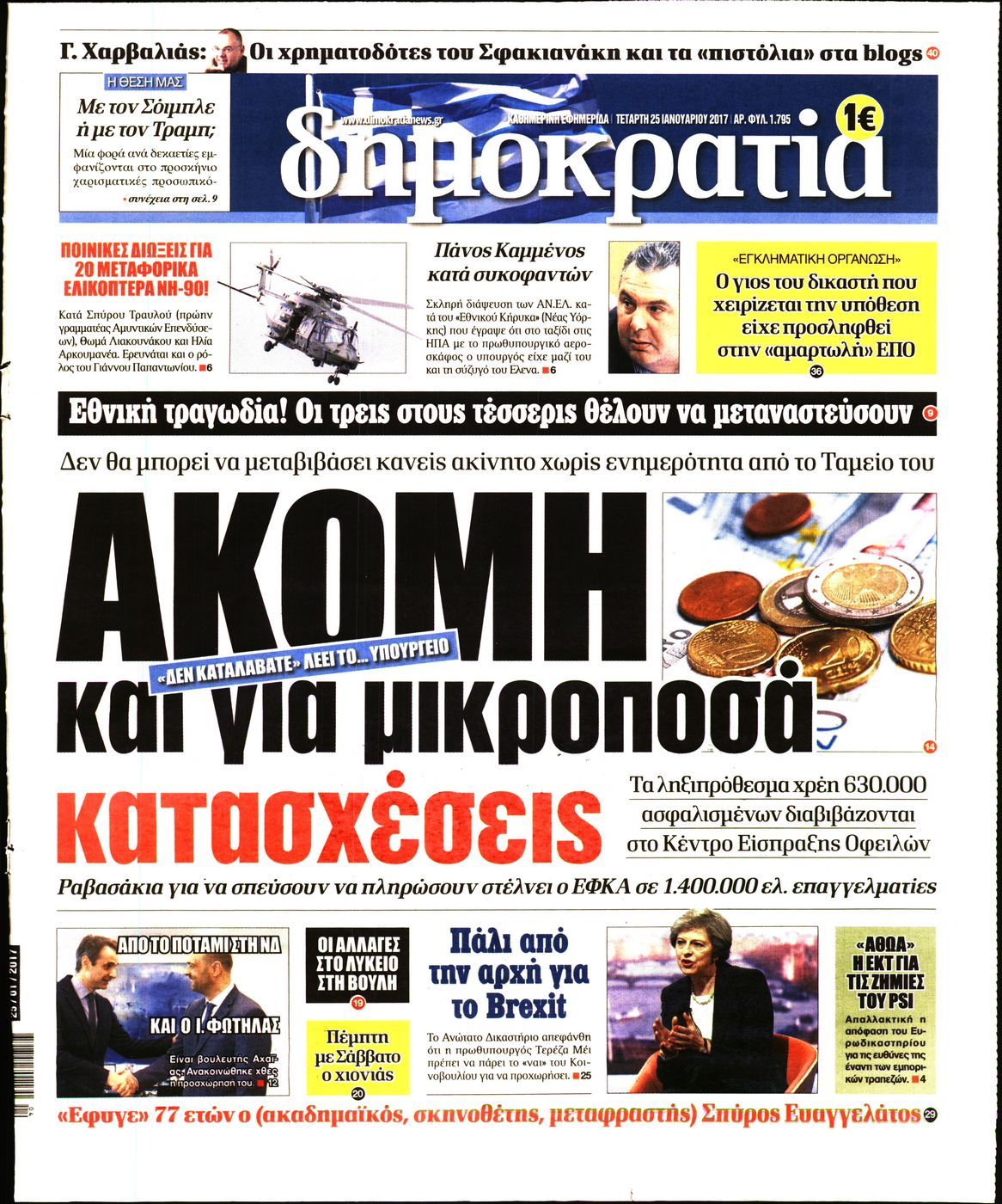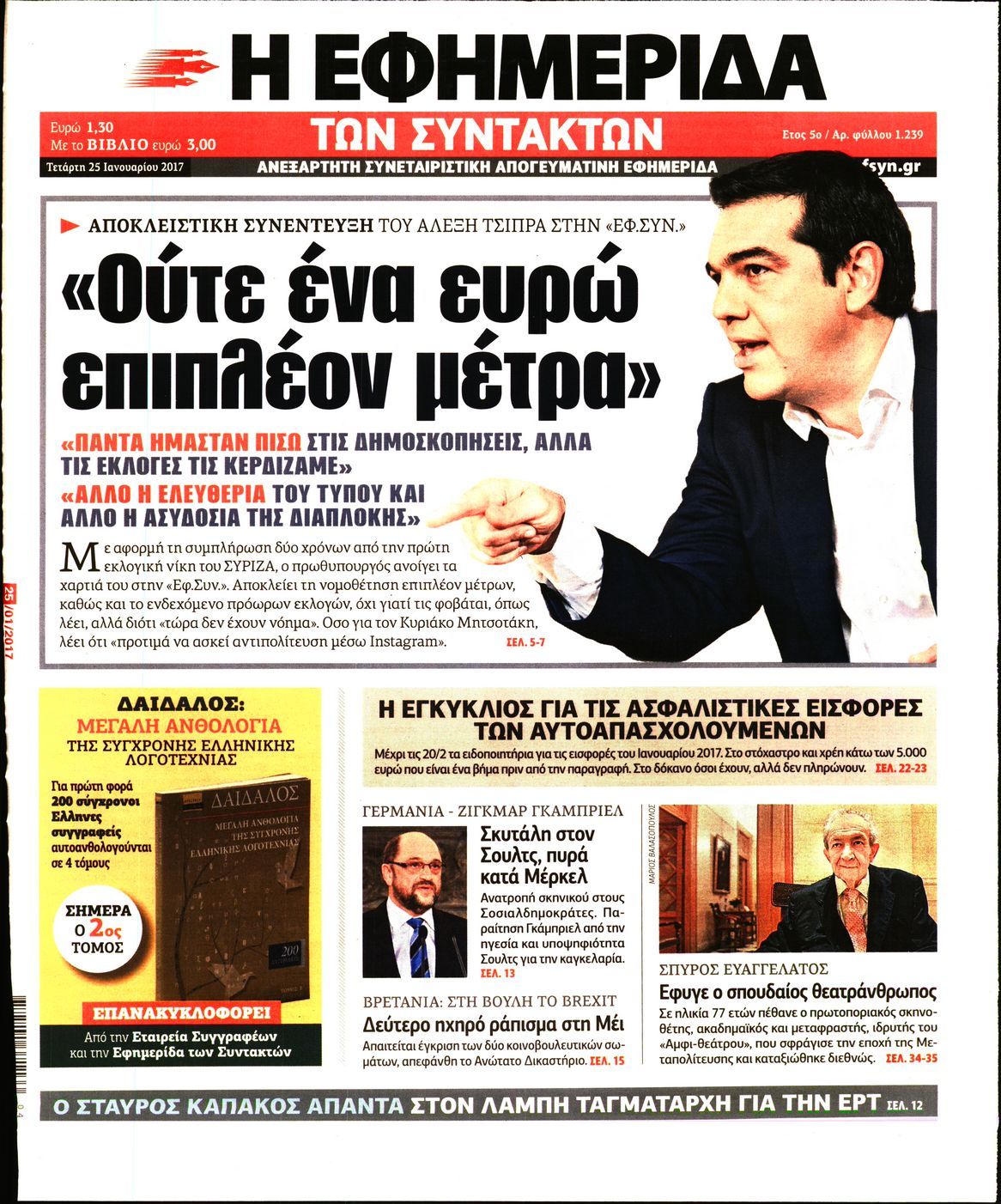 Οι πολιτικές εφημερίδες 25/1/2017 Enikos Newsroom 00:31, Τετάρτη 25 Ιανουαρίου 2017 Media Διαβάστε τα σημερινά πρωτοσέλιδα των πολιτικών εφημερίδων: ΠΟΛΙΤΙΚΕΣ ΕΦΗΜΕΡΙΔΕΣ ΠΡΩΤΟΣΕΛΙΔΑ Μοιράσου το: σχολίασε κι εσύ (0 σχόλια) Ακολουθήστε το enikos.gr στο Google News και μάθετε πρώτοι όλες τις ειδήσεις Δείτε όλες τις τελευταίες ειδήσεις από την Ελλάδα και τον Κόσμο στο enikos.gr Ειδήσεις Ροή Ειδήσεων 7 ώρες πριν Ρετζέπ Ταγίπ Ερντογάν: Δεν έχουμε καμία βλέψη στα εδάφη ή την κυριαρχία κανενός – Δεν θα επιτρέψουμε να παραβιαστούν τα δικαιώματά μας 9 ώρες πριν Χριστούγεννα στα μπλόκα οι αγρότες: Άνοιξαν στα διόδια και μοίρασαν προϊόντα στους πολίτες – Νέα σύσκεψη την Κυριακή στη Νίκαια 9 ώρες πριν Αρχεία Επστάιν: Οι 500 σελίδες που λείπουν, τα αναπάντητα ερωτήματα και οι επώνυμοι – Τι έπεται 9 ώρες πριν Κύκλωμα διακίνησης ναρκωτικών σε σχολεία: Τηλεφωνούσαν στους ανηλίκους την ώρα του μαθήματος – Οι διάλογοι-σοκ, τα «ψευδώνυμα» και τα βασανιστήρια 8 ώρες πριν H ακτοφυλακή των ΗΠΑ κατάσχεσε και δεύτερο τάνκερ στα ανοιχτά της Βενεζουέλας – Δείτε βίντεο 1 ώρα πριν Οπτική ψευδαίσθηση: Μόνο το 2% των ανθρώπων θα βρει την πεταλούδα σε 15 δευτερόλεπτα 2 ώρες πριν Μήλο vs μπανάνα: Ποιο φρούτο έχει περισσότερες φυτικές ίνες, σύμφωνα με διαιτολόγους – Τα οφέλη τους για την υγεία 2 ώρες πριν Τα ζώδια σήμερα, Κυριακή 21 Δεκεμβρίου: Αιγόκεροι, αποφασίζετε για το επόμενο κεφάλαιο της ζωής σας 23 ώρες πριν Enerwave: Το νέο «ρεύμα» στη λιανική ενέργειας που αλλάζει την εμπειρία του καταναλωτή 19 λεπτά πριν Σήμερα με τη Realnews: Ό,τι και αν αγοράσεις, σκανάρεις και κερδίζεις! 3 λεπτά πριν e-ΕΦΚΑ και ΔΥΠΑ: Ο «χάρτης» πληρωμών έως τις 24 Δεκεμβρίου – Ποιοι θα δουν χρήματα στον λογαριασμό τους από αύριο 10 λεπτά πριν Οι αθλητικές μεταδόσεις 21/12/2025 19 λεπτά πριν LEGEND: Ο διάδοχος της φρεγάτας Constellation έρχεται από την ακτοφυλακή των ΗΠΑ 26 λεπτά πριν Καιρός: Βροχές και χαμηλές θερμοκρασίες σήμερα – Η πρόγνωση για τα Χριστούγεννα ENIKOS NETWORK Το αφροδισιακό φυλλώδες λαχανικό που μπορεί να προστατεύσει τα μάτια και να καταπολεμήσει τον καρκίνο Το απόλυτο κόλπο με το αυτοκόλλητο για να βγει πρώτη η βαλίτσα σας από το αεροπλάνο «Πολεμική» προετοιμασία από την ευρωπαϊκή βιομηχανία ενέργειας – Η Eurelectric ζητεί «ομπρέλα» προστασίας για τις υποδομές Ακύρωση ΑΦΜ για απάτες – Ποιους βάζει στο στόχαστρο η ΑΑΔΕ Χαρτογραφώντας το «σημείο χωρίς επιστροφή»: Για πρώτη φορά αποκαλύπτεται με λεπτομέρεια το ακανθώδες όριο της ατμόσφαιρας τ... Η Google καταργεί τη λειτουργία «dark web report» – Πώς θα μπορούν οι χρήστες να διαγράφουν τα δεδομένα τους περισσότερα 07:00 , Κυριακή 21 Δεκεμβρίου 2025 Σήμερα με τη Realnews: Instyle, μαζί Drive και Realnews Geopolitics Σήμερα με τη Realnews: Instyle, μαζί Drive και Realnews Geopolitics Instyle Η Άννα Ρεζάν, η Ch... 06:55 , Κυριακή 21 Δεκεμβρίου 2025 Η Realnews στο www.pressreader.com Διαβάστε την ψηφιακή έκδοση της εφημερίδας στην οθόνη του κινητού, του tablet και του υπολογισ... 05:46 , Κυριακή 21 Δεκεμβρίου 2025 Οι αθλητικές εφημερίδες 21/12/2025 Διαβάστε τα πρωτοσέλιδα από τις αθλητικές εφημερίδες, σήμερα 21/12/2025. 05:38 , Κυριακή 21 Δεκεμβρίου 2025 Οι πολιτικές εφημερίδες 21/12/2025 Διαβάστε τα πρωτοσέλιδα από τις πολιτικές εφημερίδες, σήμερα 21/12/2025. ΤΕΛΕΥΤΑΙΕΣ ΕΙΔΗΣΕΙΣ 10 λεπτά πριν Οι αθλητικές μεταδόσεις 21/12/2025 19 λεπτά πριν LEGEND: Ο διάδοχος της φρεγάτας Constellation έρχεται από την... 26 λεπτά πριν Καιρός: Βροχές και χαμηλές θερμοκρασίες σήμερα – Η... 36 λεπτά πριν Εορτολόγιο: Ποιοι γιορτάζουν σήμερα 21 Δεκεμβρίου 41 λε